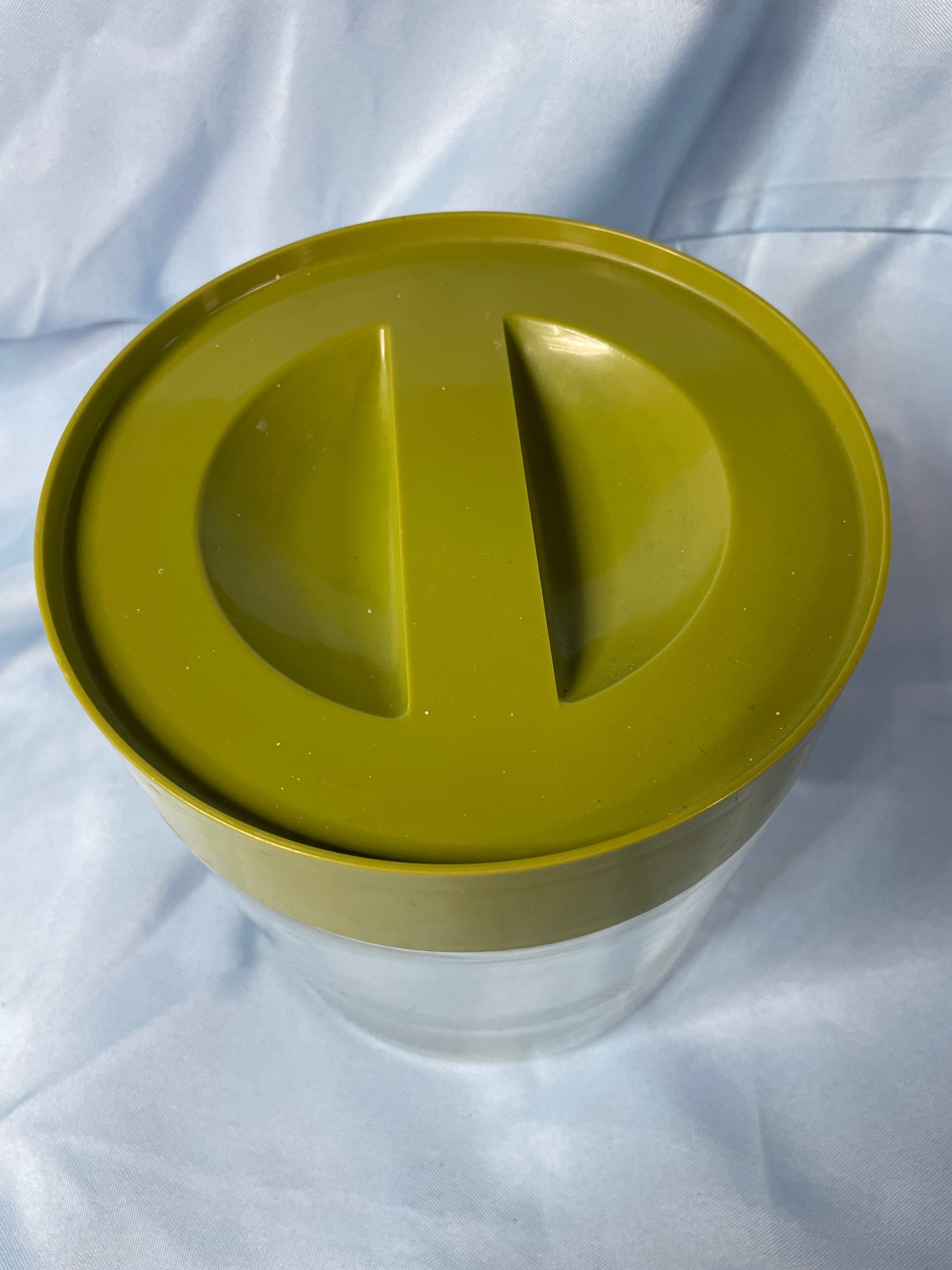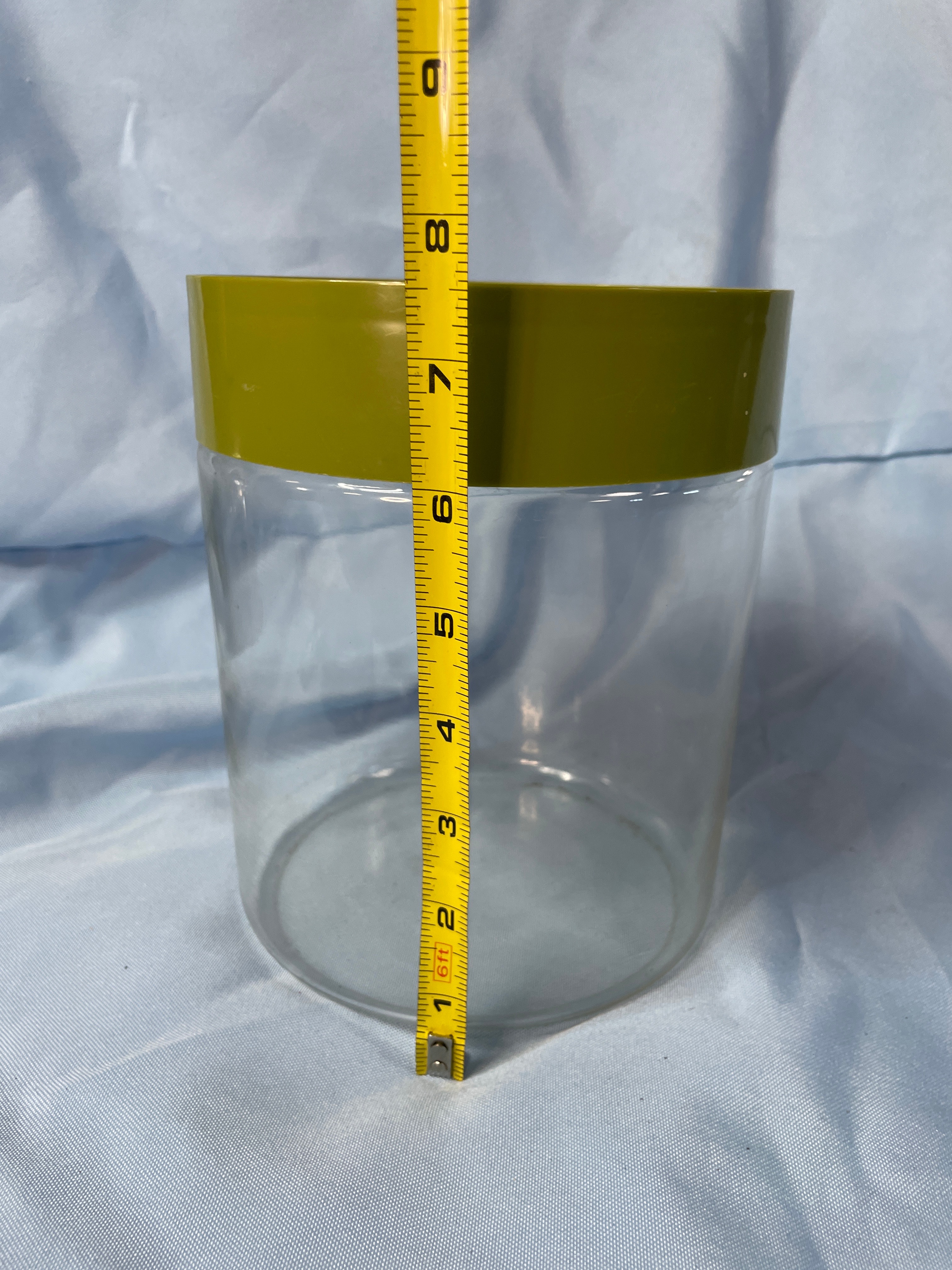 Pyrex Ware Clear Glass Canister with Olive Green Lid