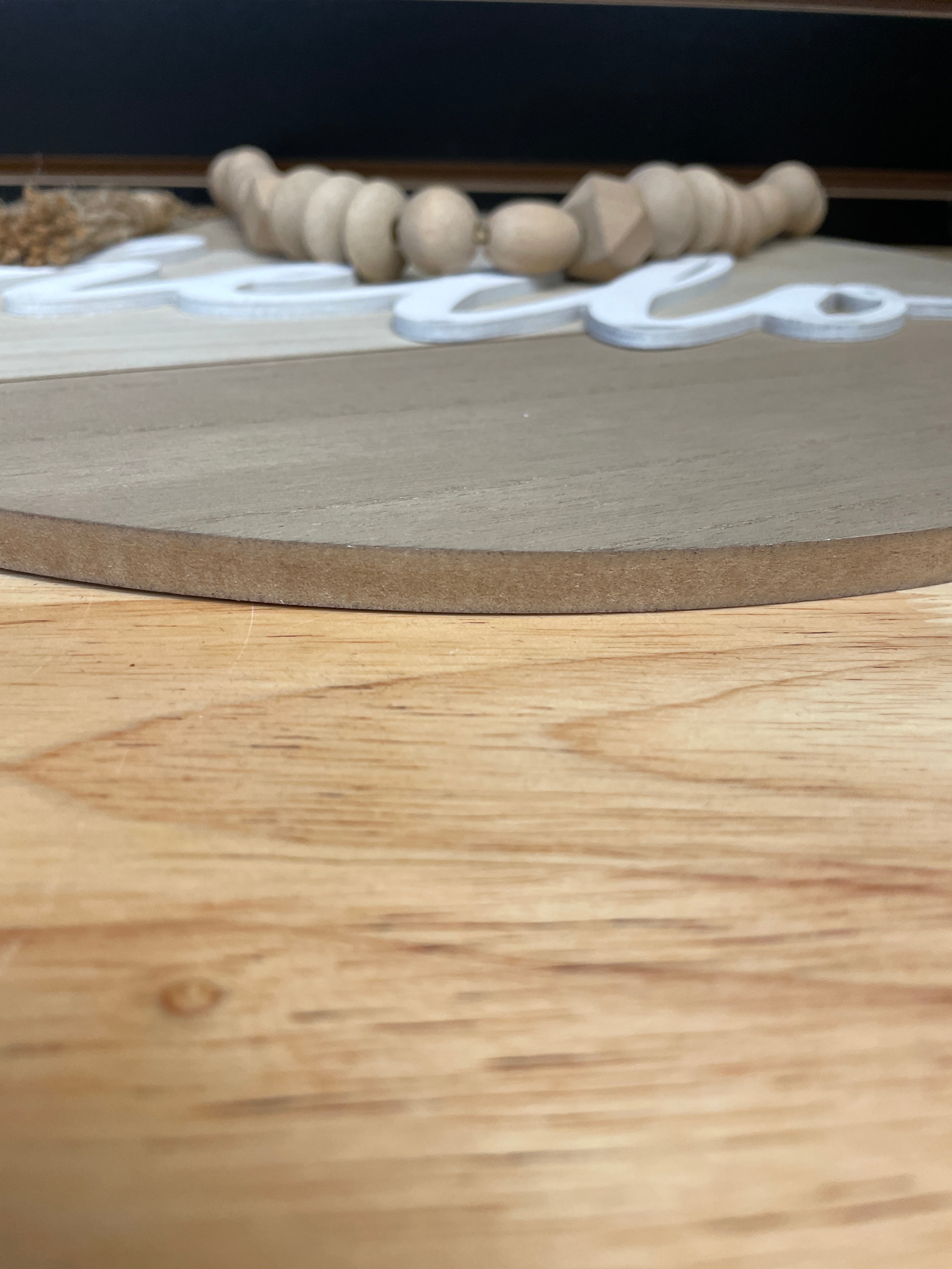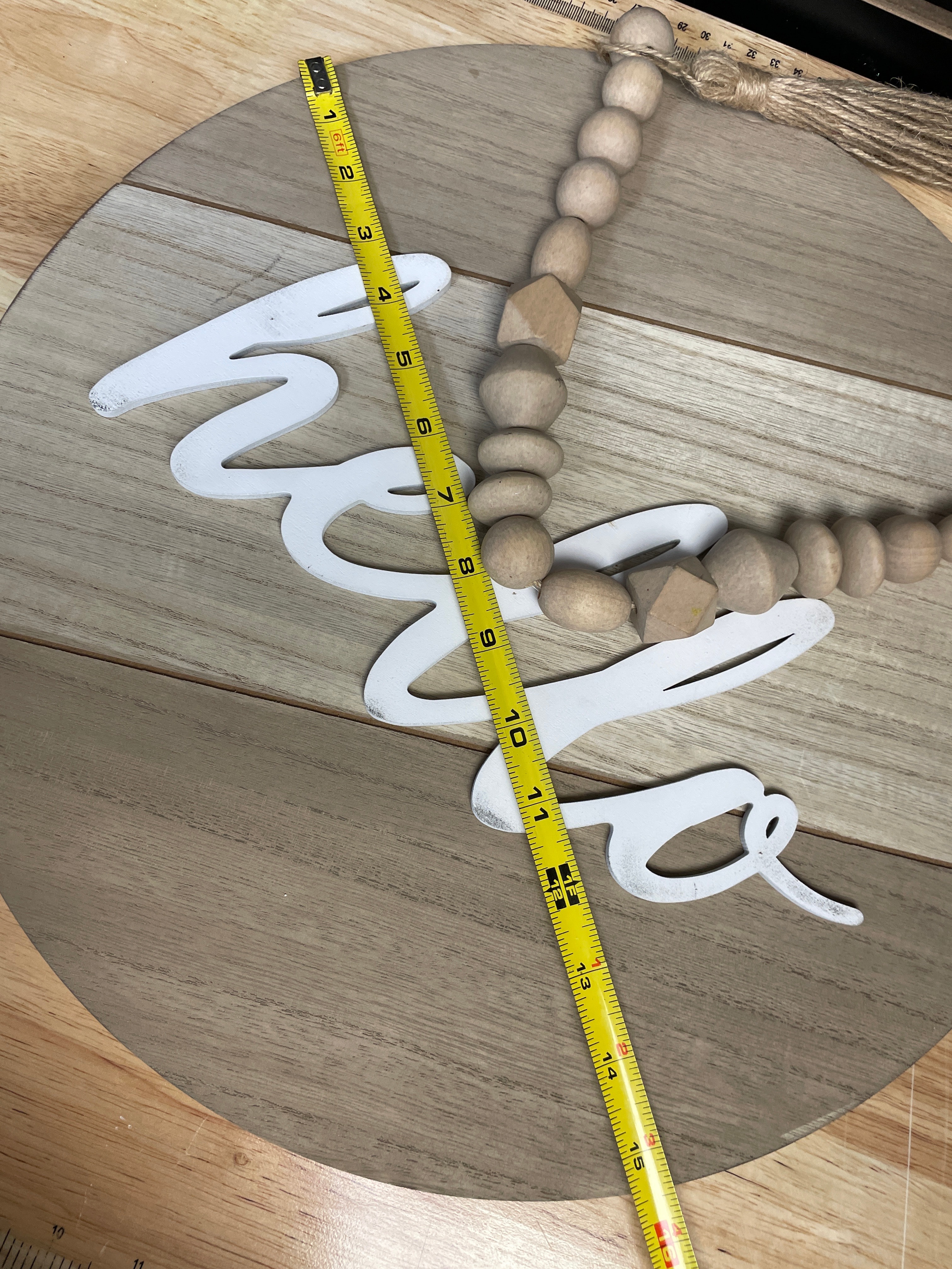 A Round Wooden 'Hello' Wall Sign with Beads