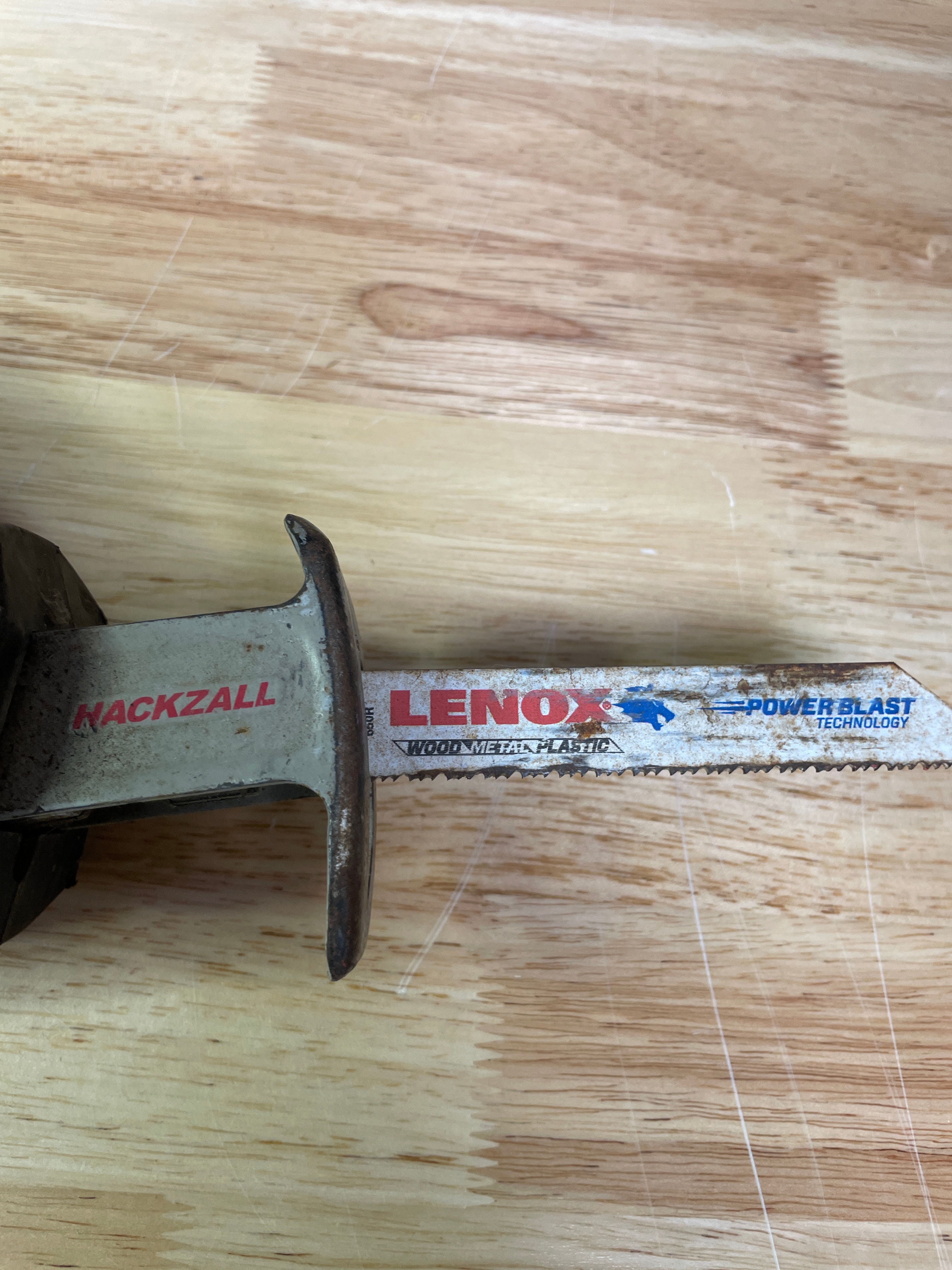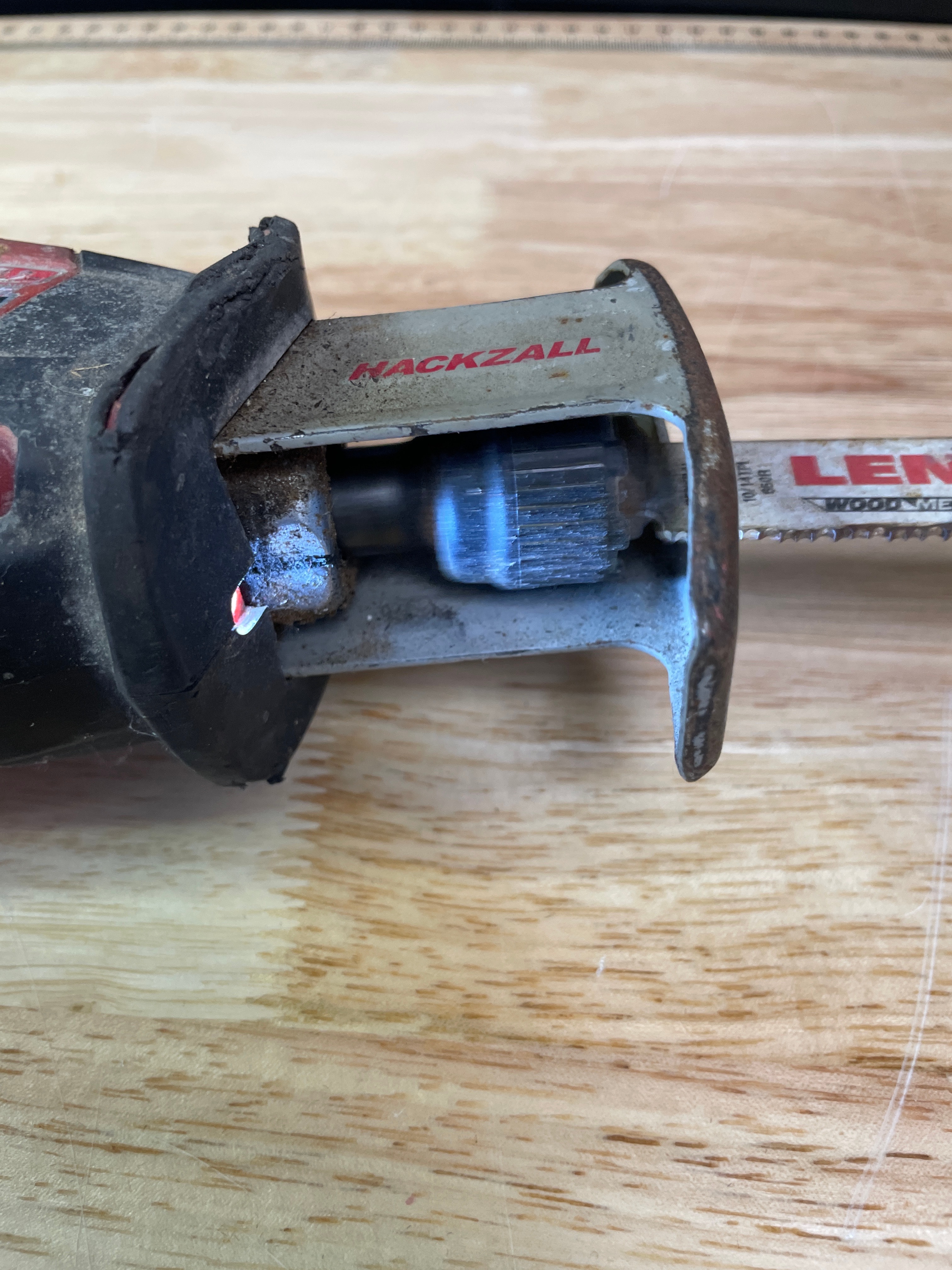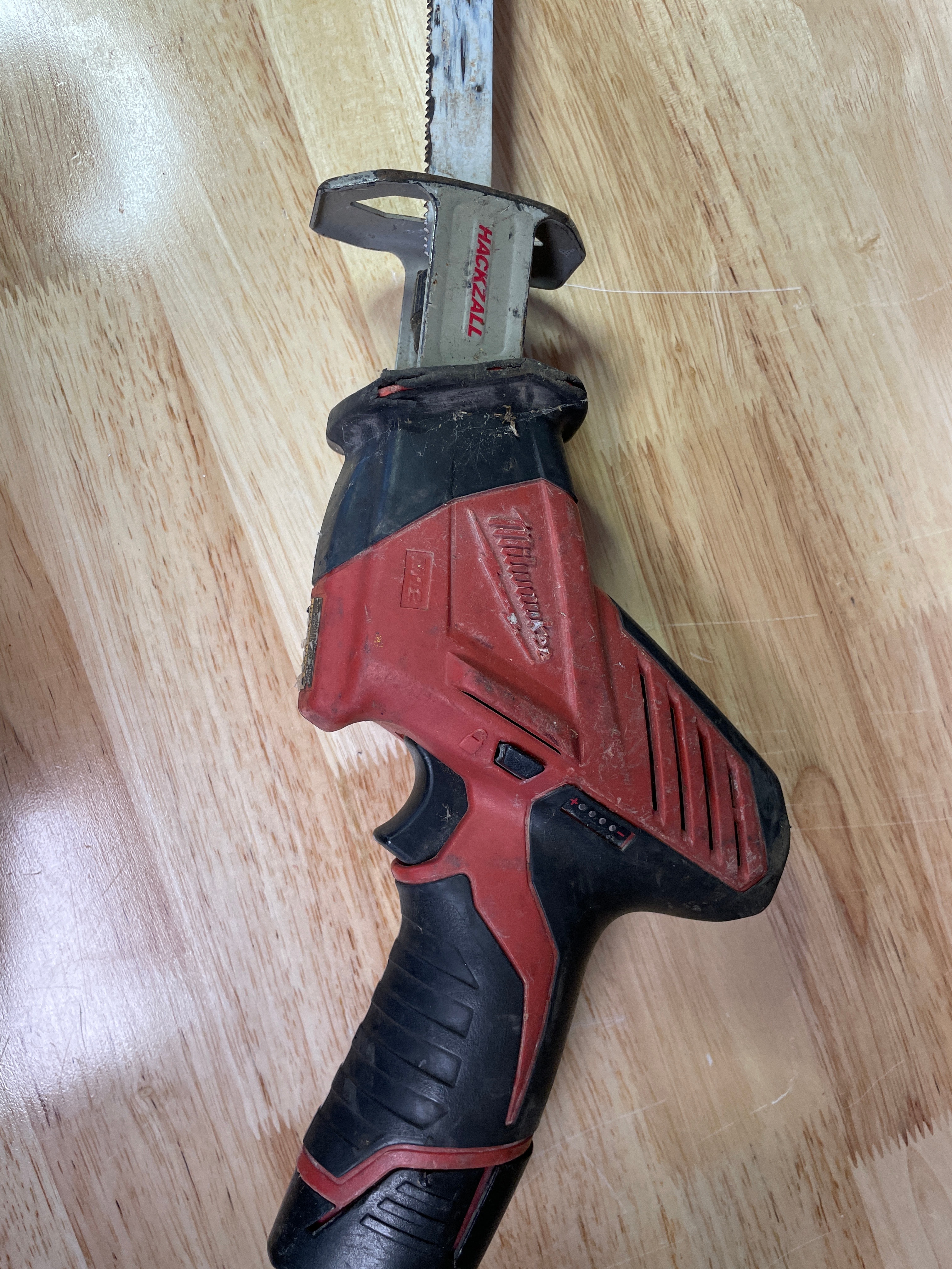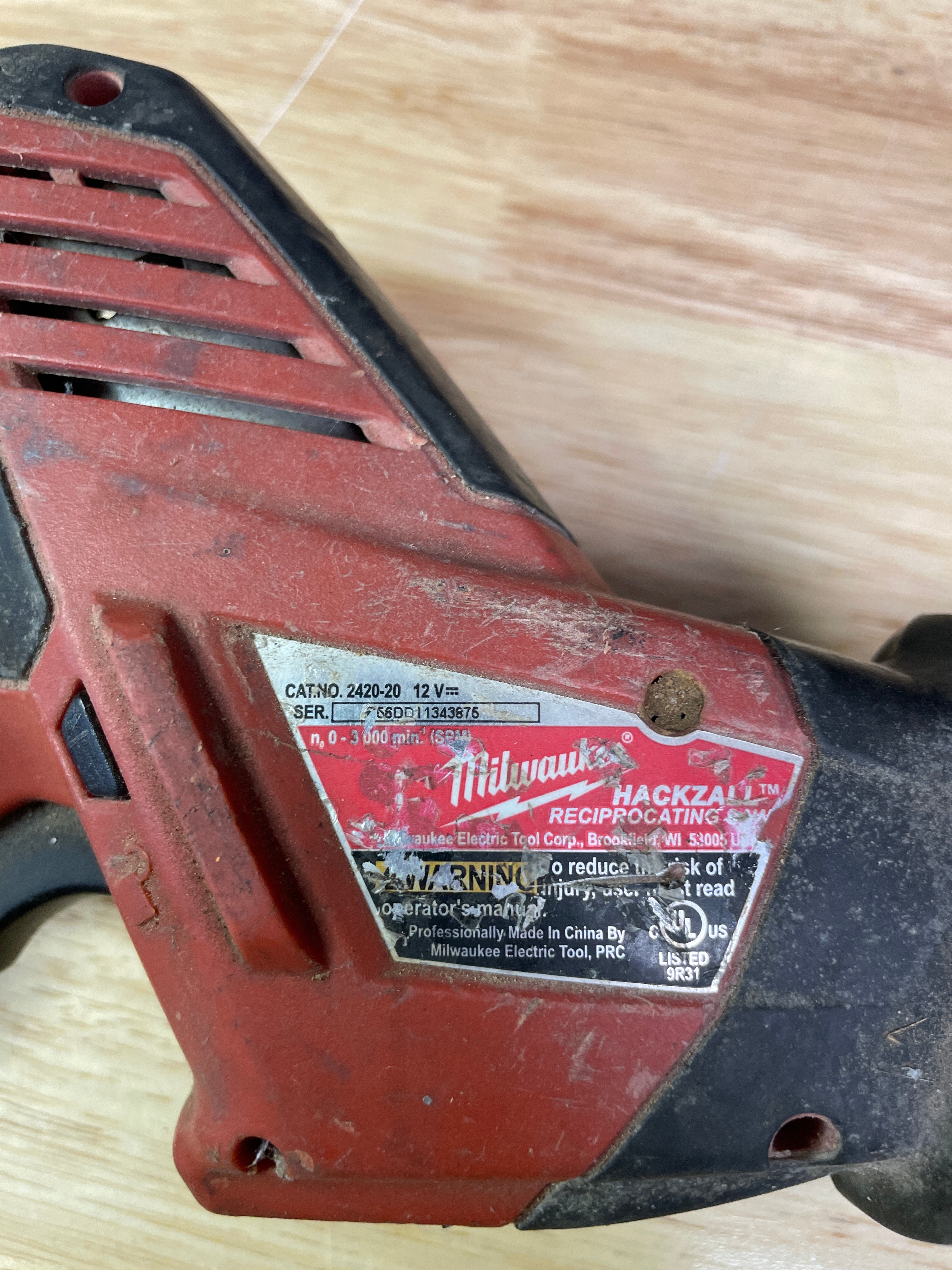 A red and black Milwaukee HACKZALL™ RECIPROCATING SAW, CAT.NO. 2420-20, 12 V=, with a LENOX® blade. With battery. Works