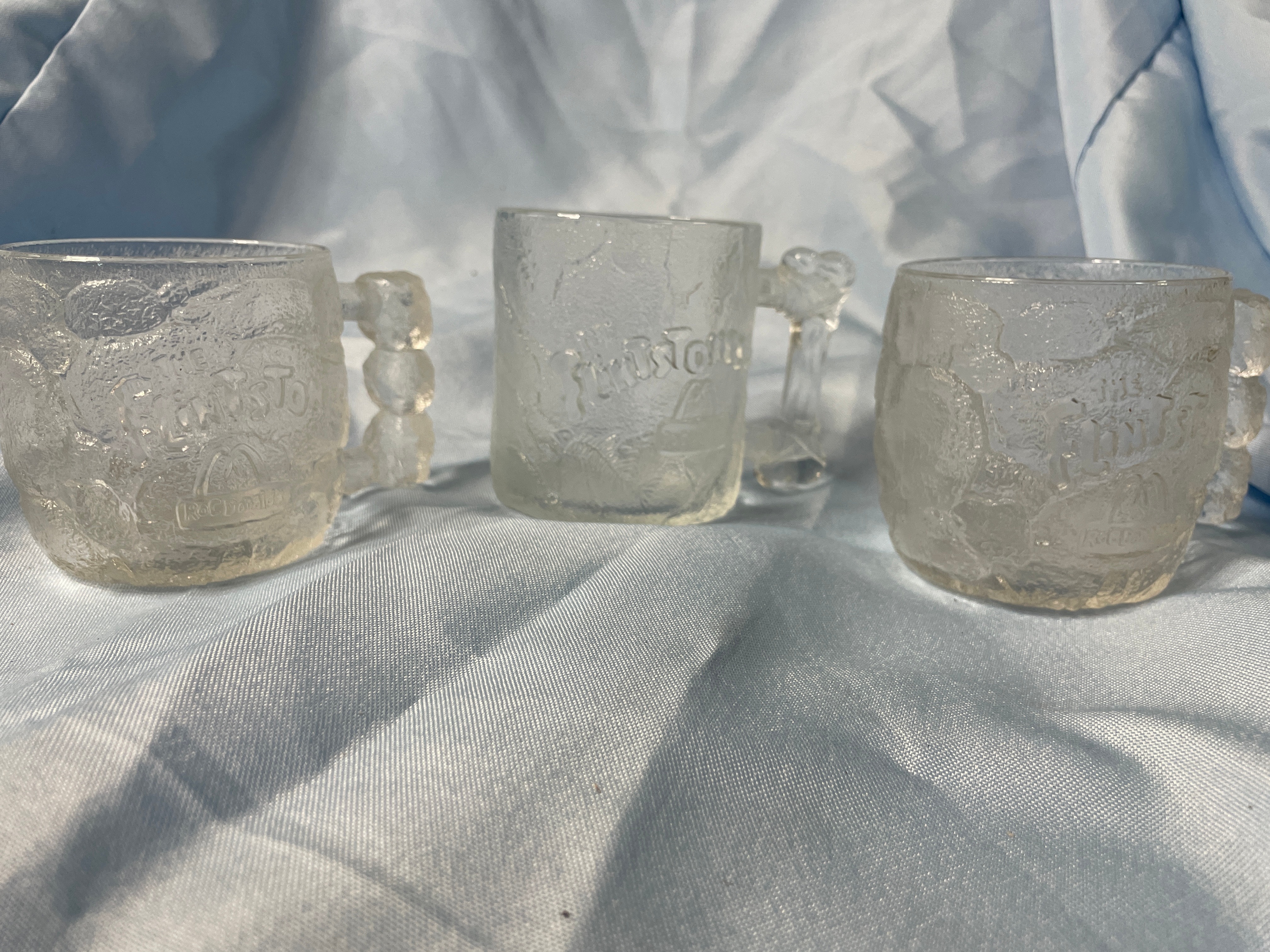 Three 1993 McDonald's The Flintstones Frosted Glass Mugs