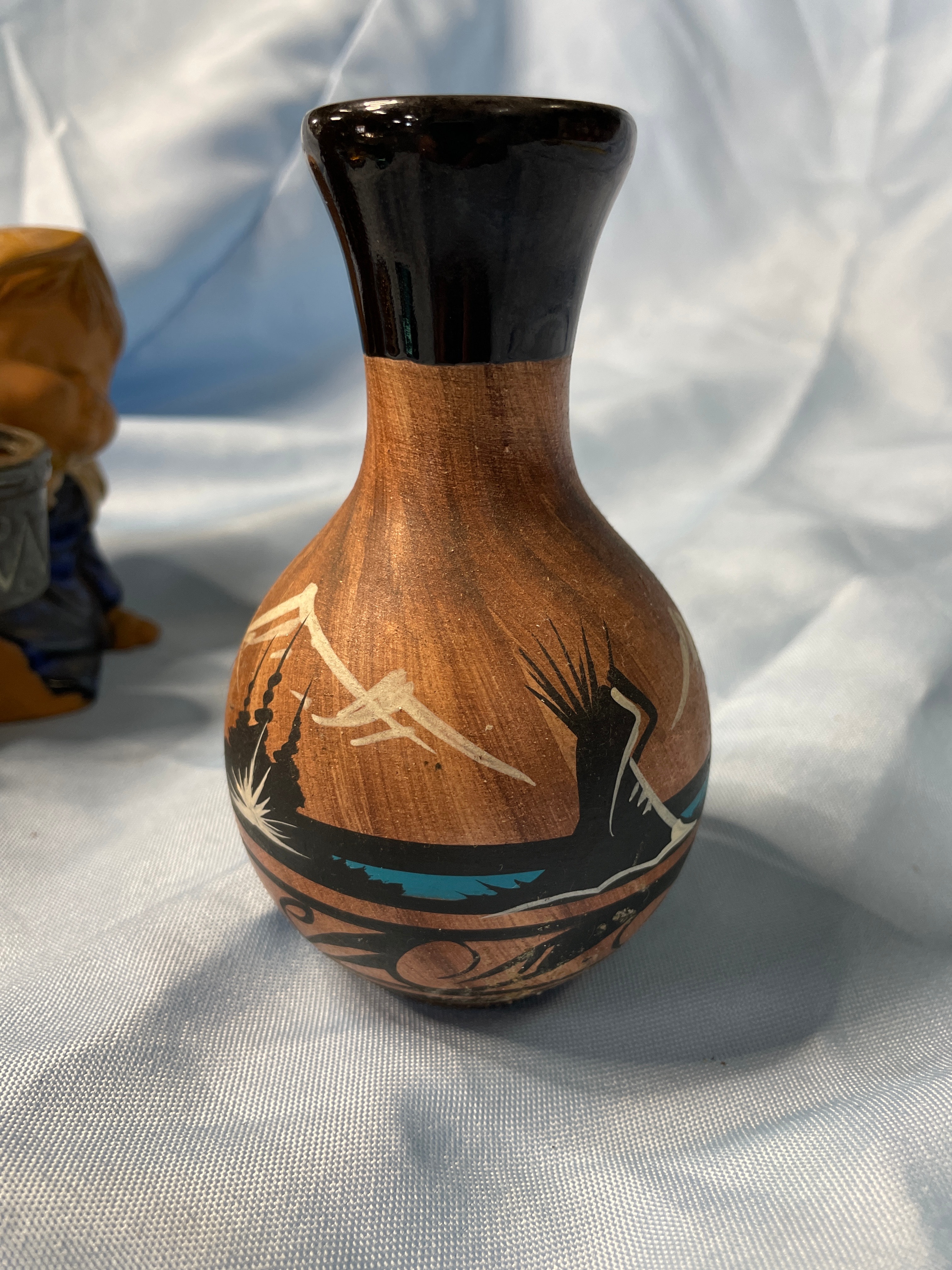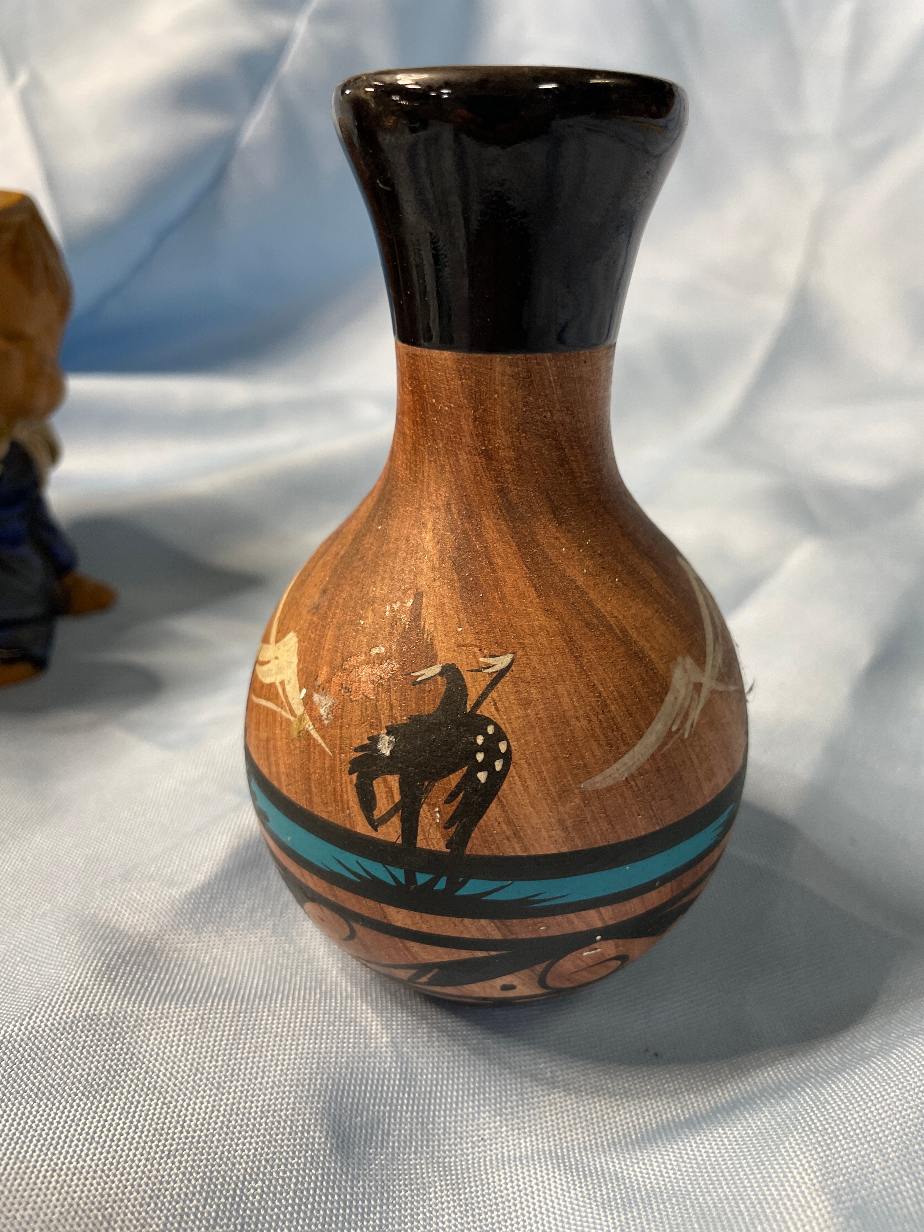 Three Ceramic Items: McCoy Vase, Navajo Vase, and Figurine