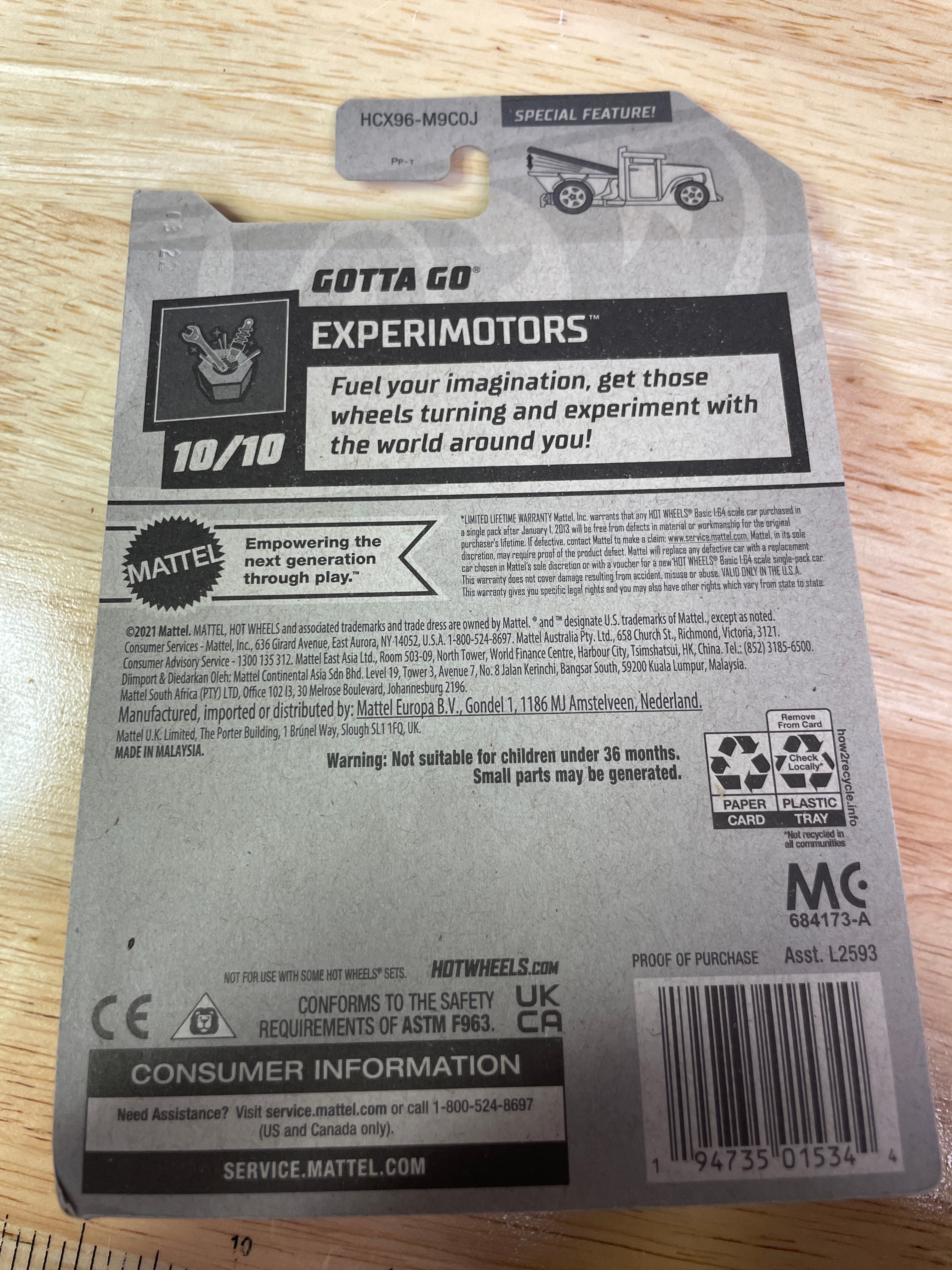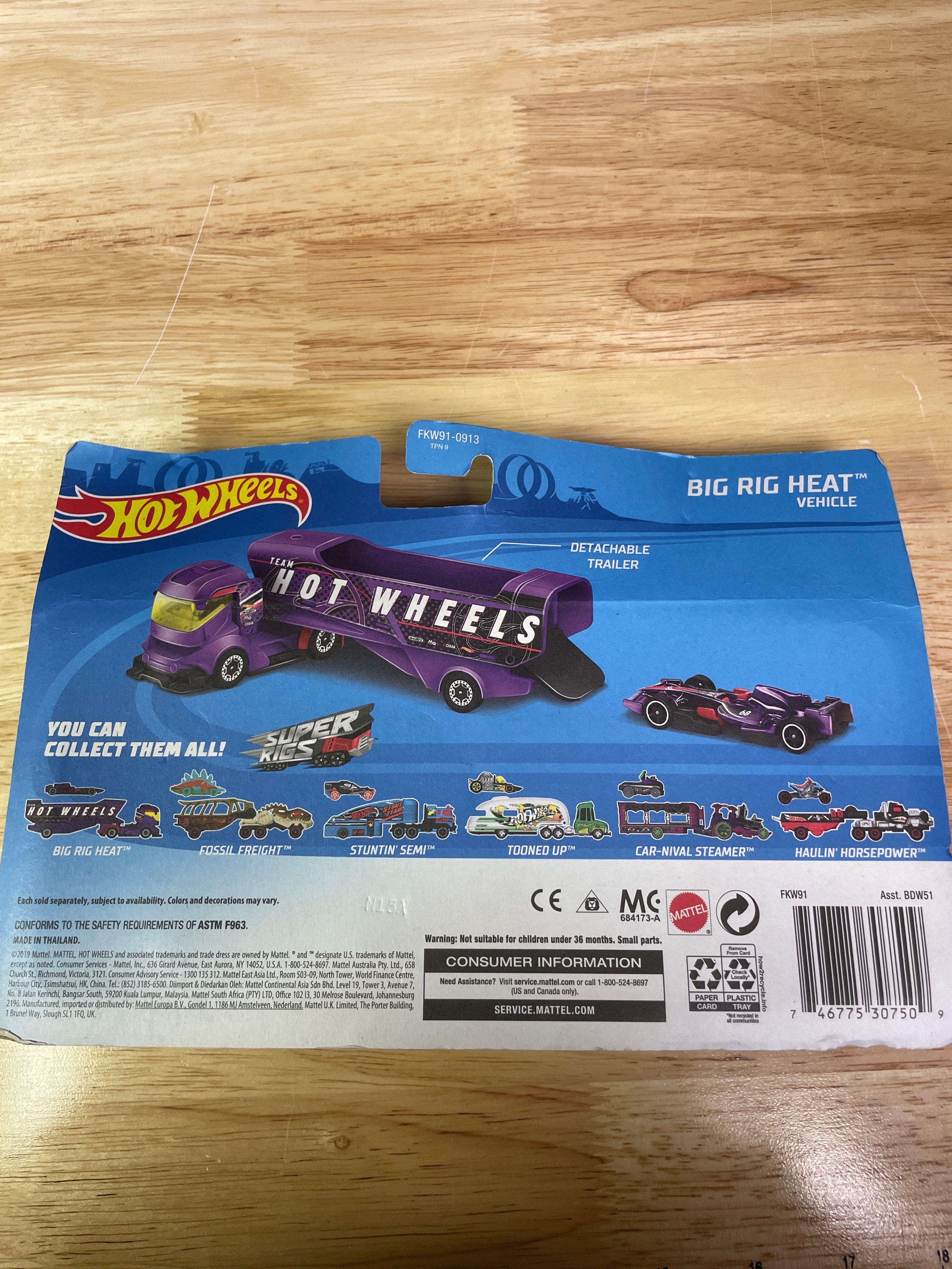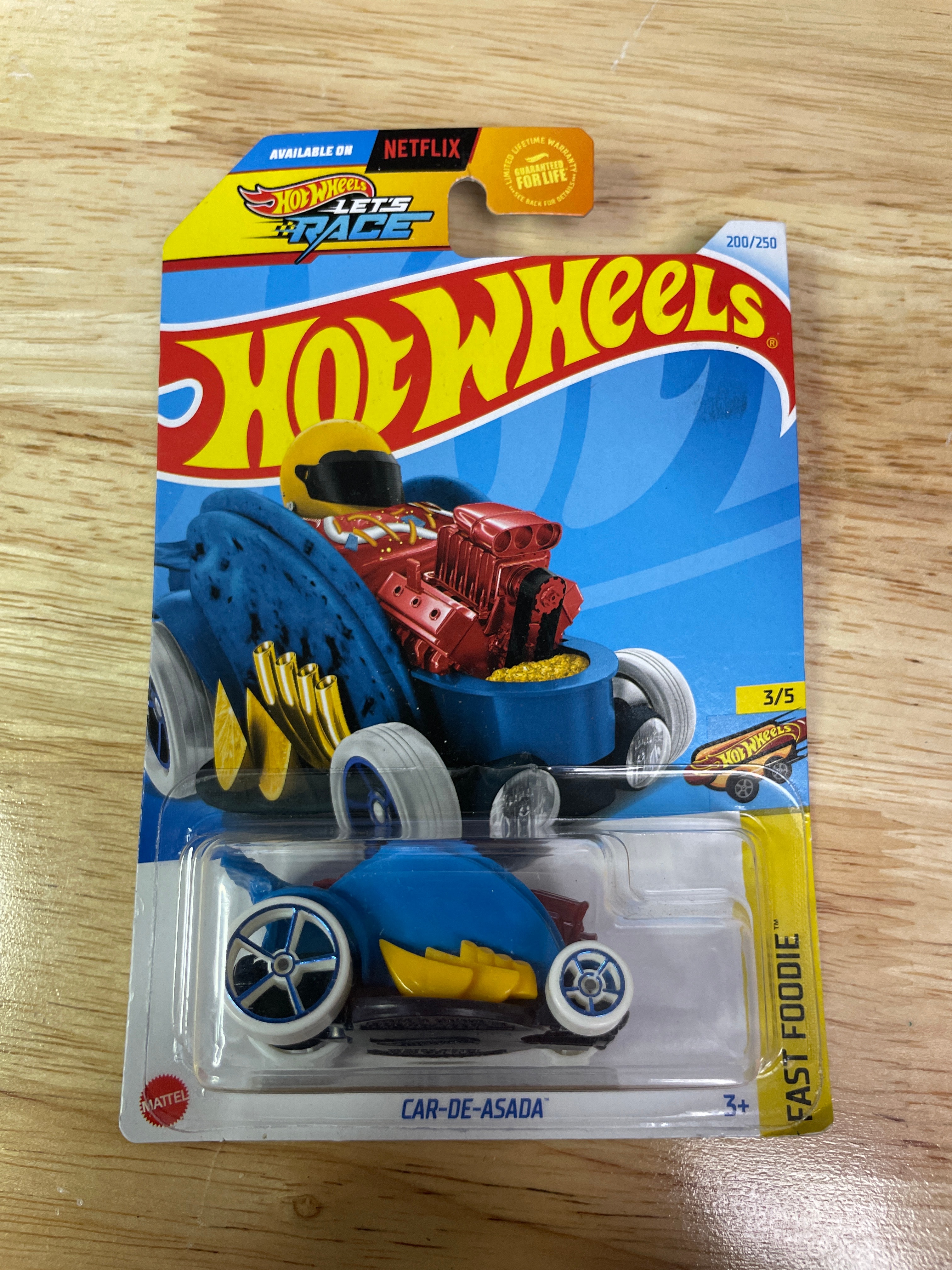 A collection comprising nine modern Hot Wheels die-cast toy vehicles and one Hot Wheels “Super Rigs” truck and trailer set, all produced by Mattel. Each item is presented in its original, factory-sealed blister packaging. The vehicles and set consist of die-cast metal and plastic components. Visible branding includes “Hot Wheels” and “Mattel, ” alongside various series names such as “Mud Studs, ” “Compact Kings, ” “Experimotors, ” “Fast Foodie, ” and “HW Ride-Ons.” Specific model names identified include “Pixel Shaker, ” “Surf Crate, ” “Morris Mini, ” “’95 Jeep Cherokee, ” “’17 Jeep Wrangler, ” “Big Rig Heat, ” “Car-De-Asada, ” and “Gotta Go.” Packaging details include production numbers (e.g., “66/250,” “161/250”) and series position (e.g., “3/5,” “4/5”). Additional text on the packaging notes “Guaranteed For Life, ” “Special Feature, ” and “Car Included!” on the Super Rigs set, with one card also stating “Available on Netflix.” Manufacturing locations are indicated as “Made in Malaysia” or “Made in Thailand” for the Super Rigs set. All items carry a “3+” age rating and a warning regarding small parts.