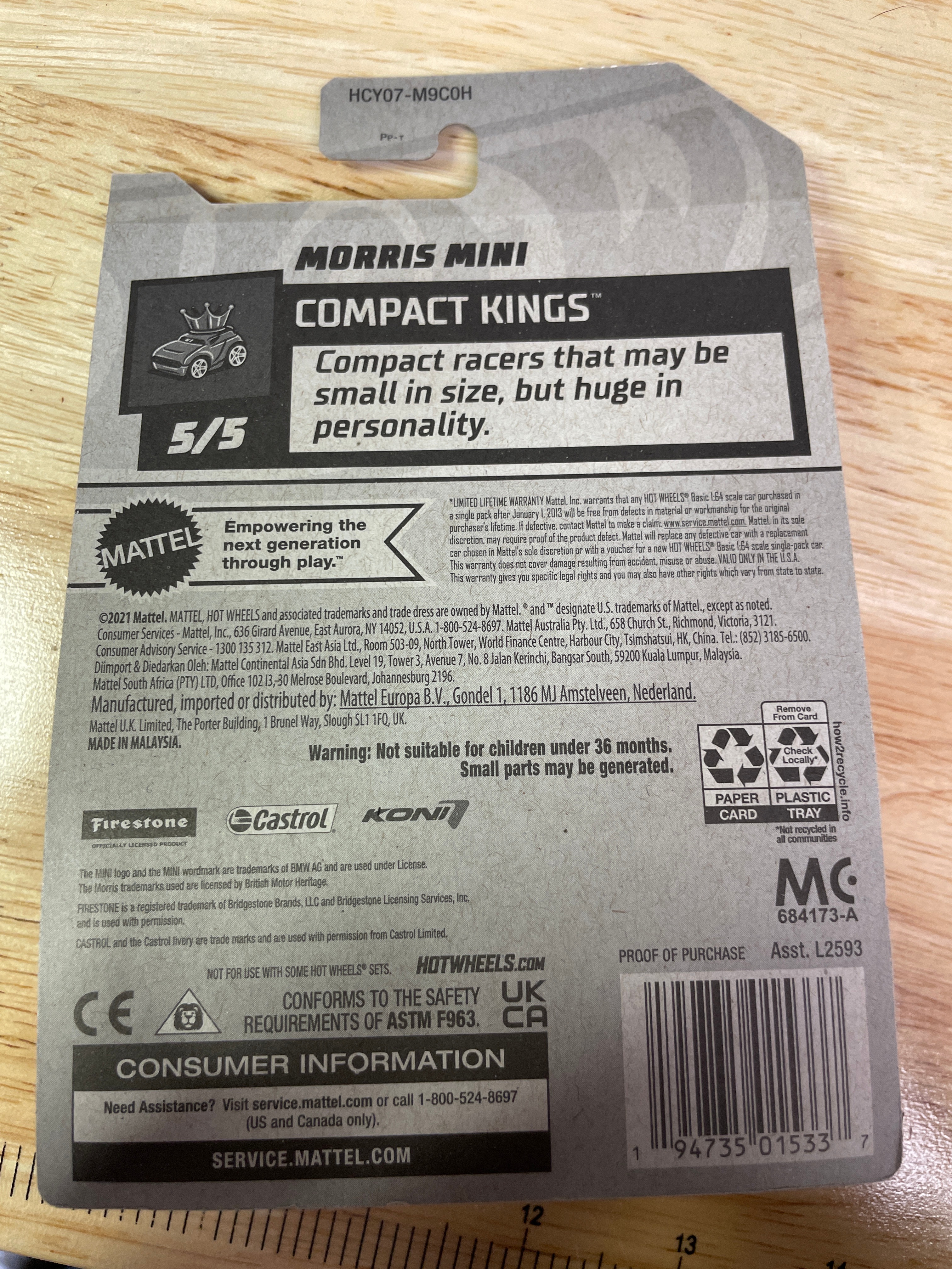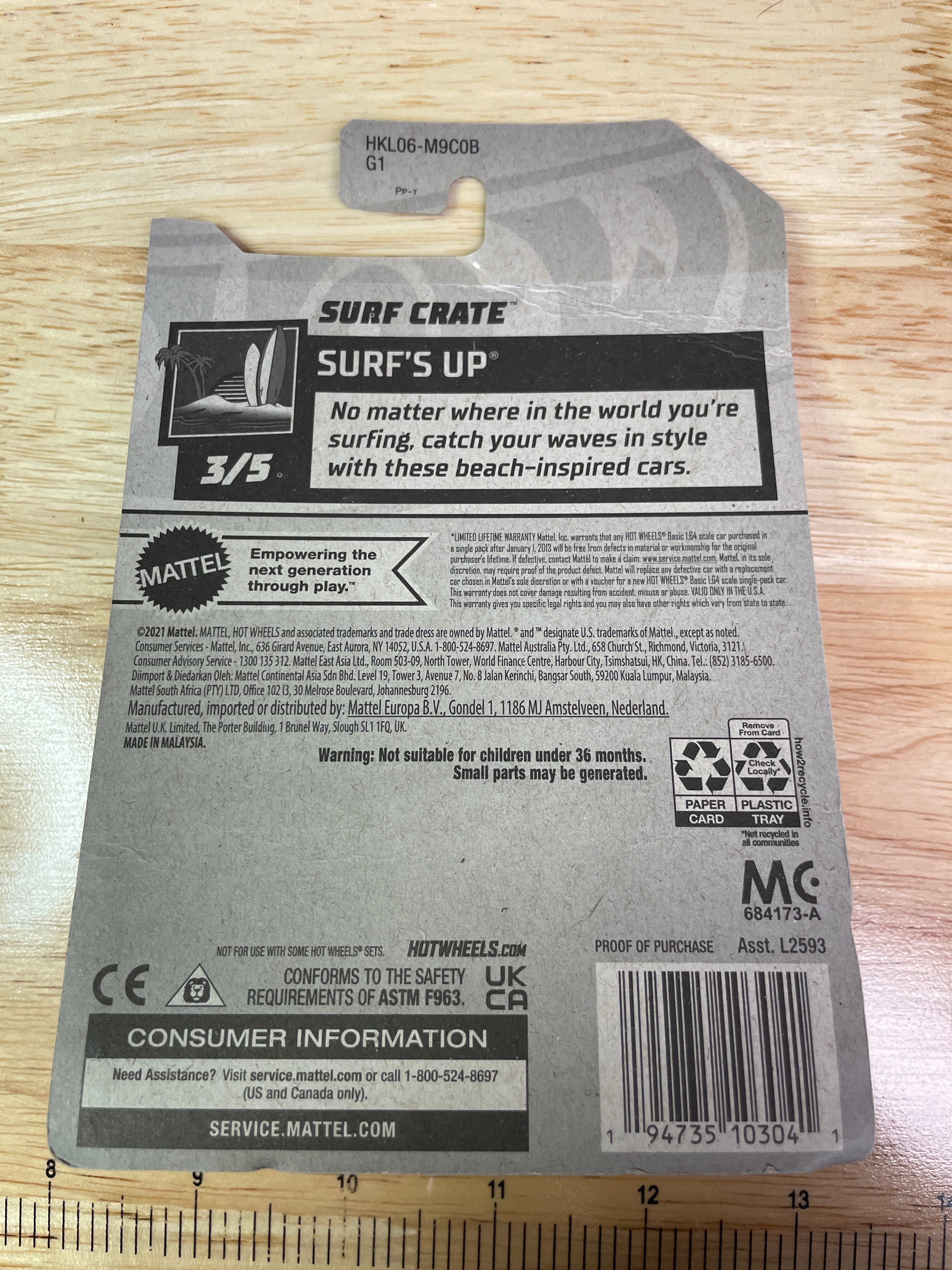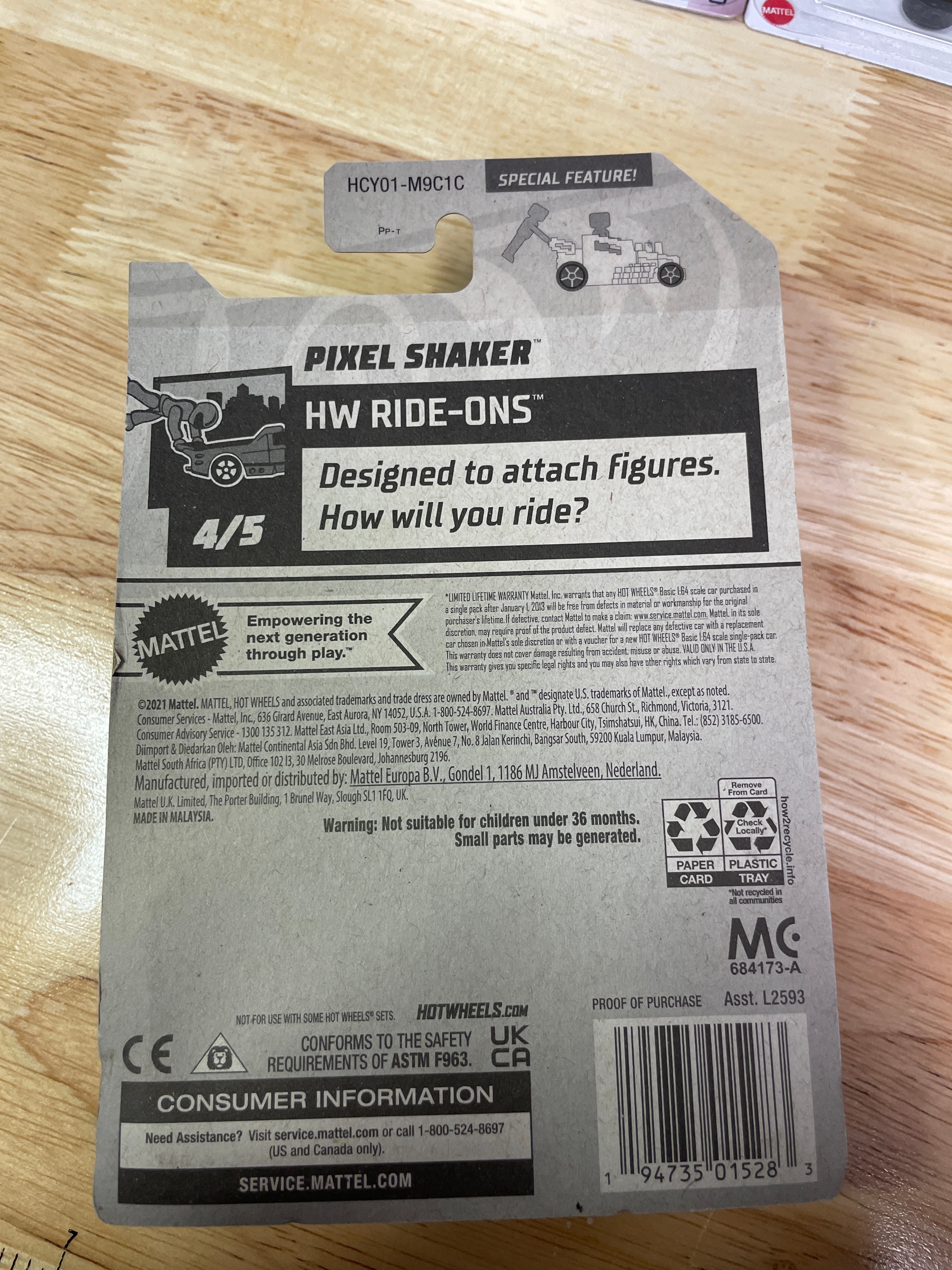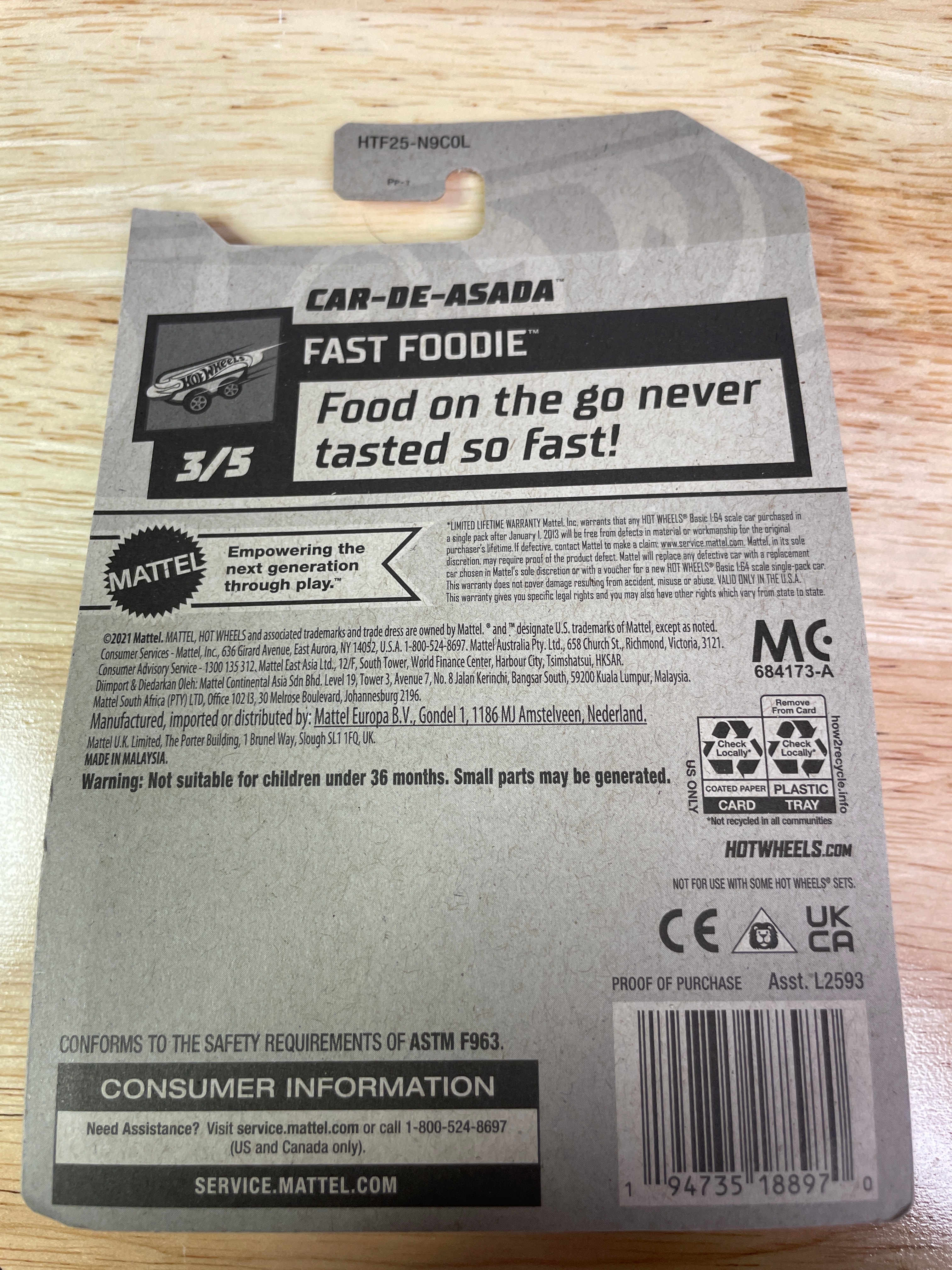 A collection comprising nine modern Hot Wheels die-cast toy vehicles and one Hot Wheels “Super Rigs” truck and trailer set, all produced by Mattel. Each item is presented in its original, factory-sealed blister packaging. The vehicles and set consist of die-cast metal and plastic components. Visible branding includes “Hot Wheels” and “Mattel, ” alongside various series names such as “Mud Studs, ” “Compact Kings, ” “Experimotors, ” “Fast Foodie, ” and “HW Ride-Ons.” Specific model names identified include “Pixel Shaker, ” “Surf Crate, ” “Morris Mini, ” “’95 Jeep Cherokee, ” “’17 Jeep Wrangler, ” “Big Rig Heat, ” “Car-De-Asada, ” and “Gotta Go.” Packaging details include production numbers (e.g., “66/250,” “161/250”) and series position (e.g., “3/5,” “4/5”). Additional text on the packaging notes “Guaranteed For Life, ” “Special Feature, ” and “Car Included!” on the Super Rigs set, with one card also stating “Available on Netflix.” Manufacturing locations are indicated as “Made in Malaysia” or “Made in Thailand” for the Super Rigs set. All items carry a “3+” age rating and a warning regarding small parts.