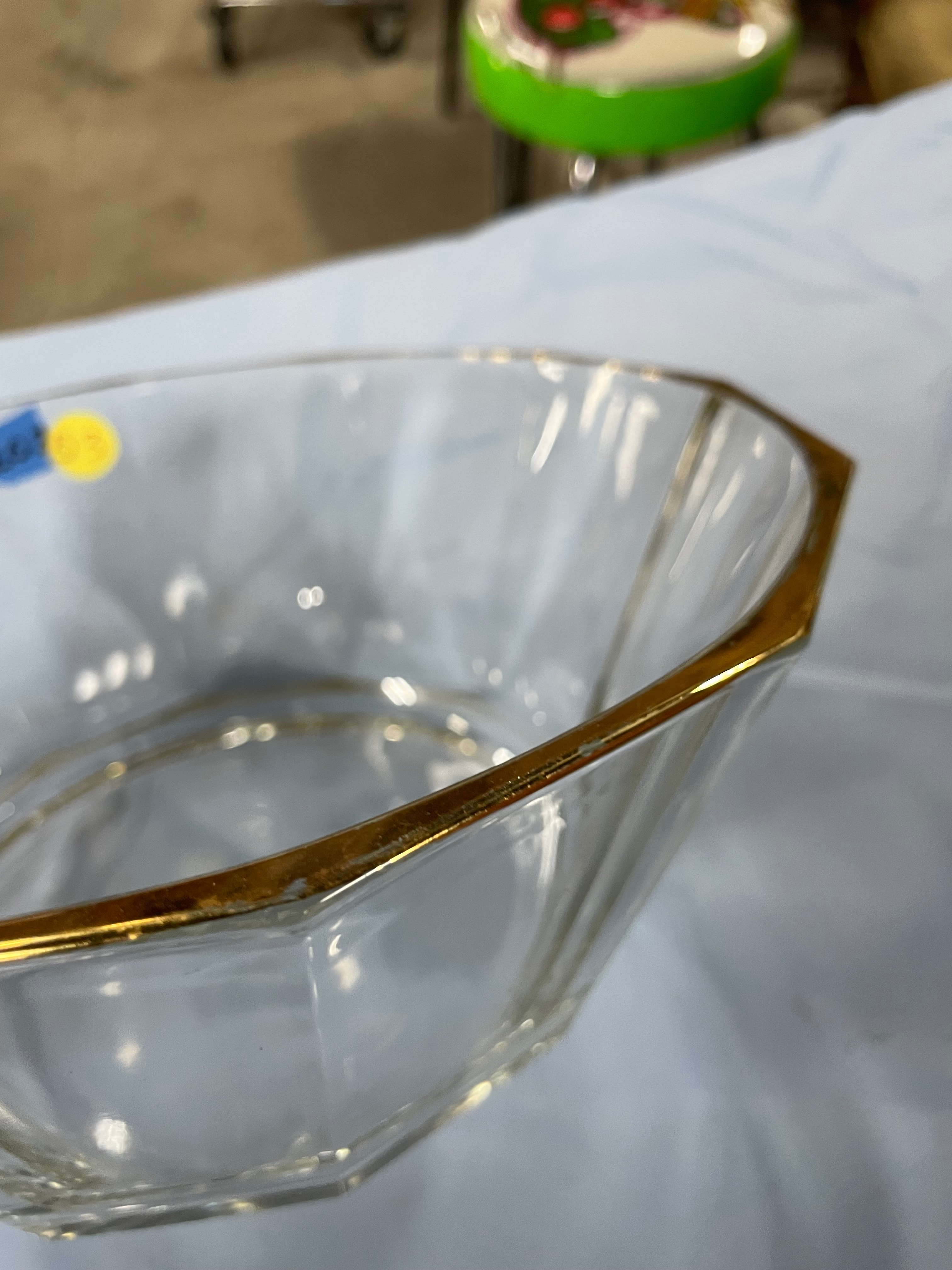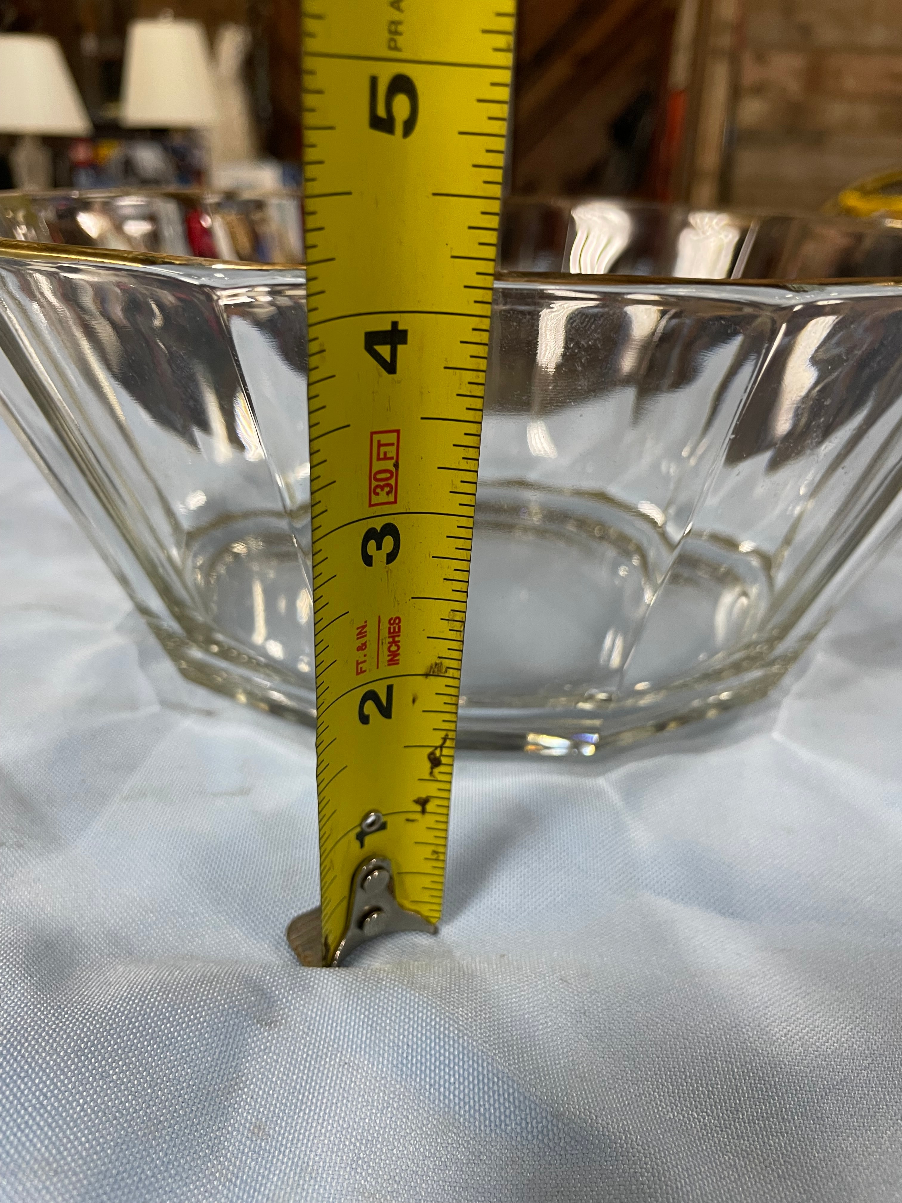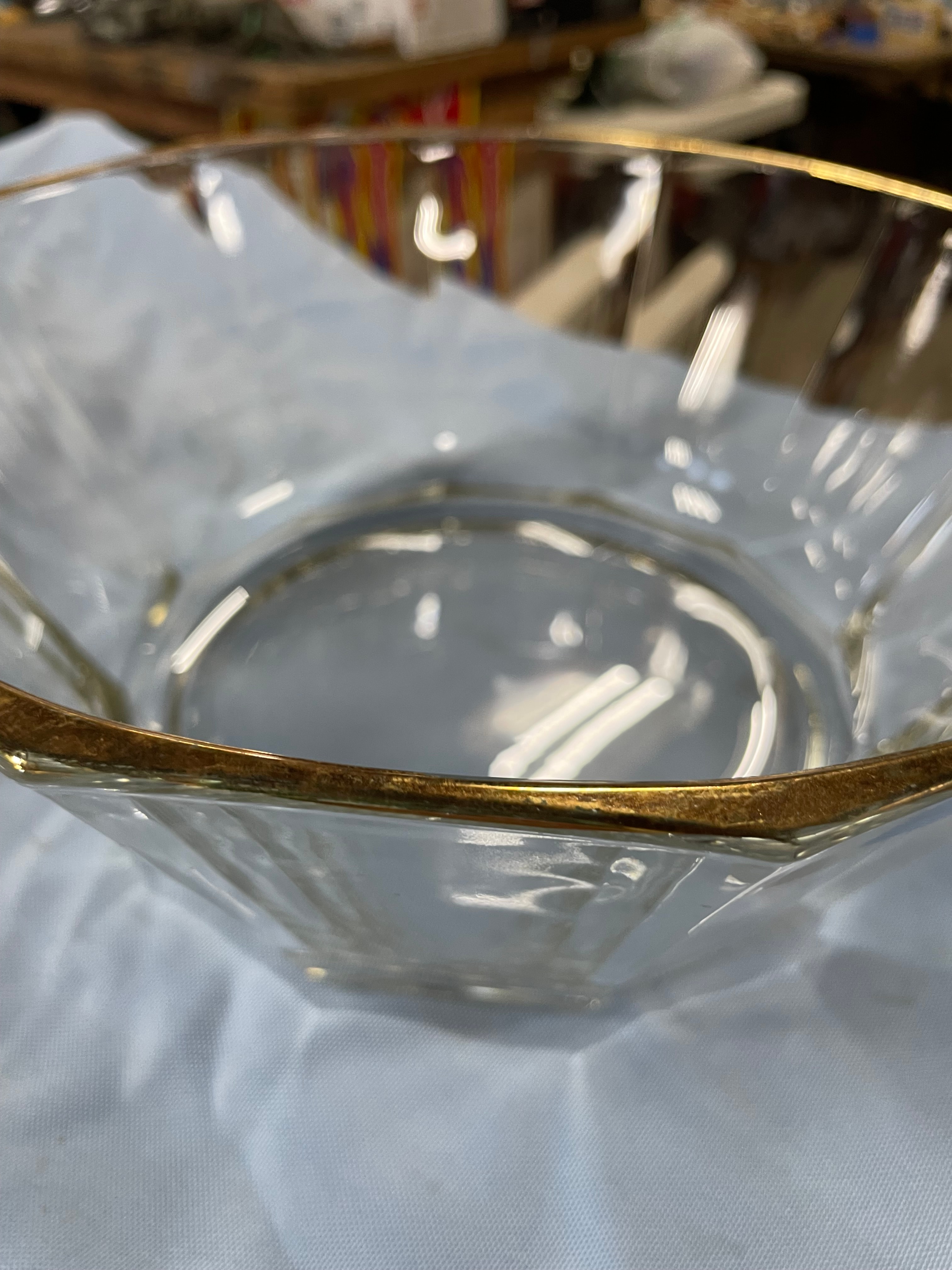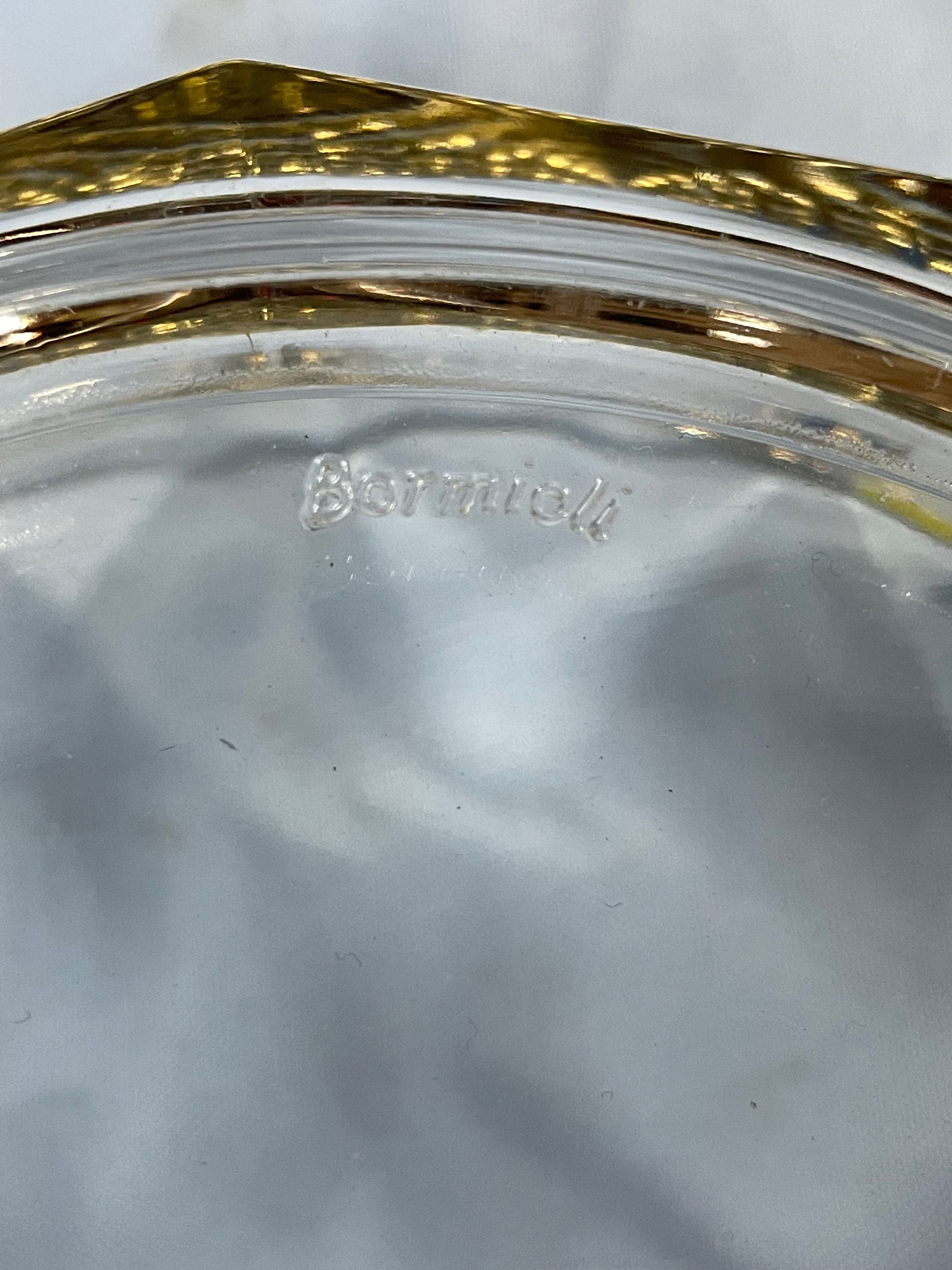 Bormioli Italian Faceted Glass Serving Bowl with Gold Rim