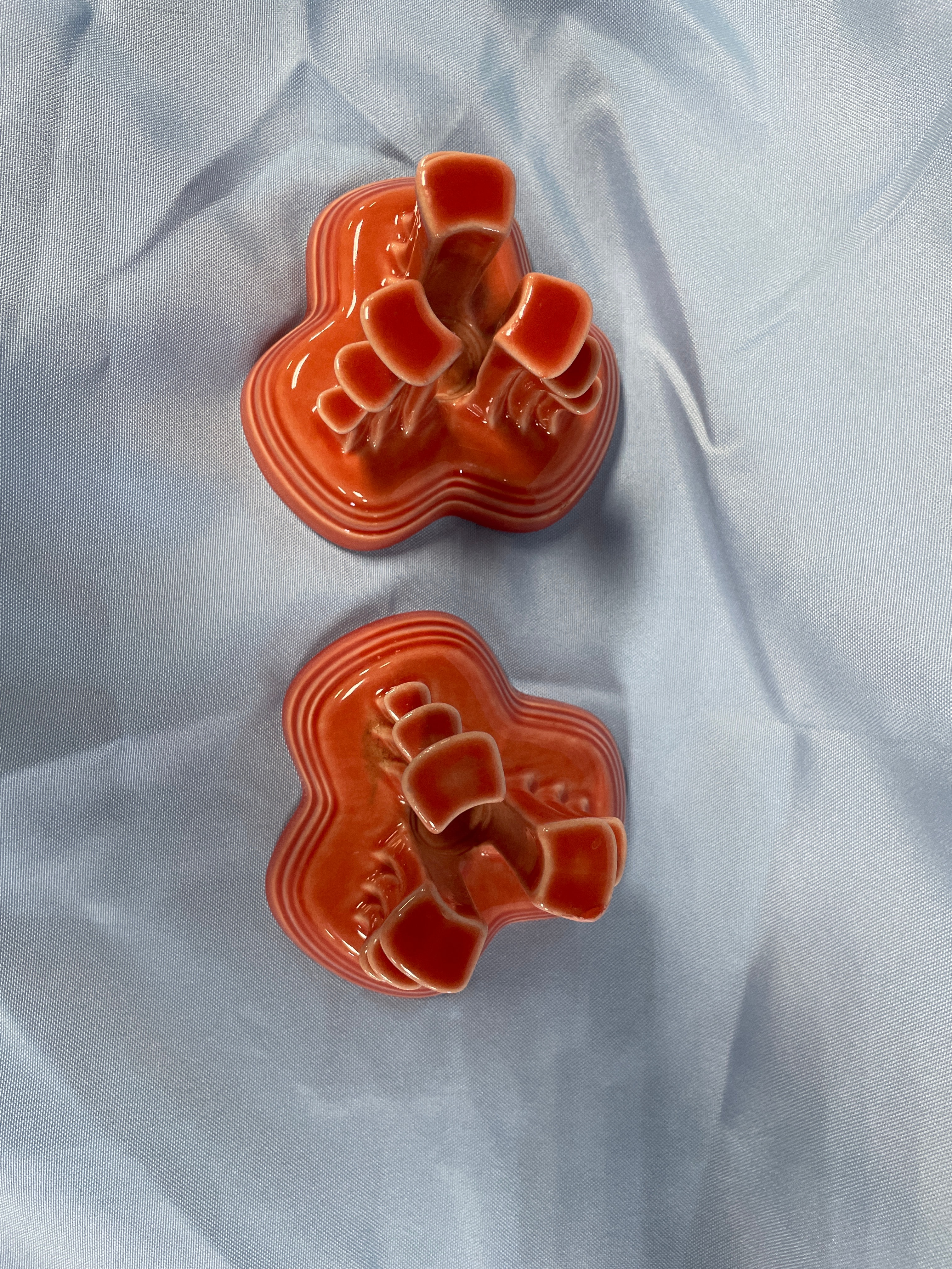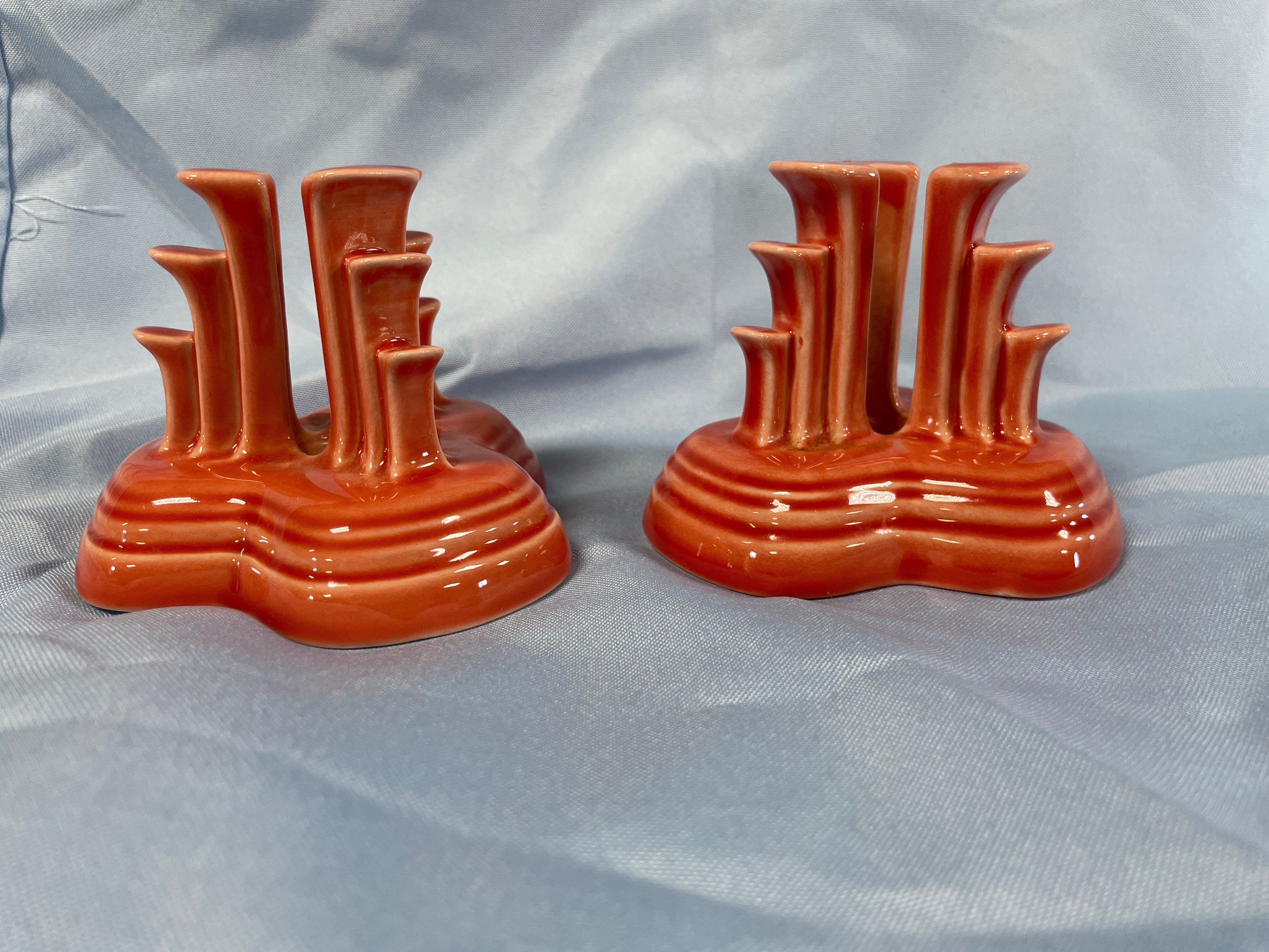 Pair of Fiesta Persimmon Pyramid Tripod Candle Holders