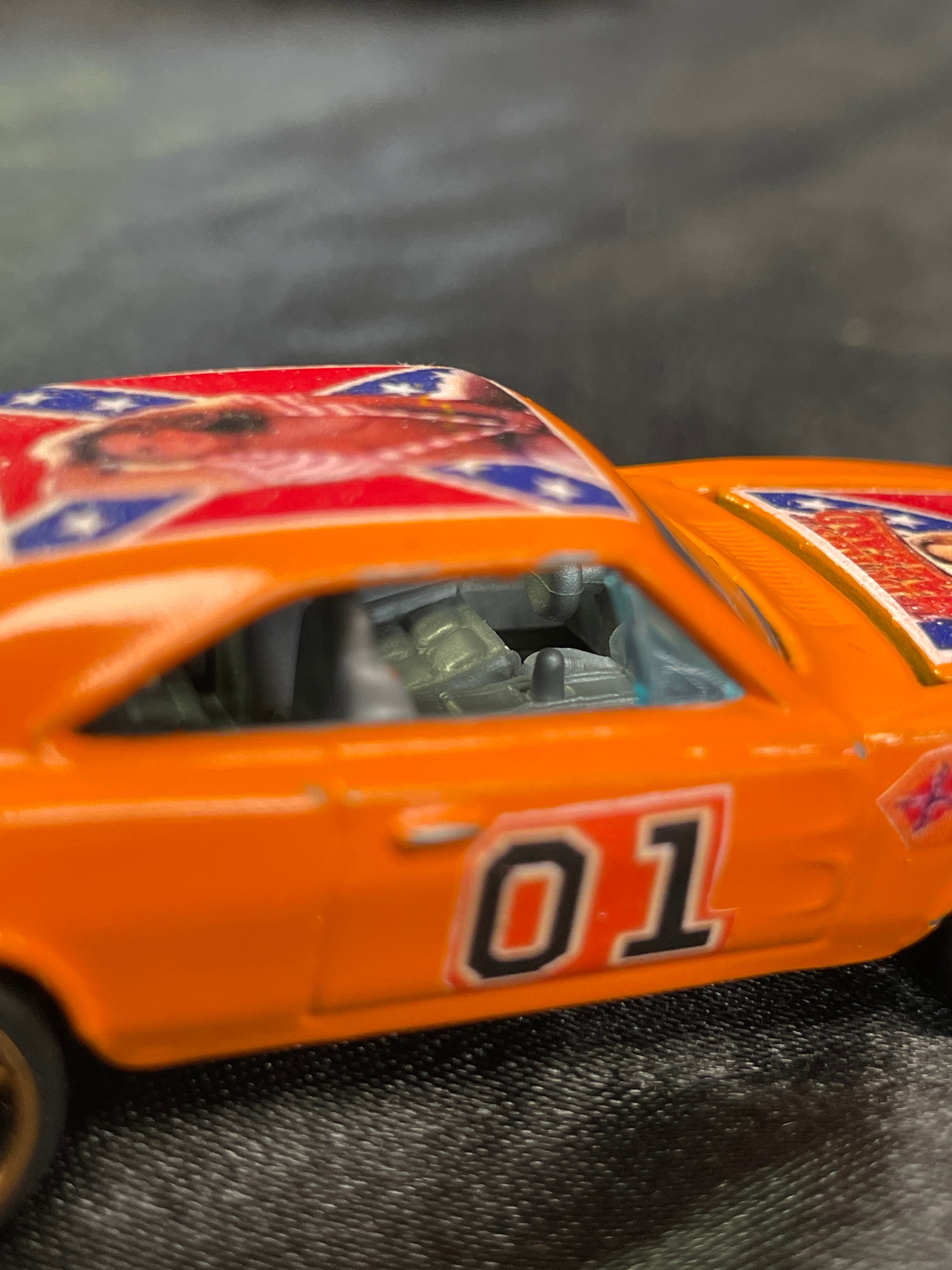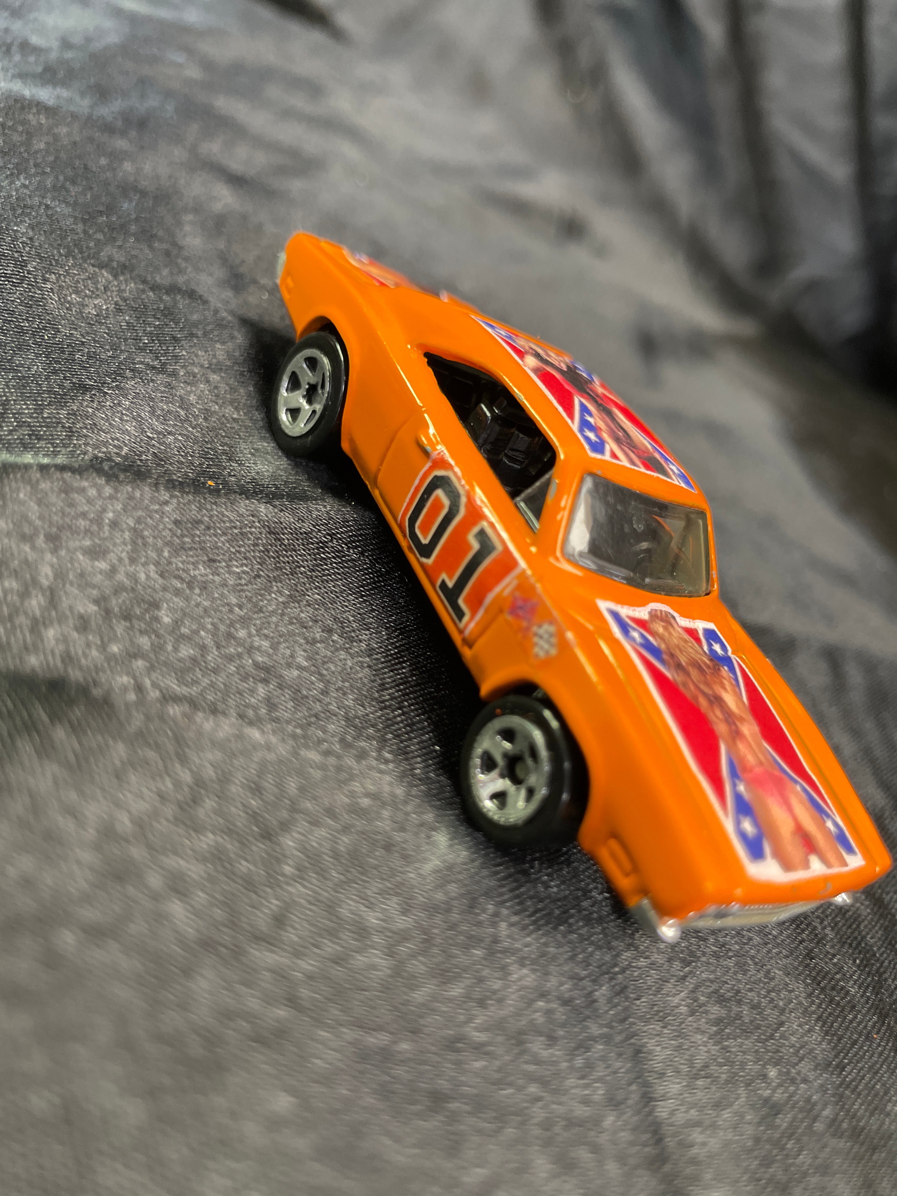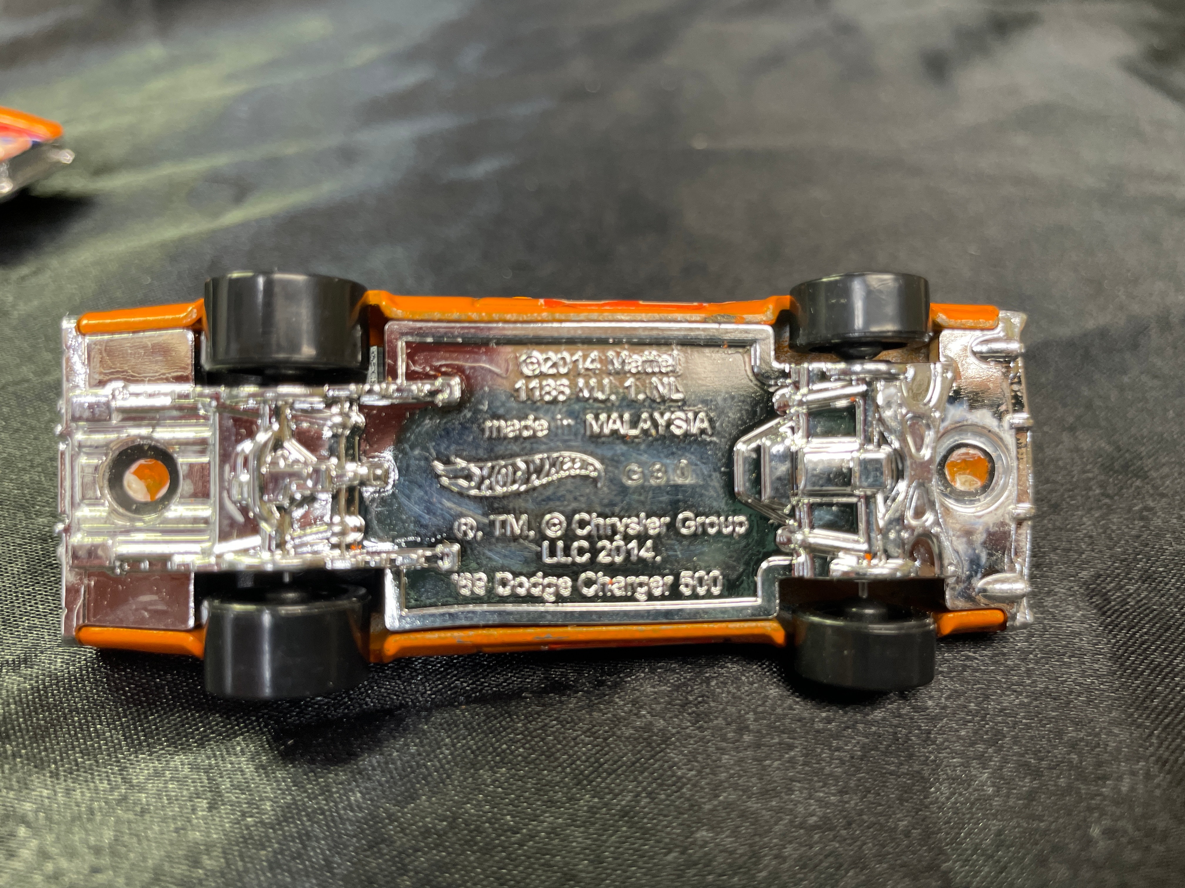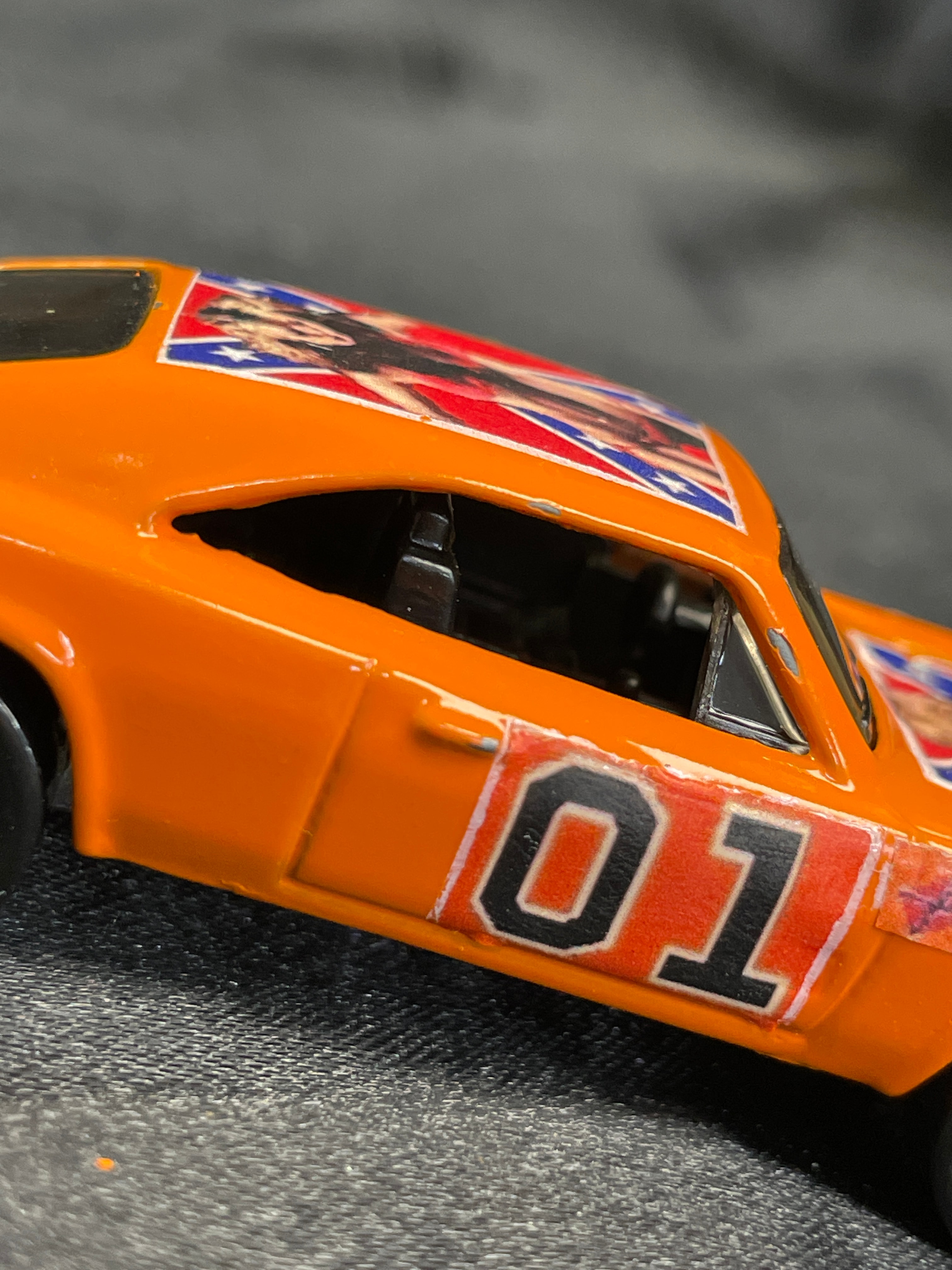 A Pair of Mattel Hot Wheels '69 Dodge Charger 500 "Dukes of Hazzard General Lee" Die-Cast Cars, 2004 and 2014, with Custom Decals perhaps paint too Dunno if these we made this way or someone made them