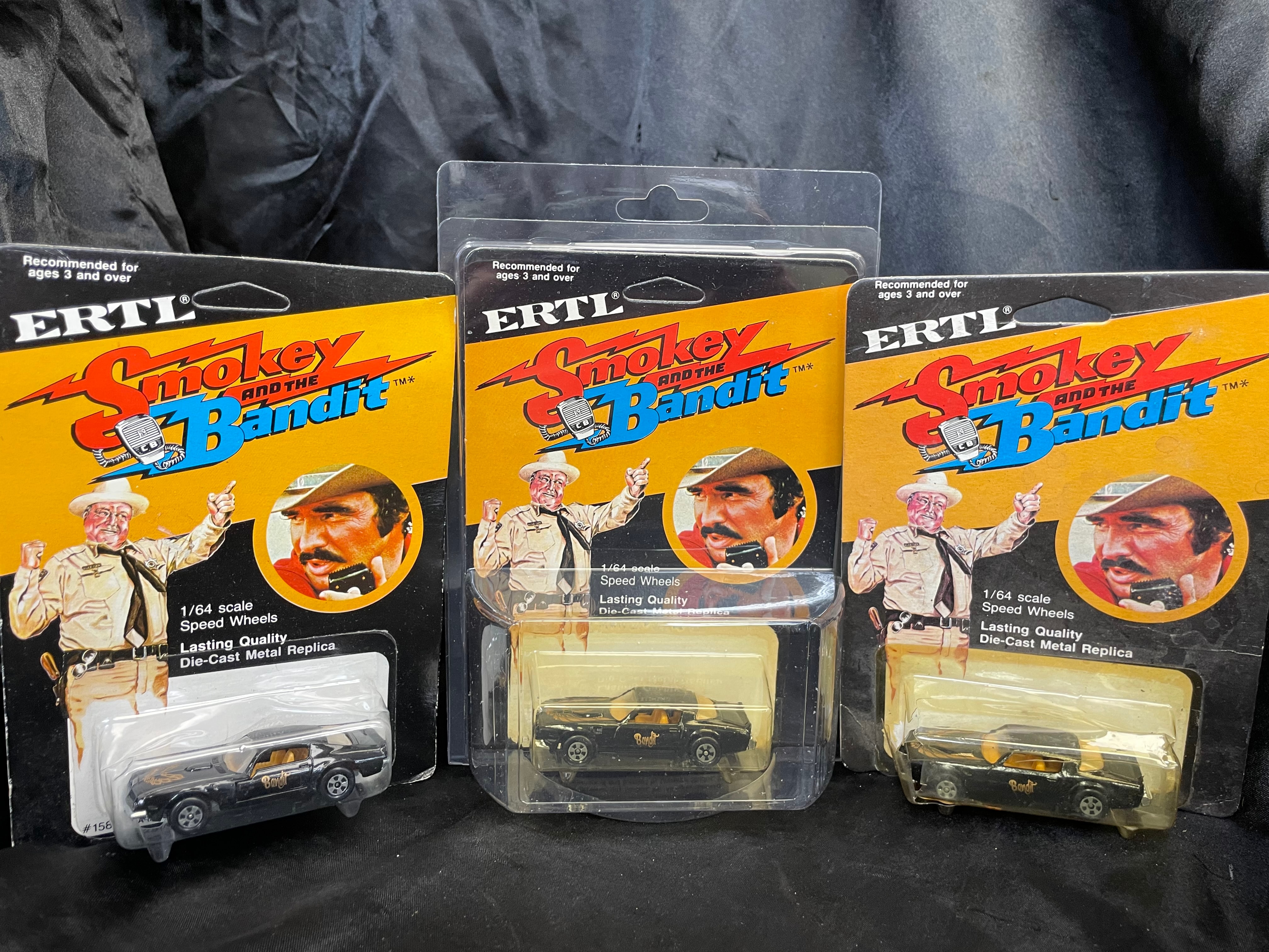 Three ERTL Smokey and the Bandit Pontiac Trans Am 1/64 Scale Die-Cast Replicas