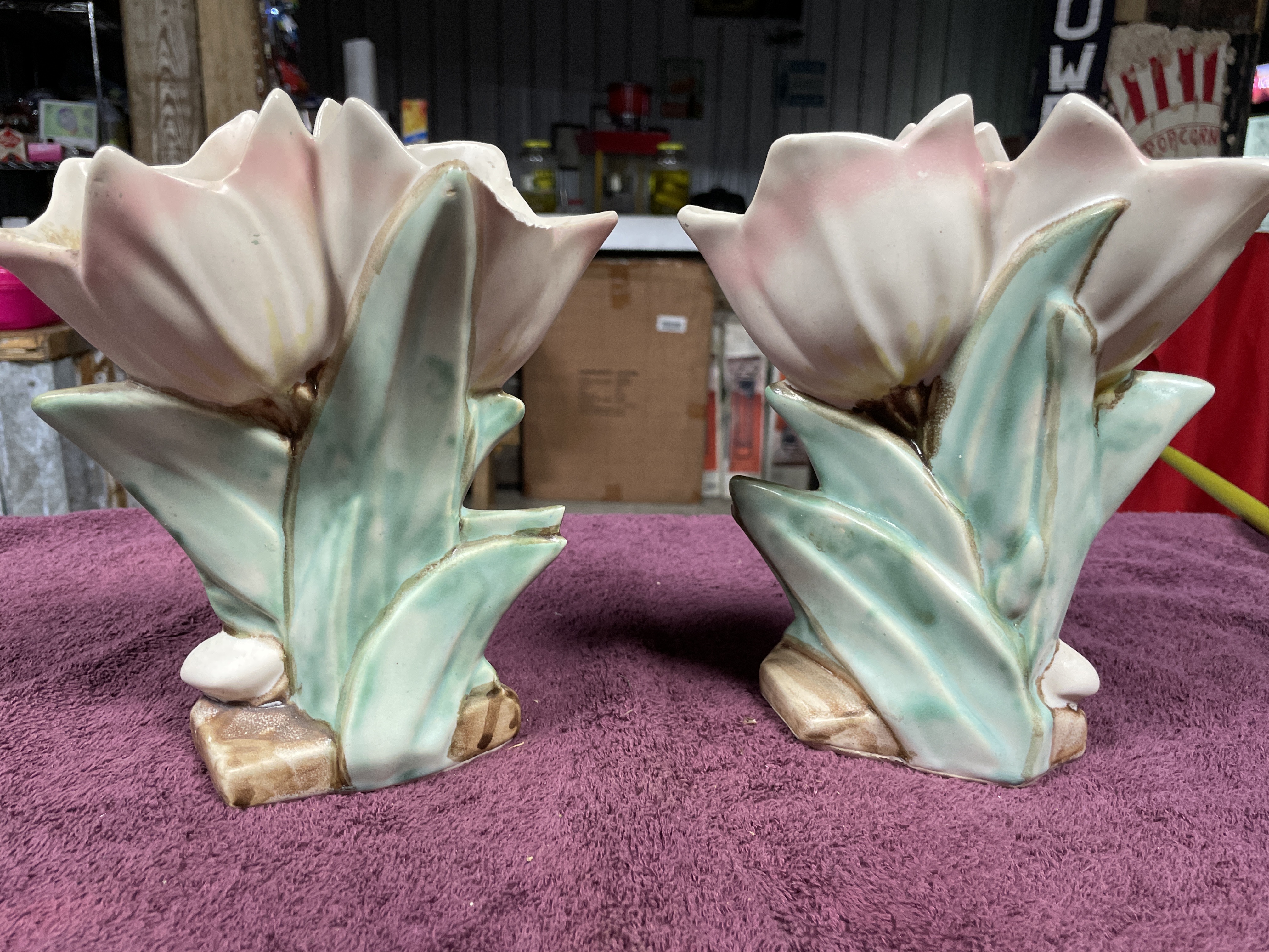 MCCOY A Pair of Mid-Century Glazed Ceramic Floral Vases