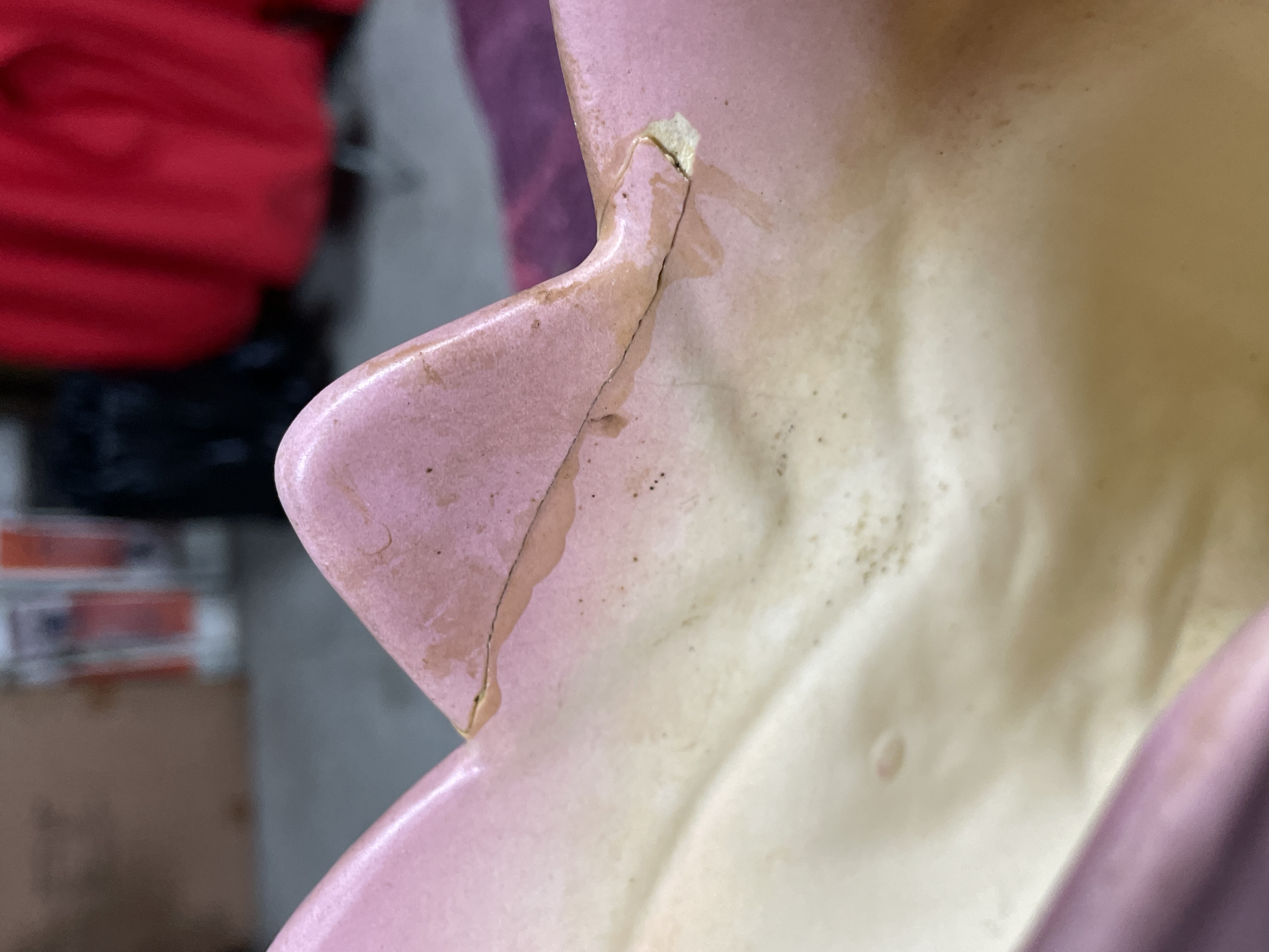 A single handled ceramic art pottery vase by Hull, executed in the Wildflower pattern. The vase features a pedestal base and a fluted rim resembling a tulip or magnolia blossom. The body is decorated with high-relief floral motifs, glazed in blended pastel matte finishes including pink, pale yellow/cream, and light blue on the base. The base is marked with incised text reading Hull Art above U.S.A. 7-8½.