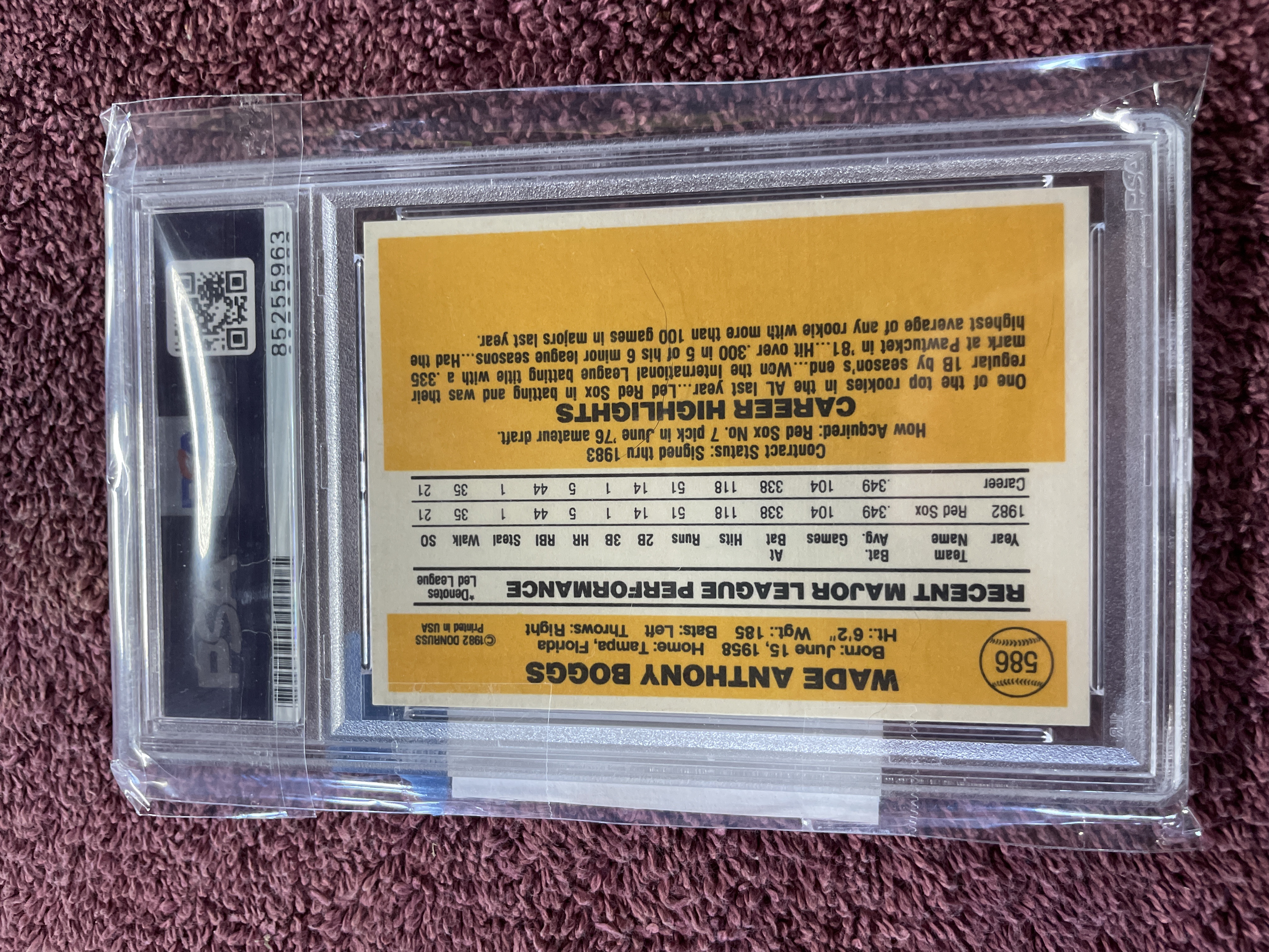 1983 Donruss Wade Boggs Rookie Card #586 Autographed PSA Certified
