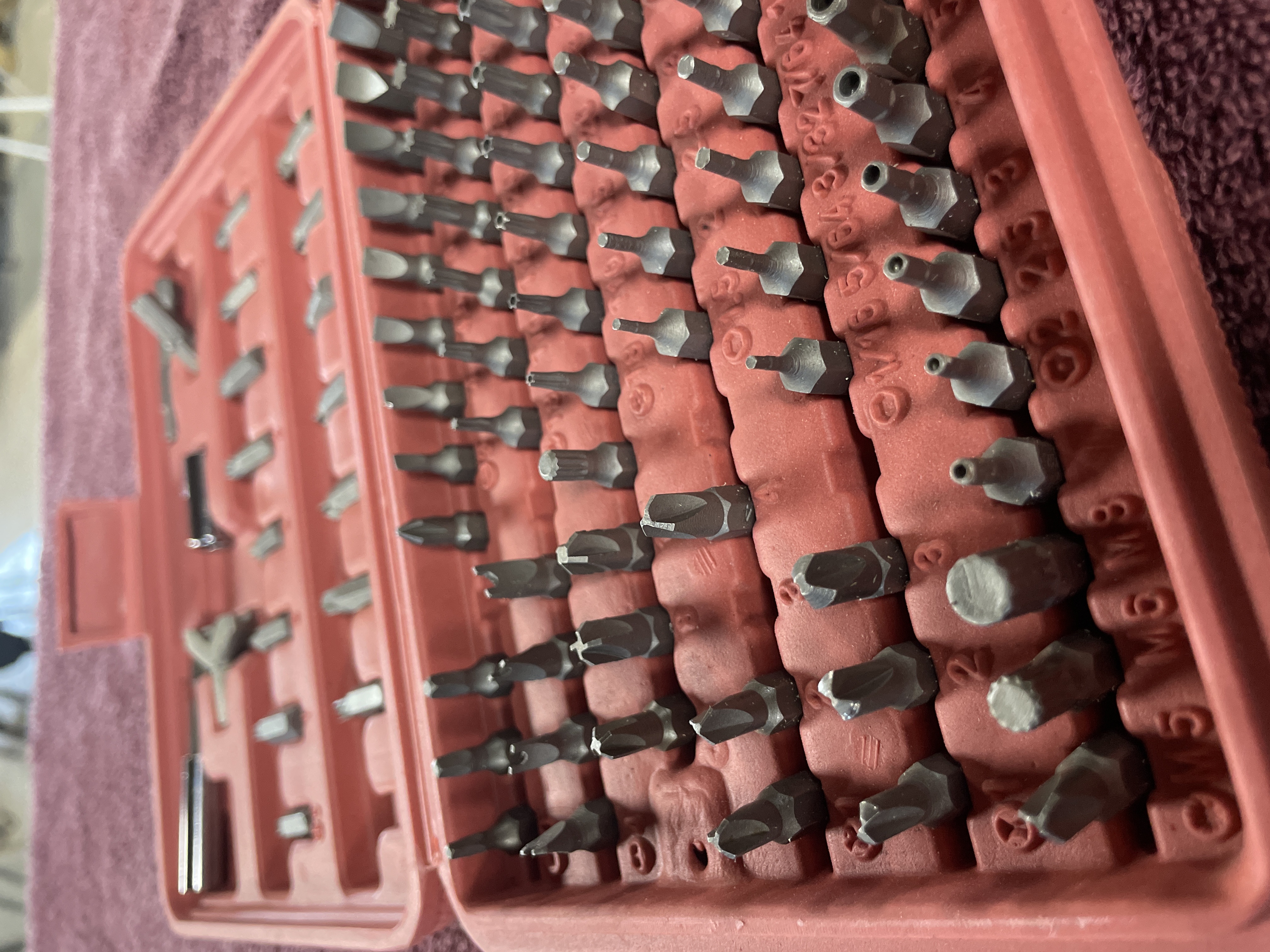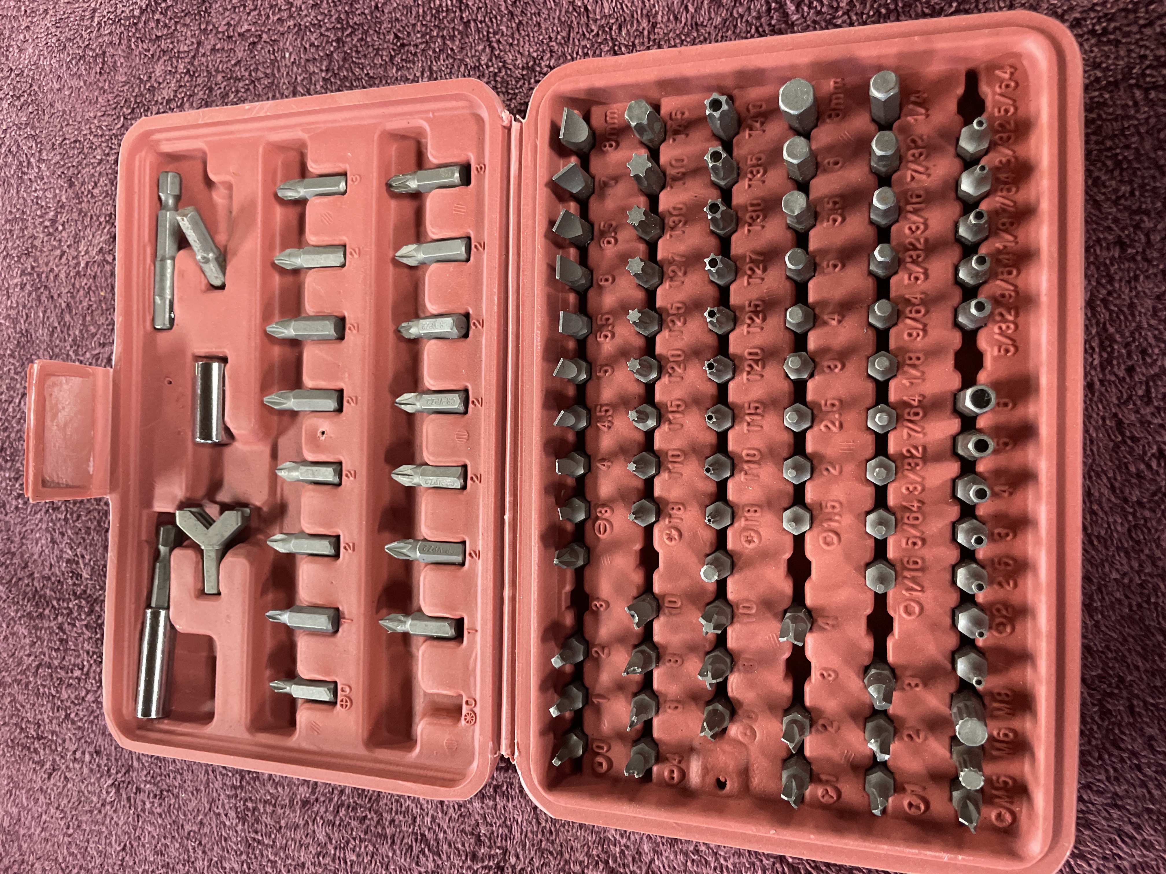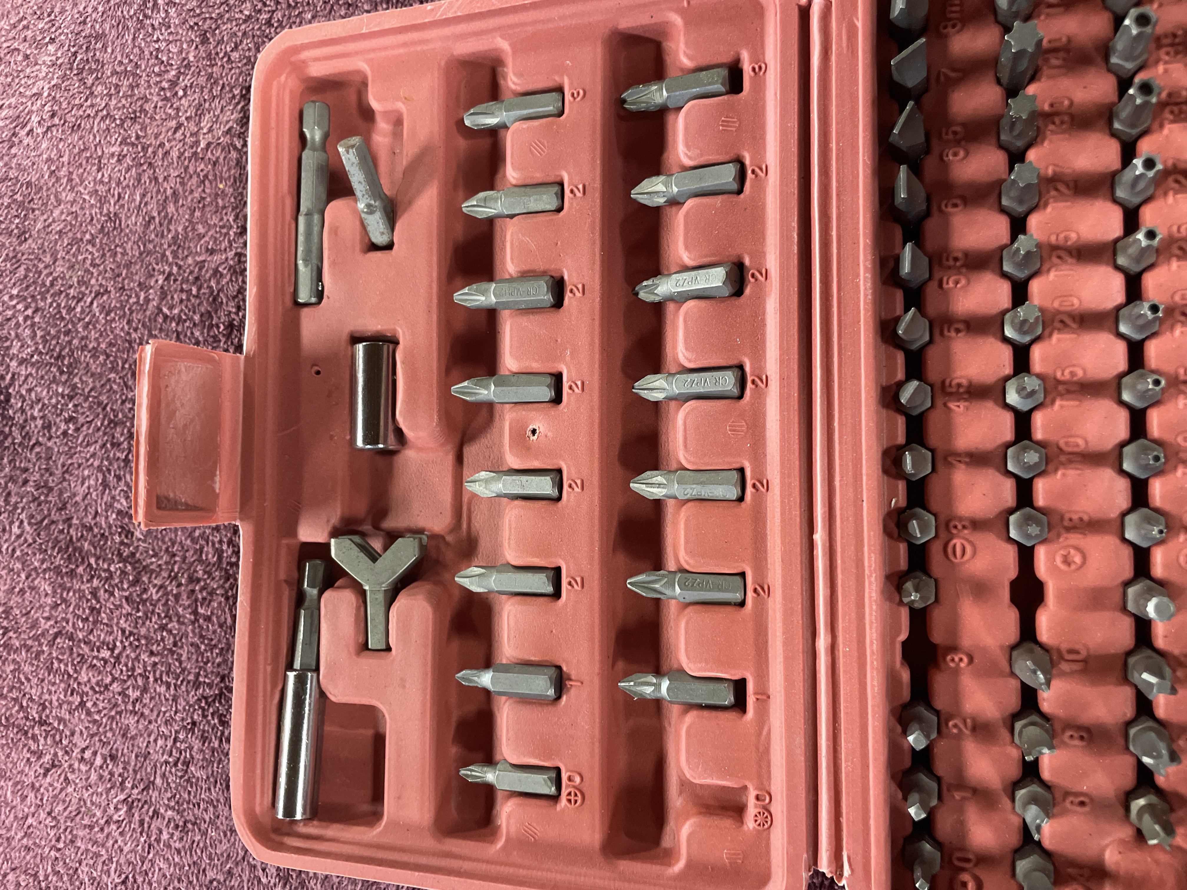 A Collection of 70 Assorted Security and Driver Bits in Red Plastic Case