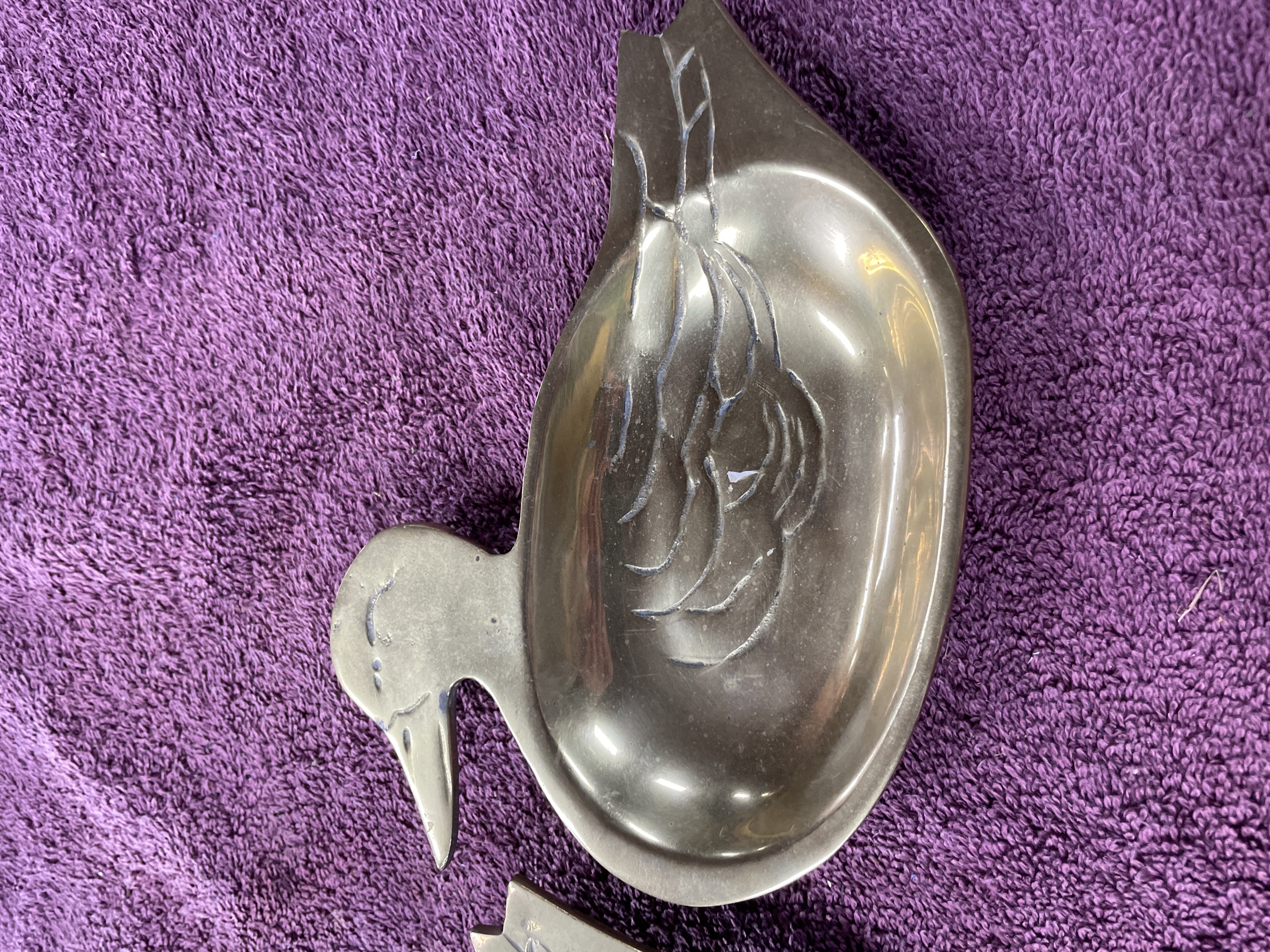 A Pair of Vintage Brass Duck Vide Poche Trinket Dishes