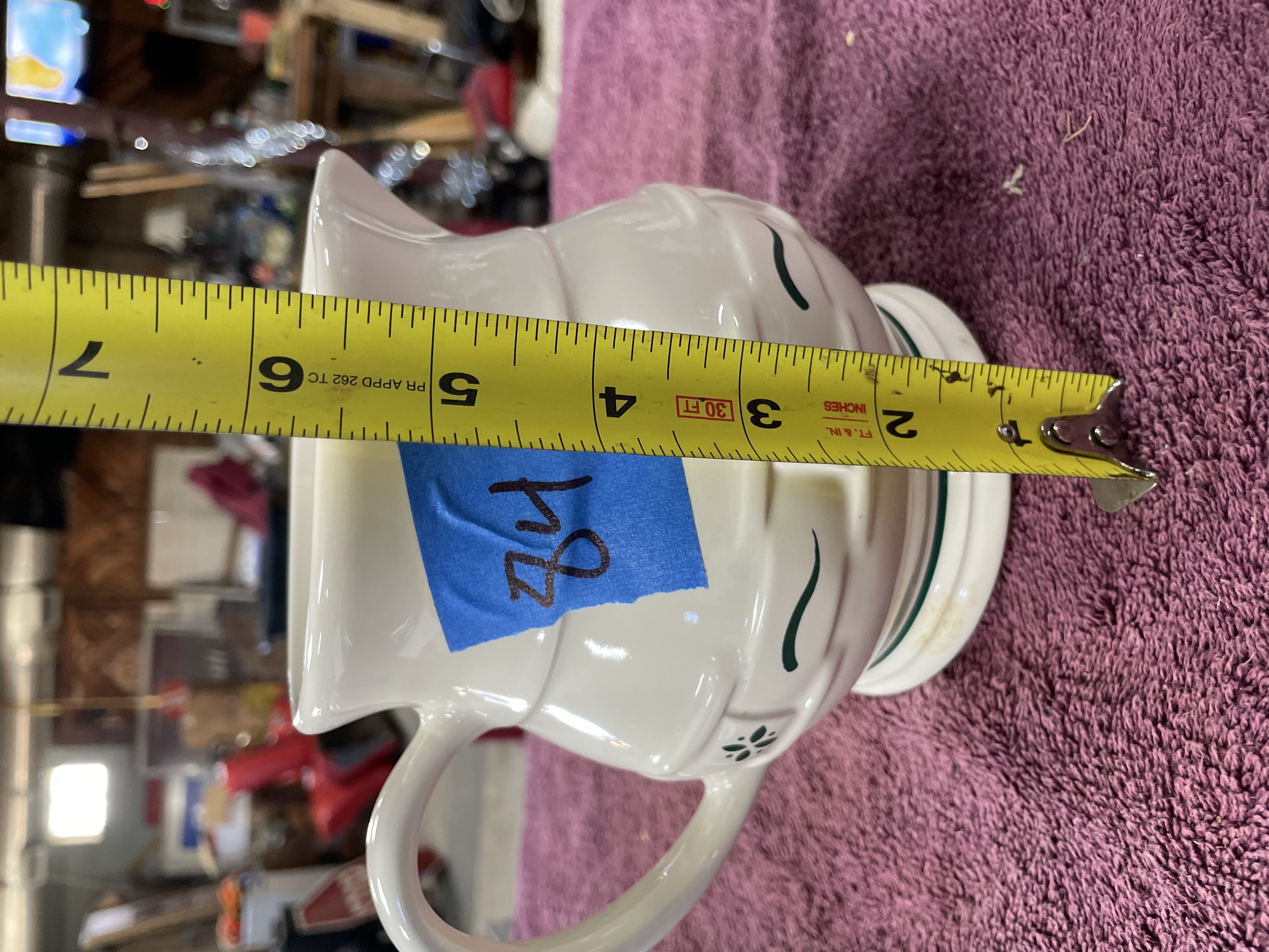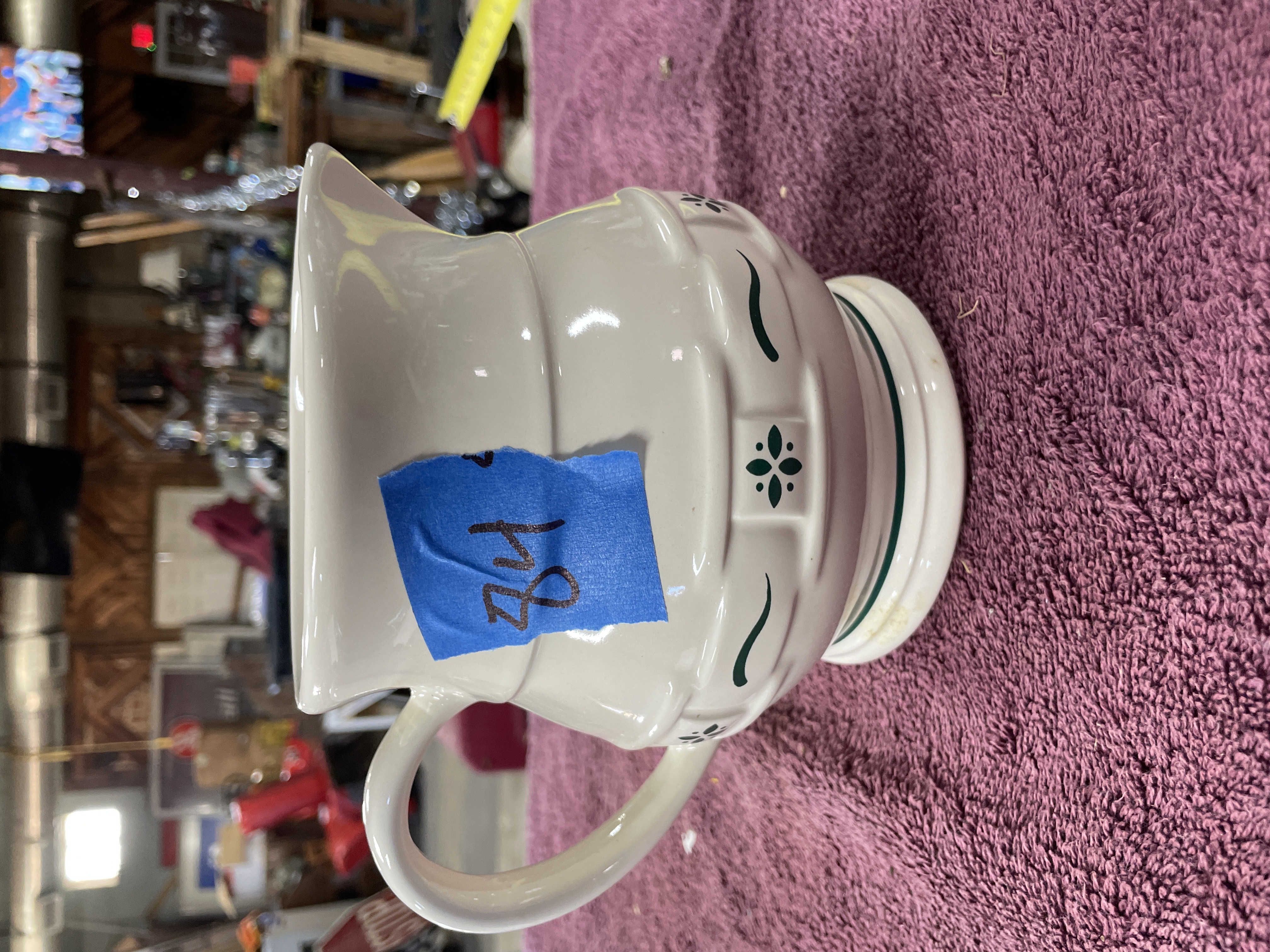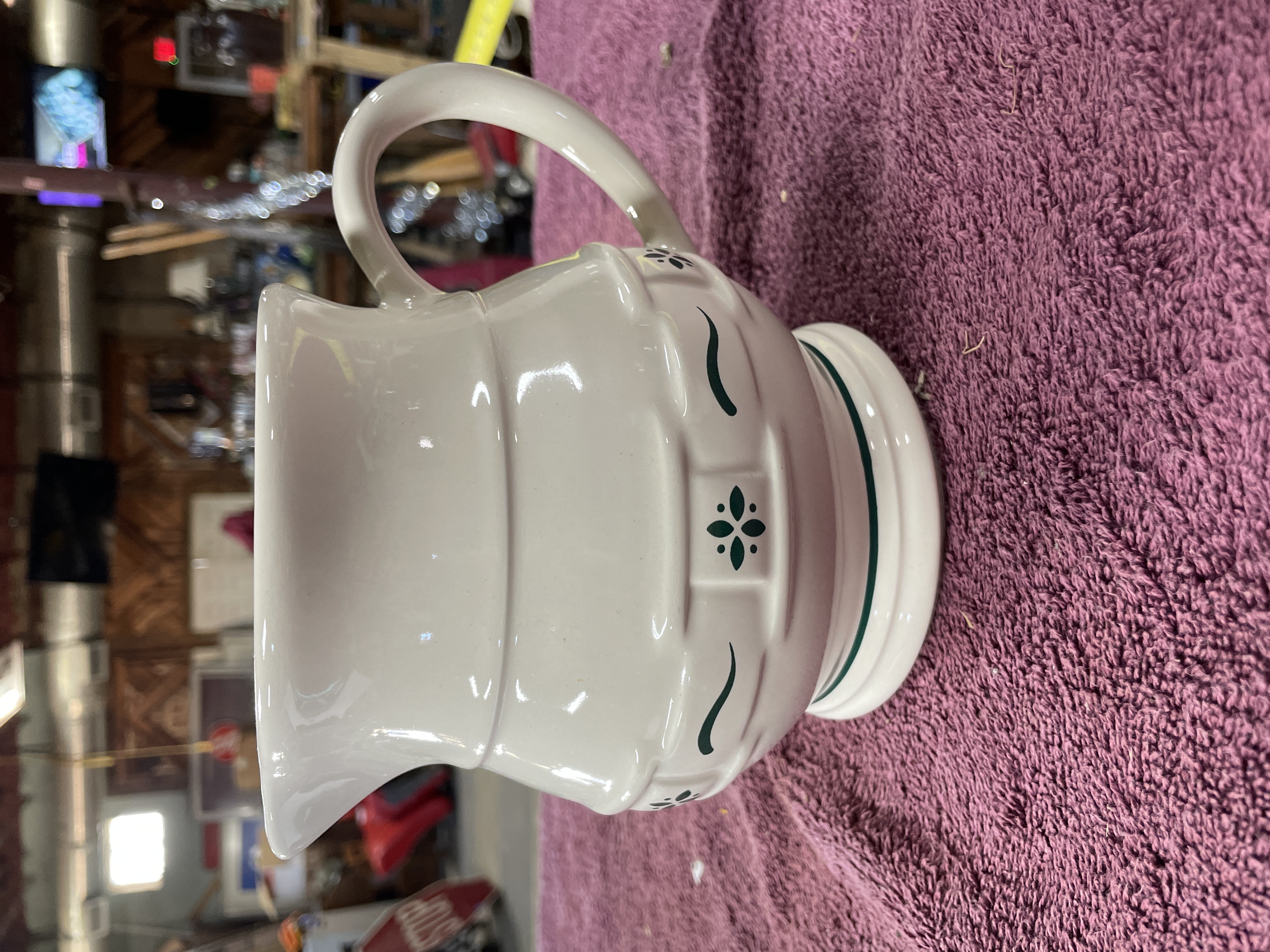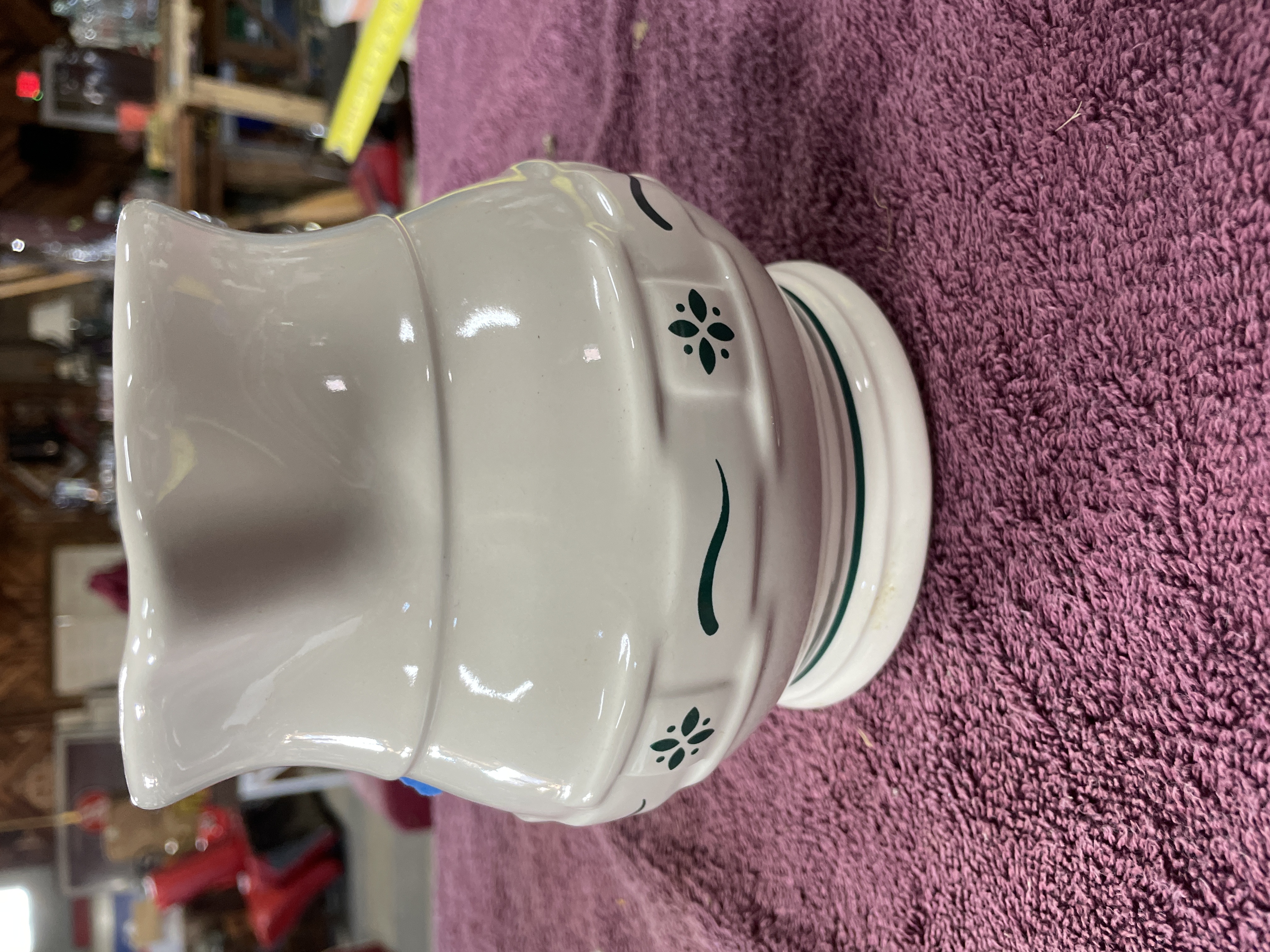 Longaberger Pottery Woven Traditions Green Ceramic Pitcher