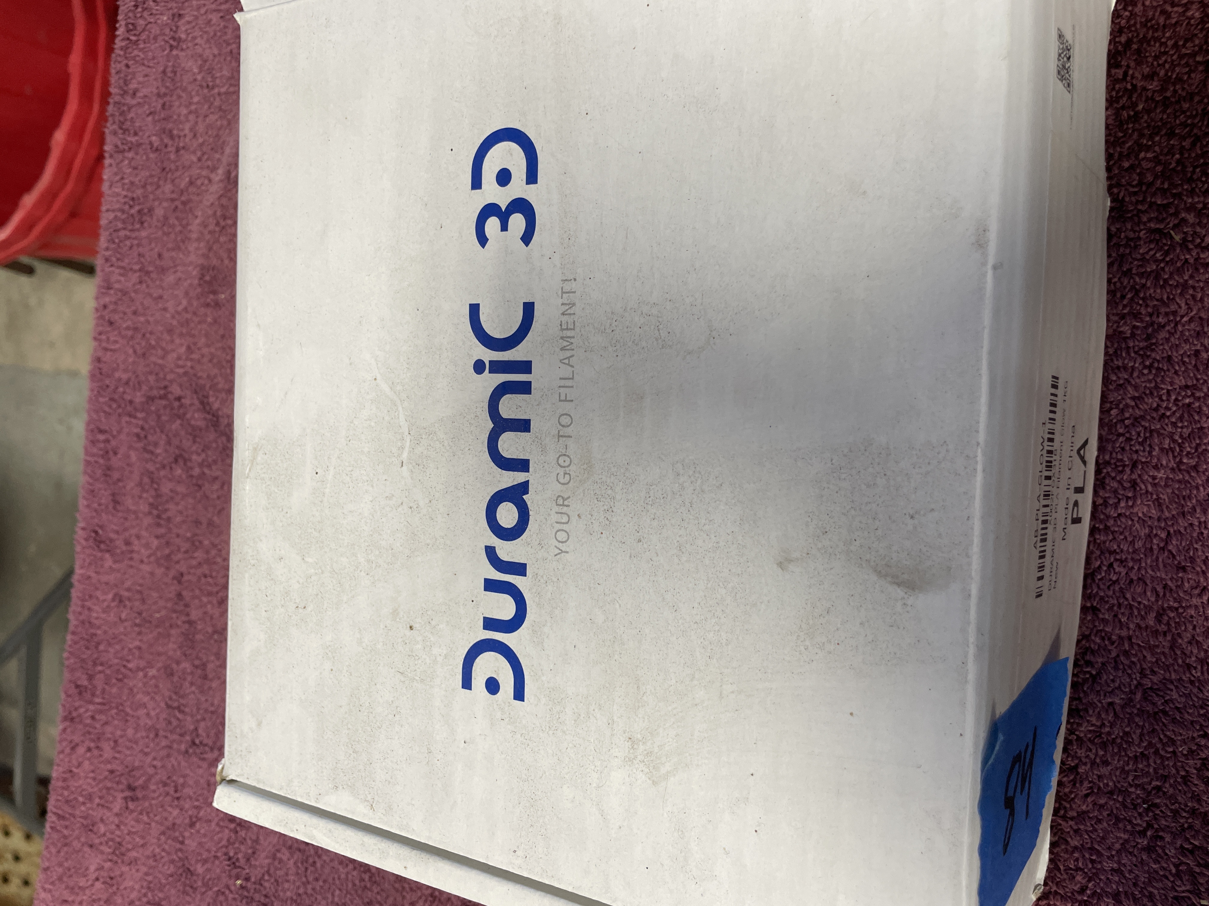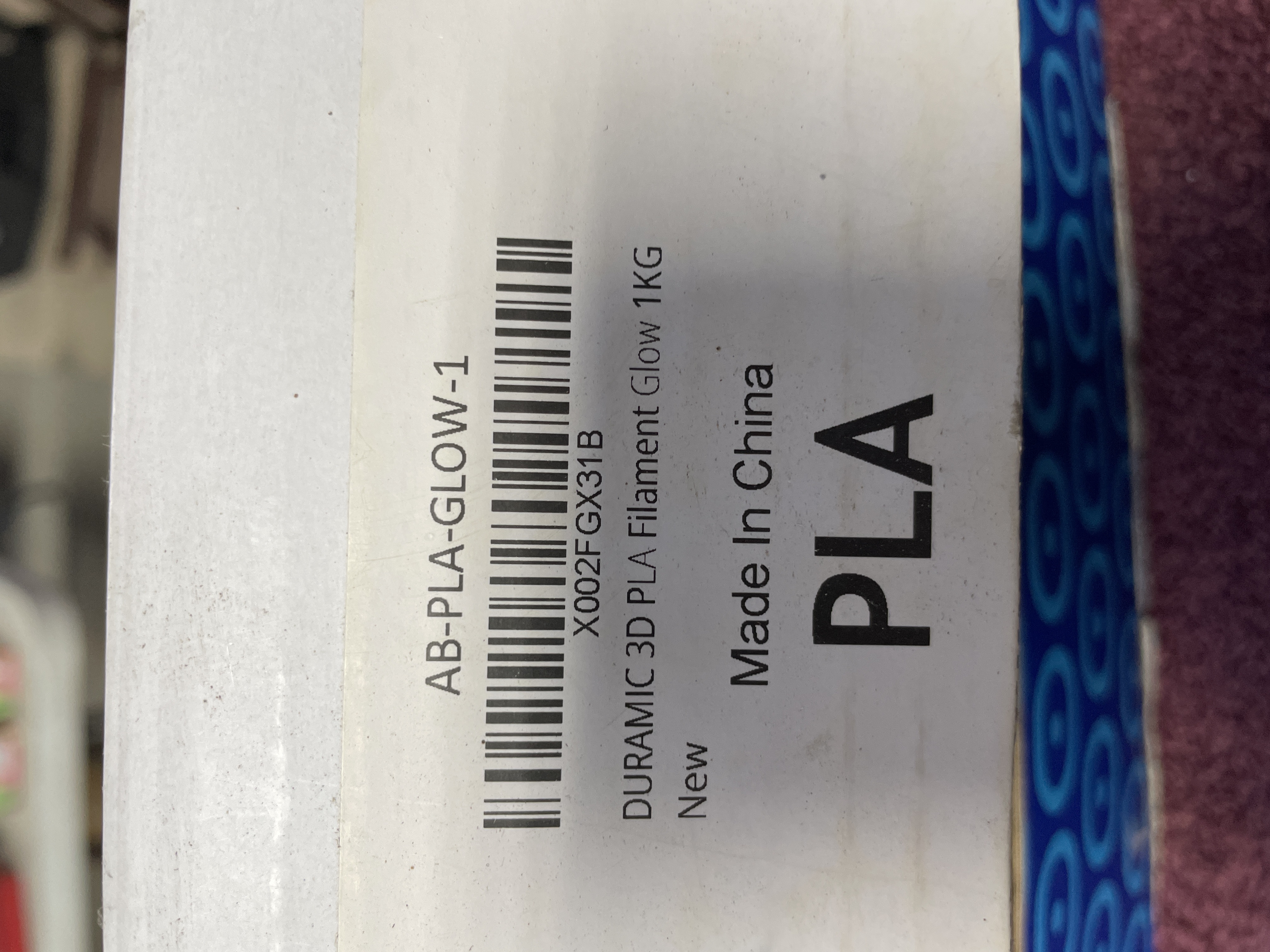 A single factory-sealed spool of Duramic 3D PLA 3D printer filament. The filament is translucent white/cream and is identified by the label AB-PLA-GLOW-1 as a Glow-in-the-Dark type. The material is wound onto a cardboard spool and remains sealed in its original clear plastic packaging inside the manufacturer’s white cardboard box. Visible markings include the brand name Duramic 3D, the motto "YOUR GO-TO FILAMENT!, " the material type "PLA, " and the country of origin "Made In China."