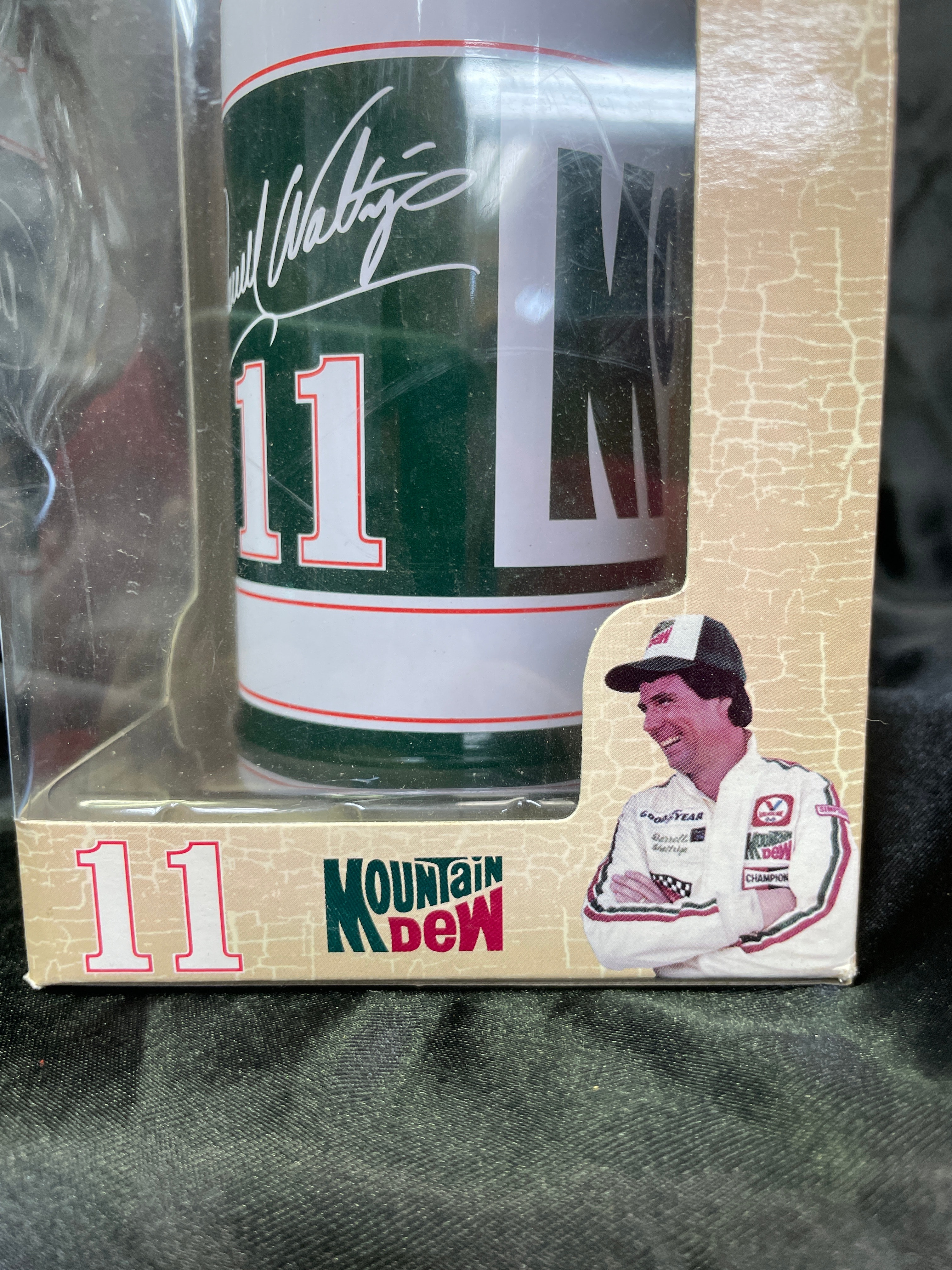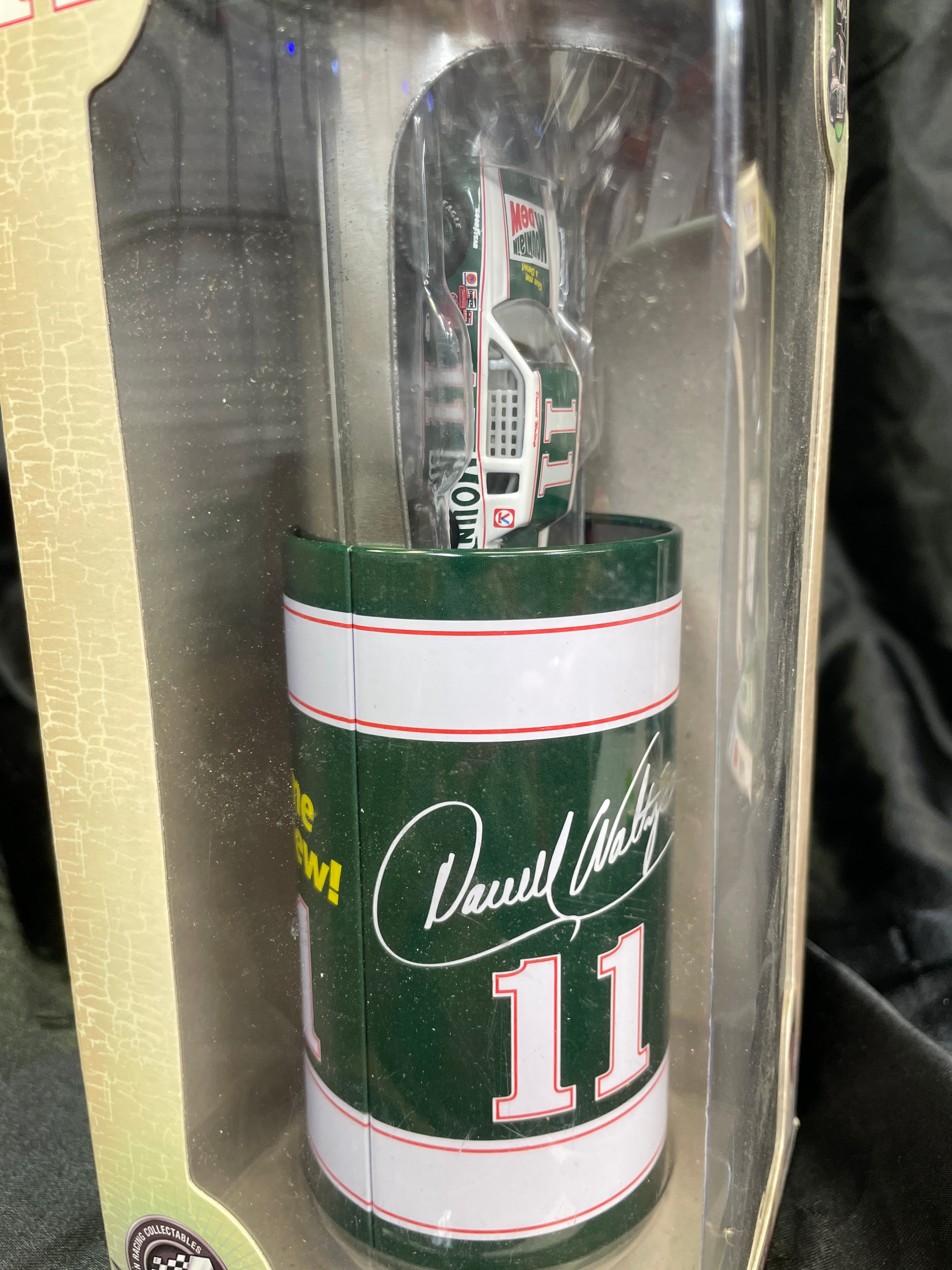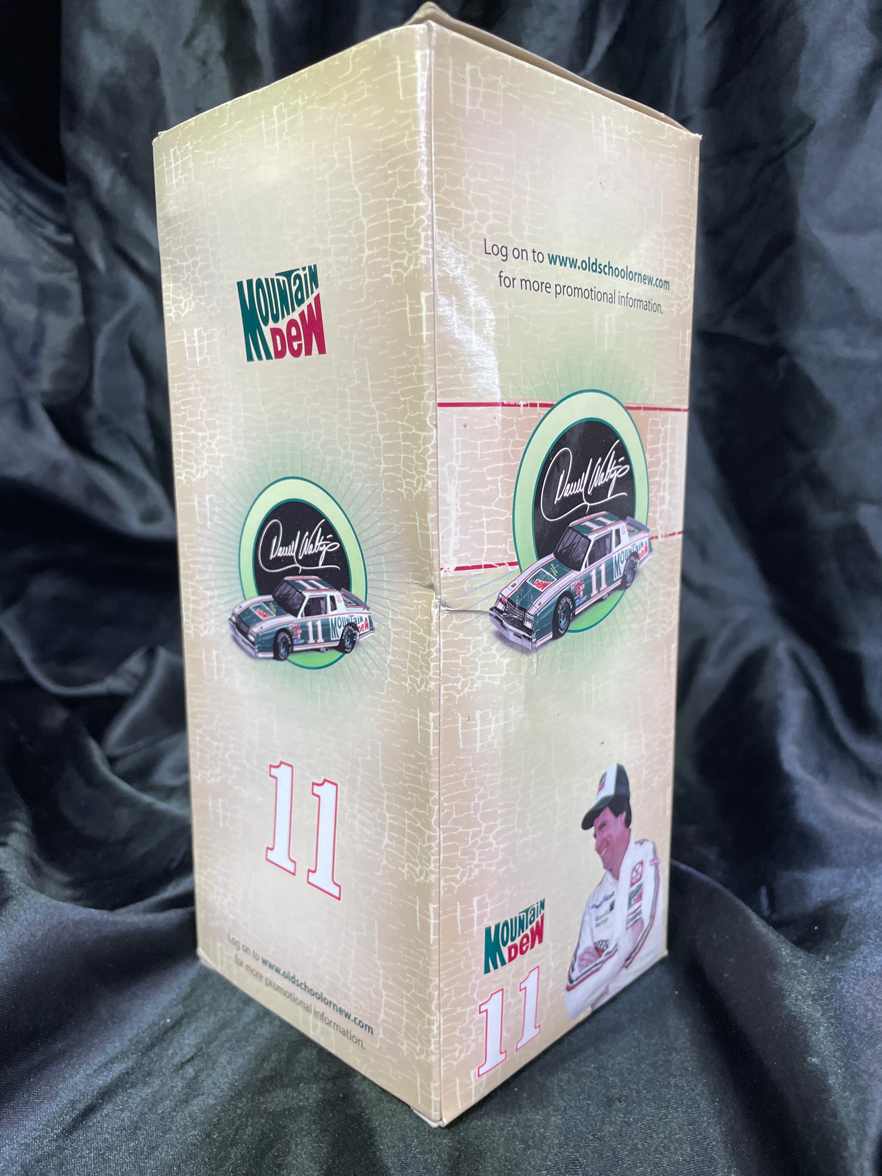 A 1:64-scale die-cast stock car collectible featuring Darrell Waltrip’s number 11 Mountain Dew sponsored vehicle. The item is presented in its original, sealed cardboard and clear plastic window box, which identifies it as a “Limited Edition Collectable” and bears a 2003 copyright, stating “MADE IN CHINA.” Key visible markings include the “NASCAR” logo, “Darrell Waltrip” signature, “11,” and “MOUNTAIN DEW” branding, alongside a barcode and a photograph of the driver.