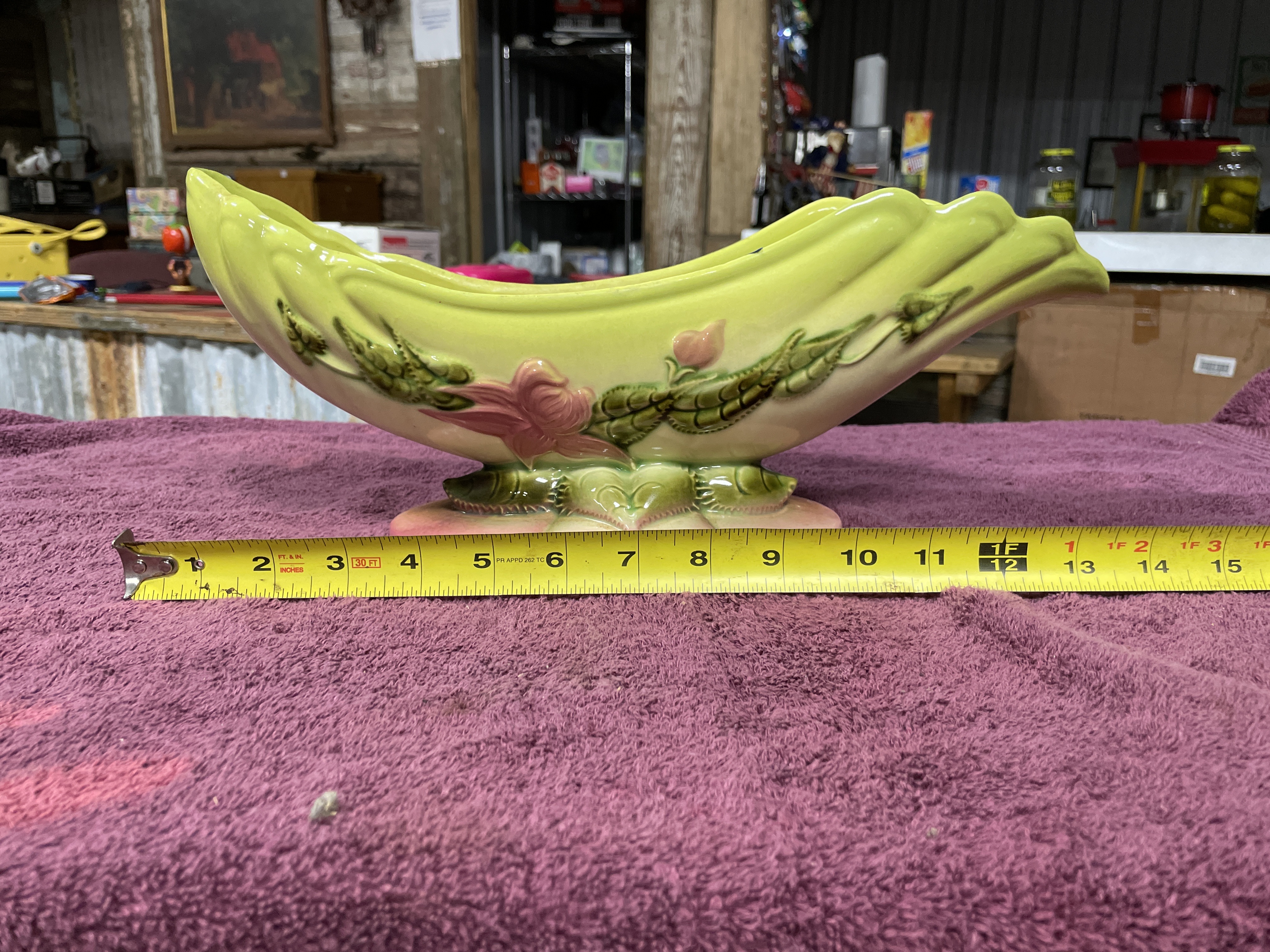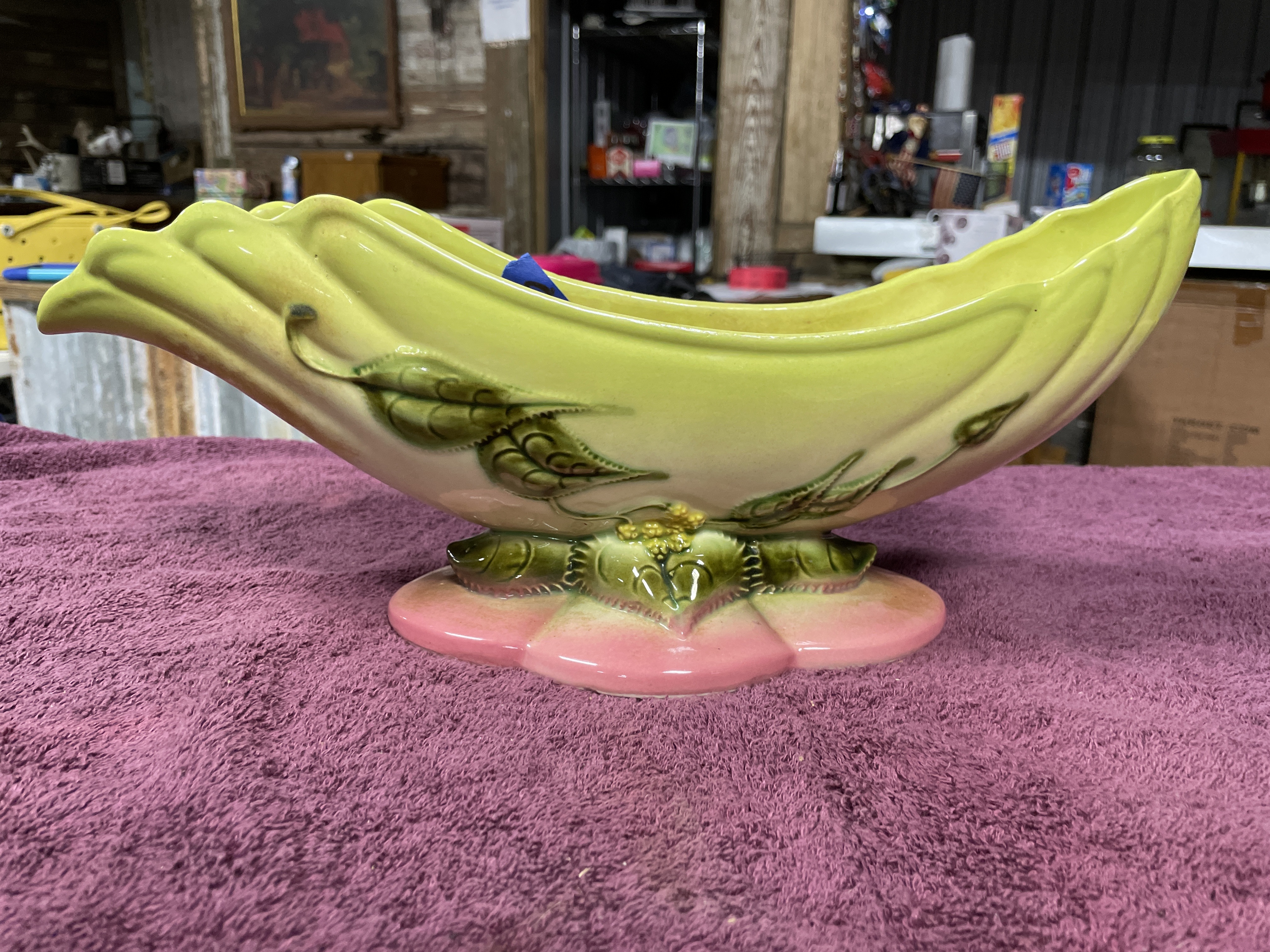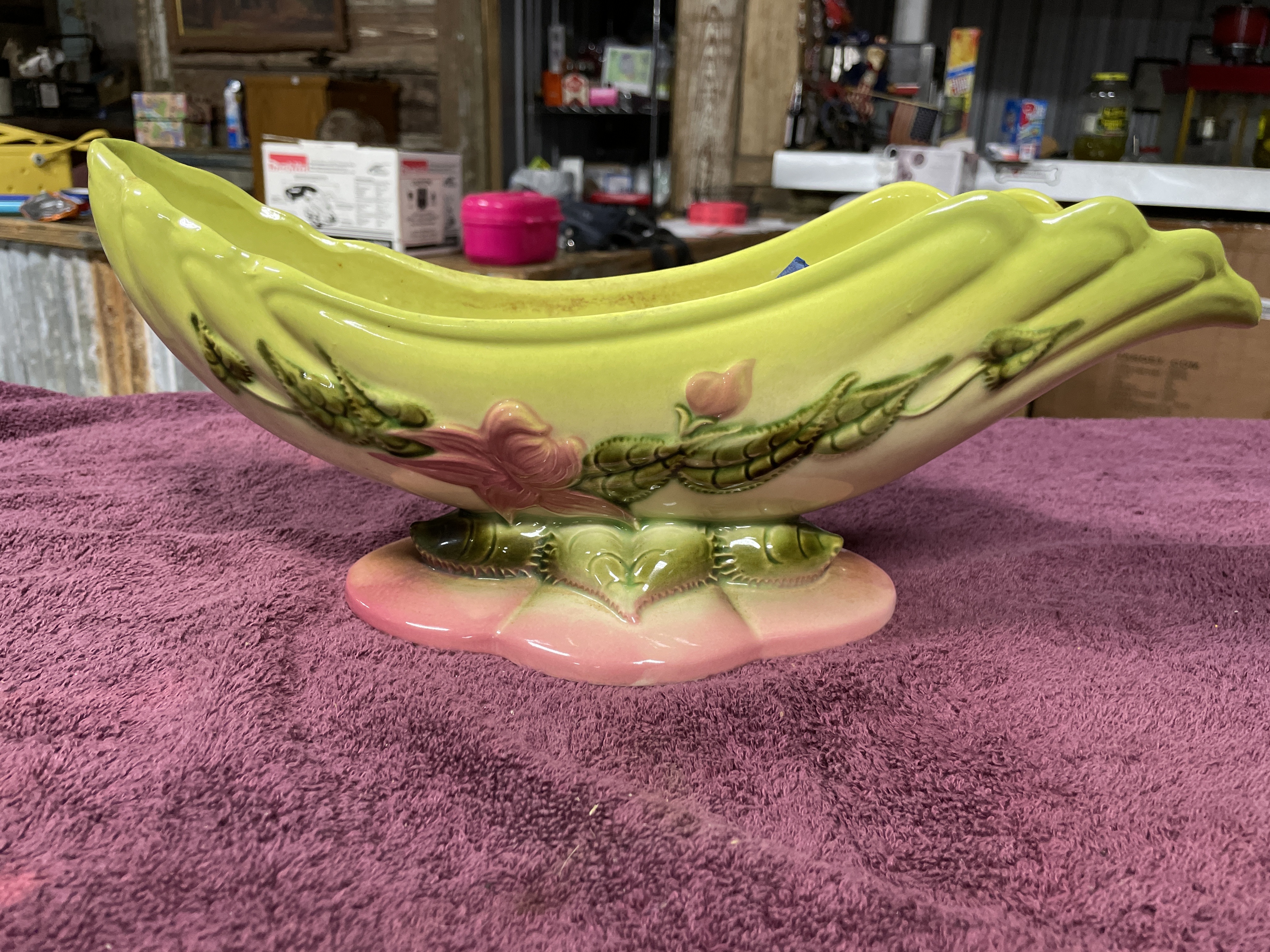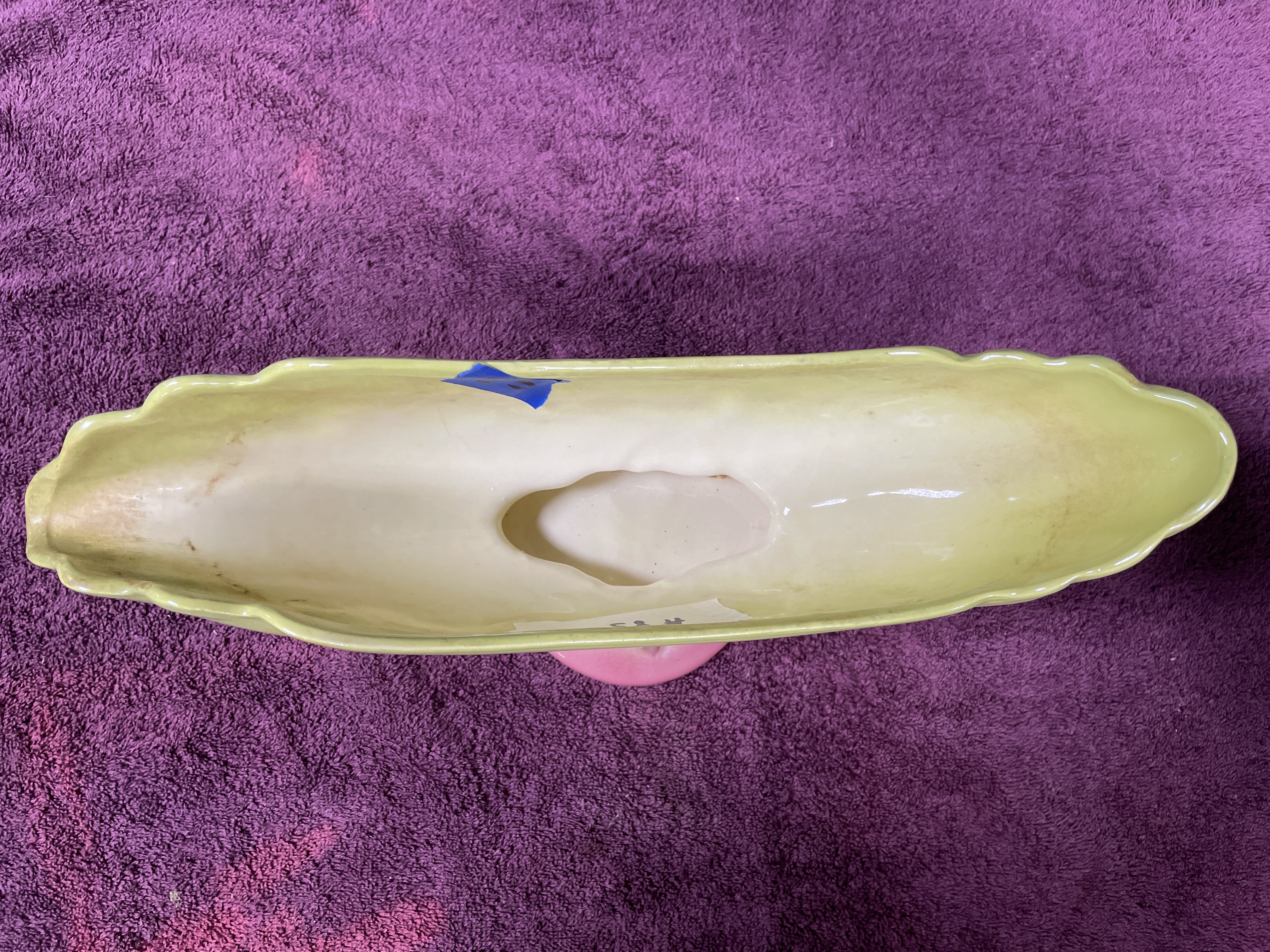 Hull Pottery W29 Boat-Shaped Planter in Pink and Green Glaze