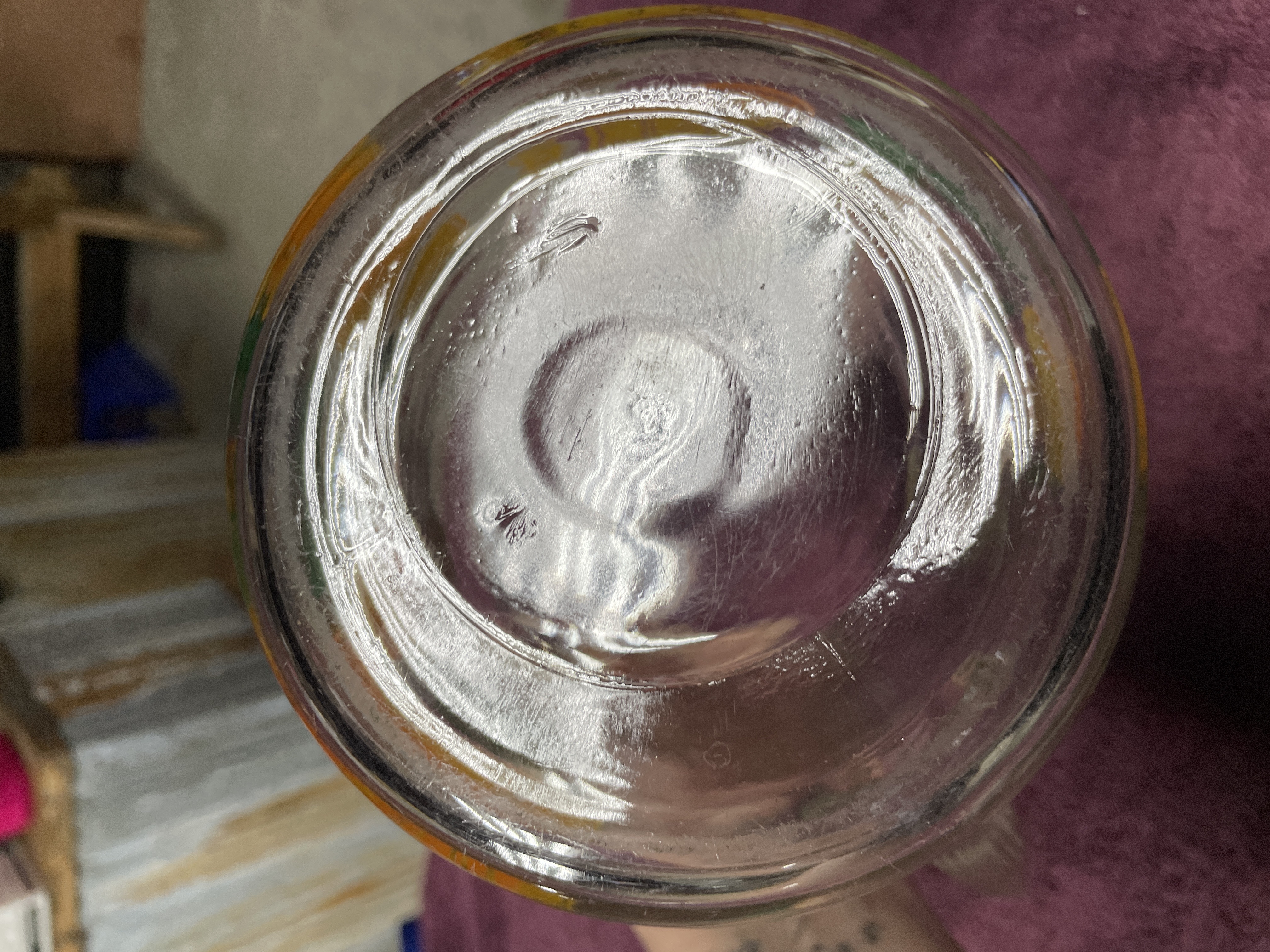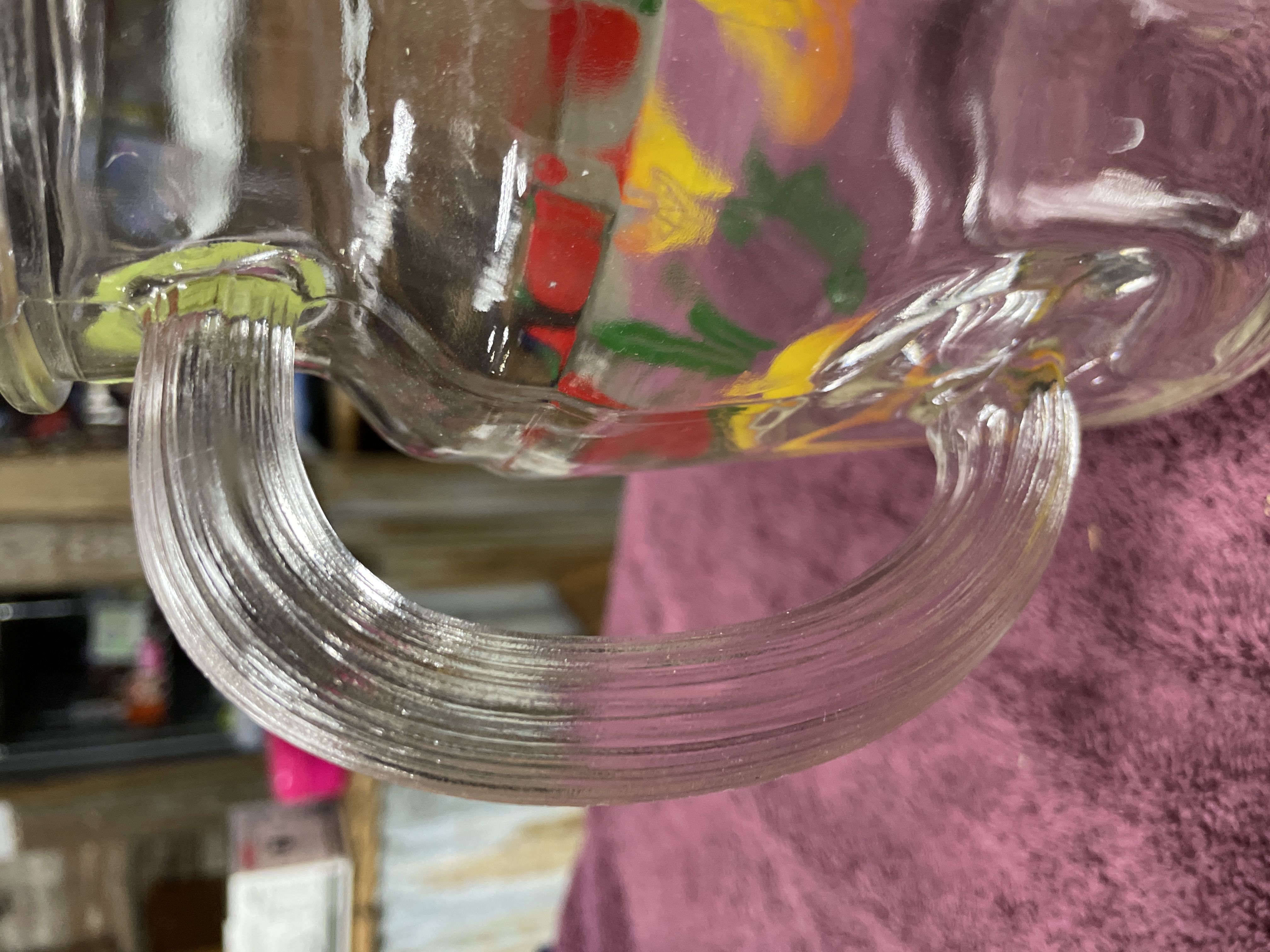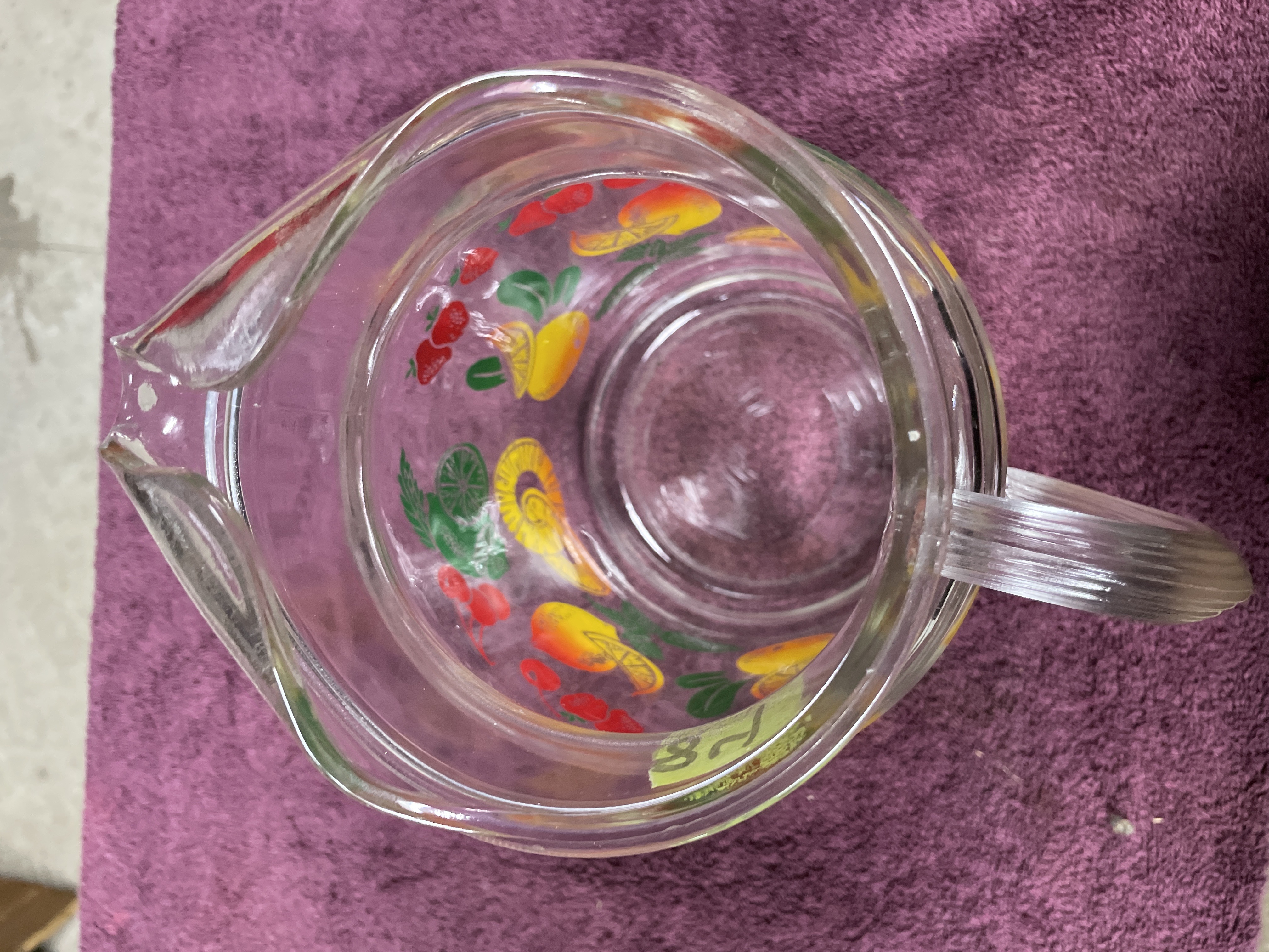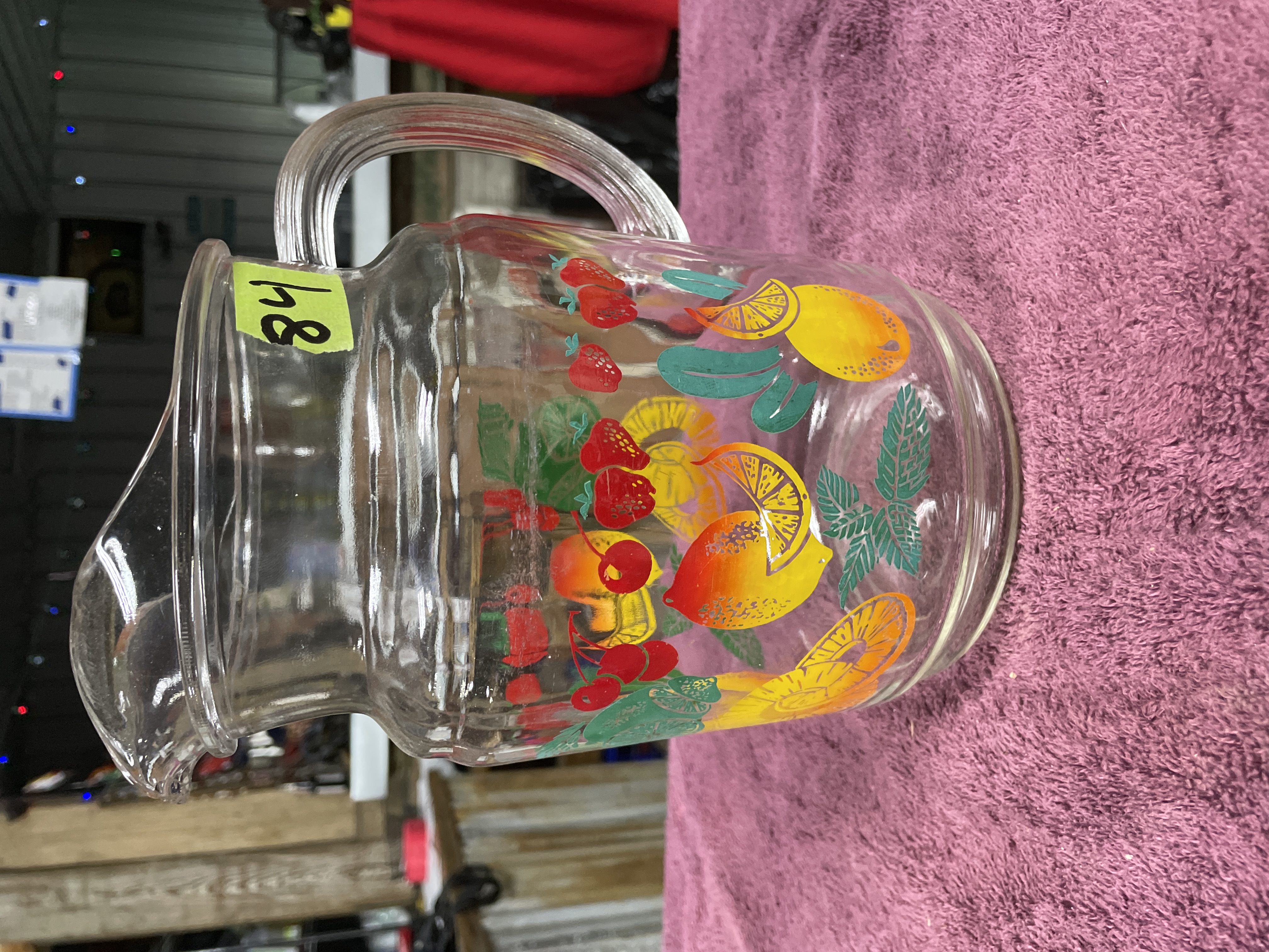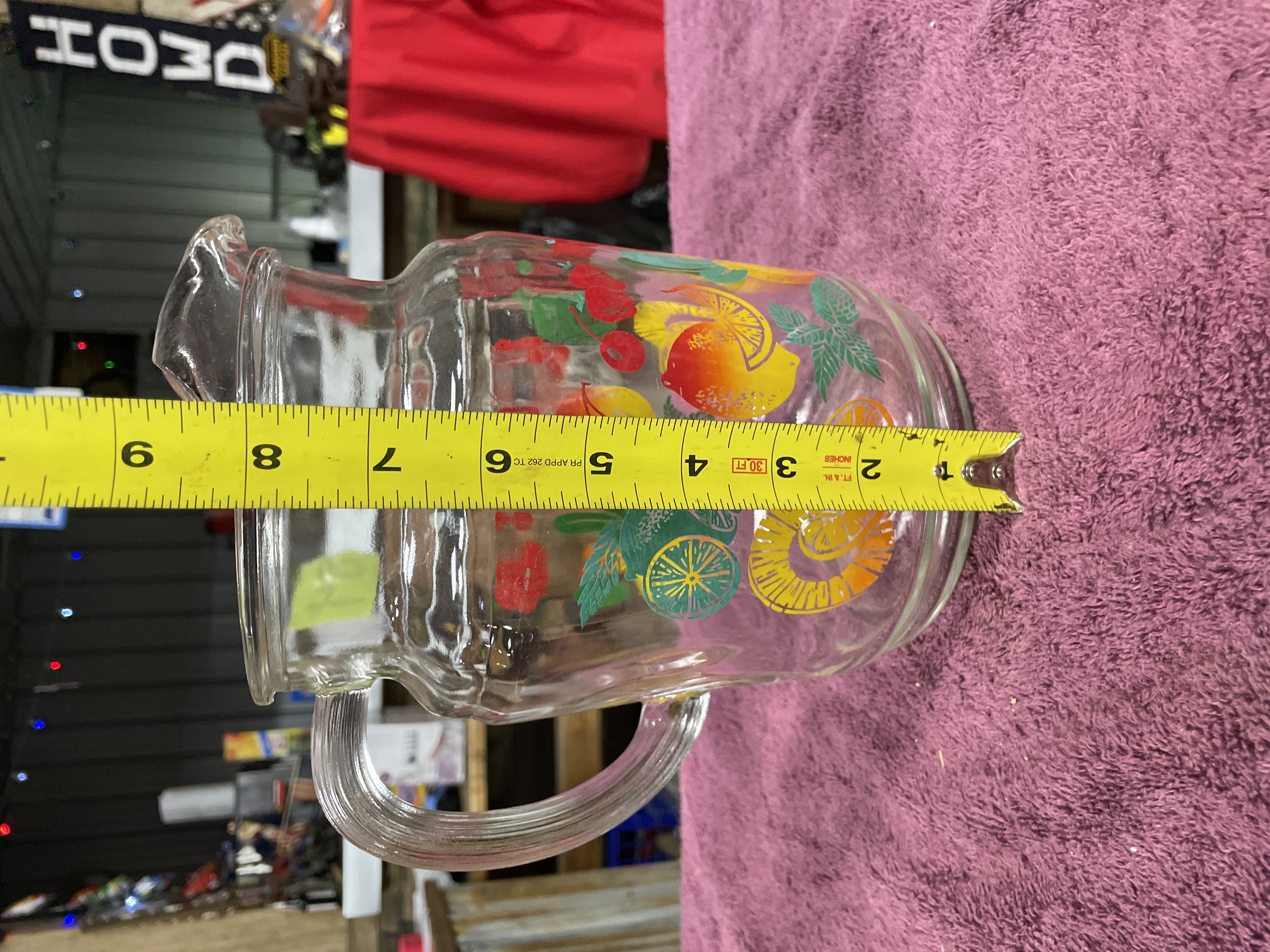 Vintage Molded Glass Beverage Pitcher with Applied Fruit Decal Decoration