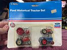 ERTL Ford Historical Tractor Set (Item 862, copyright 1991). This set consists of four miniature die-cast tractors, including models such as the Fordson Model F and Ford 8N, authorized by Ford New Holland. The set is blister-packaged on a printed card backing. The package bears a sticker price of $9.54.