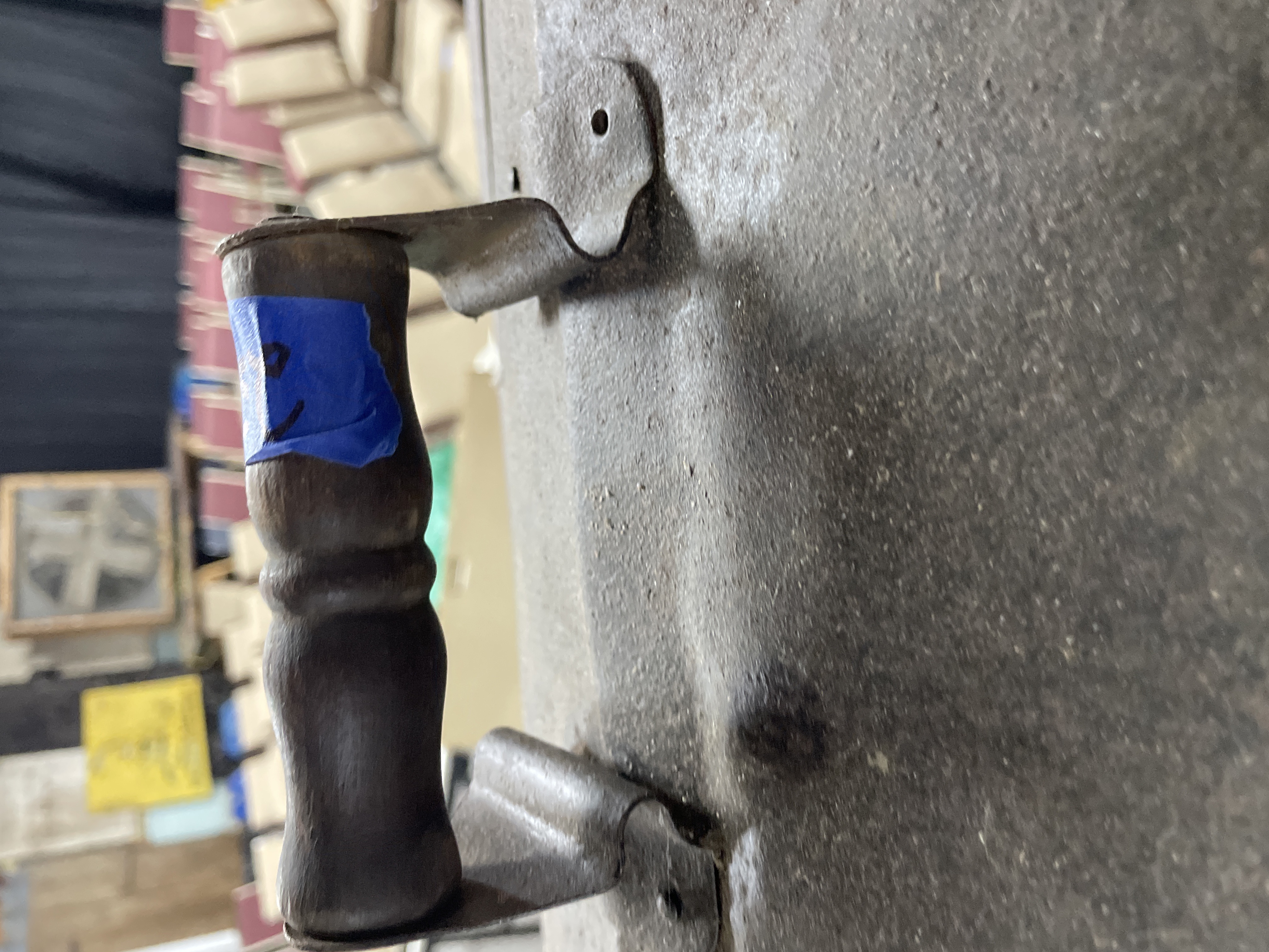 A vintage utilitarian wash boiler manufactured by Nesco, featuring an oval body constructed of copper or copper-plated metal. The vessel is paired with a separate, heavily oxidized dark metal lid and an internal custom-fit wire grid rack. The exterior of the boiler displays an impressed diamond-shaped manufacturer’s mark reading "Nesco" within a diamond cartouche. The boiler is fitted with wooden grips secured by metal fittings on the side handles. The coordinating lid handle is also wood and metal.