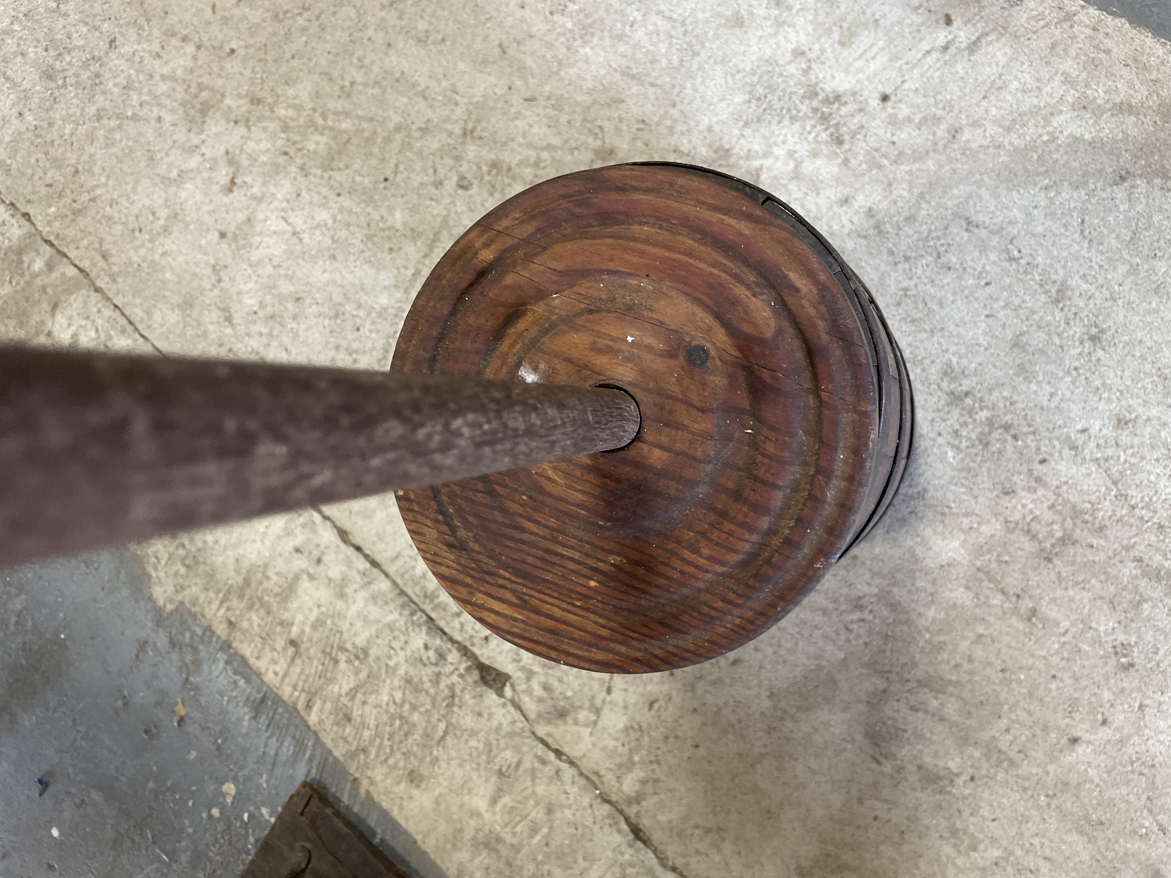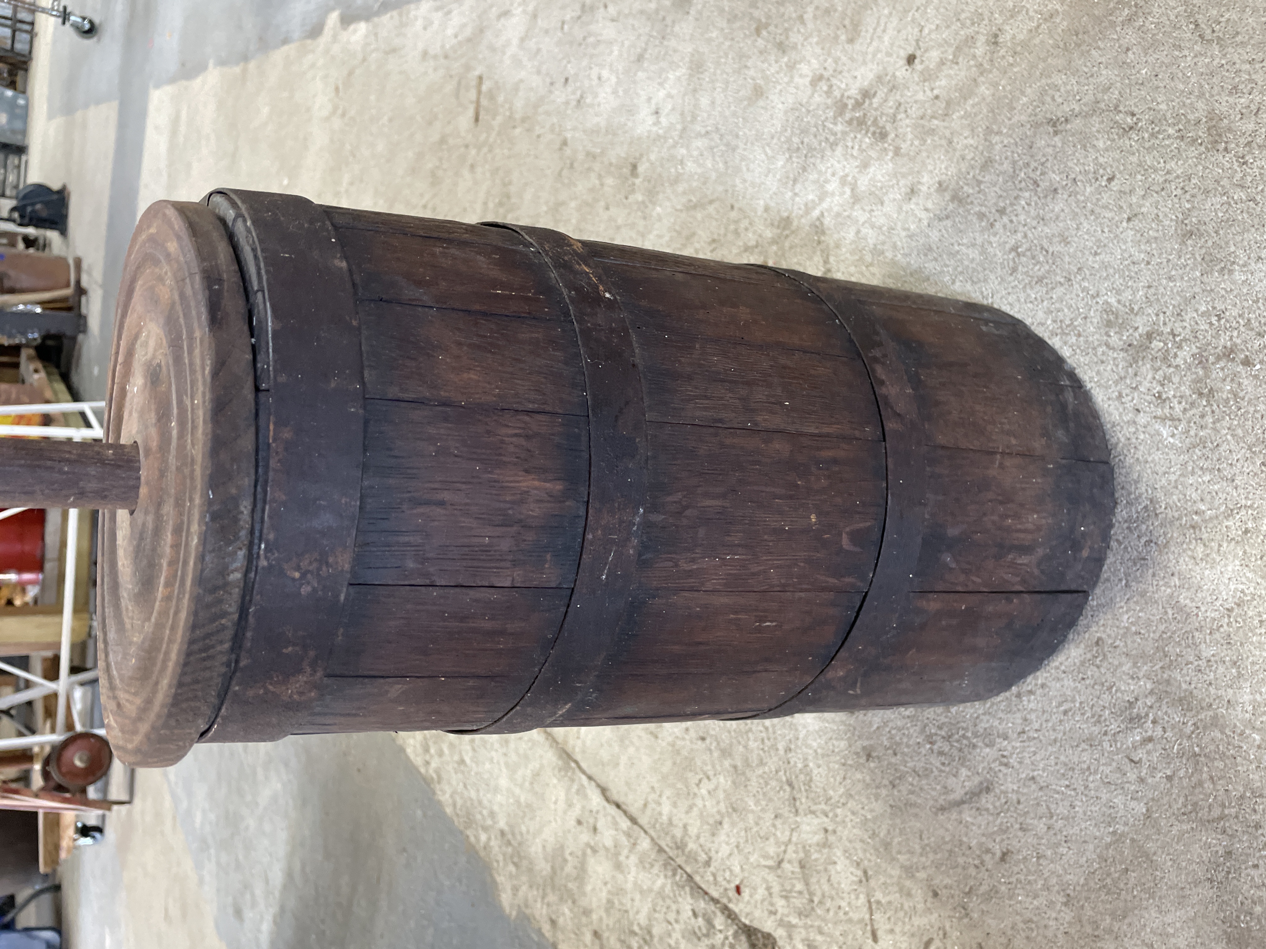 Total height of the barrel and exposed dasher rod extends approximately 40 inches.