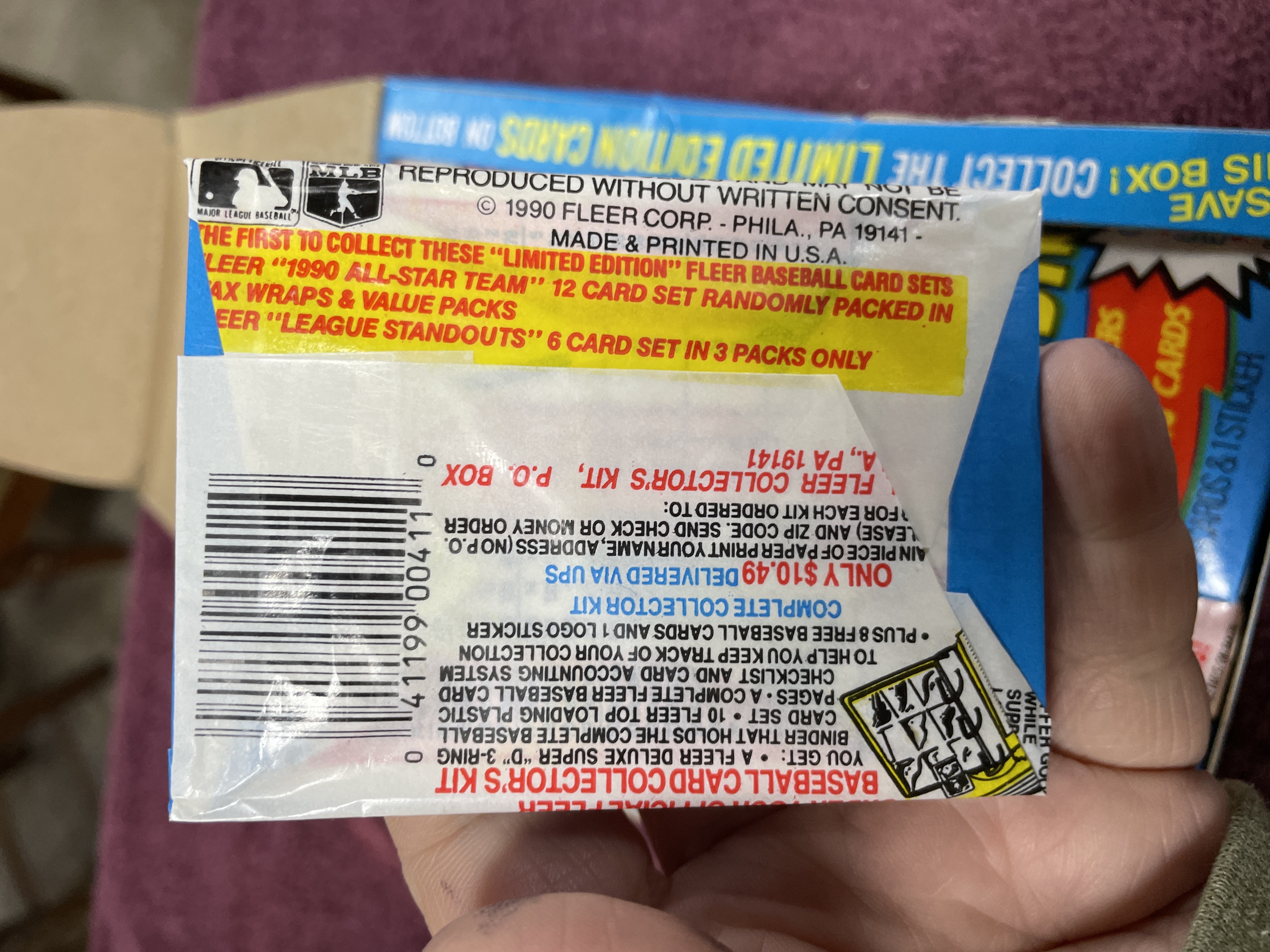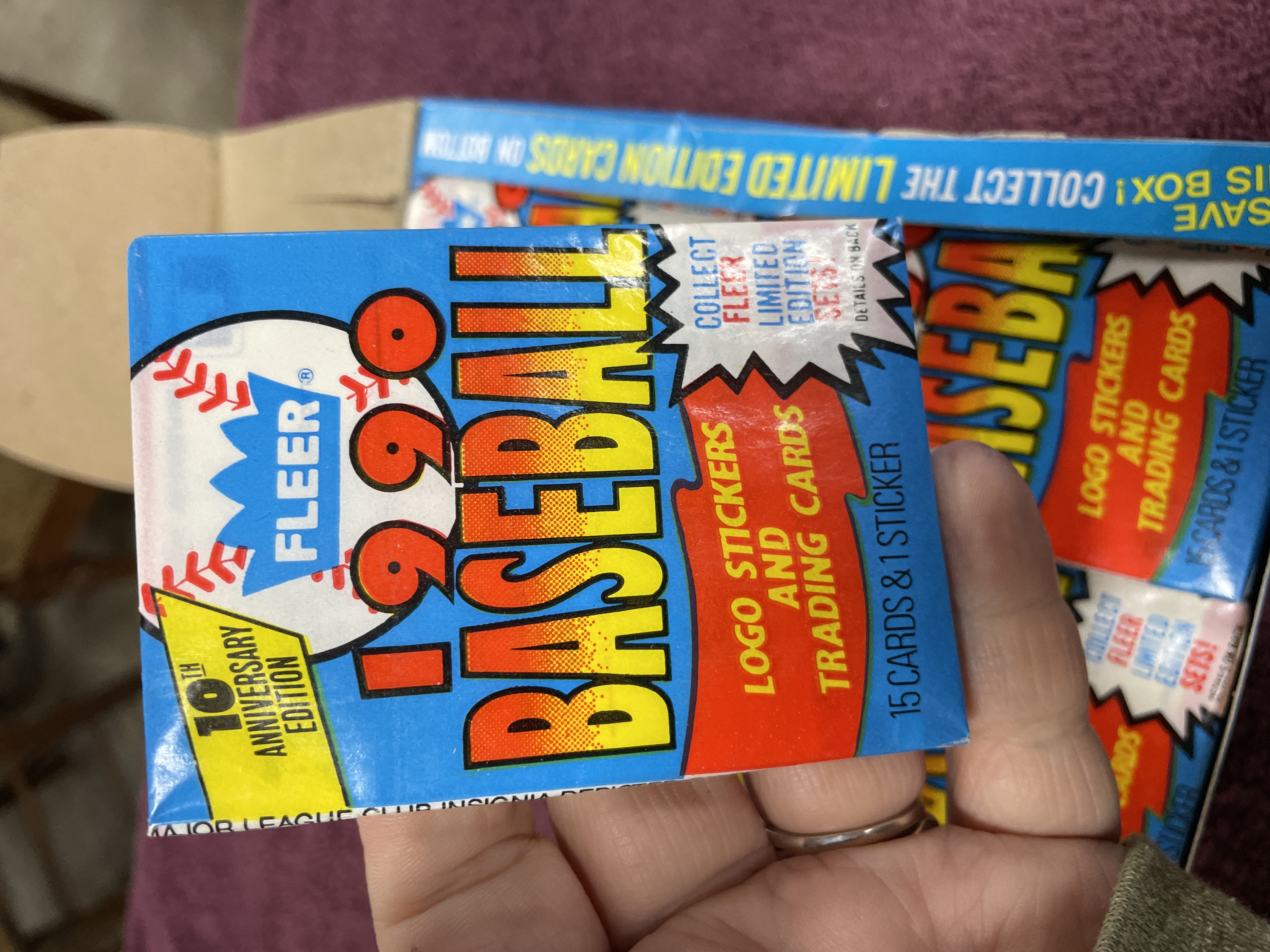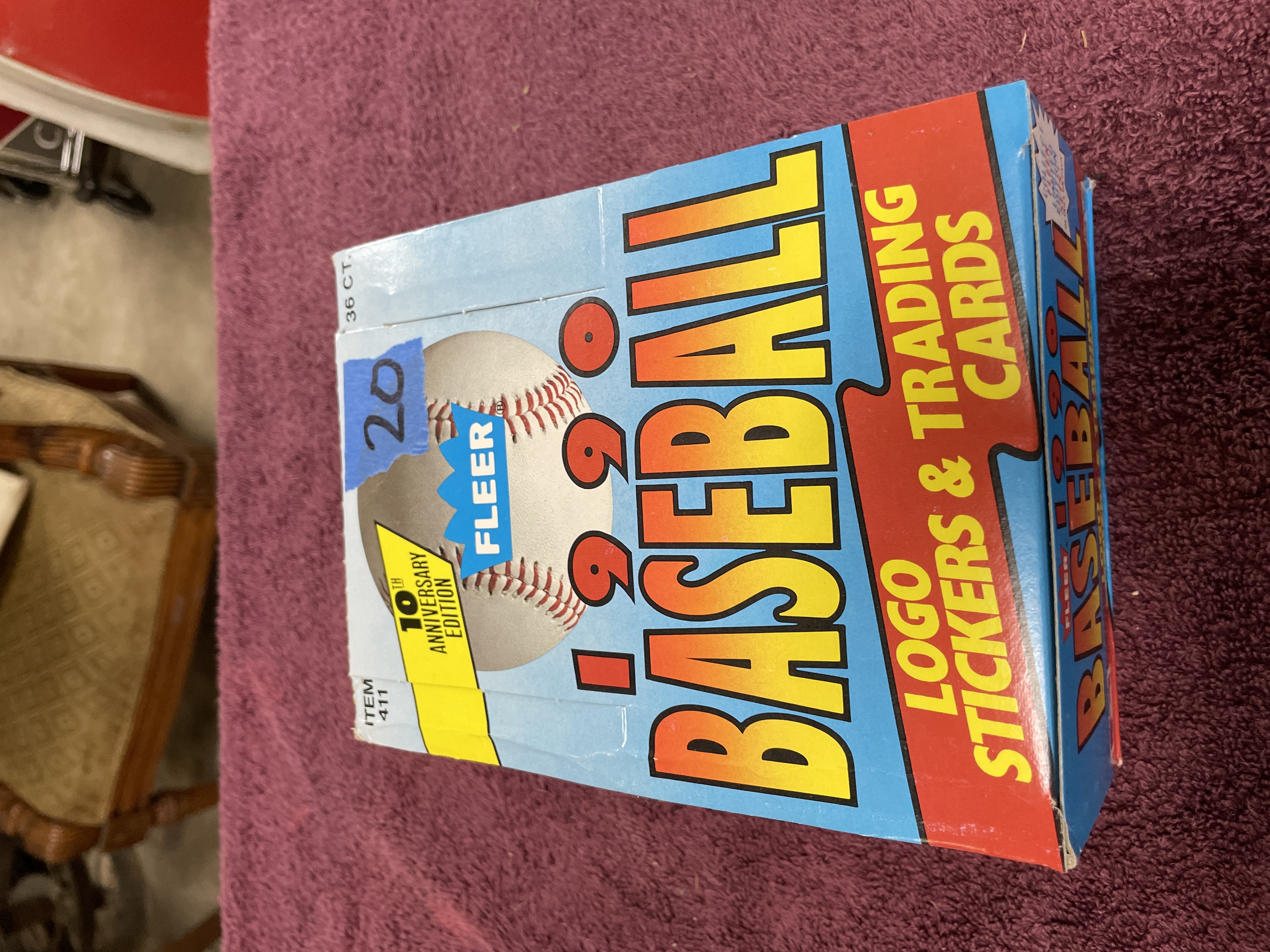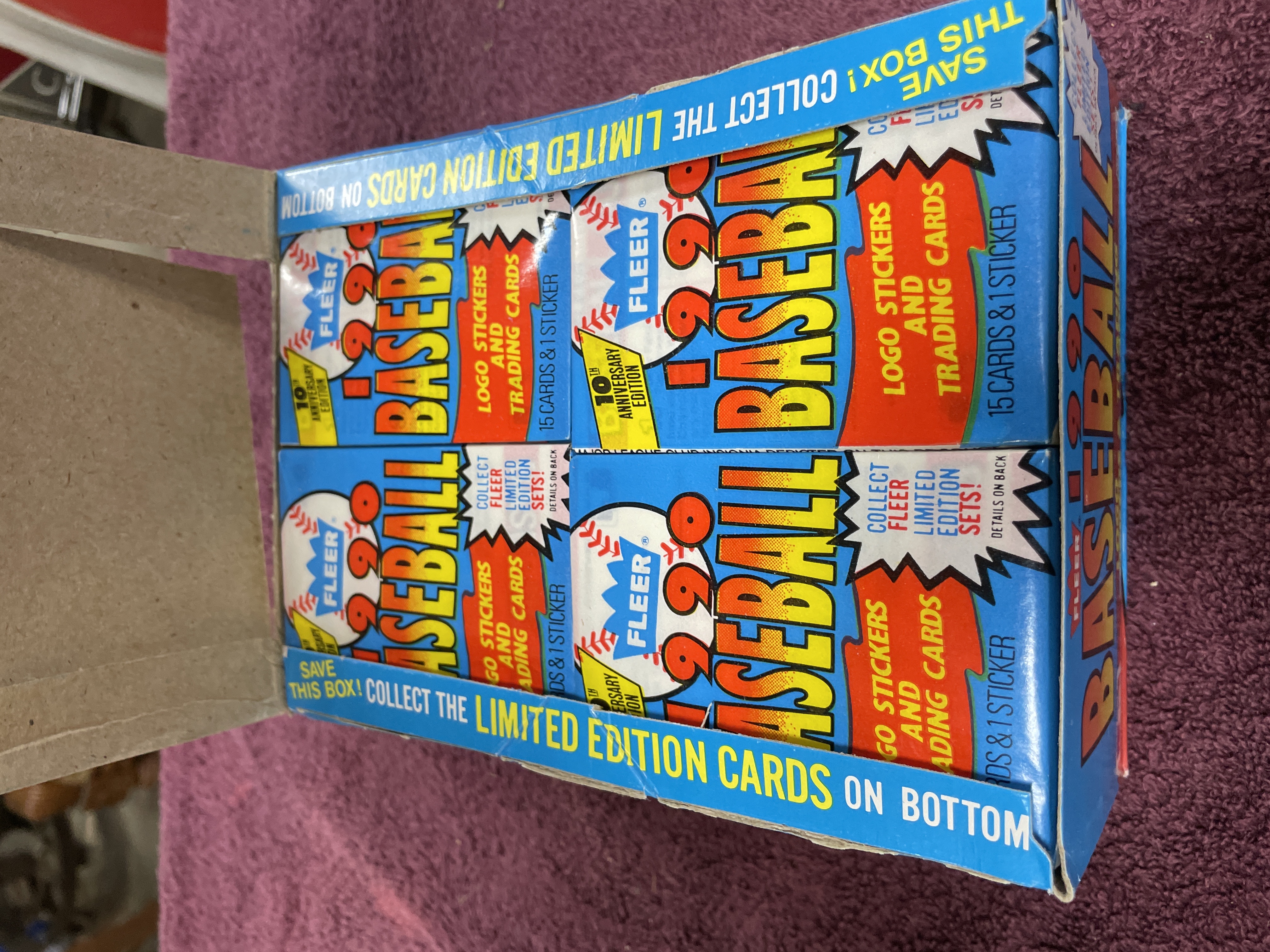 1990 Fleer Baseball 10th Anniversary Edition Vendor Display Box with 36 Sealed Packs