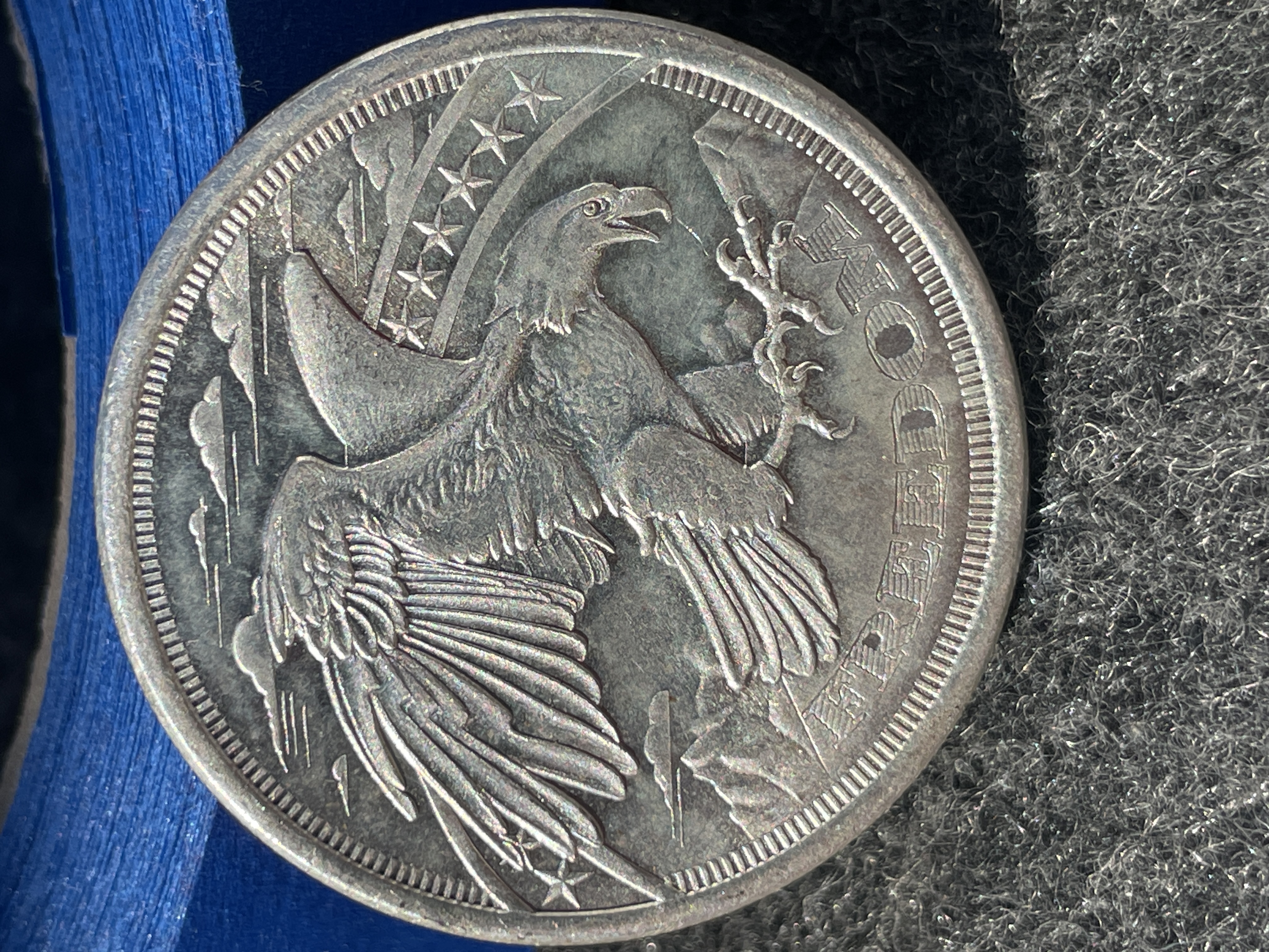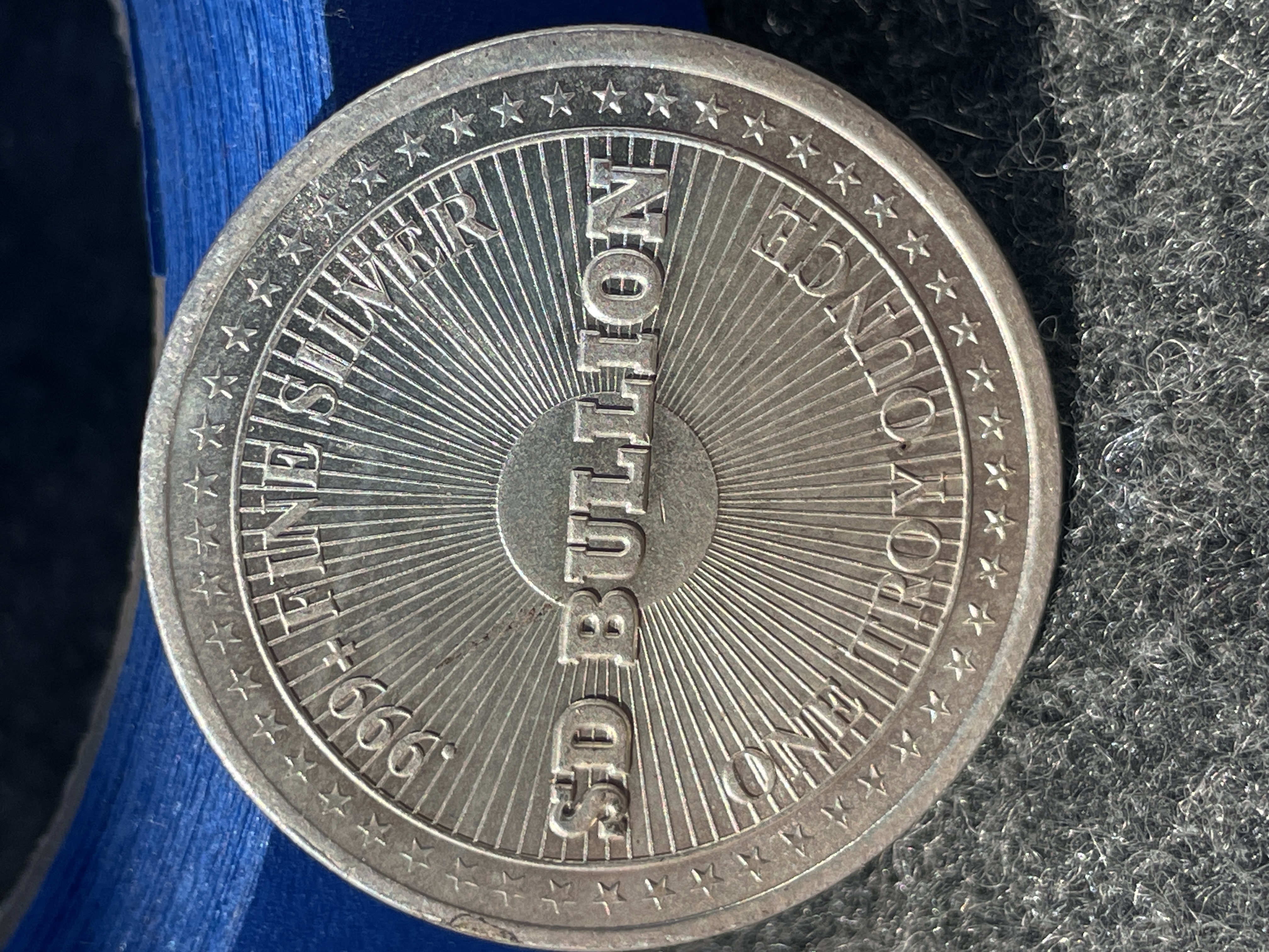 A one troy ounce .999 fine silver bullion round by SD Bullion featuring an eagle design and the word Freedom.