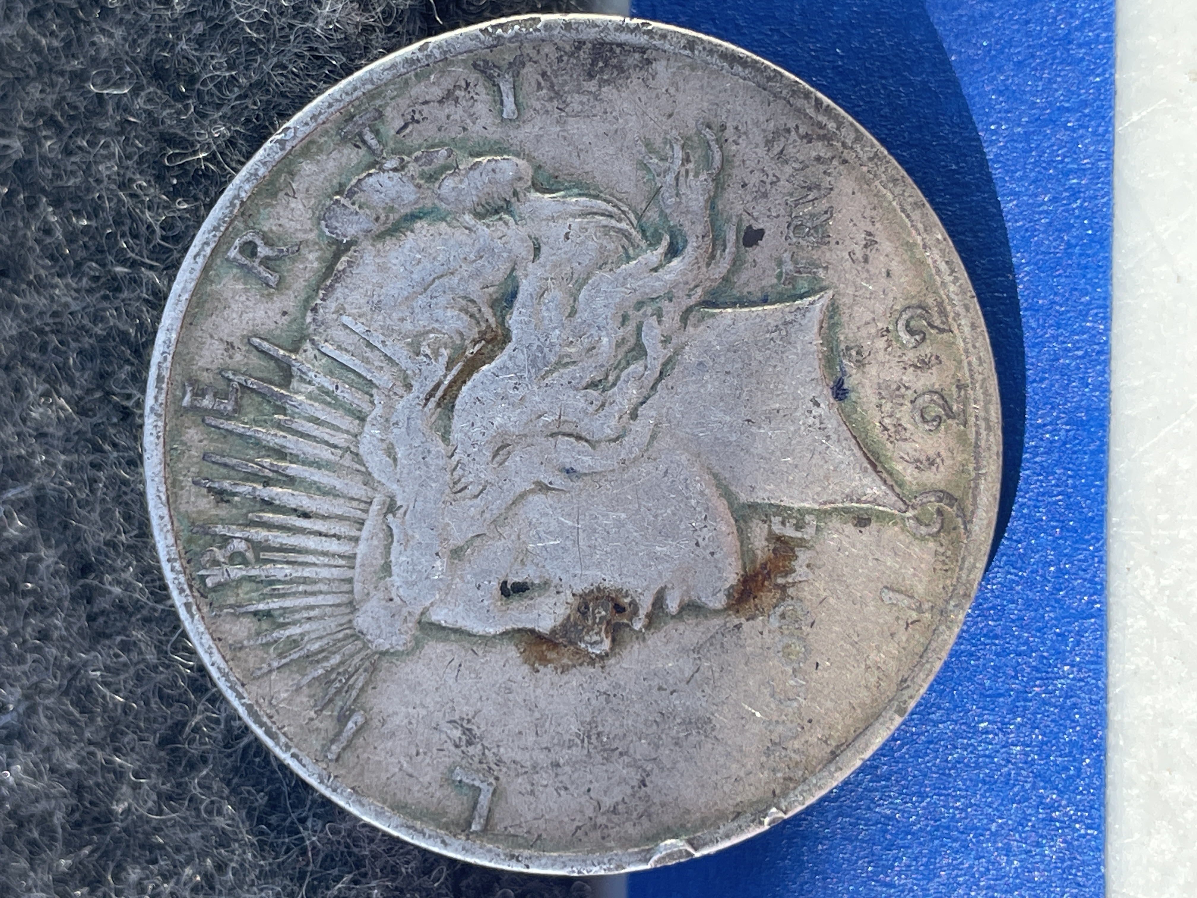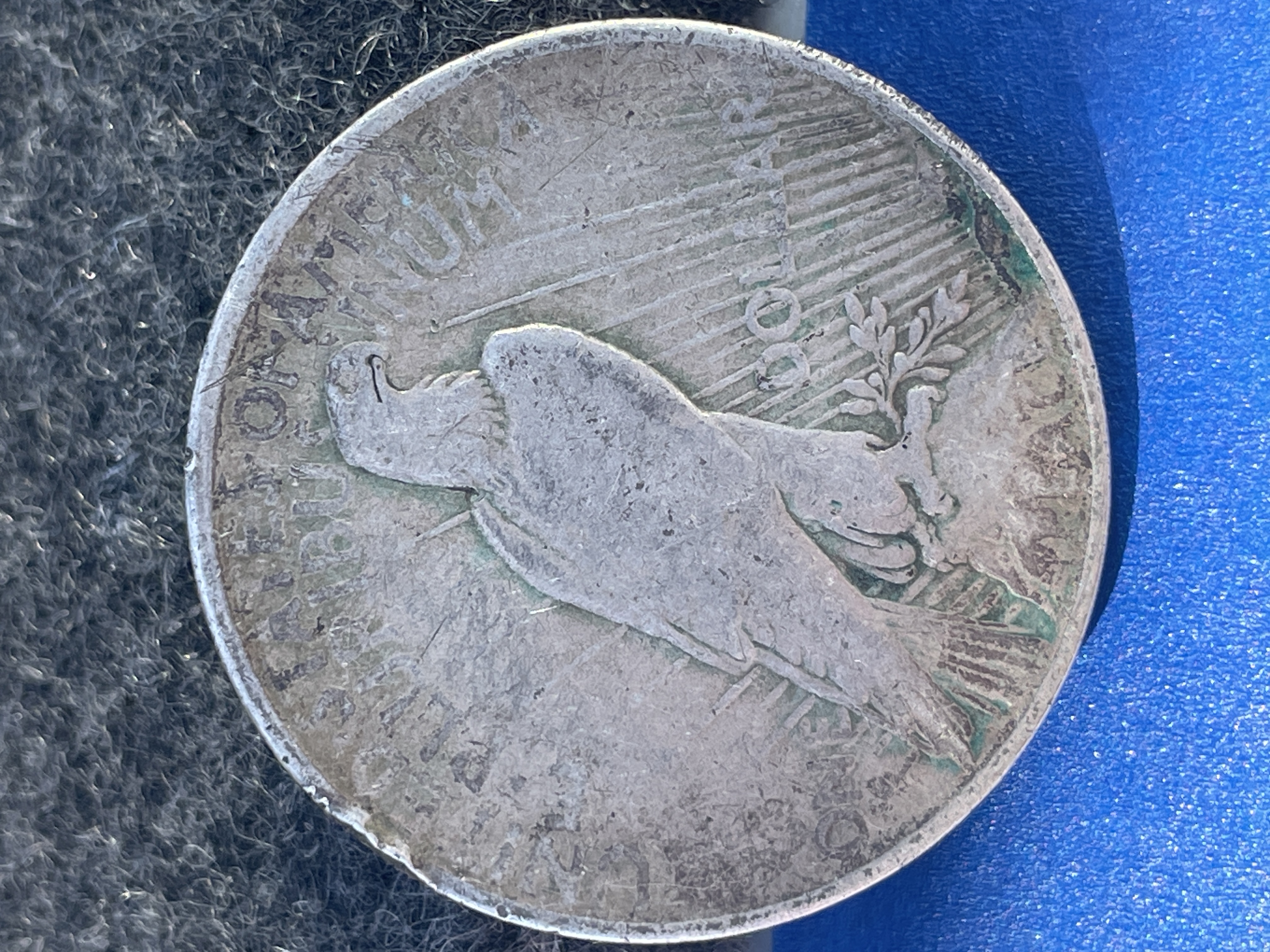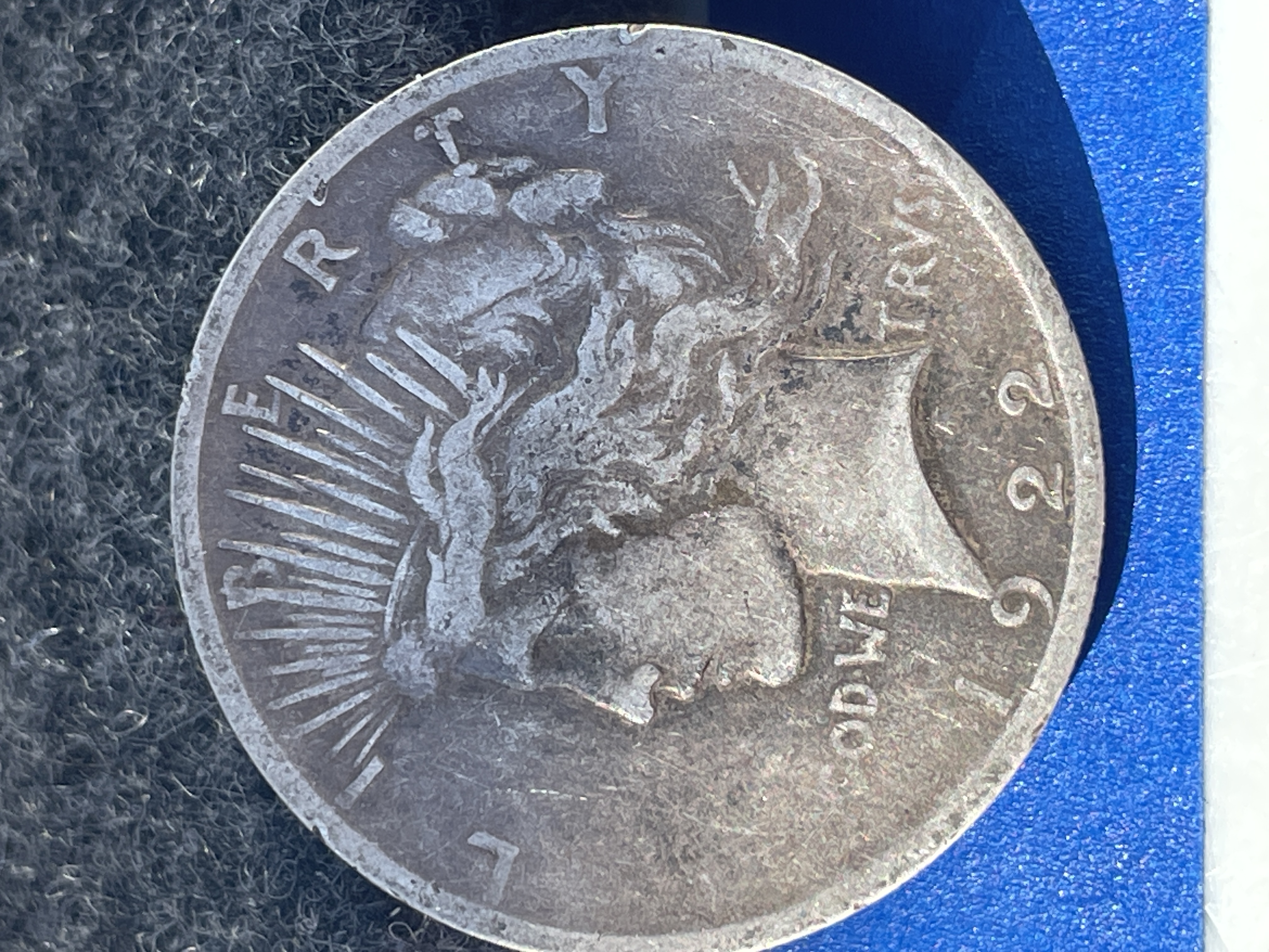 A pair of 1922 United States Peace silver dollar coins featuring Liberty on the obverse and a perched eagle on the reverse with visible surface tarnish.