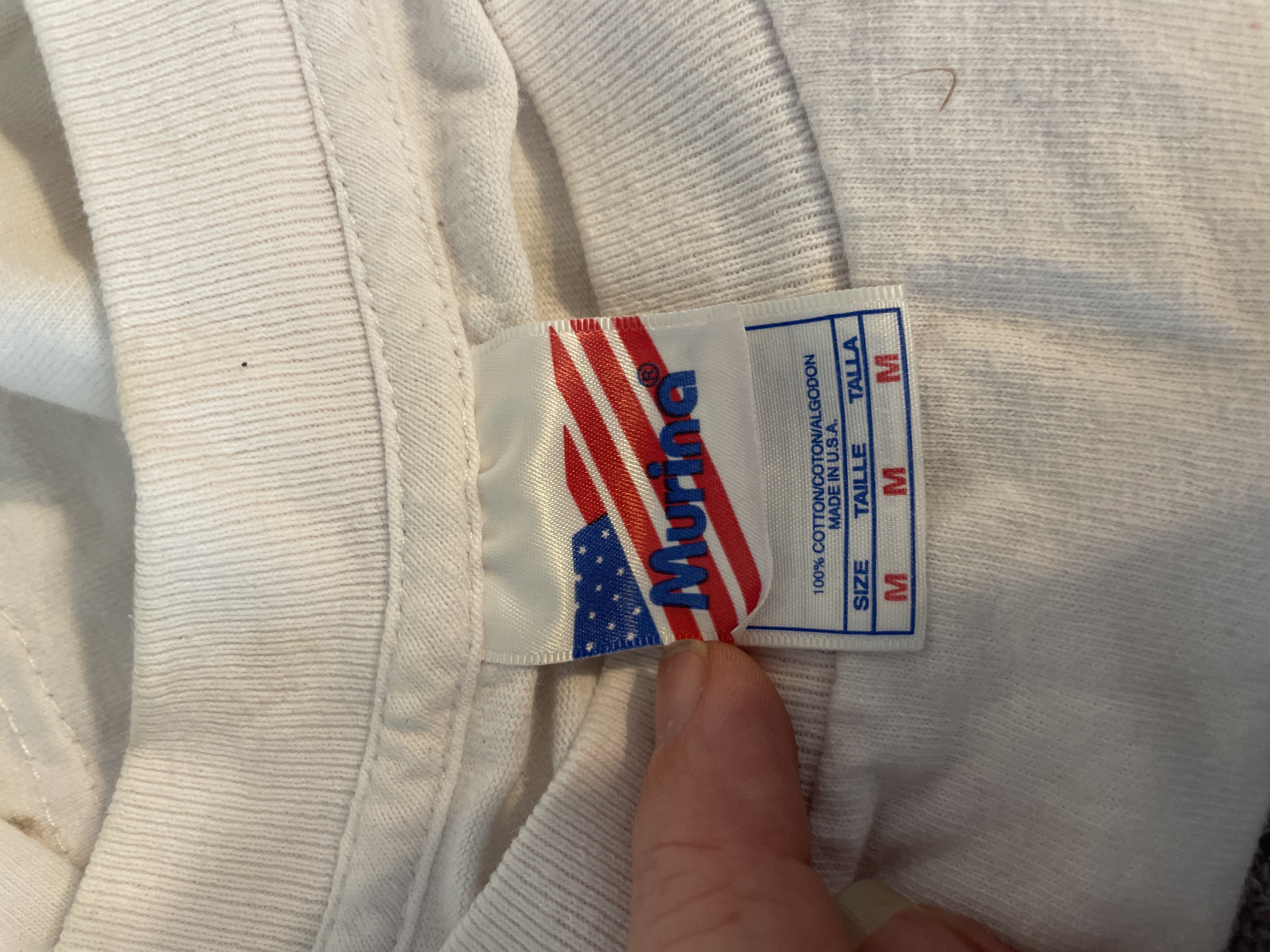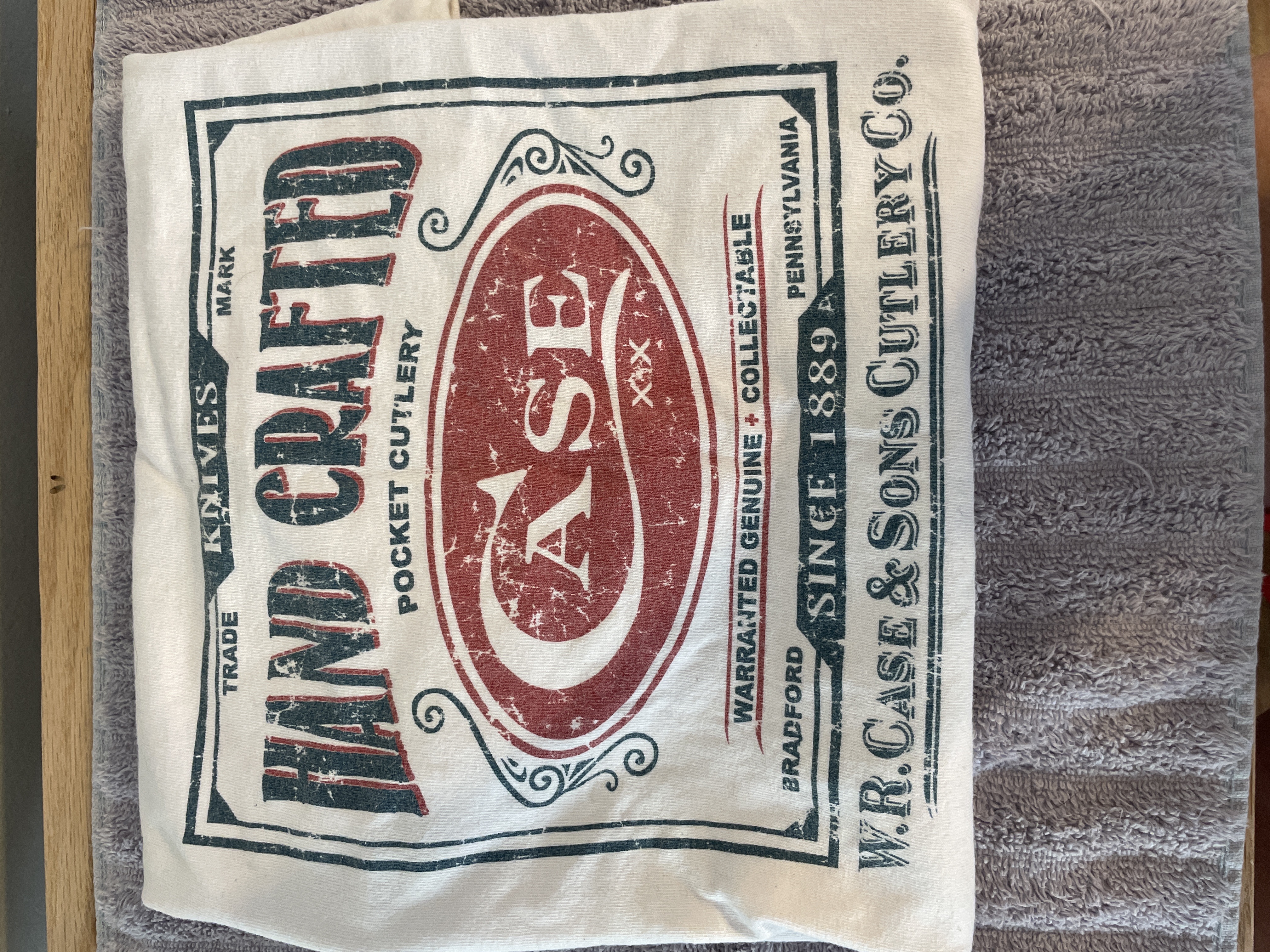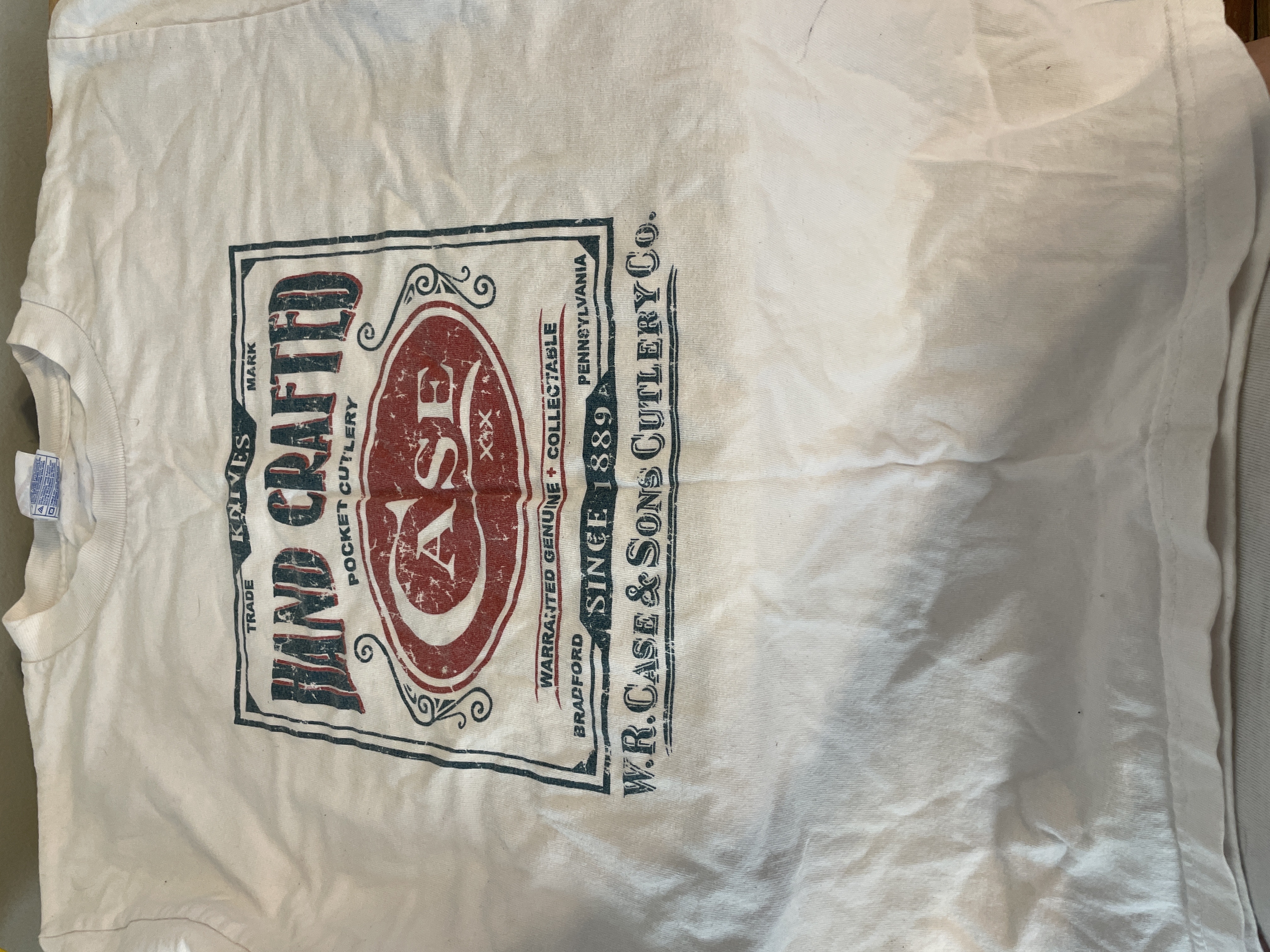 A white Murina brand size M cotton t-shirt featuring a red and black graphic for W.R. Case and Sons Cutlery Co.