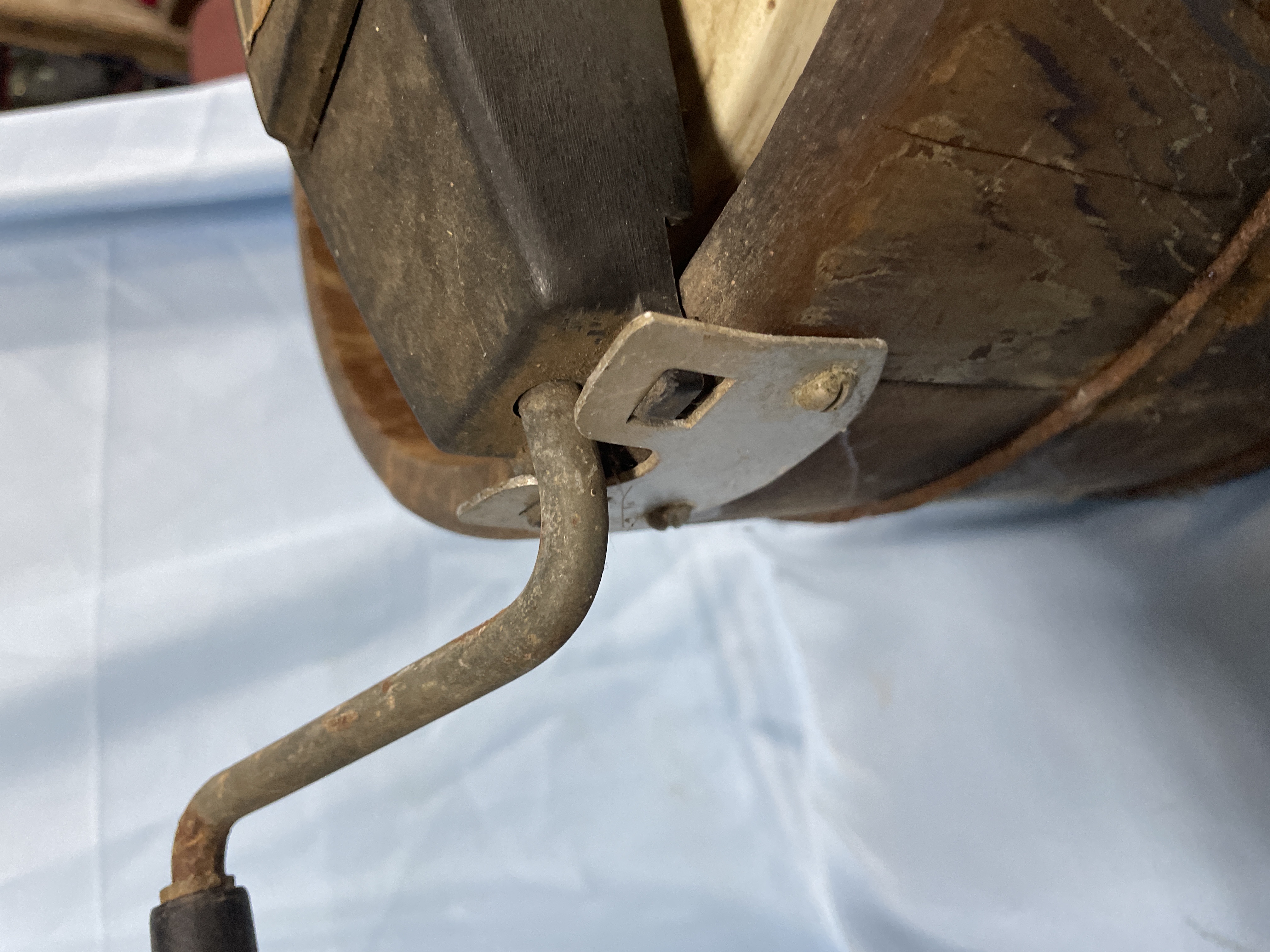 A brown wooden 5-quart hand-crank ice cream freezer by Richmond Cedar Works featuring a black metal top assembly and internal canister.