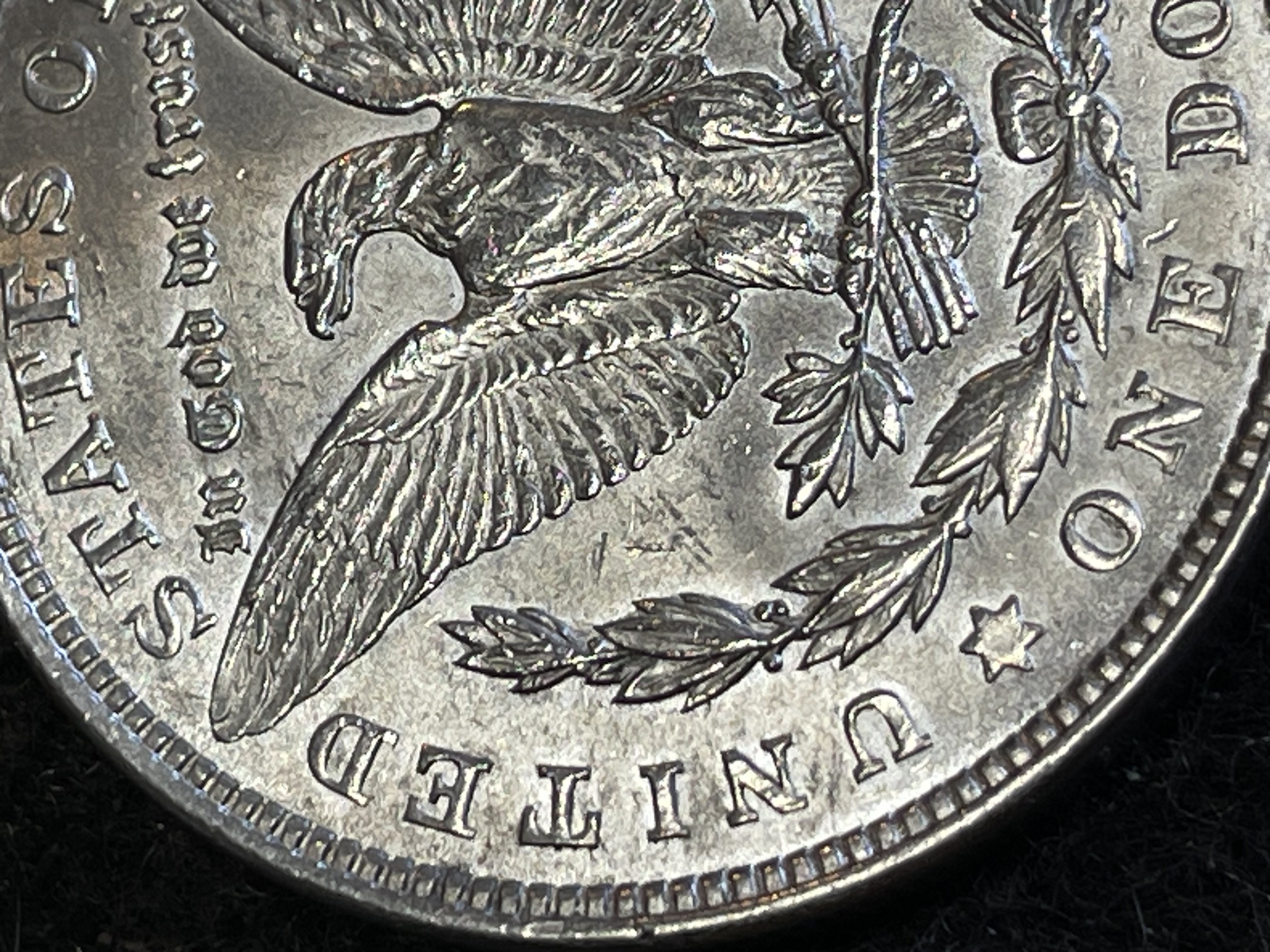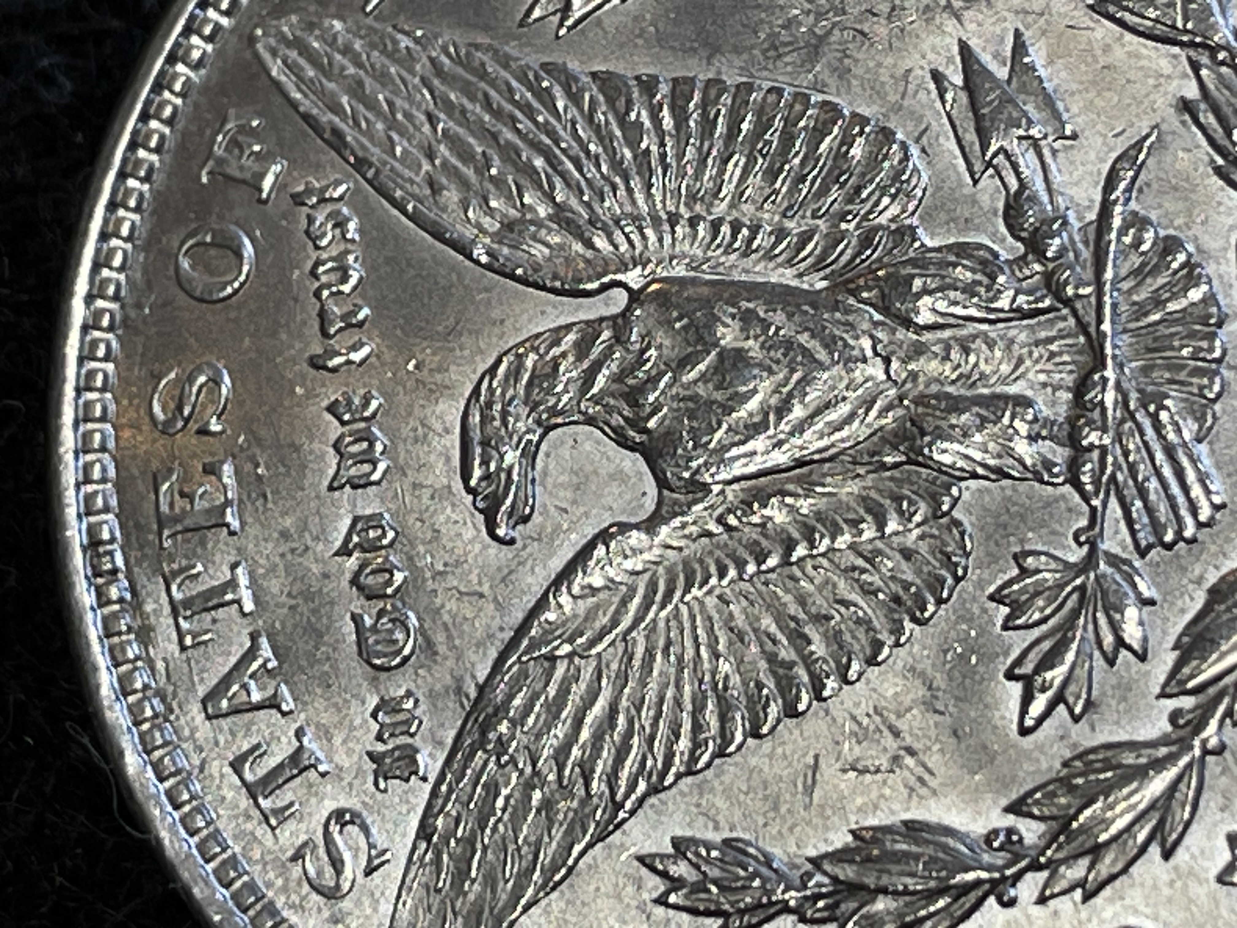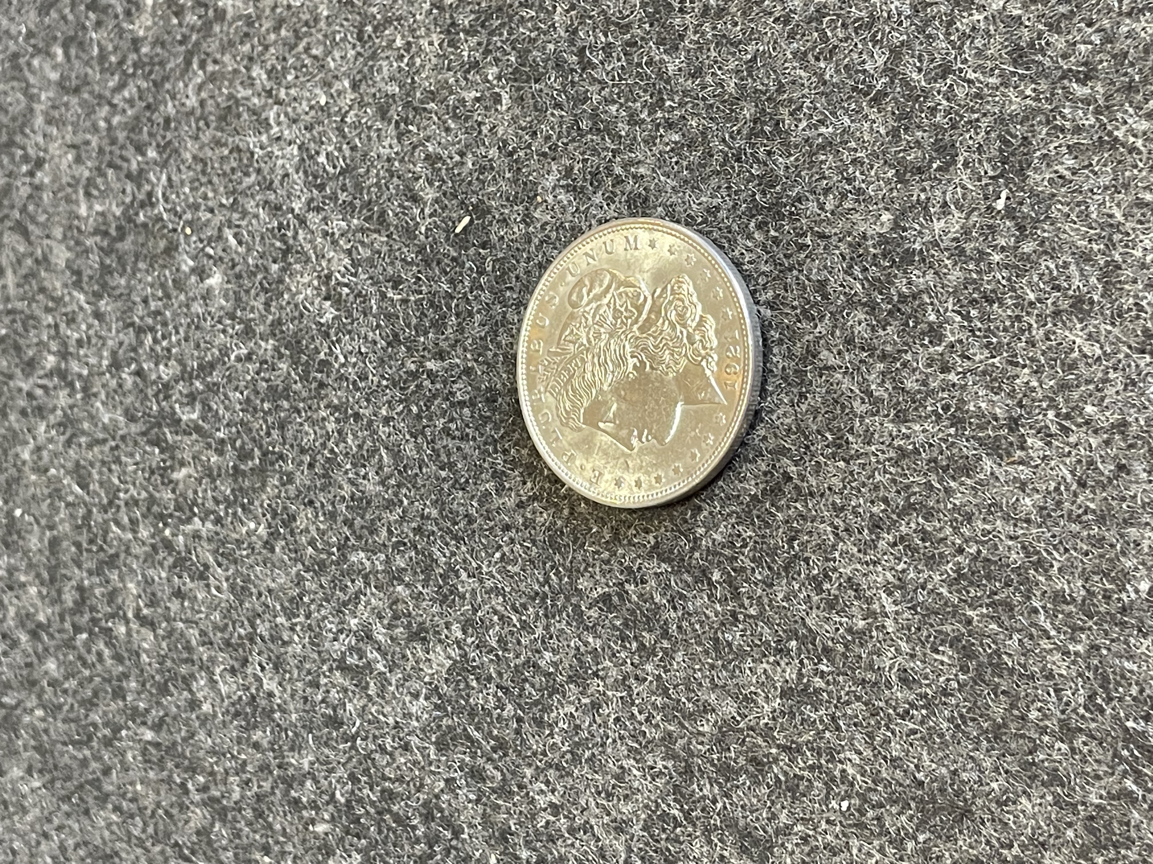 A 1921 US Morgan silver dollar coin featuring the profile of Liberty on the obverse and a heraldic eagle on the reverse.