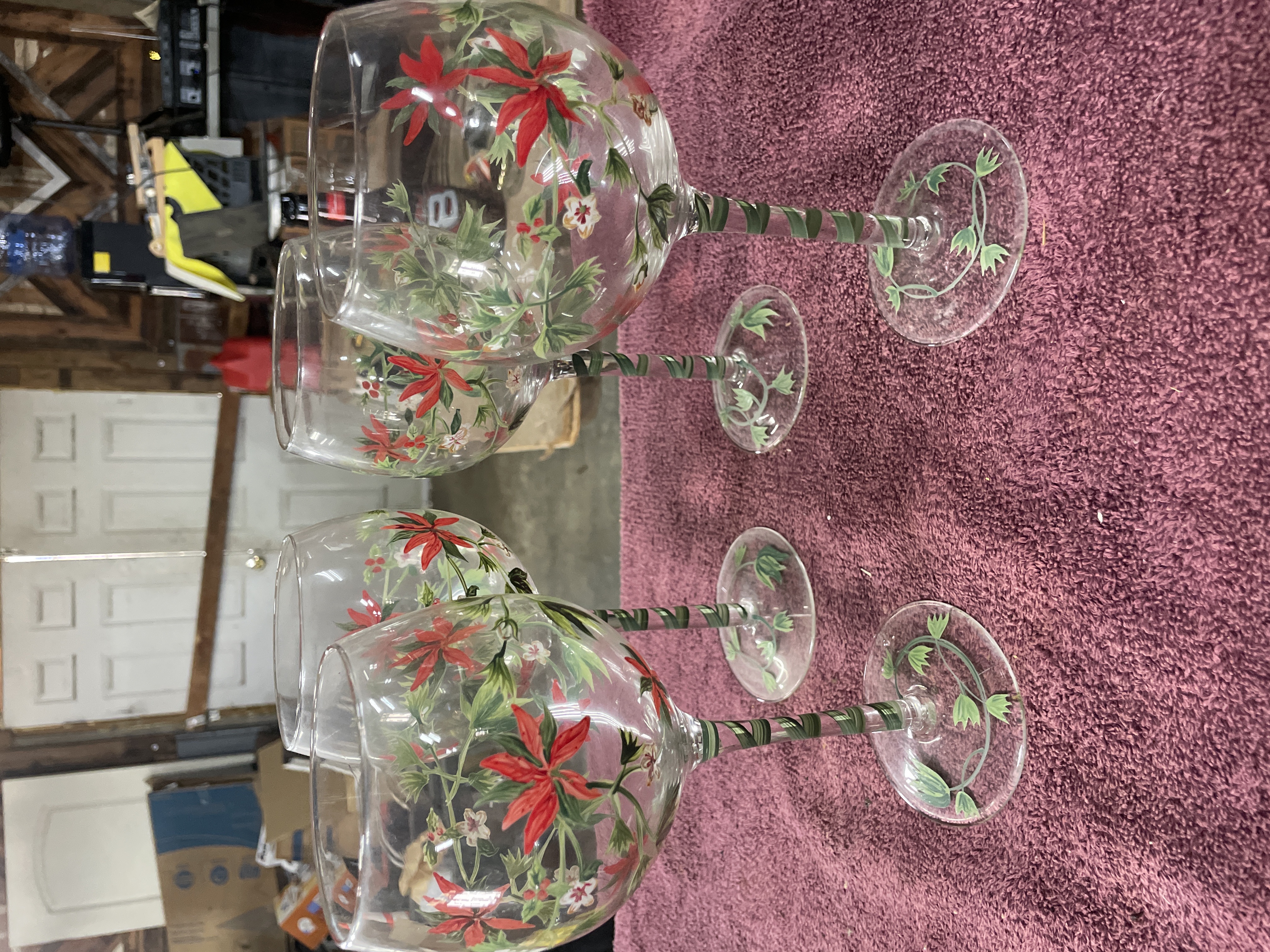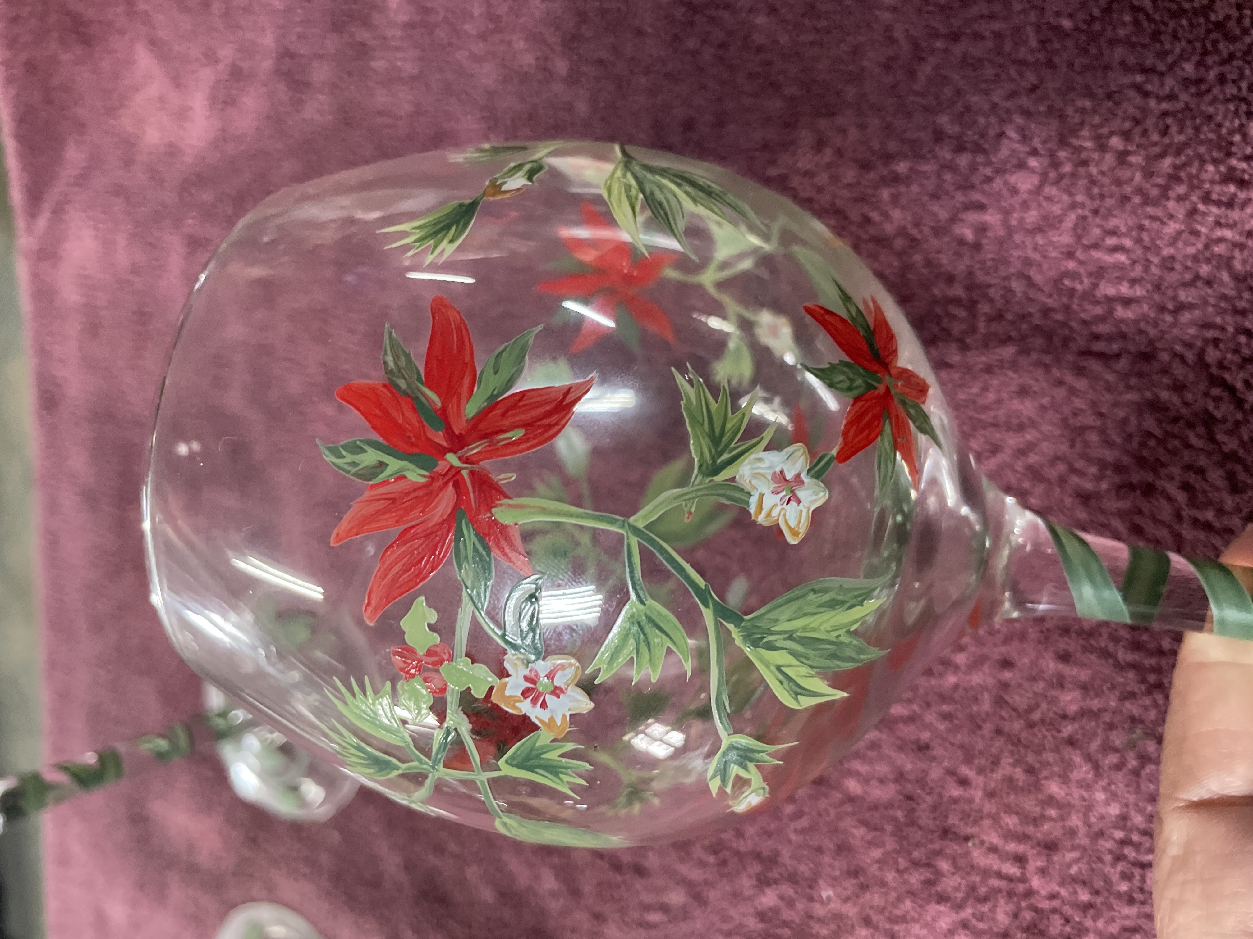 A Collection of Hand Painted Christmas Floral Wine Glasses
