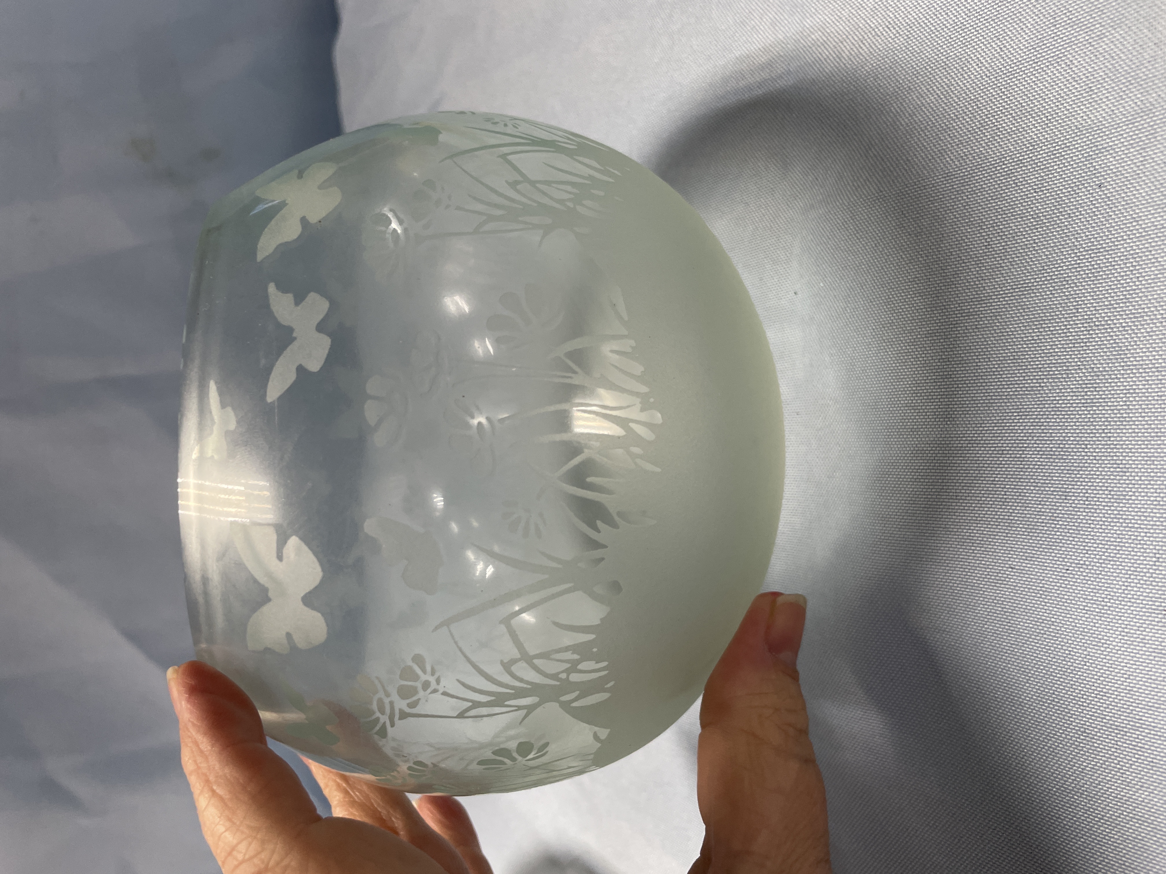 Two Decorative Glass Bowls with Floral and Butterfly Patterns