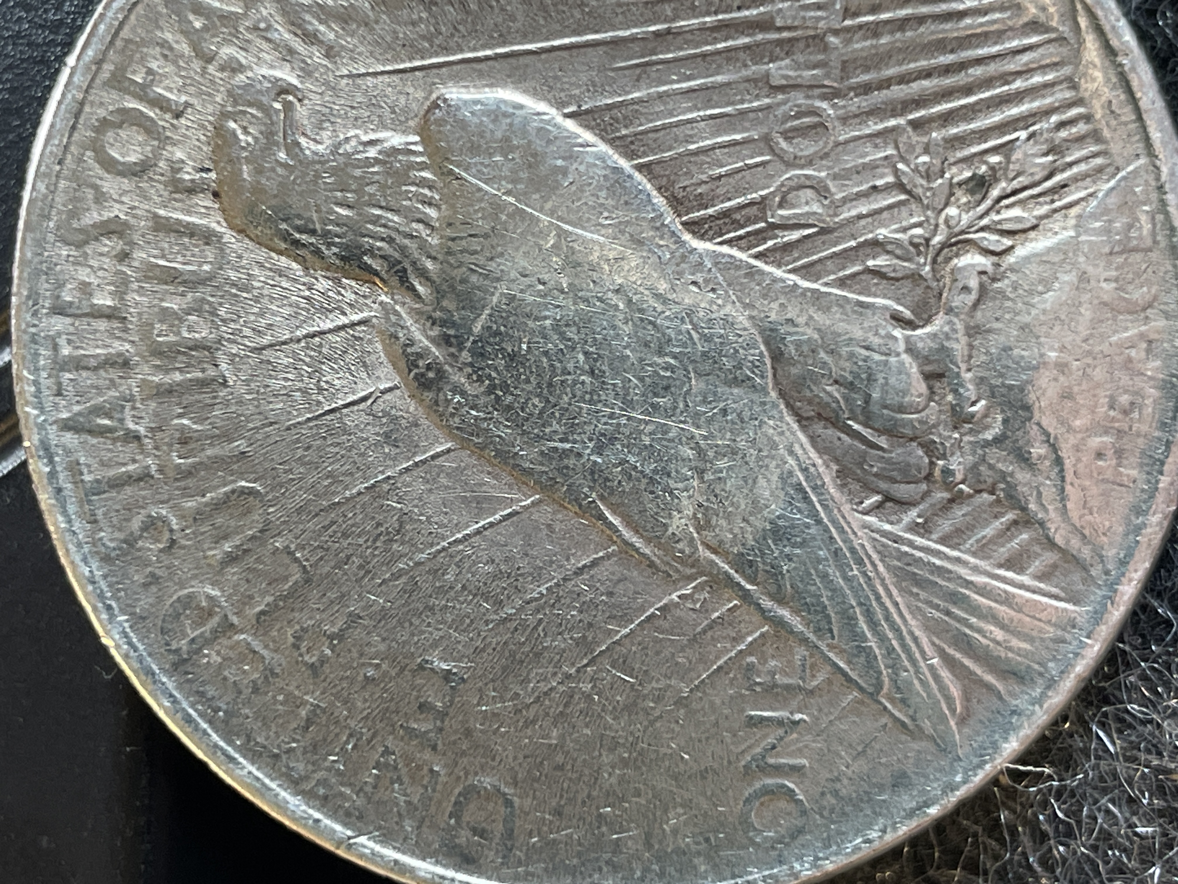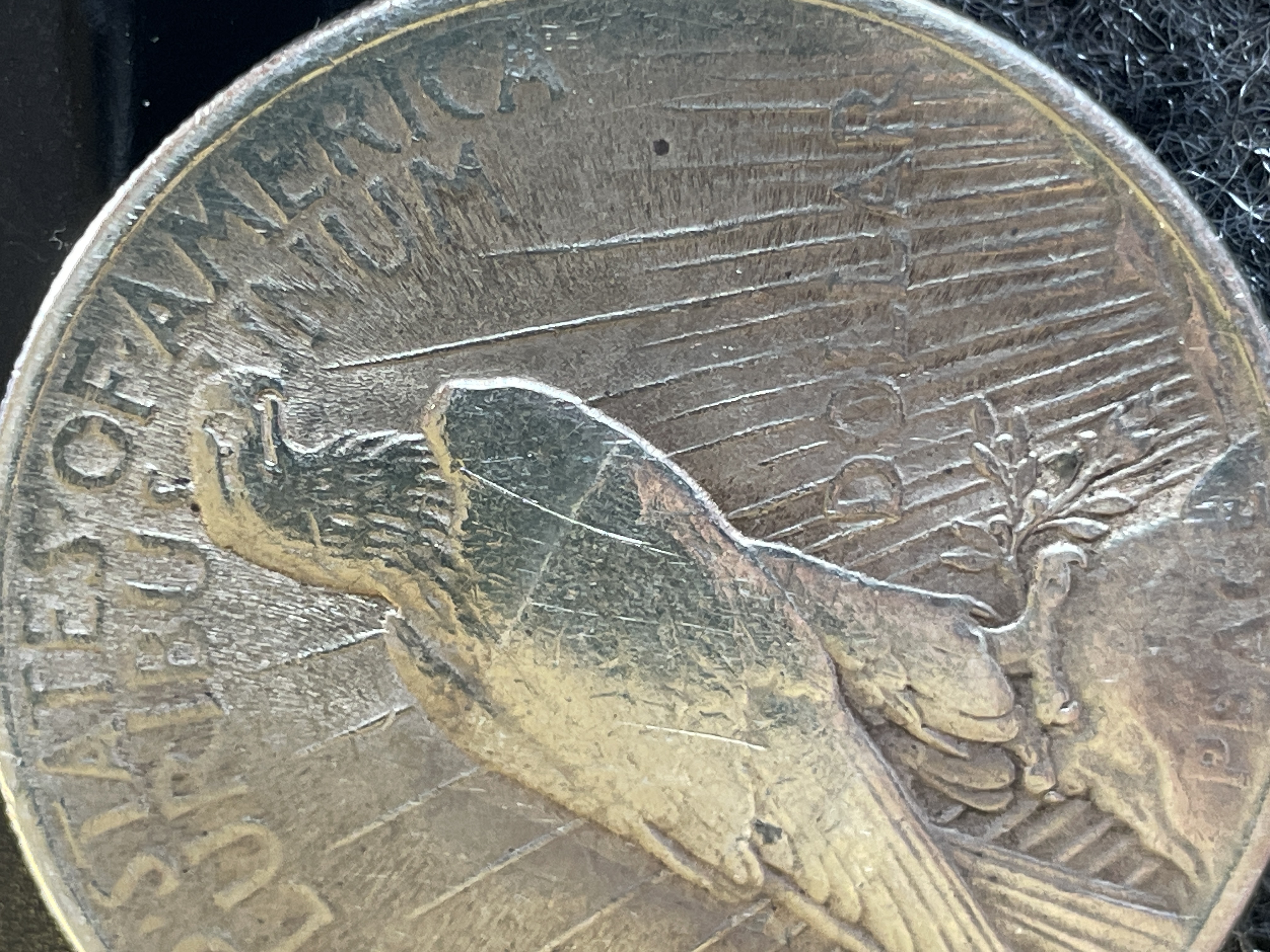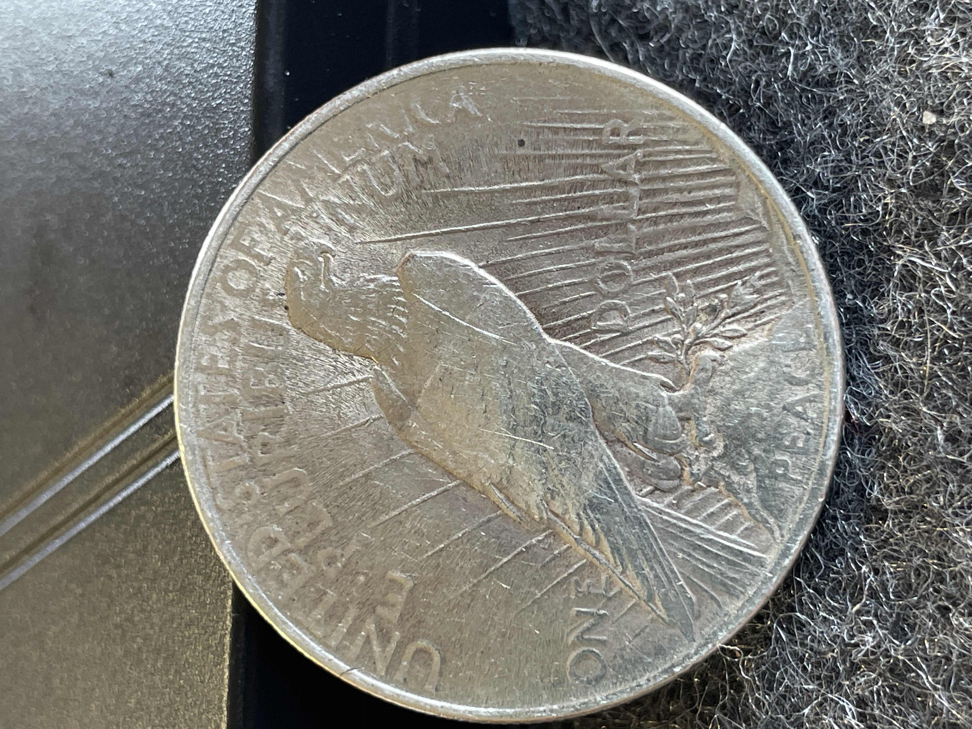 A single 1924 United States Peace silver dollar coin featuring Liberty on the obverse and a perched eagle on the reverse.