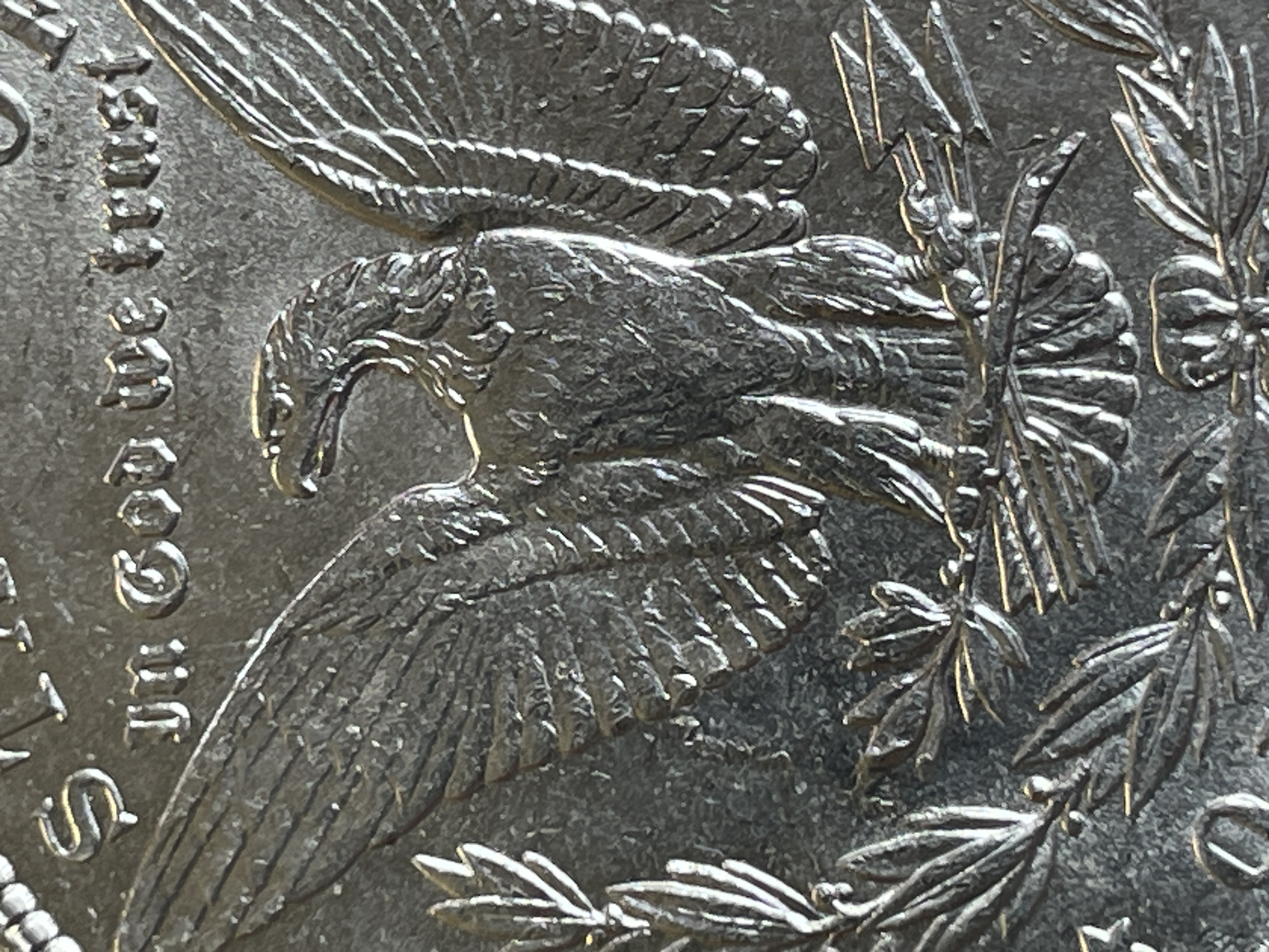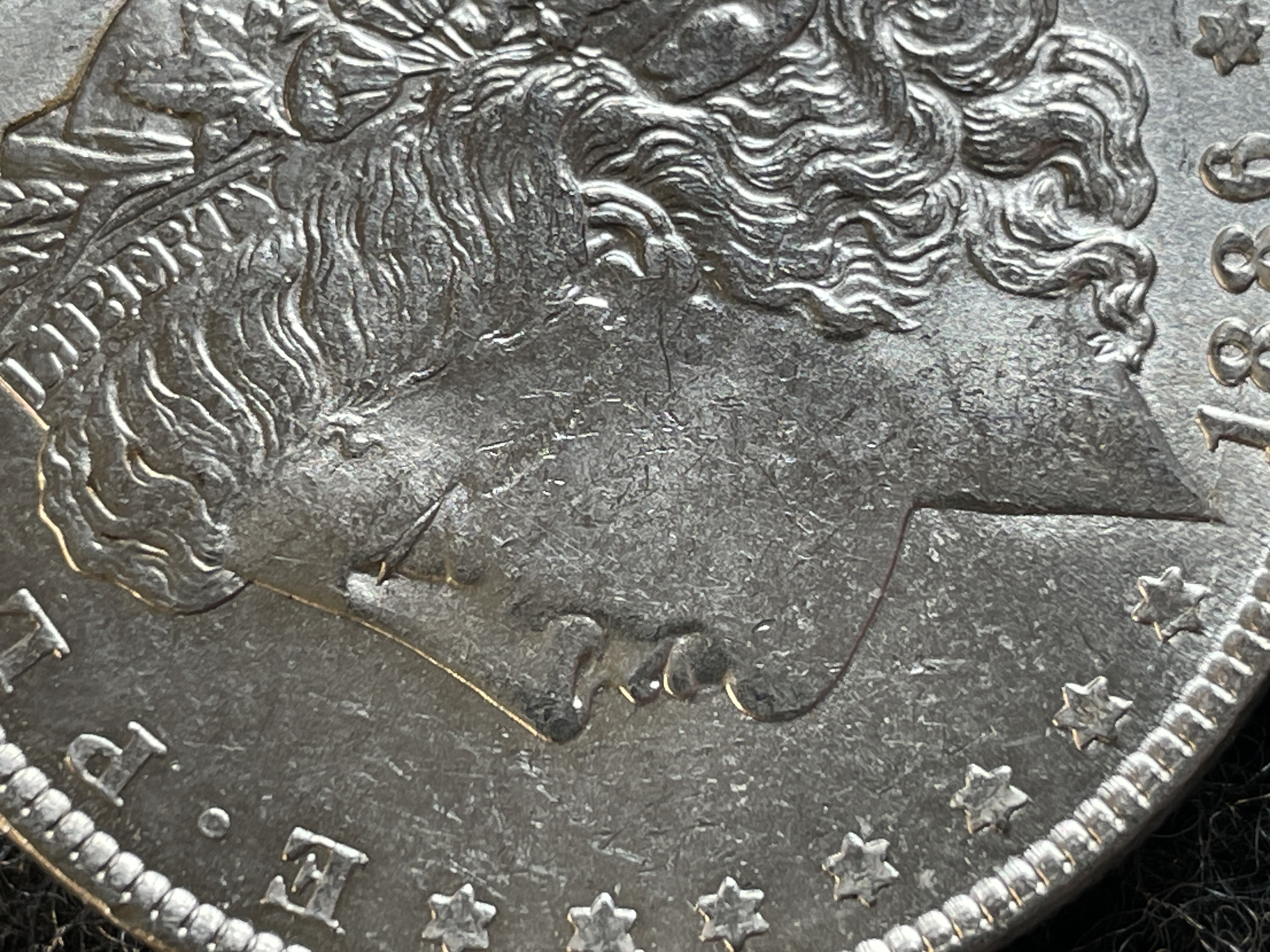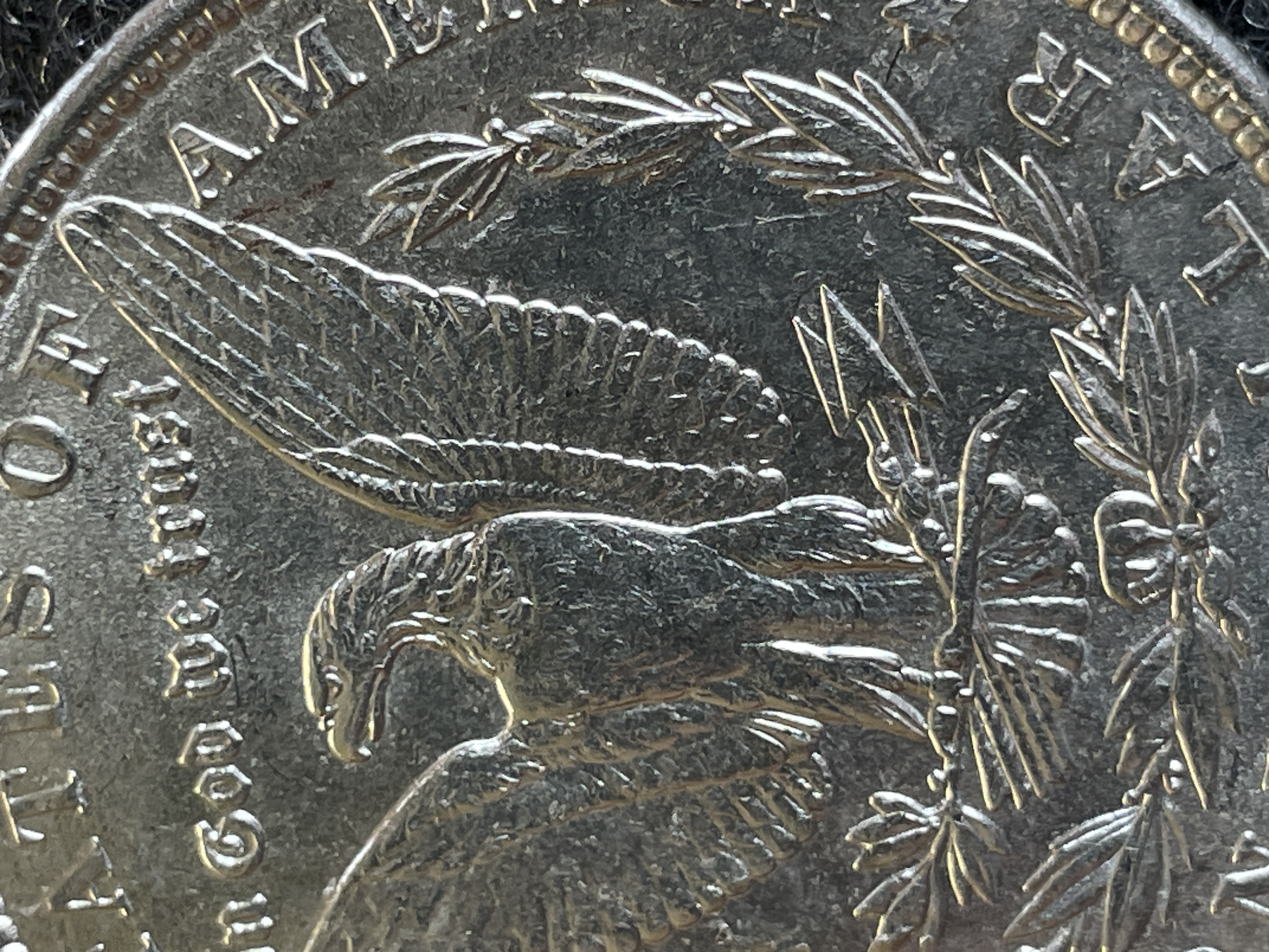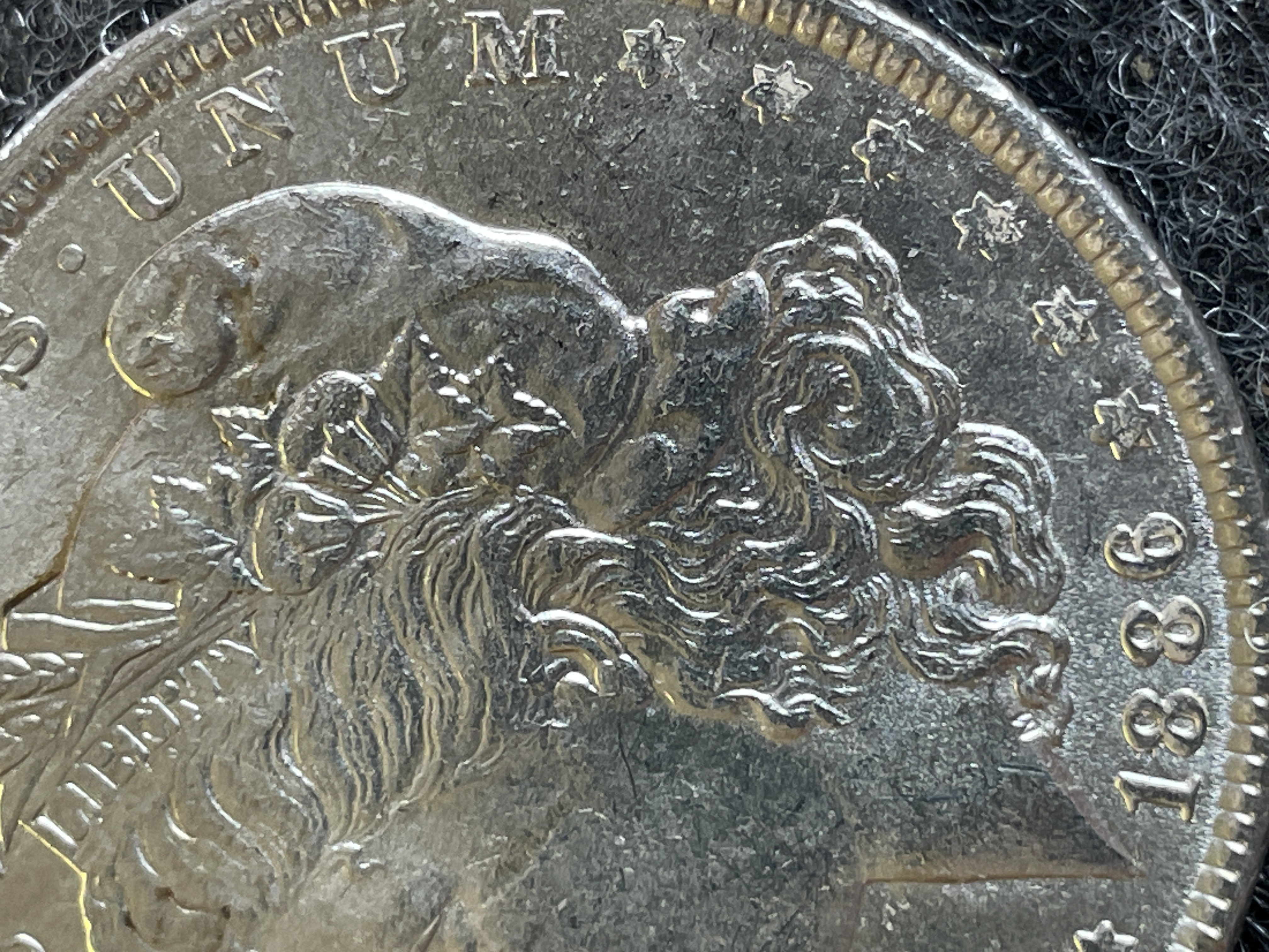An 1886 United States Morgan silver dollar coin featuring a profile of Liberty on the obverse and an eagle on the reverse.
