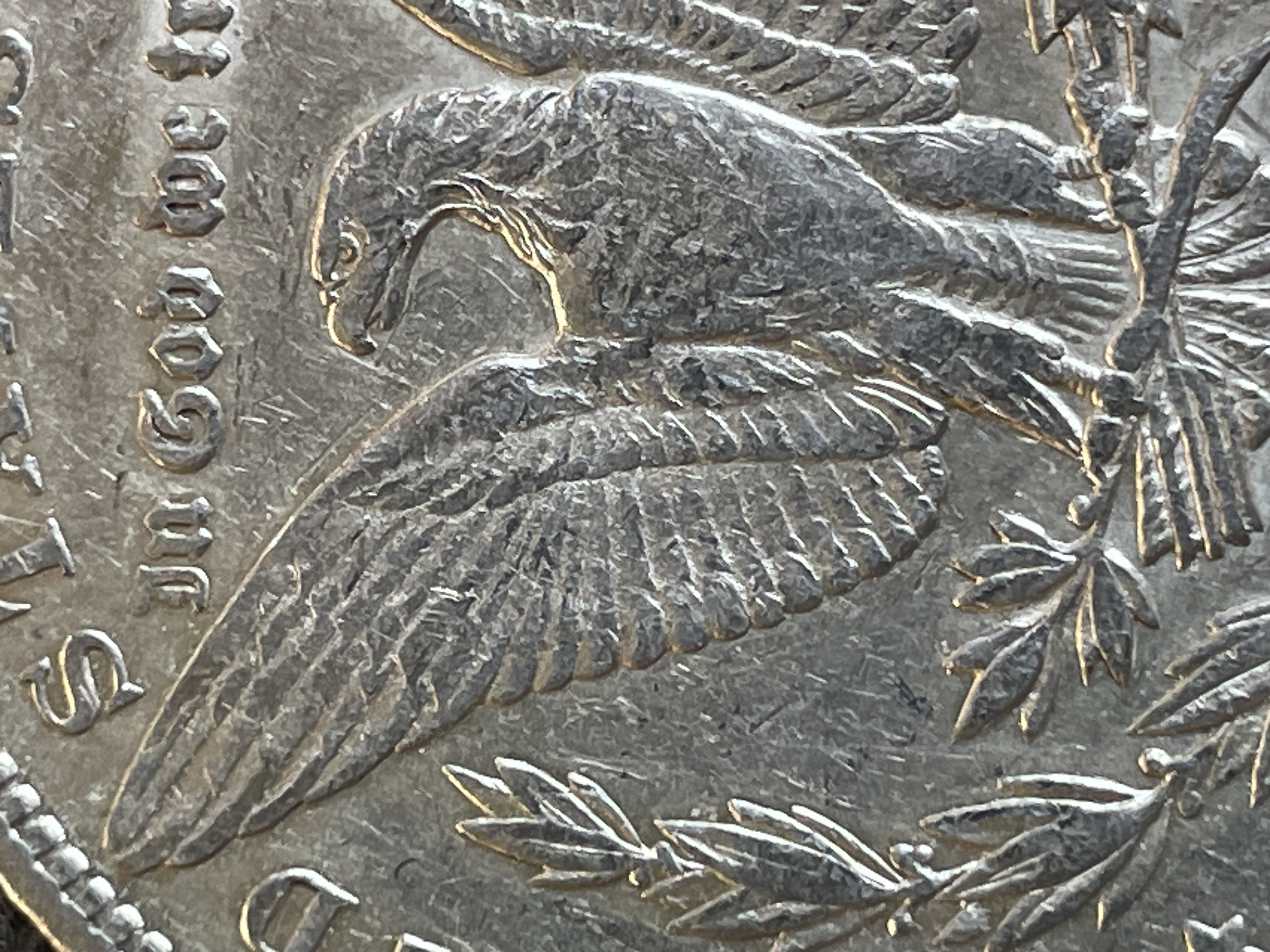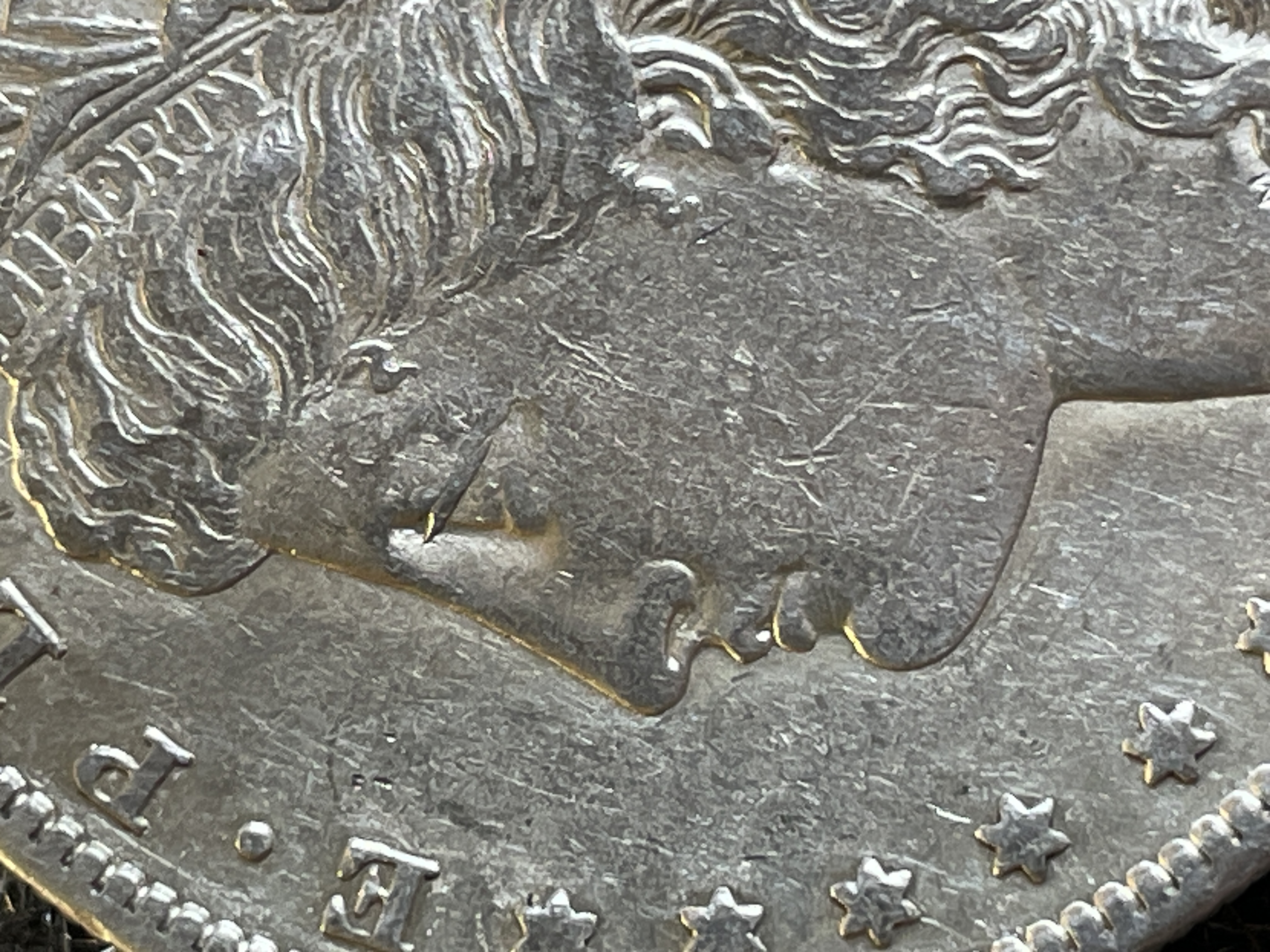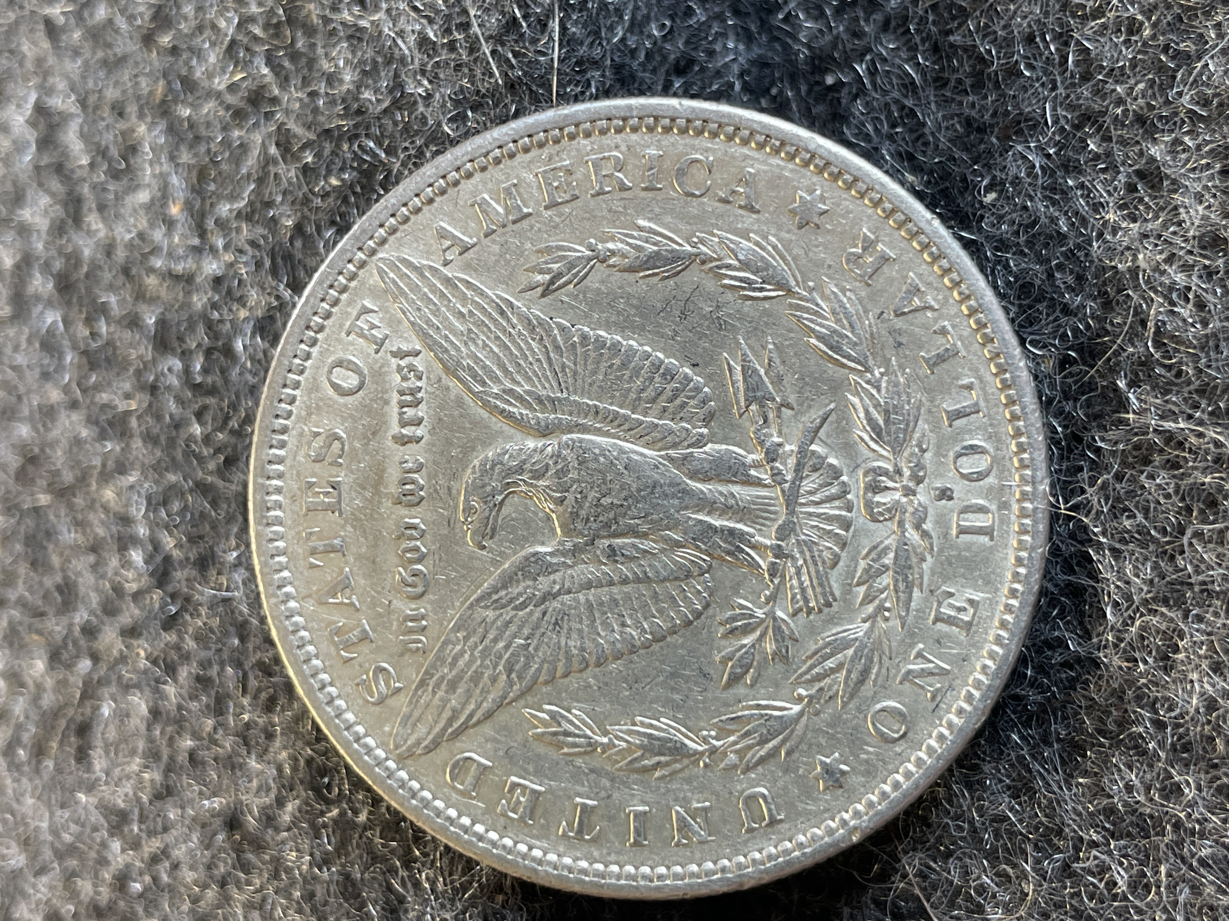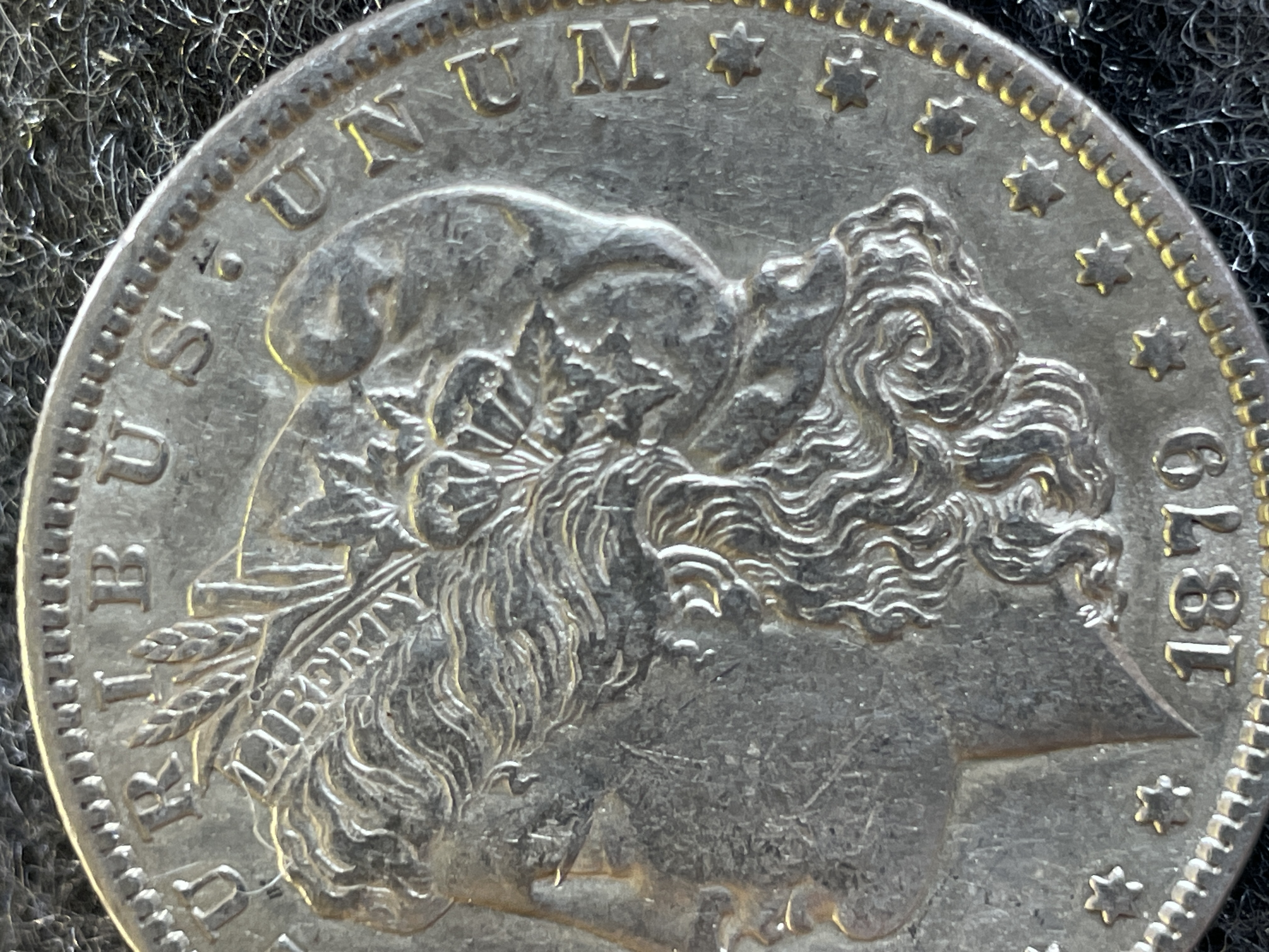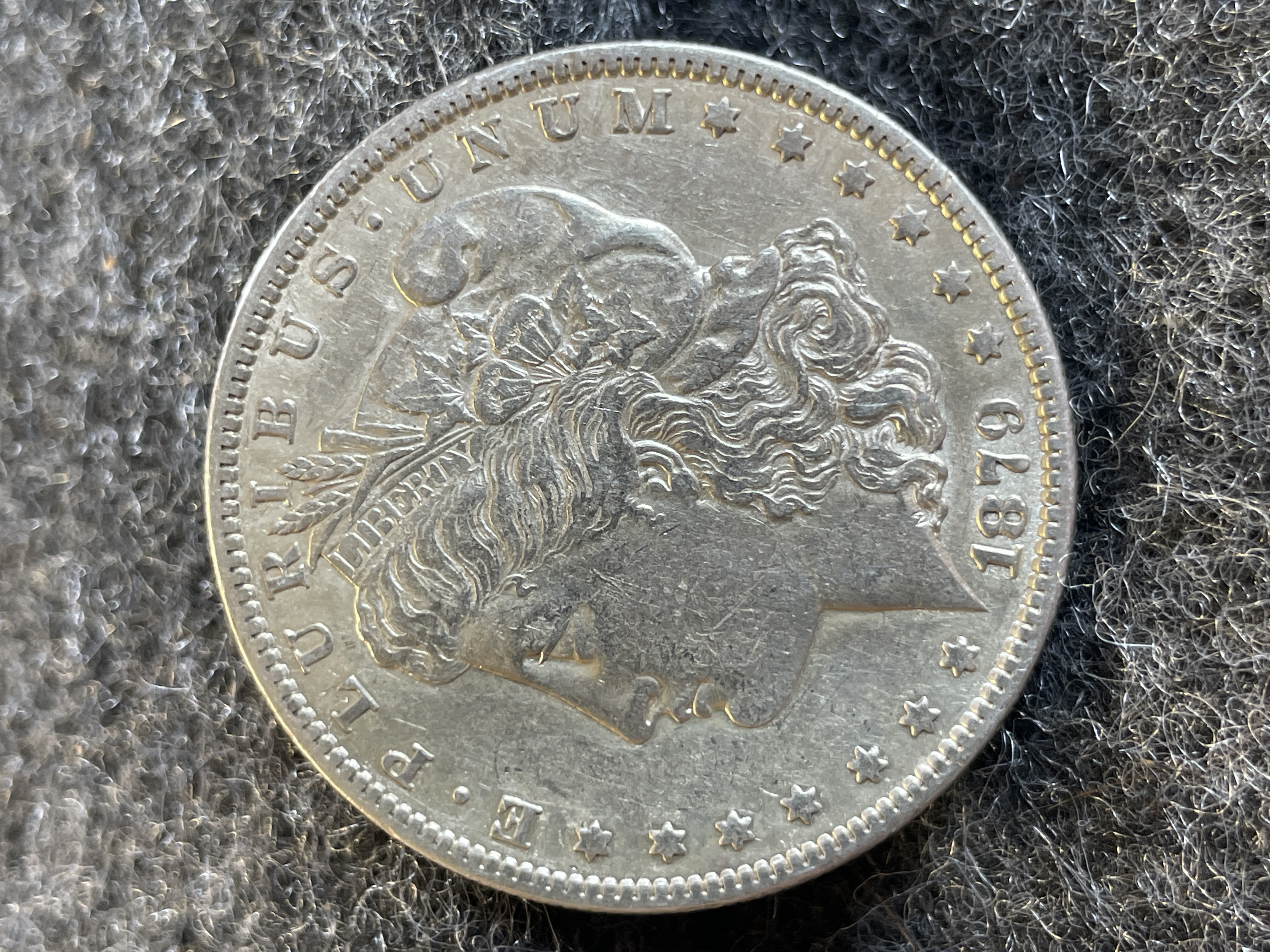 An 1879-S Morgan silver dollar featuring Lady Liberty on the obverse and an eagle with an S mint mark on the reverse.