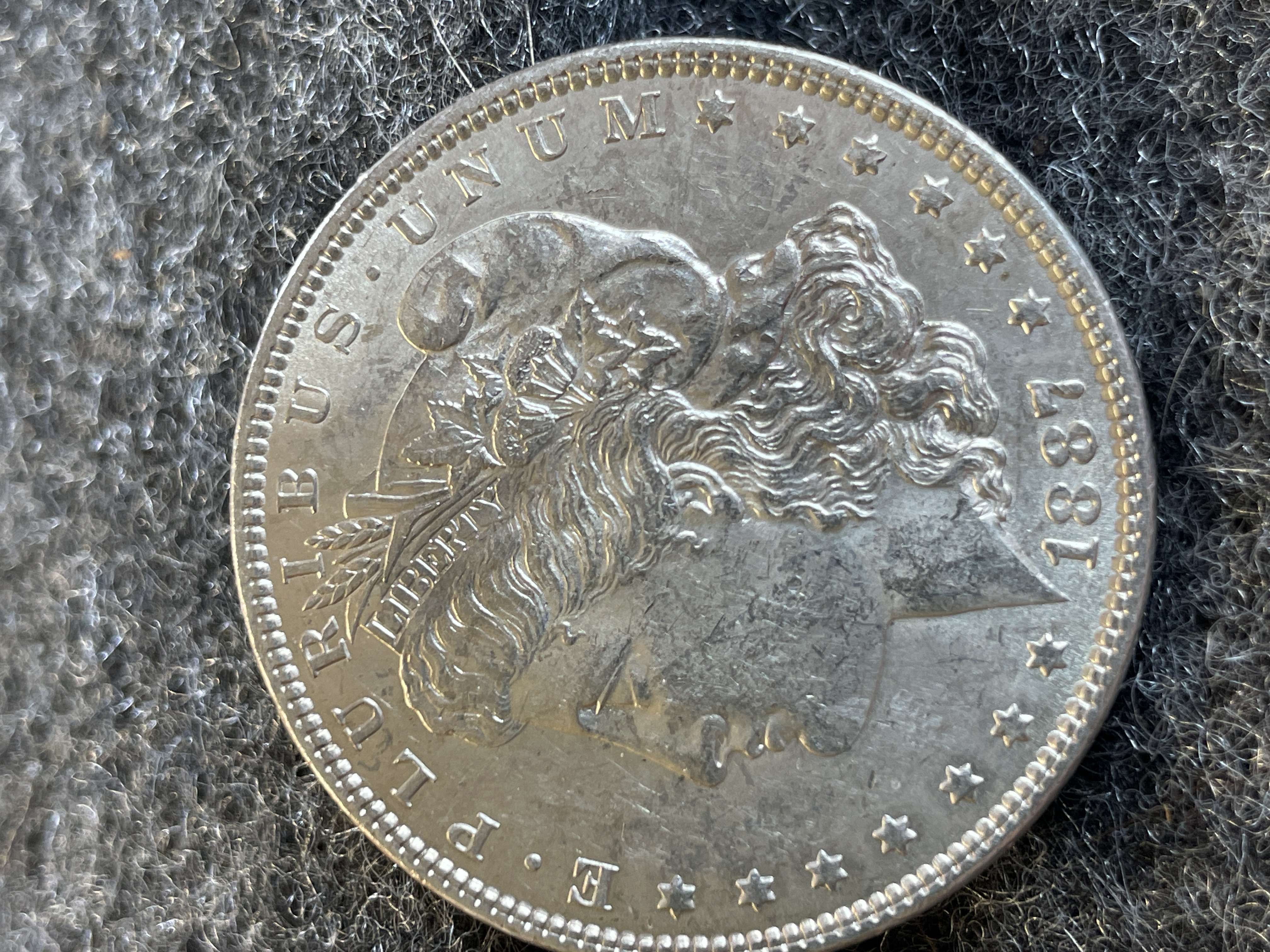An 1887 United States Morgan silver dollar coin featuring the profile of Liberty on the obverse and an eagle on the reverse.