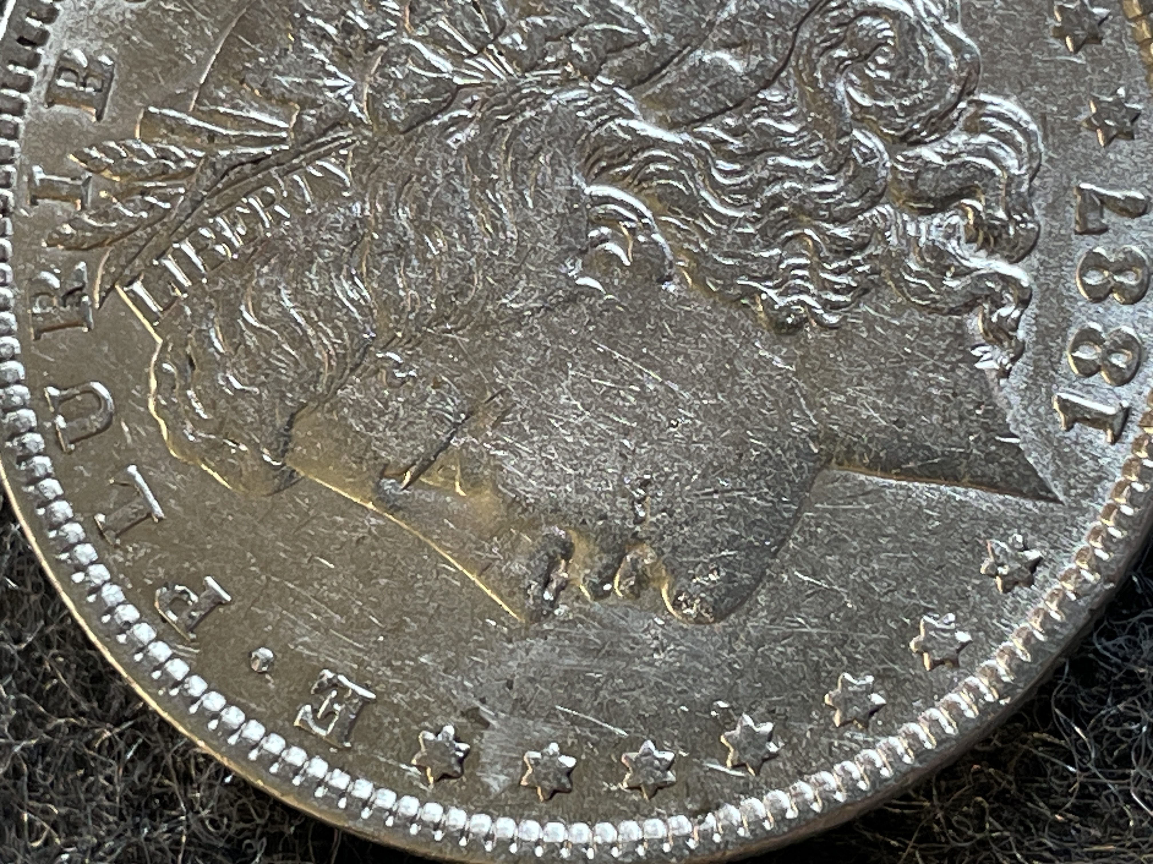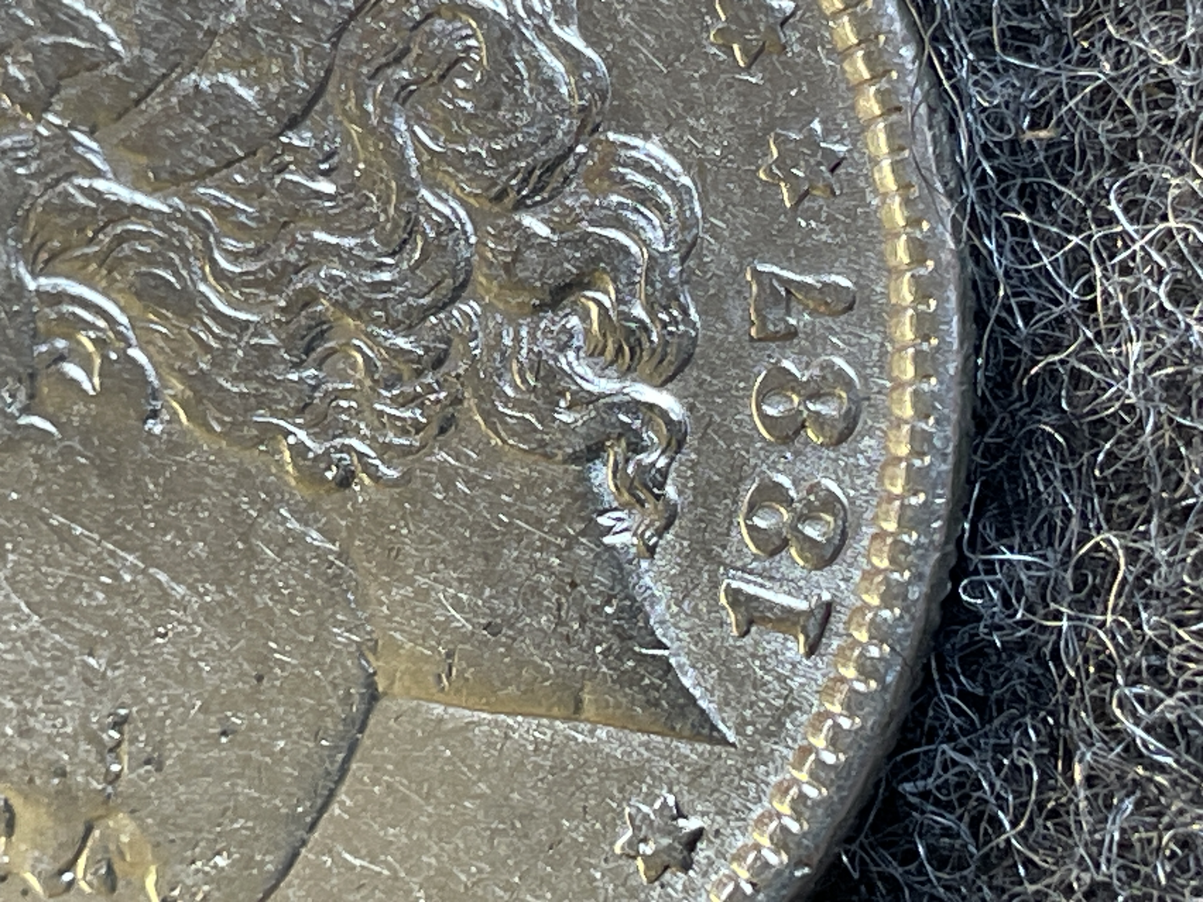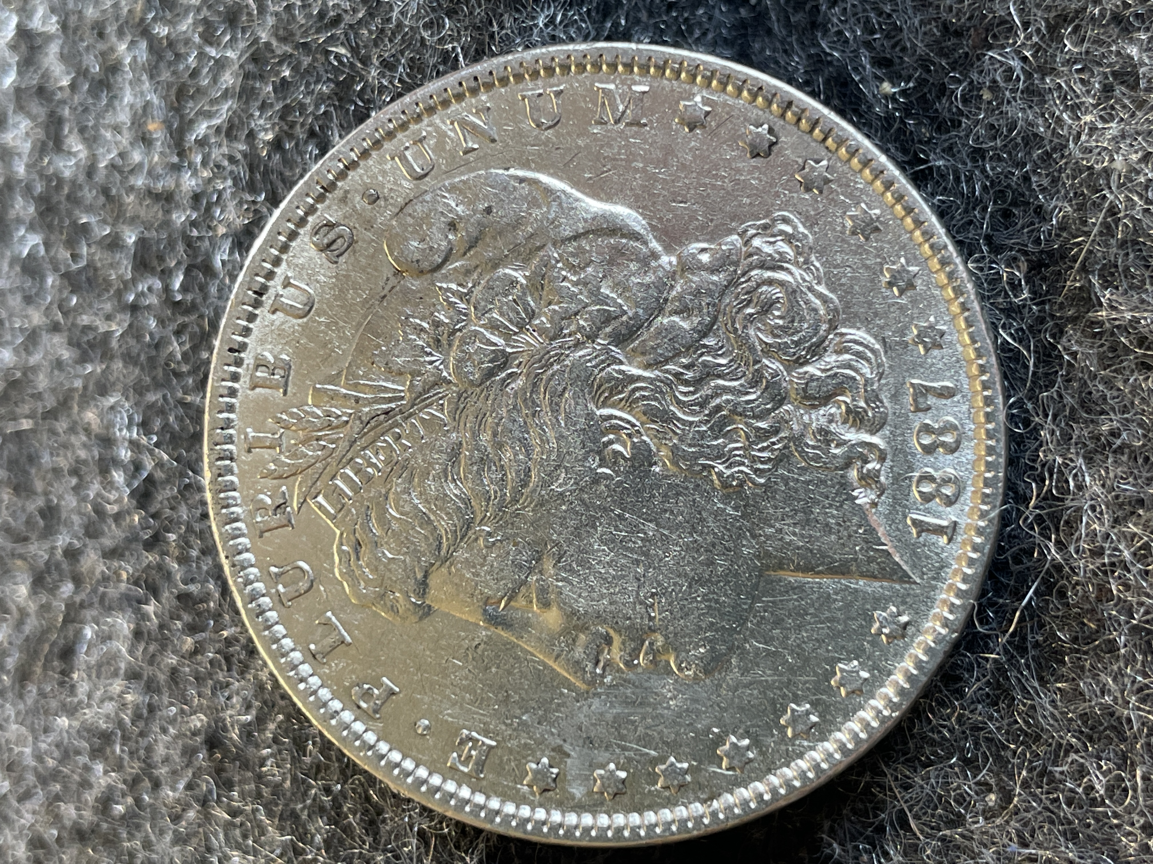 An 1887 Morgan silver dollar coin featuring Liberty on the obverse and an eagle with a wreath on the reverse.