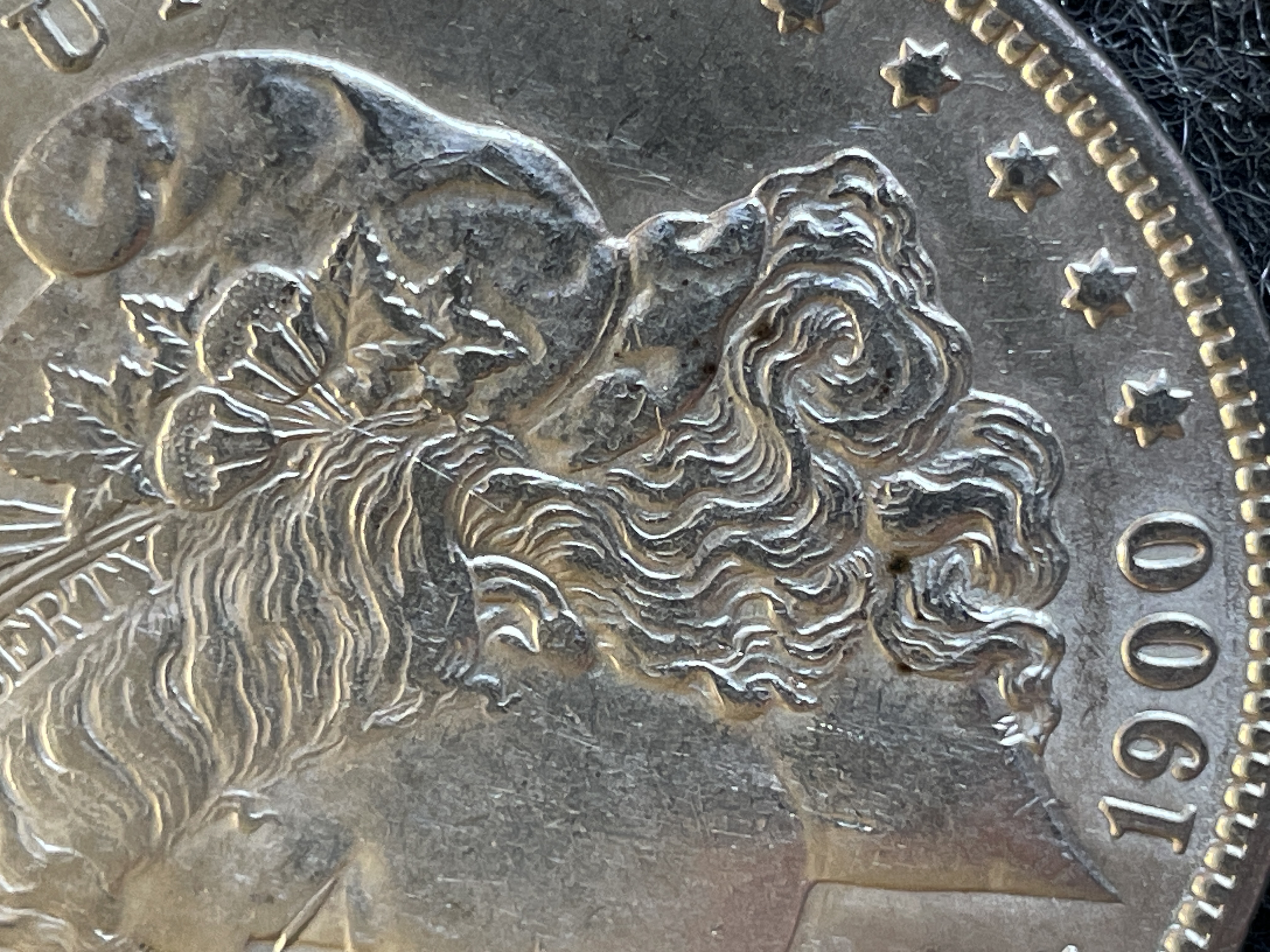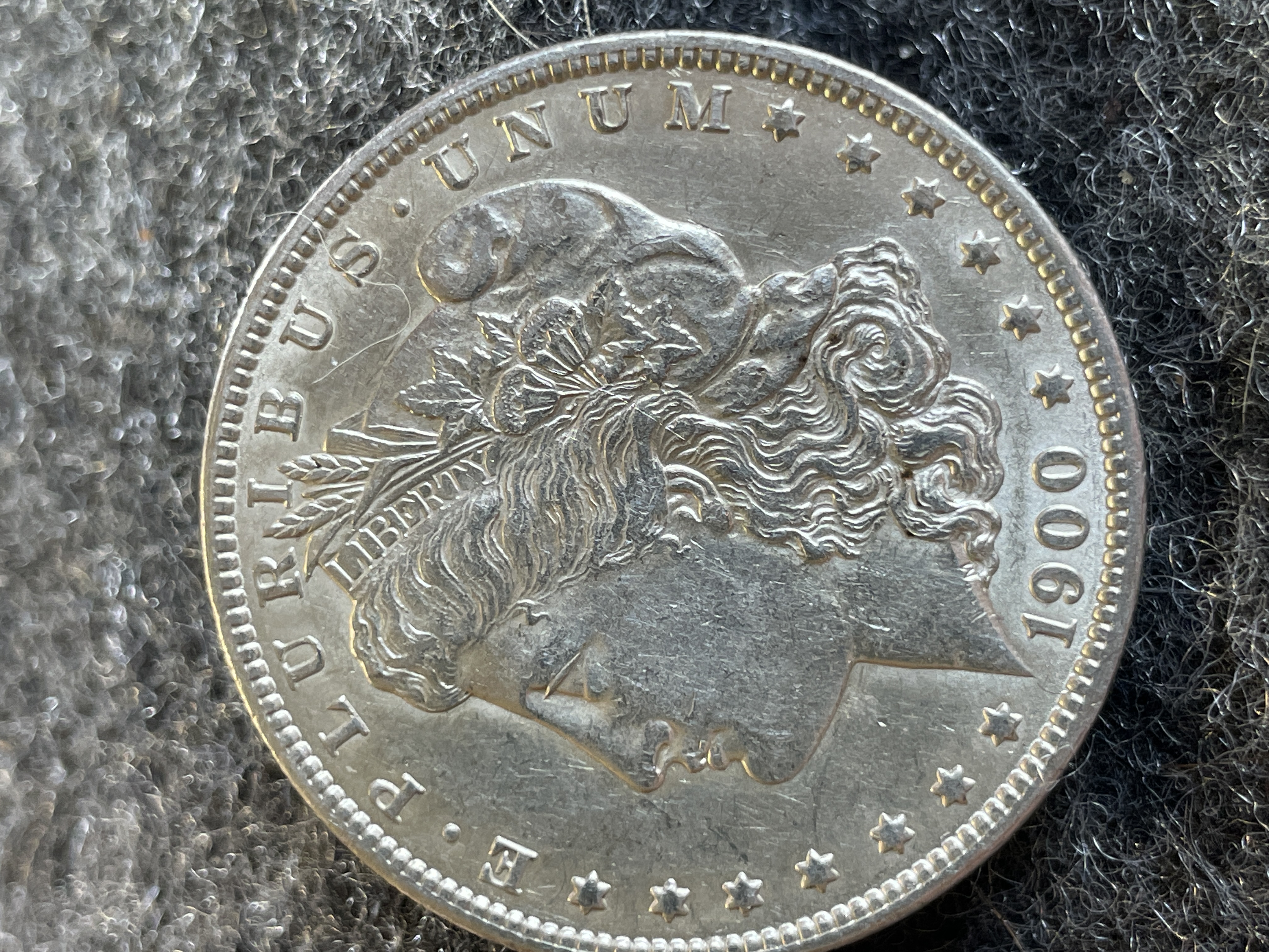 A 1900 United States Morgan silver dollar coin featuring the New Orleans O mint mark and Liberty head obverse.