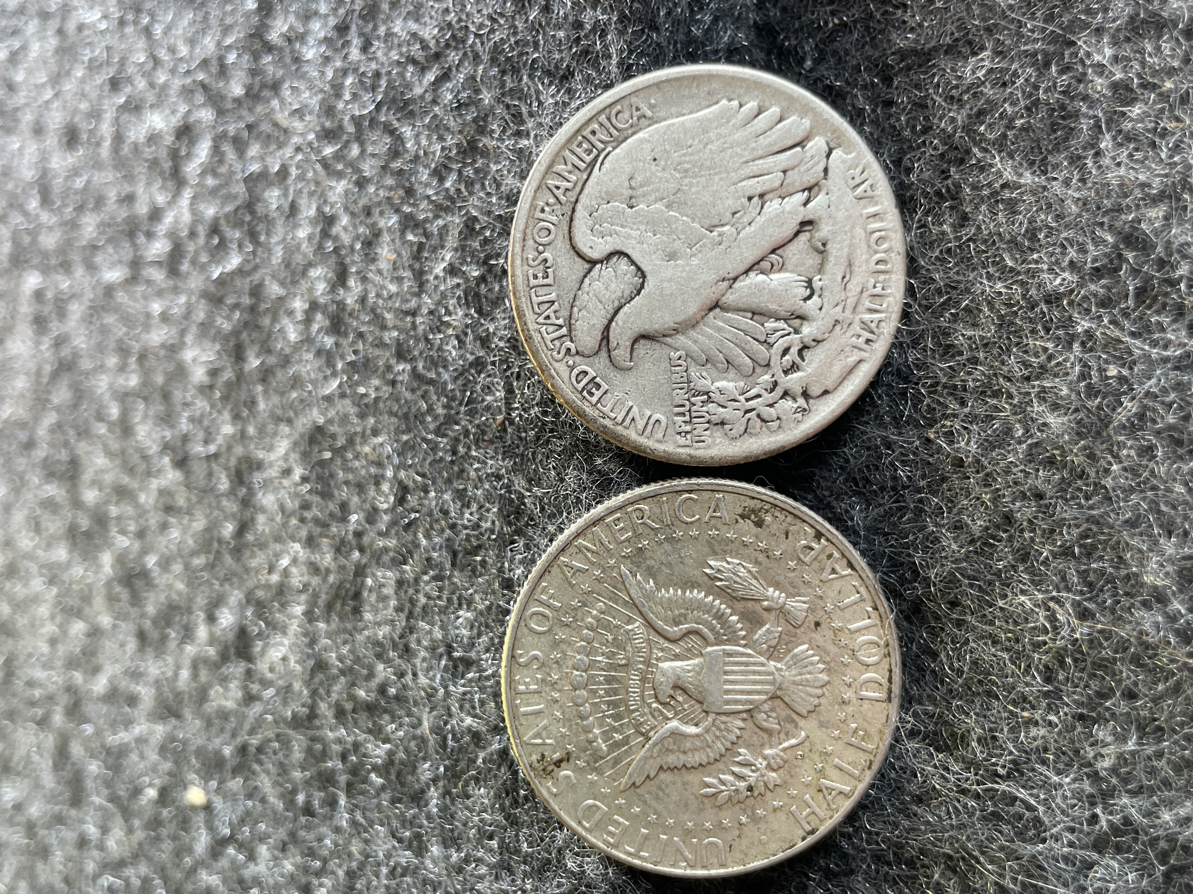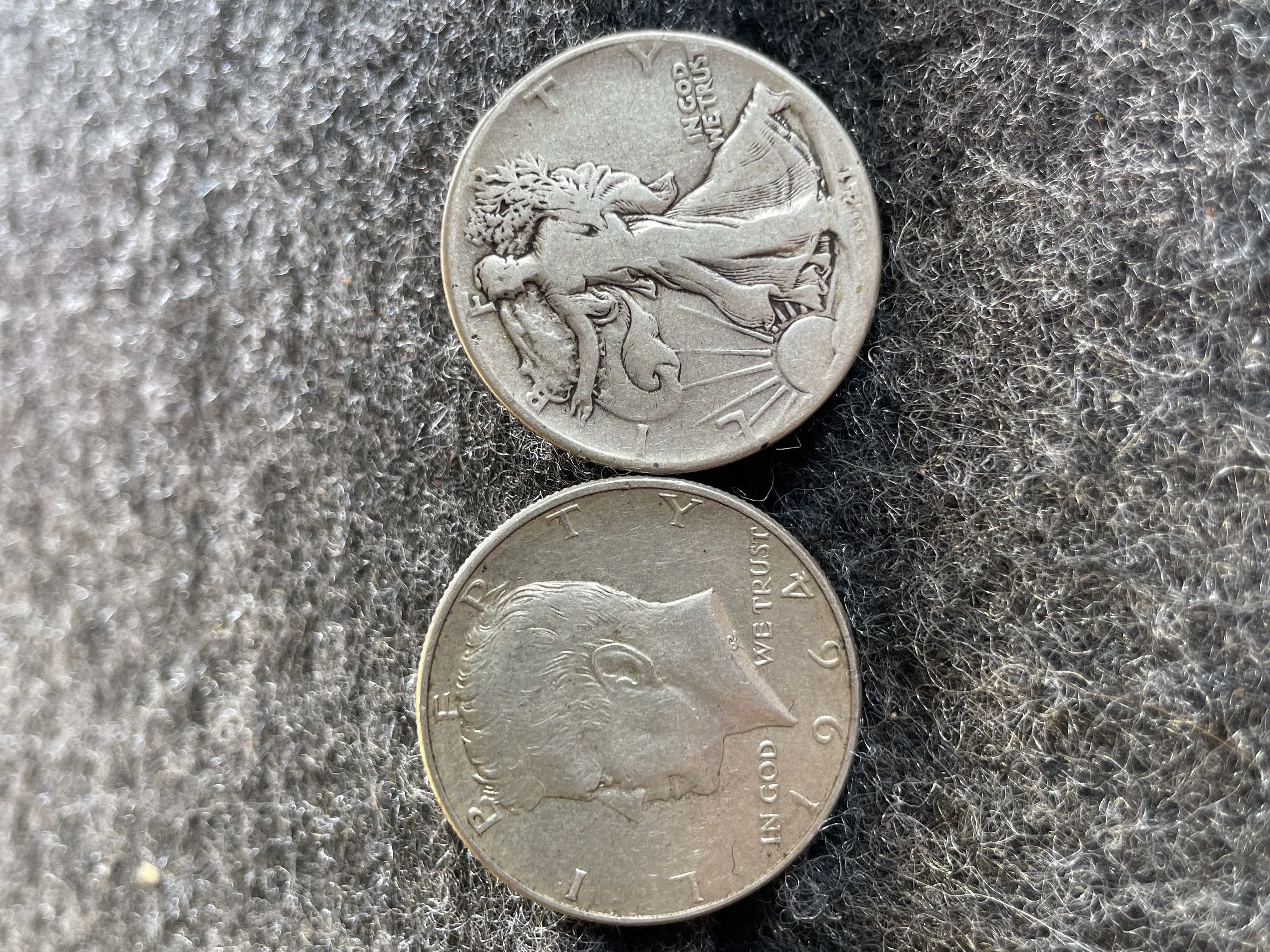 Two United States silver half dollars including a 1941 Walking Liberty and a 1964 Kennedy.