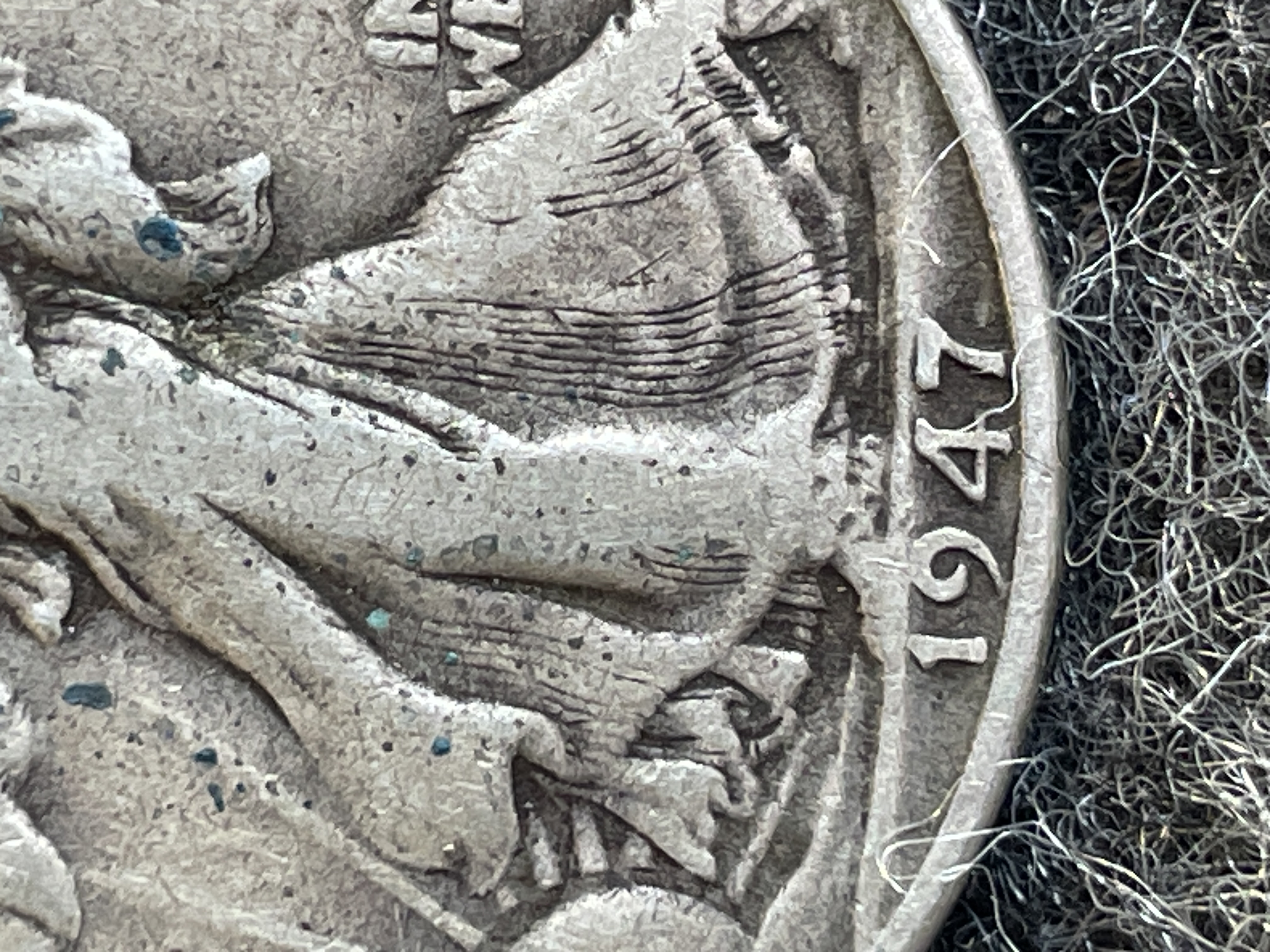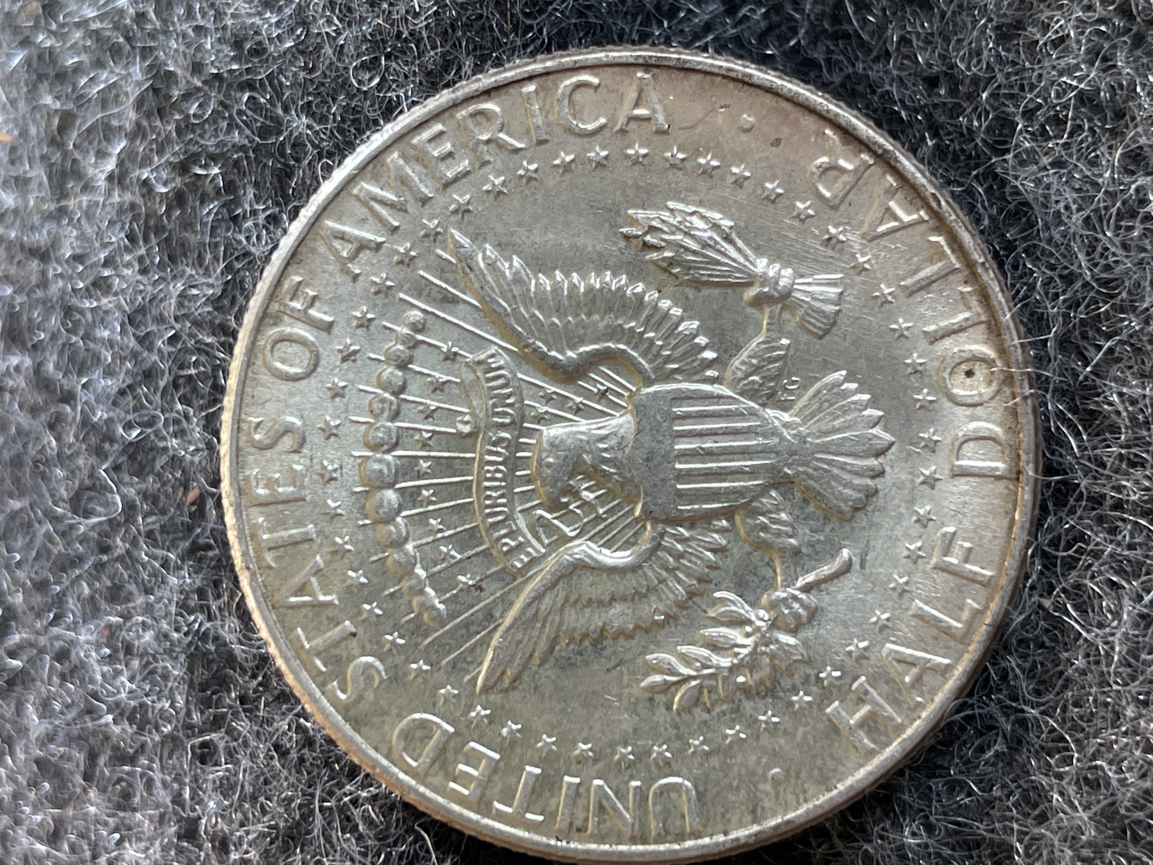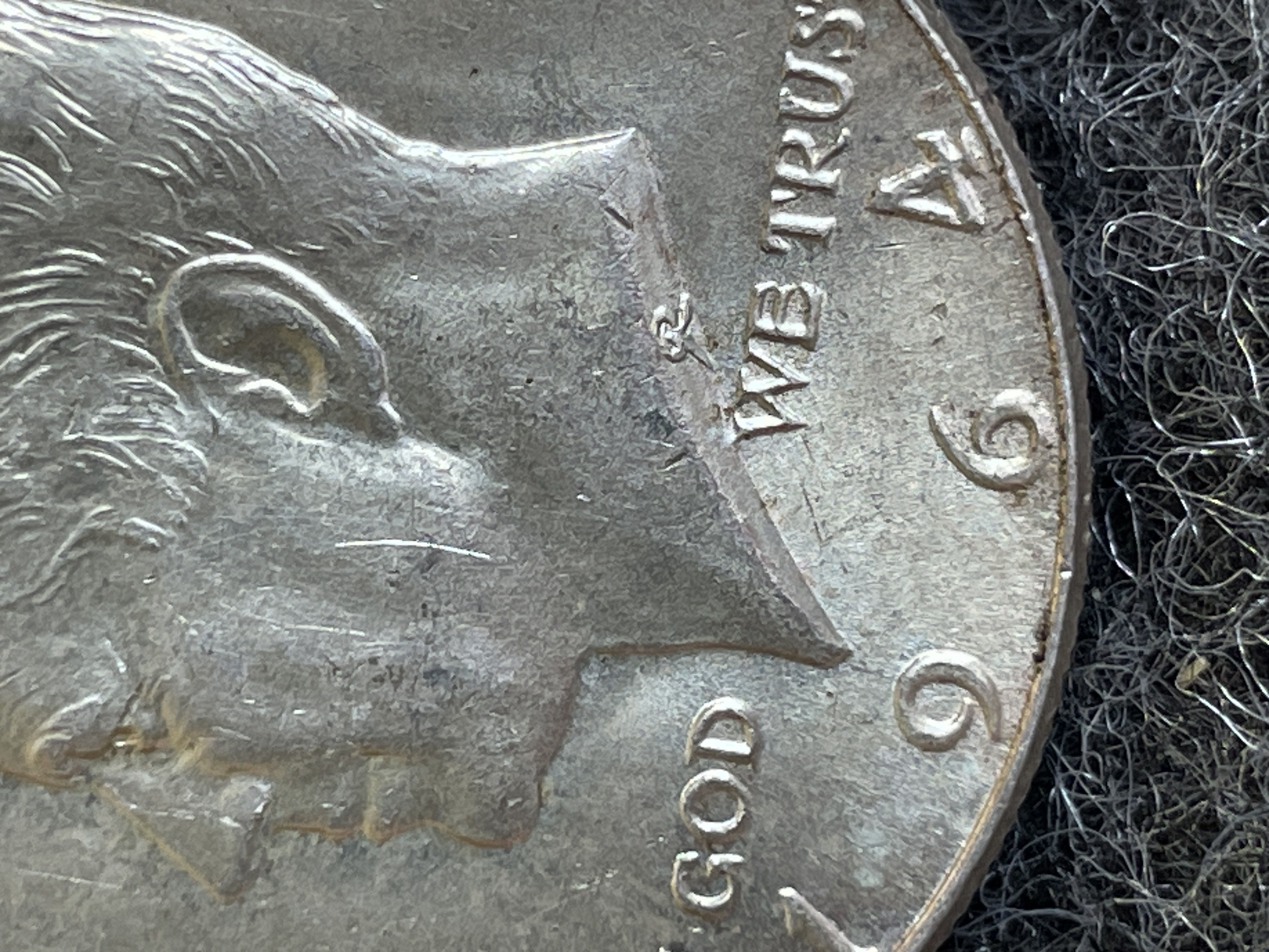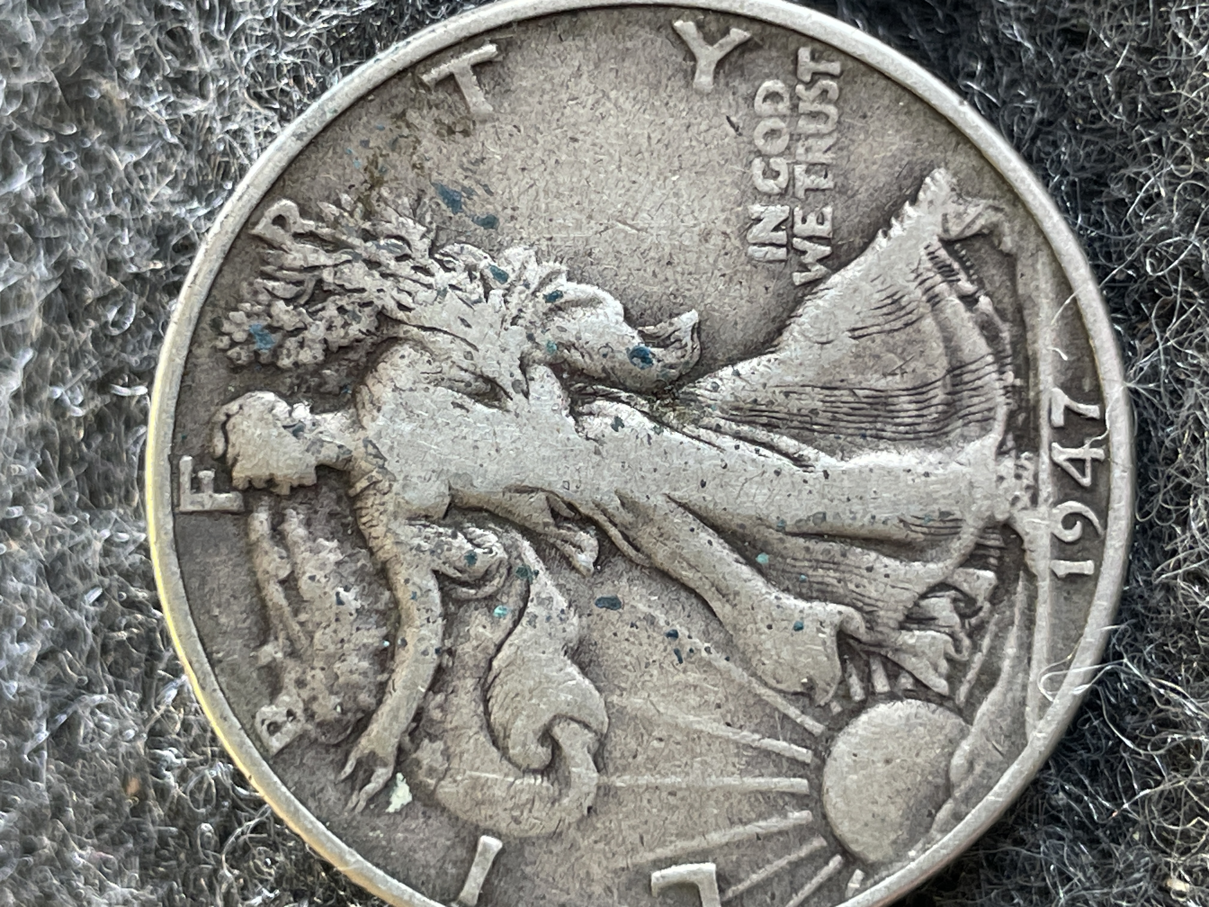 Two silver-toned United States half-dollar coins including a 1947 Walking Liberty and a 1964 Kennedy featuring standard inscriptions.