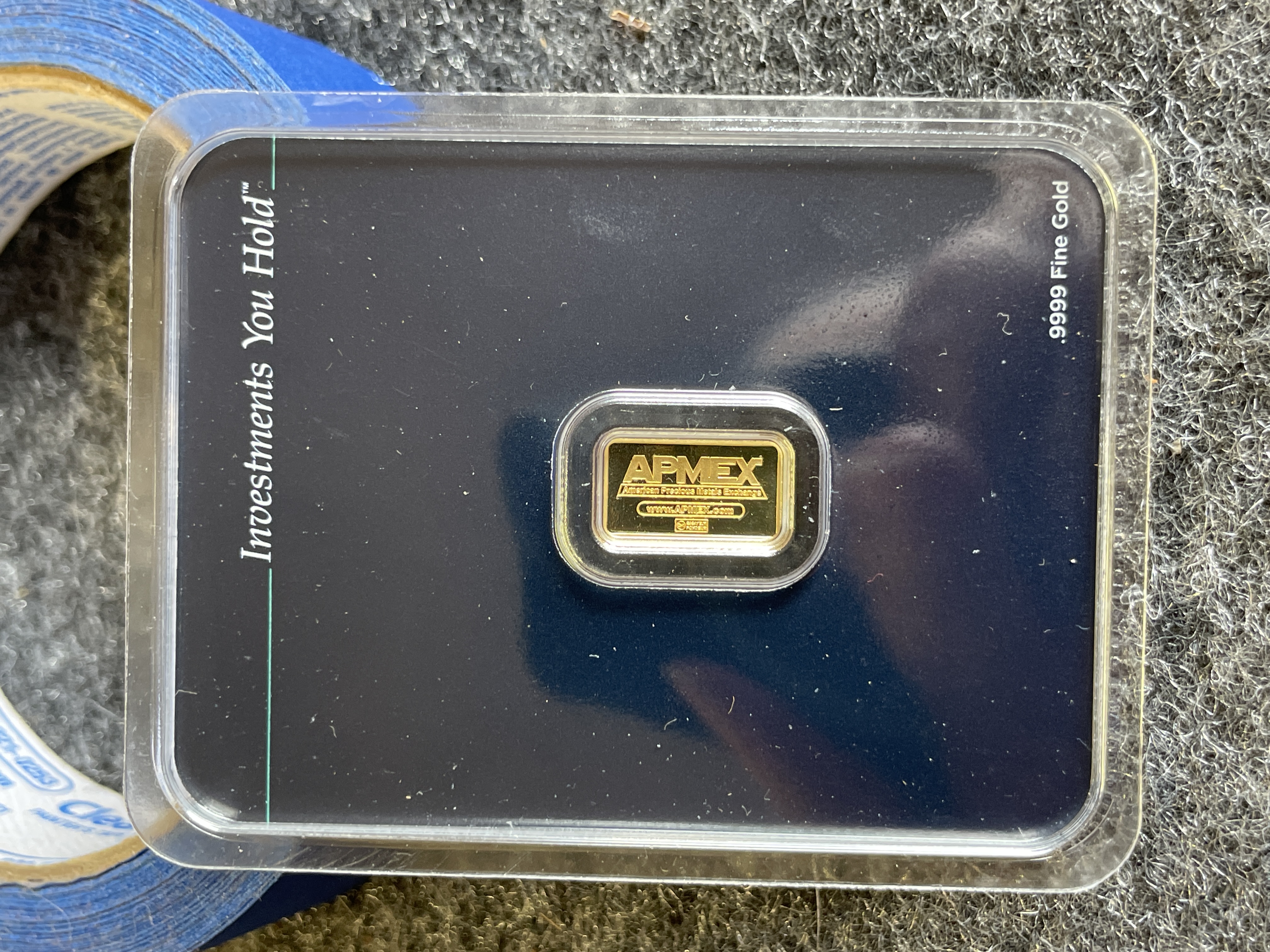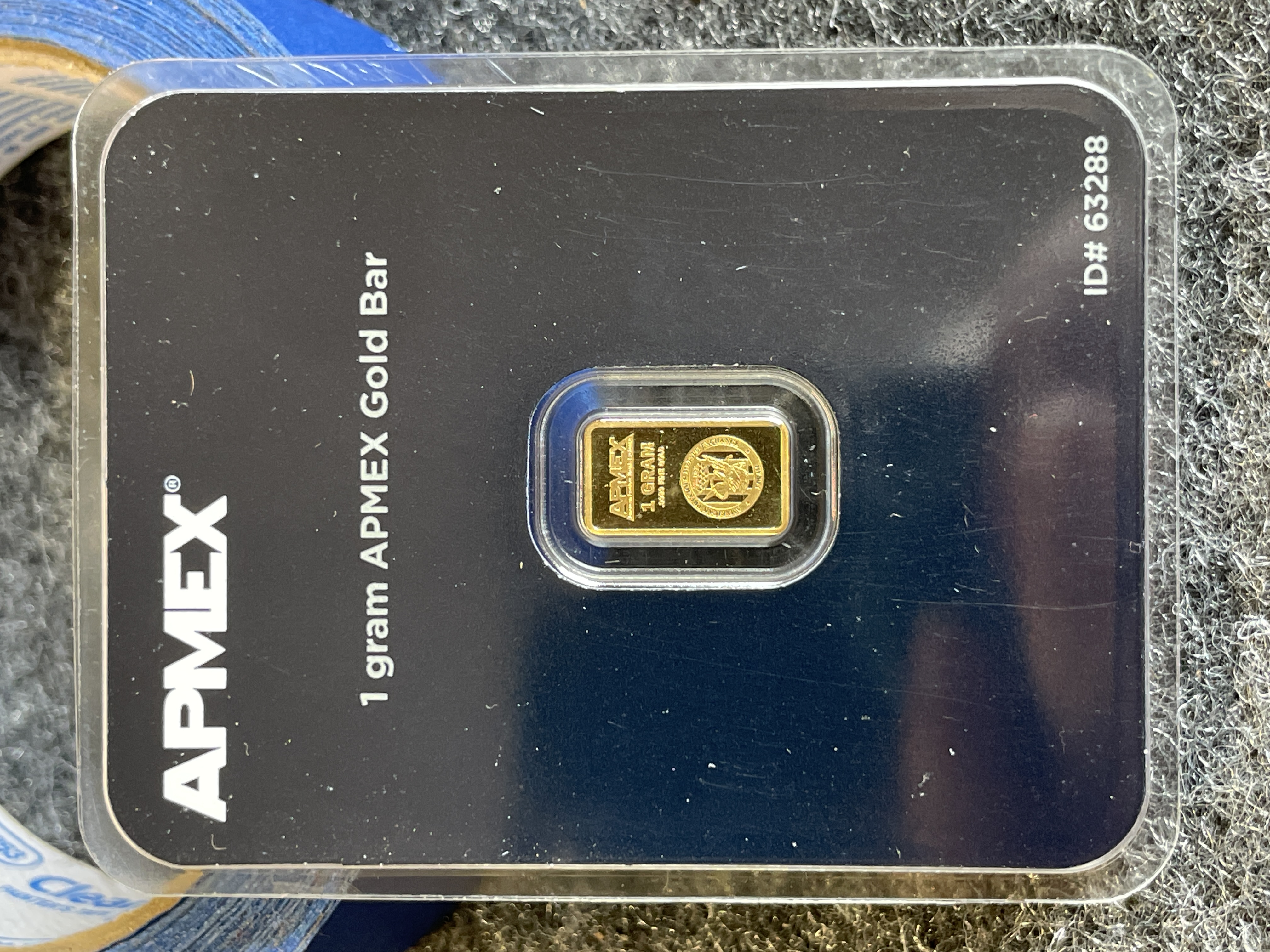 A single 1-gram gold bar from the American Precious Metals Exchange featuring .9999 fine gold purity and sealed in original tamper-evident packaging.