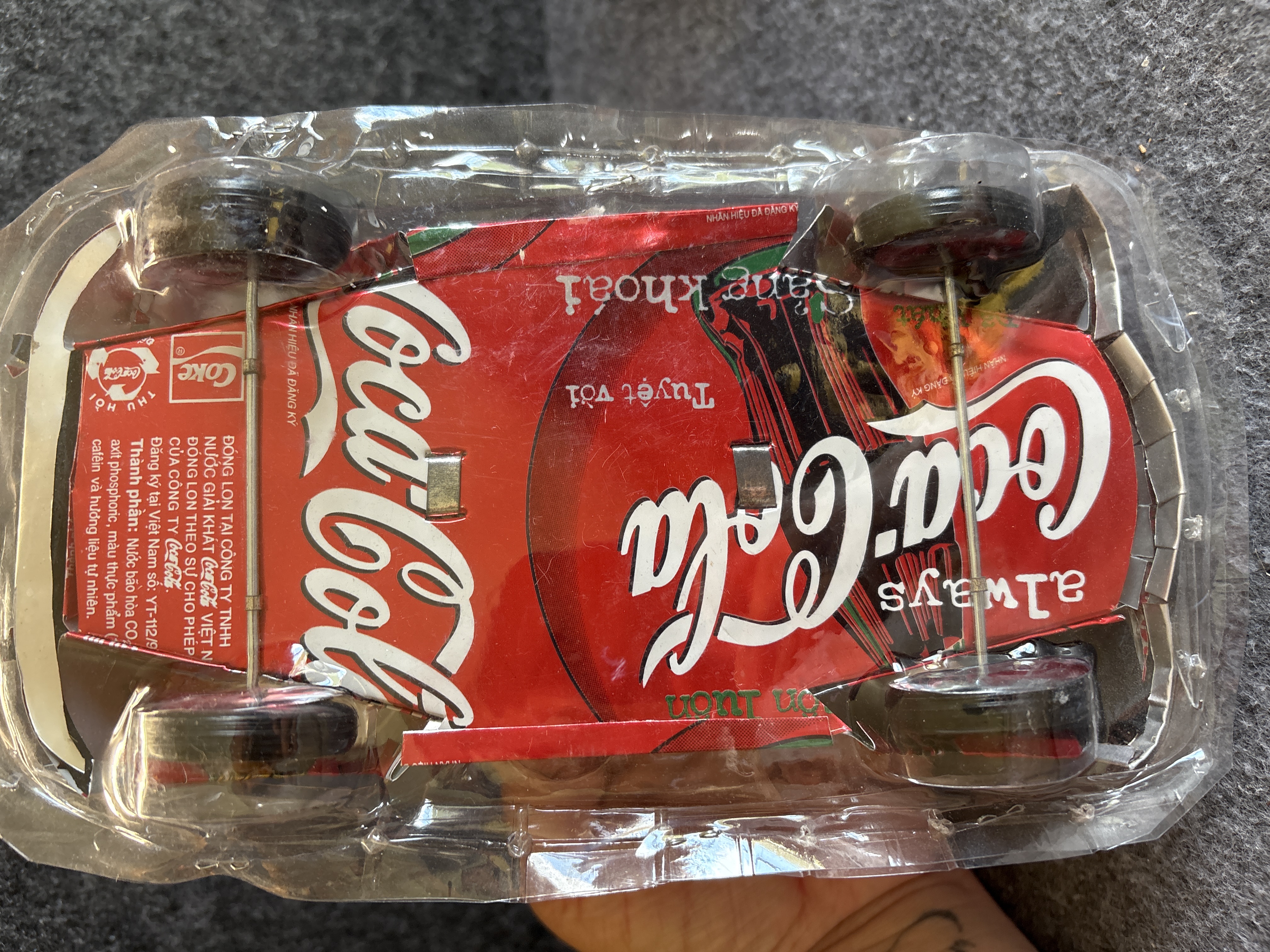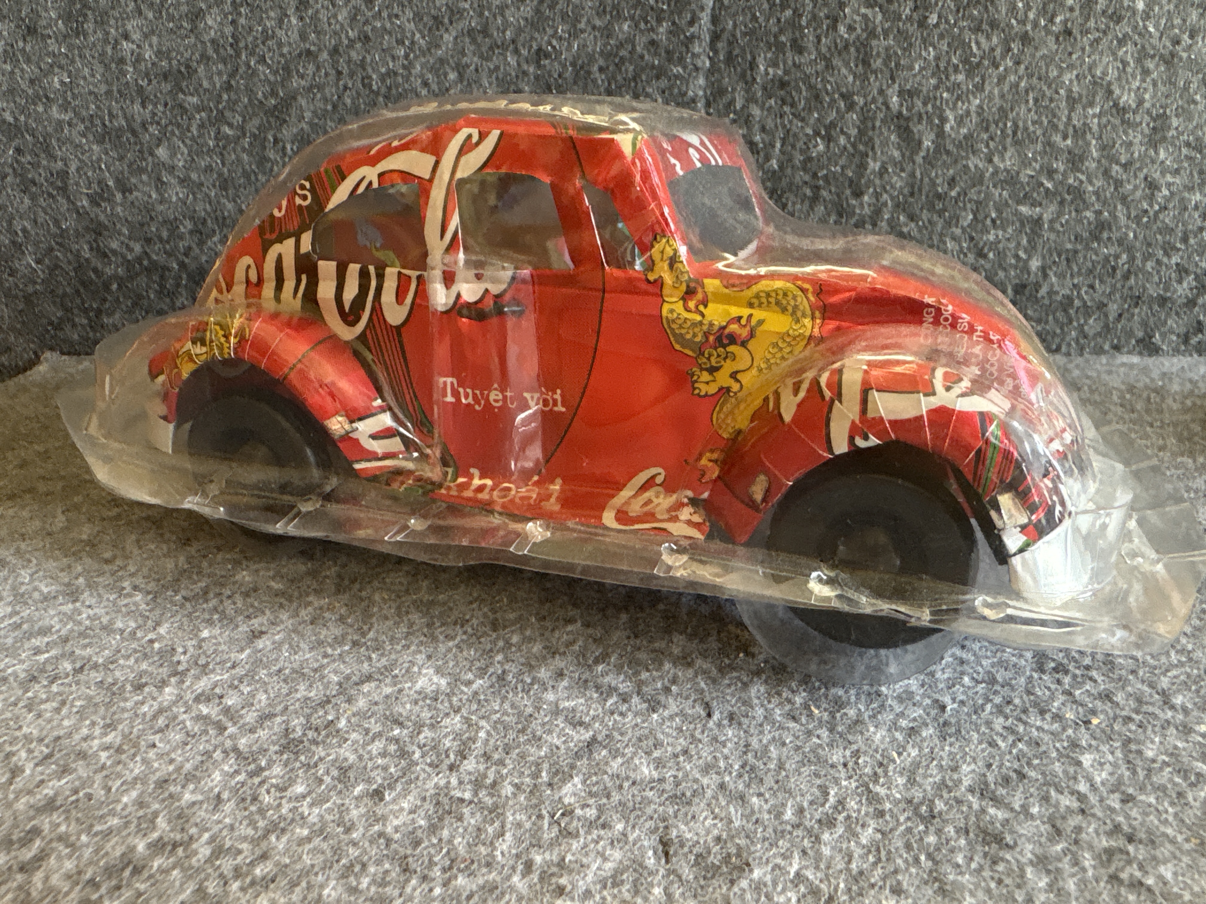 A Folk Art Model of a Volkswagen Beetle Crafted from Upcycled Vietnamese Coca-Cola Cans