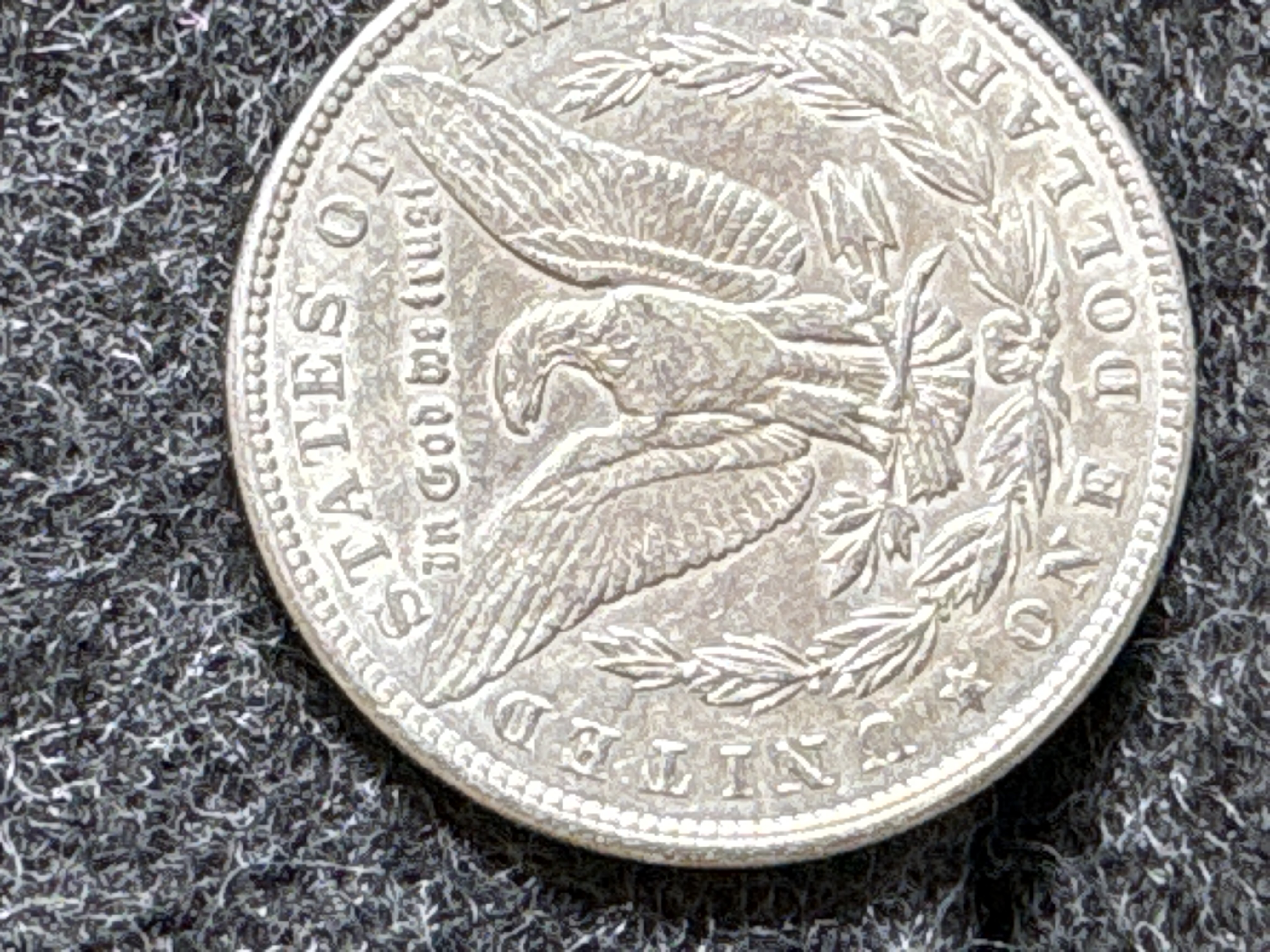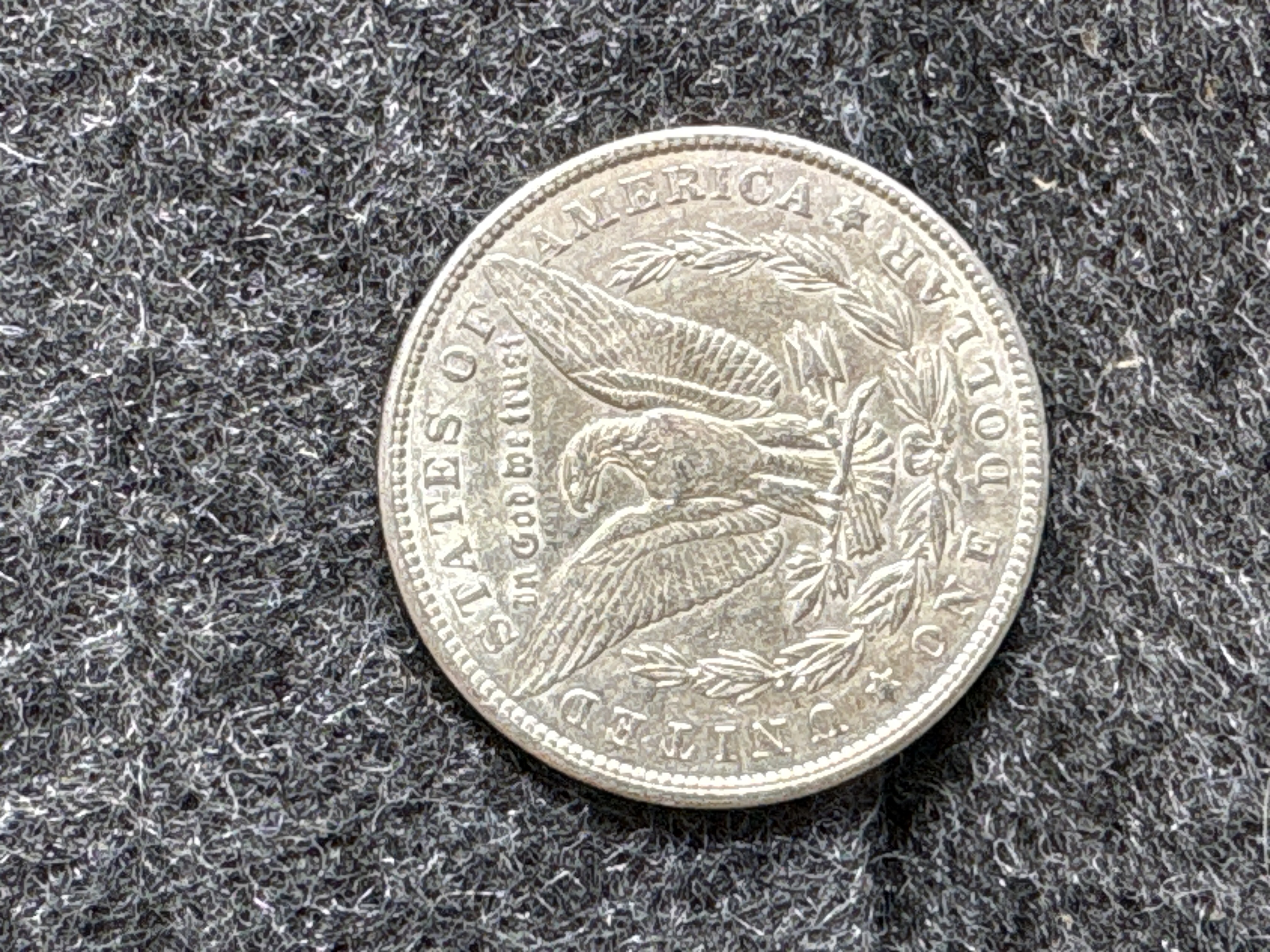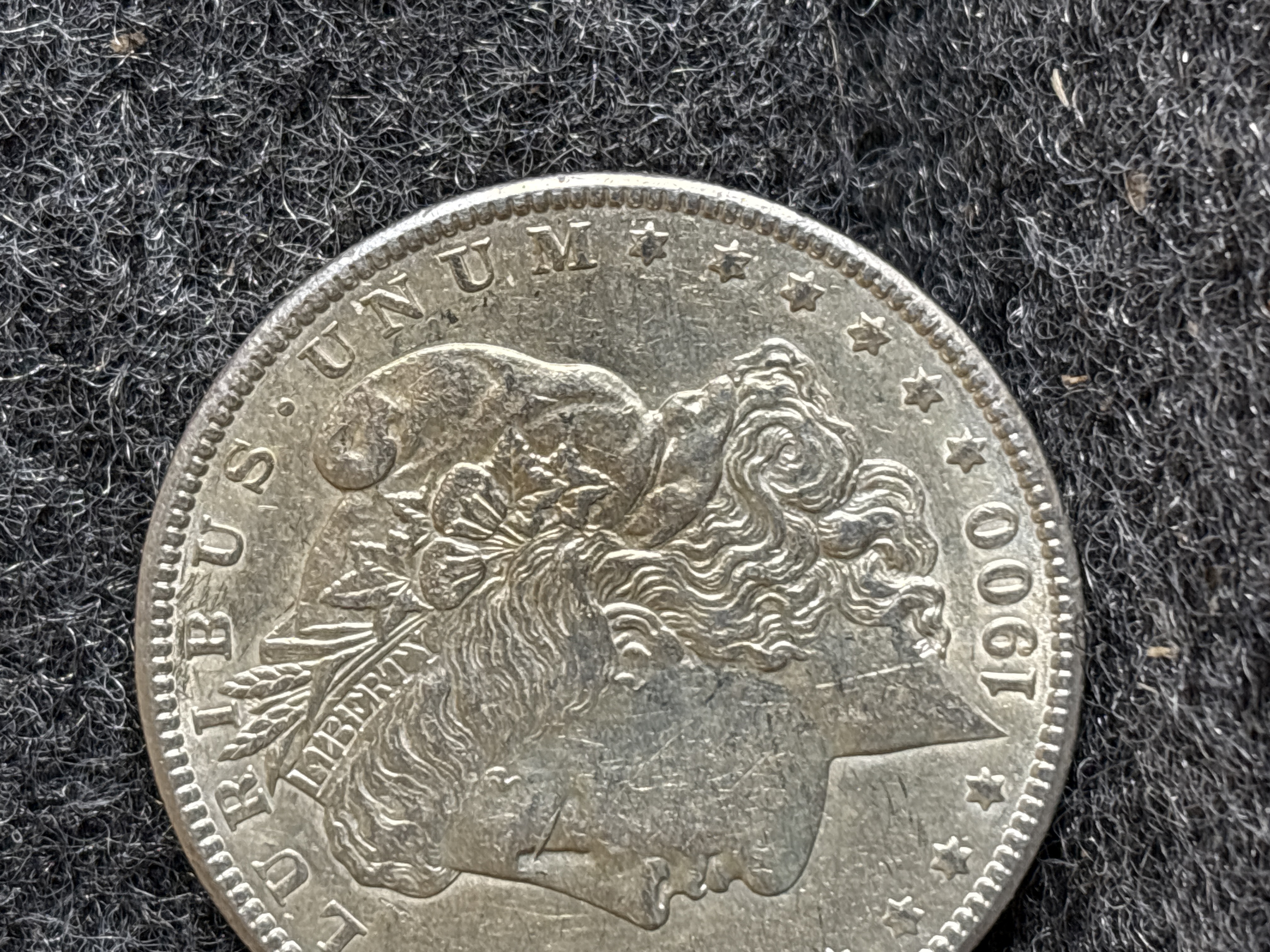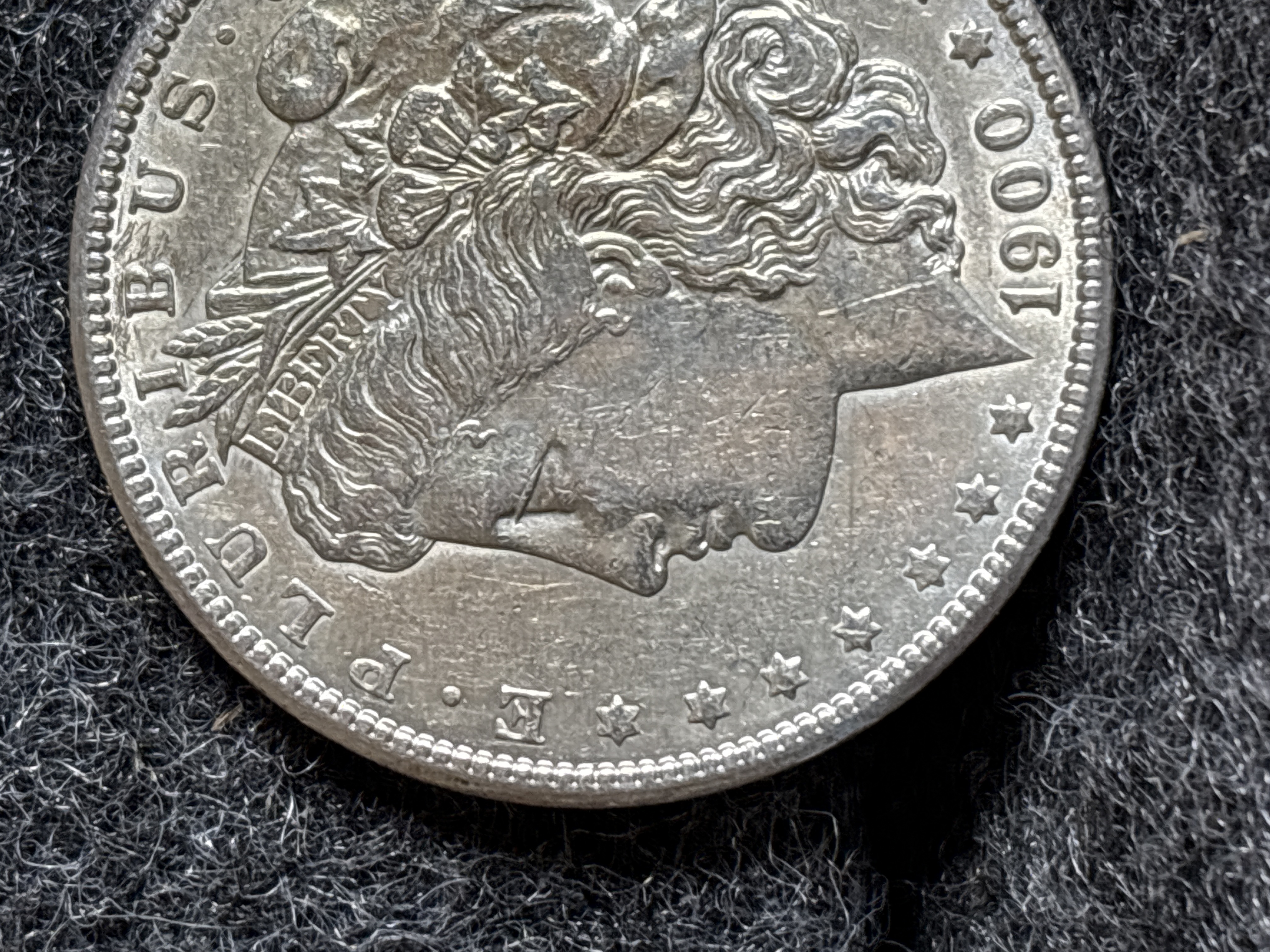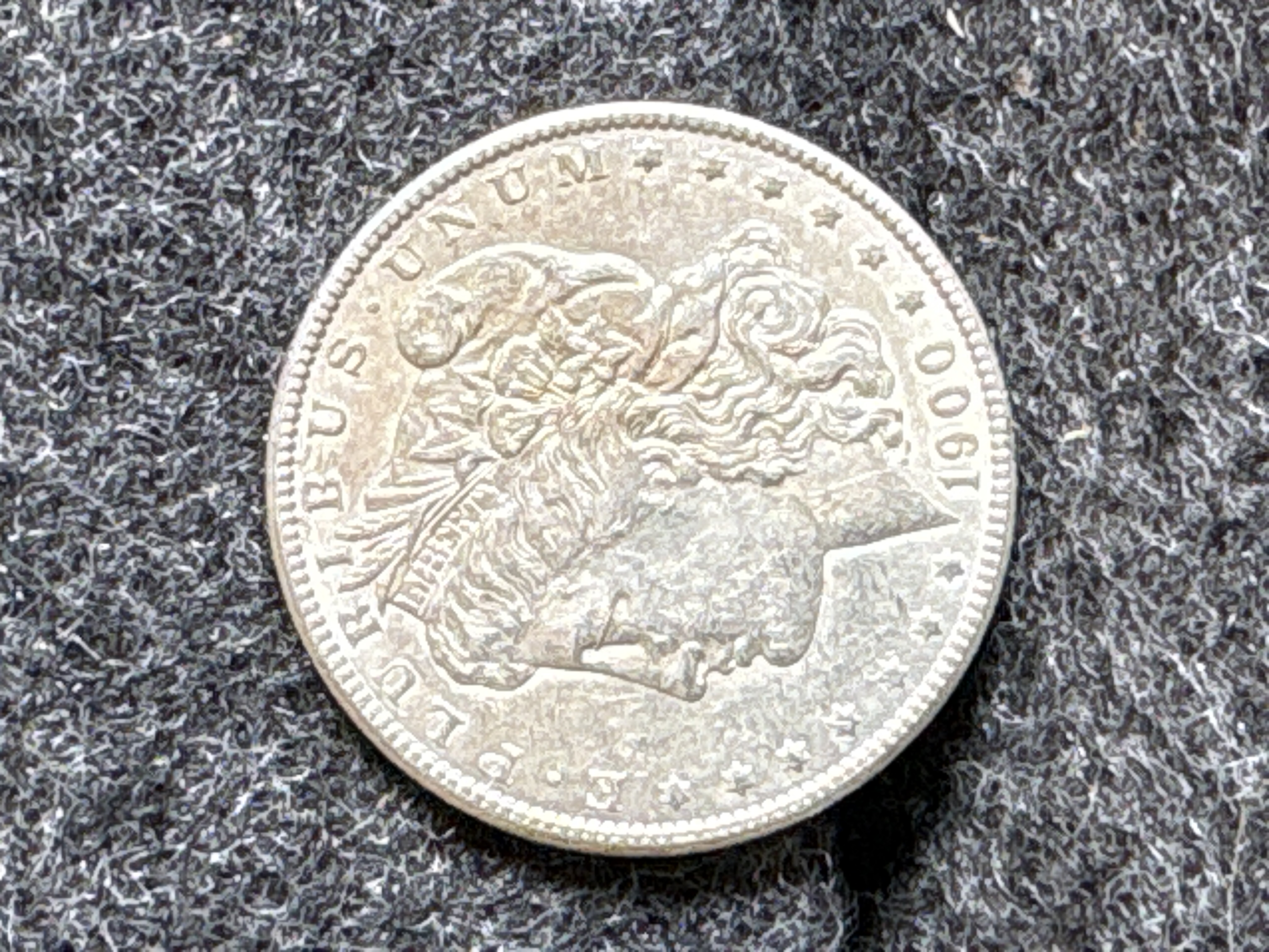 A 1900 Morgan silver dollar coin featuring Lady Liberty on the obverse and an eagle with a wreath on the reverse.
