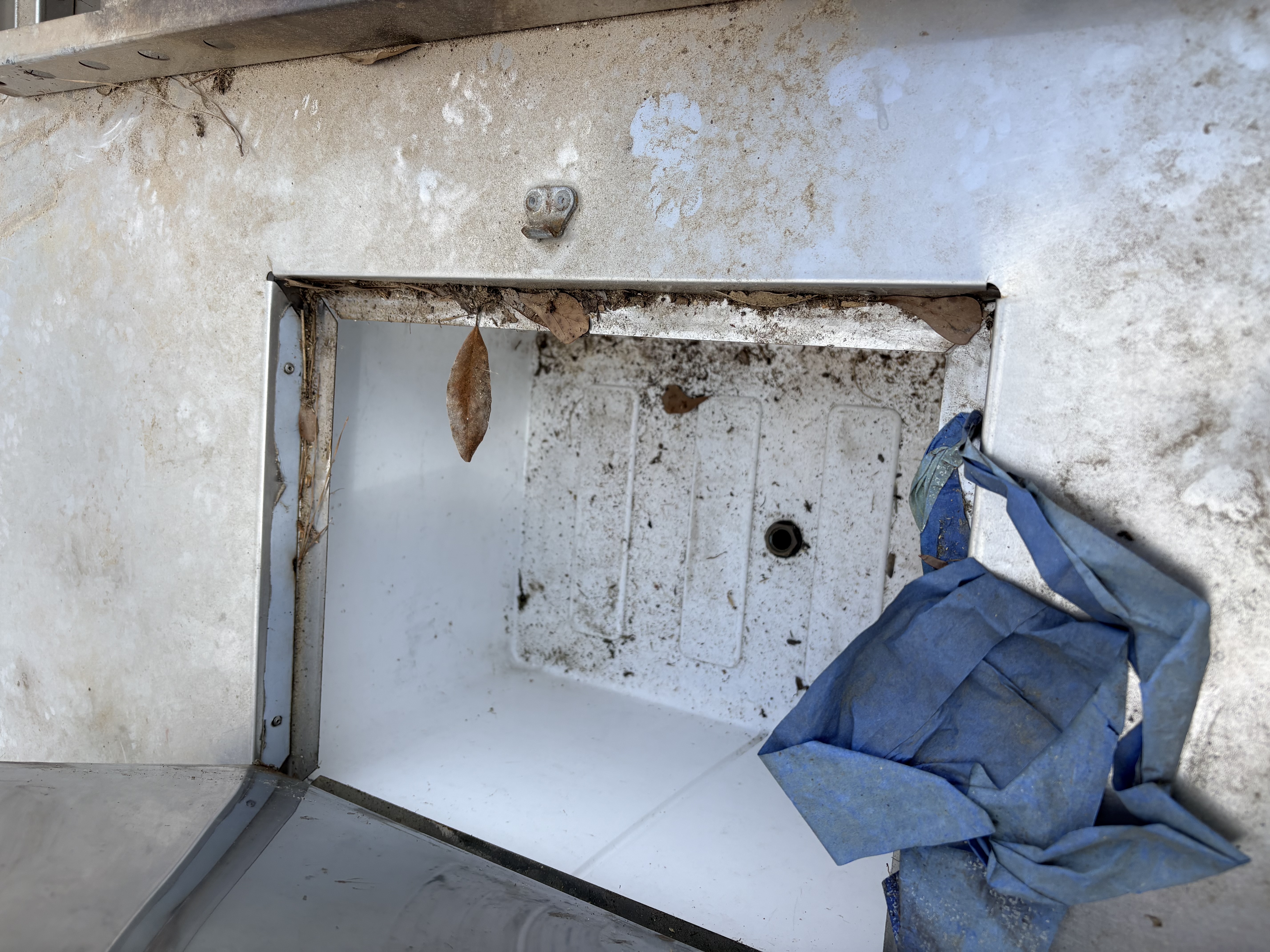A silver diamond-plate towable hot dog cart trailer featuring a Hotflames 6L water heater, a Blue Rhino propane tank, a built-in sink, and identifying decals for Raydiculous Hot Dogs and Cat.