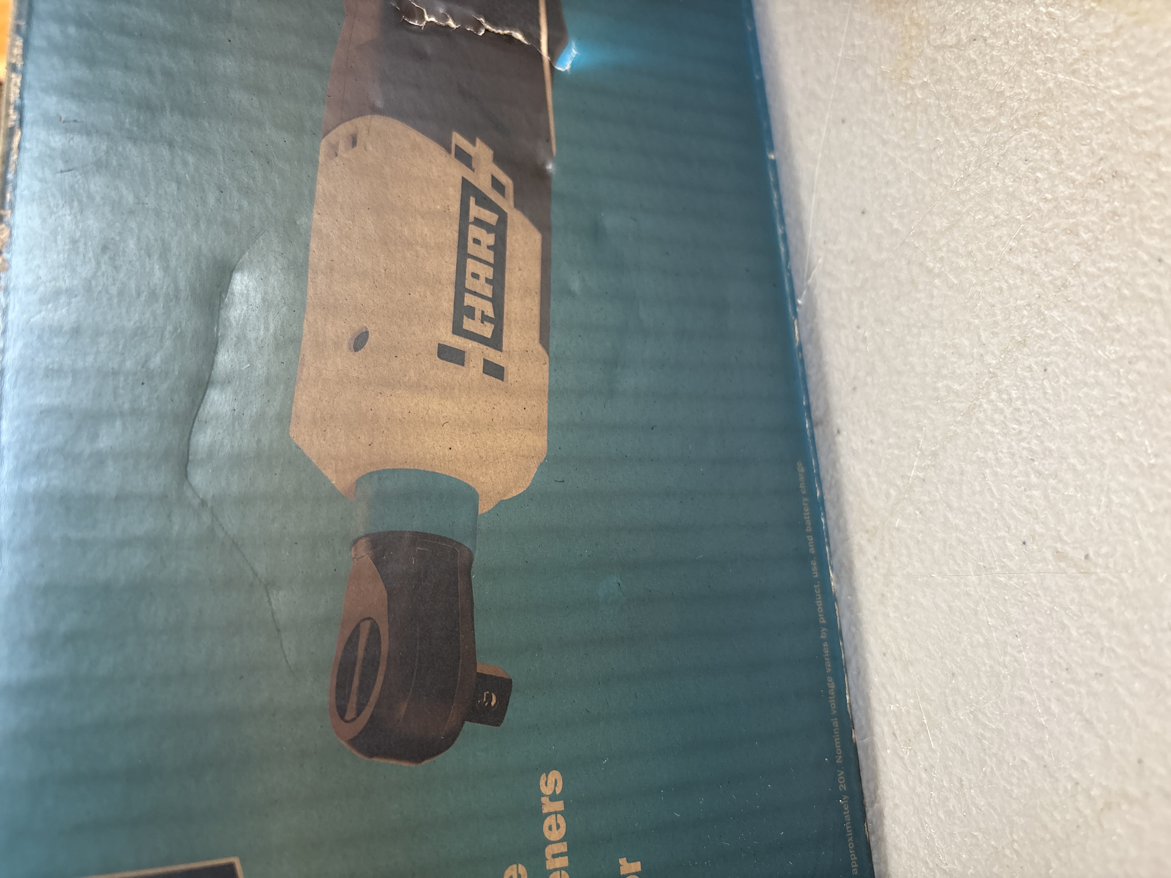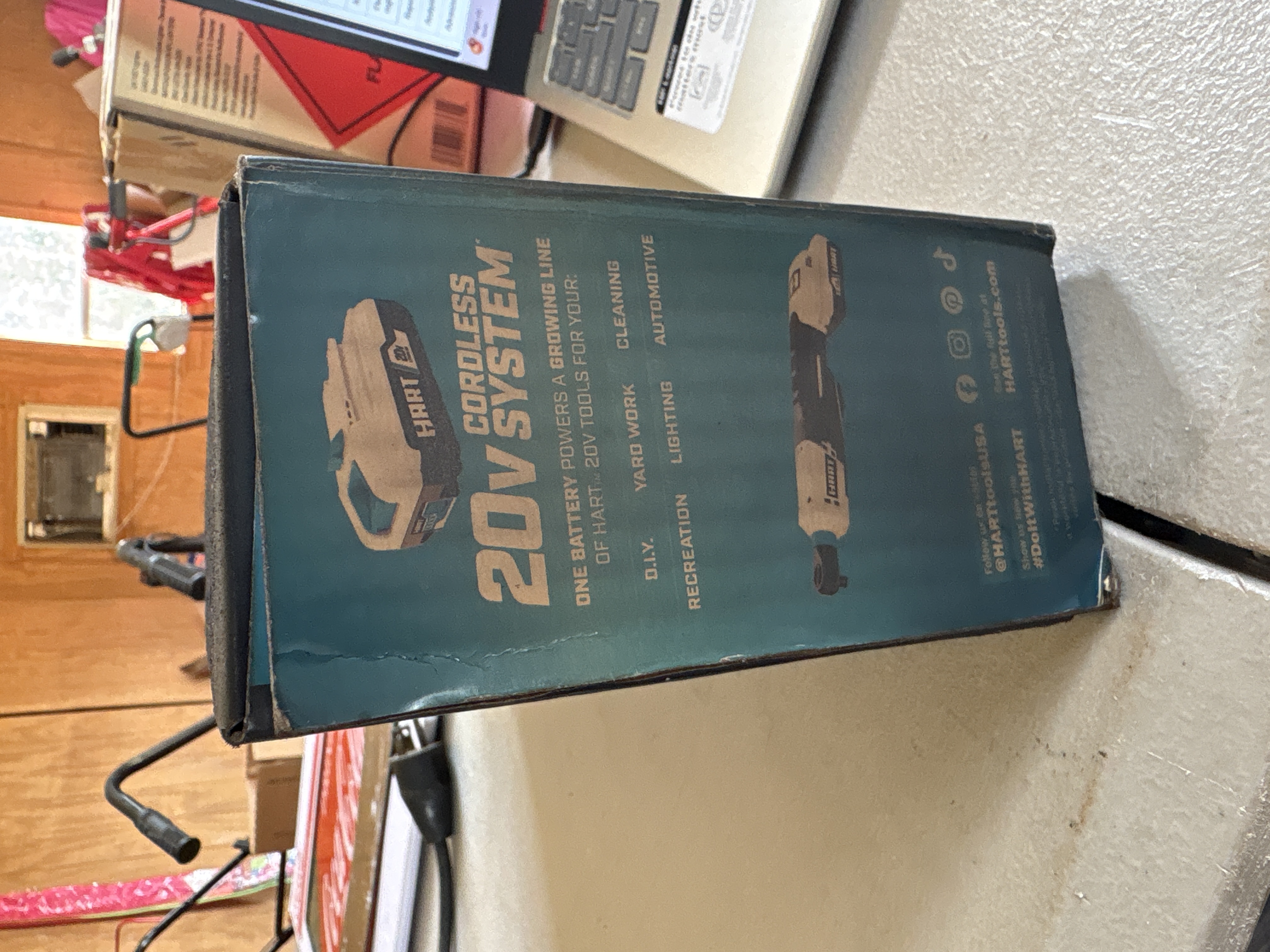 HART 20V Cordless 3/8-inch Ratchet Kit with Battery and Charger New in Box. Never opened. Box does have some smoke damage.