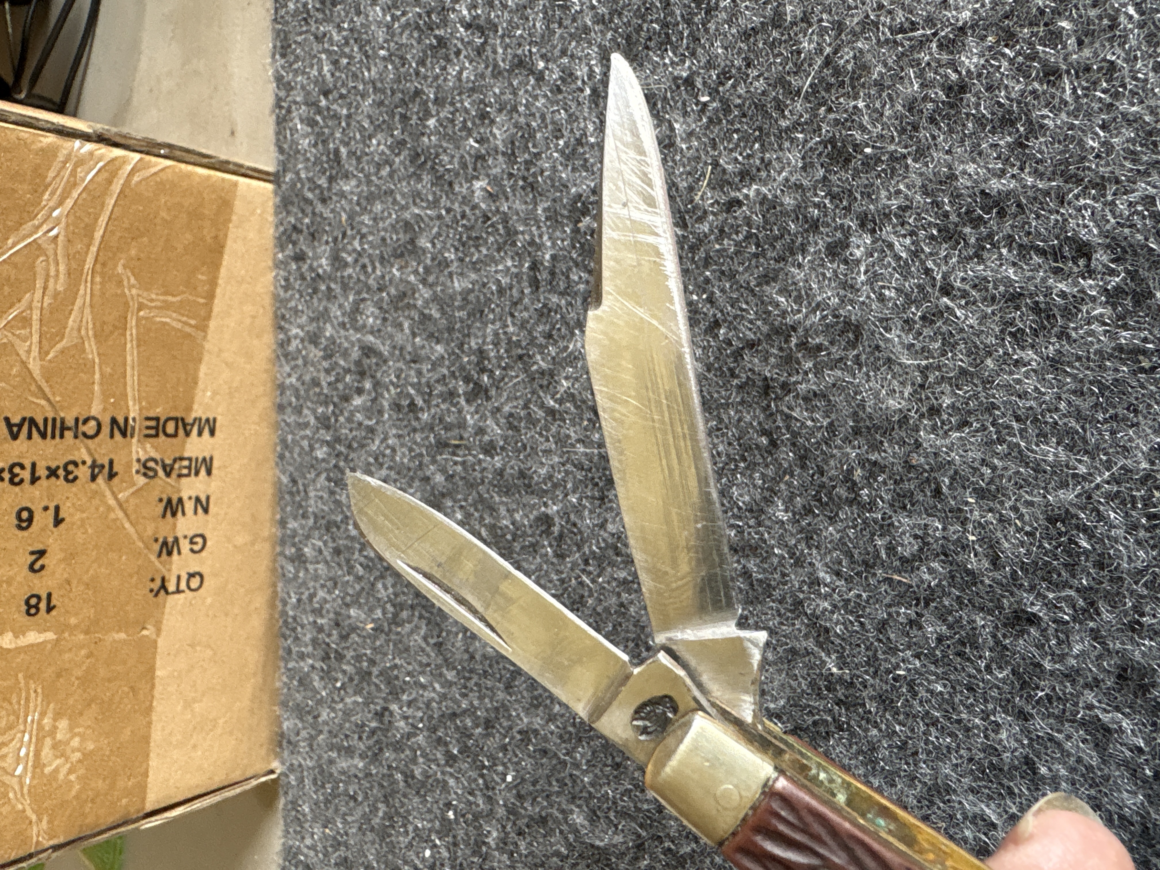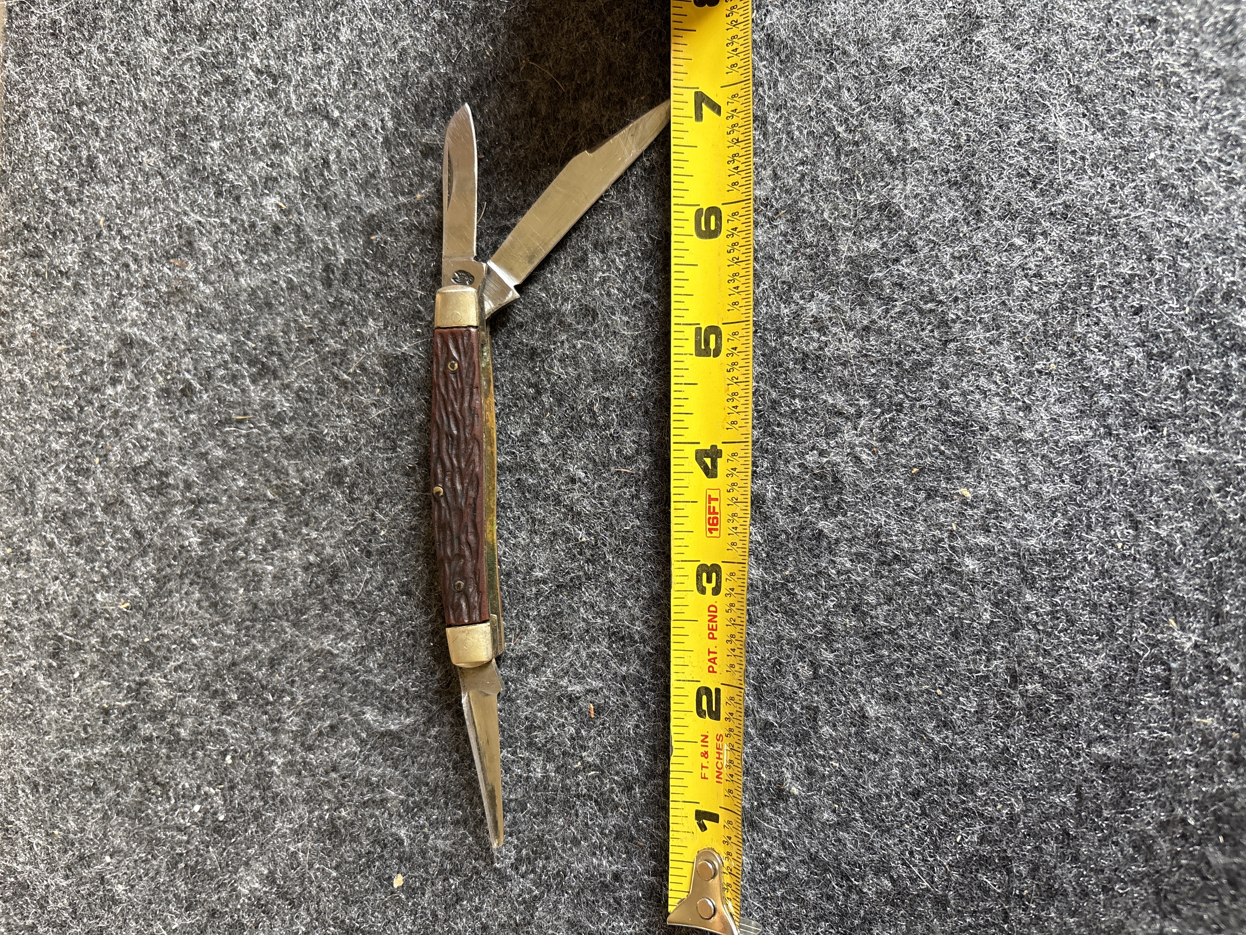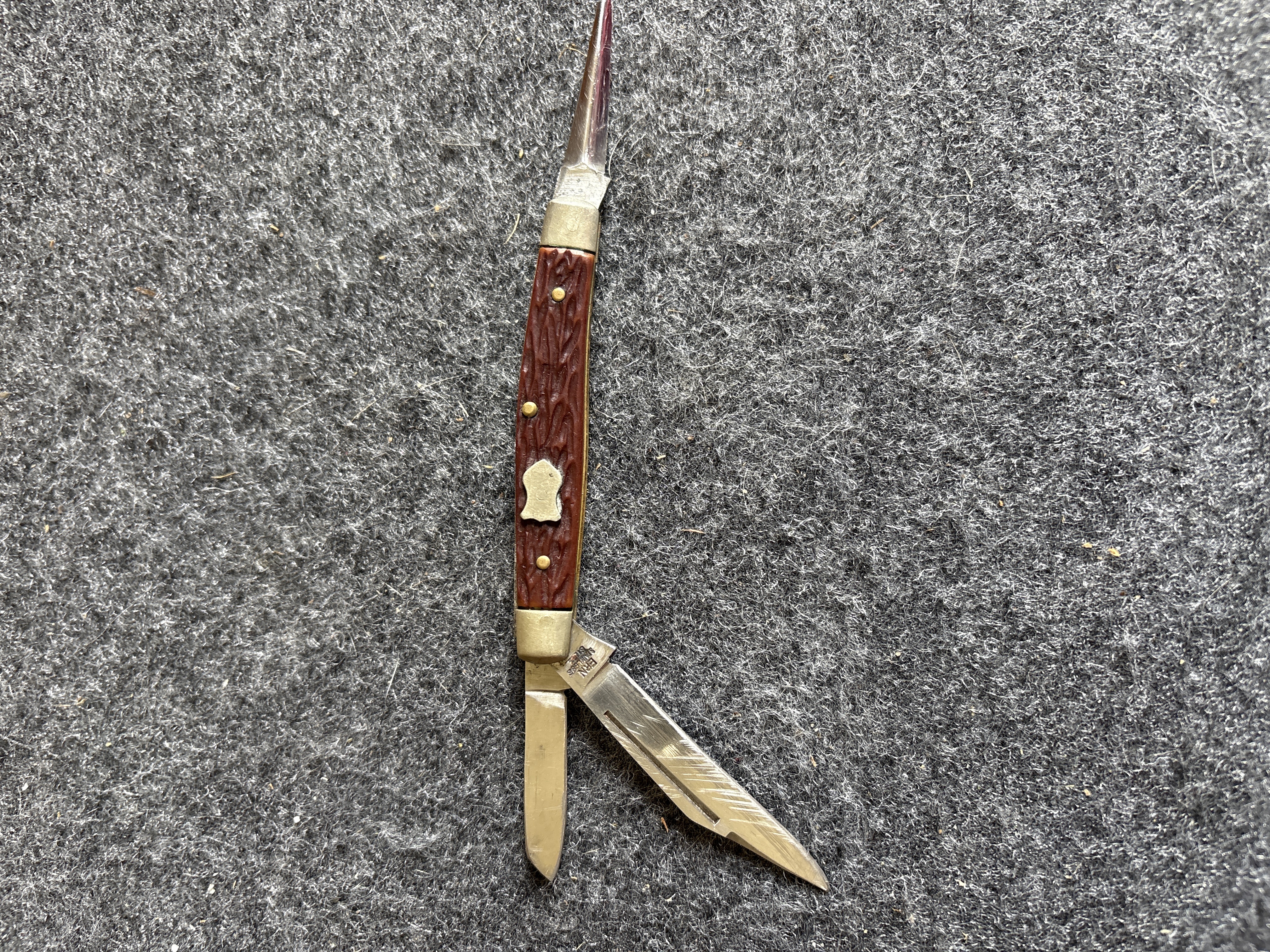ERN Three Blade Folding Pocket Knife with Reddish Brown Handles
