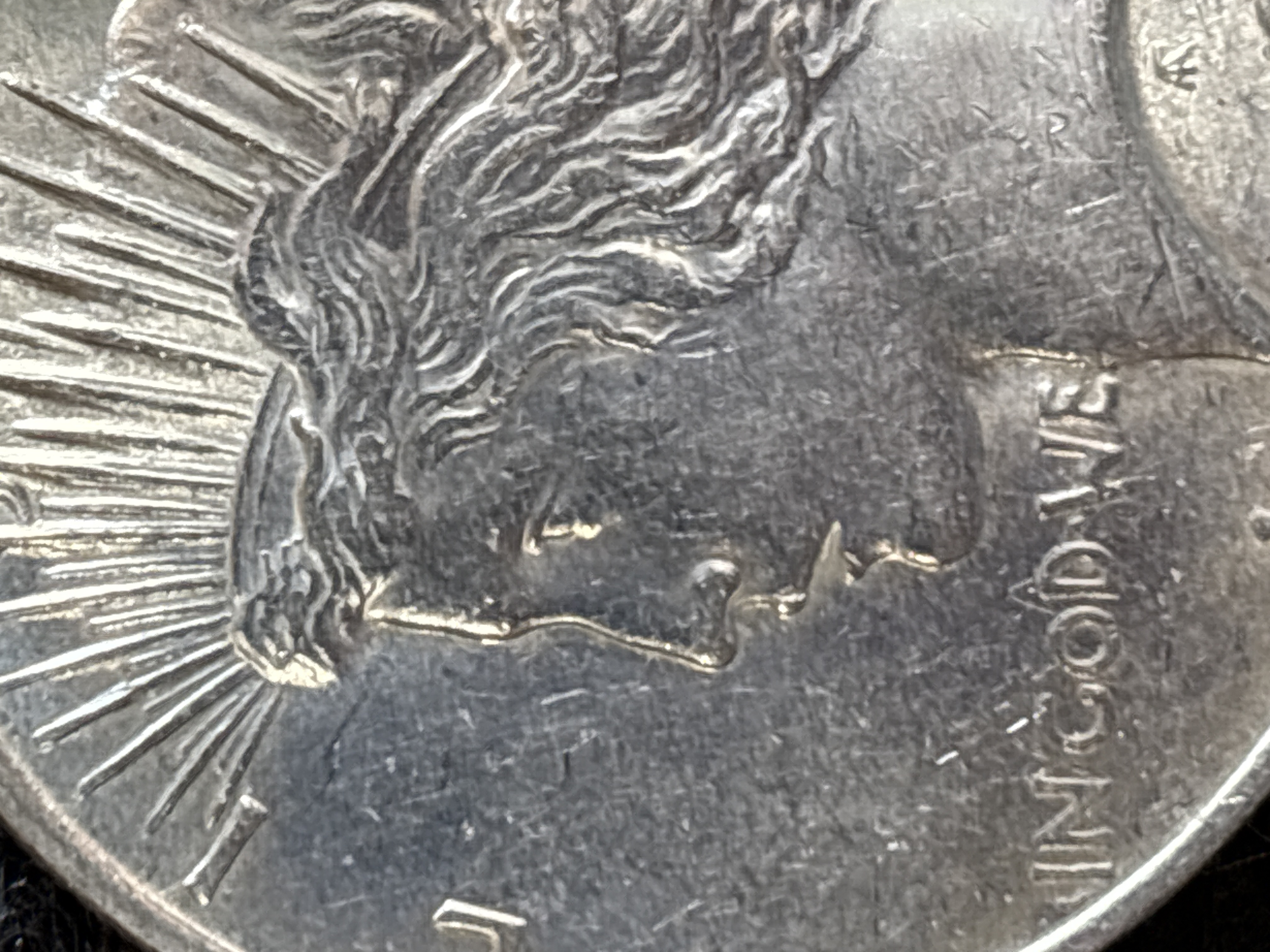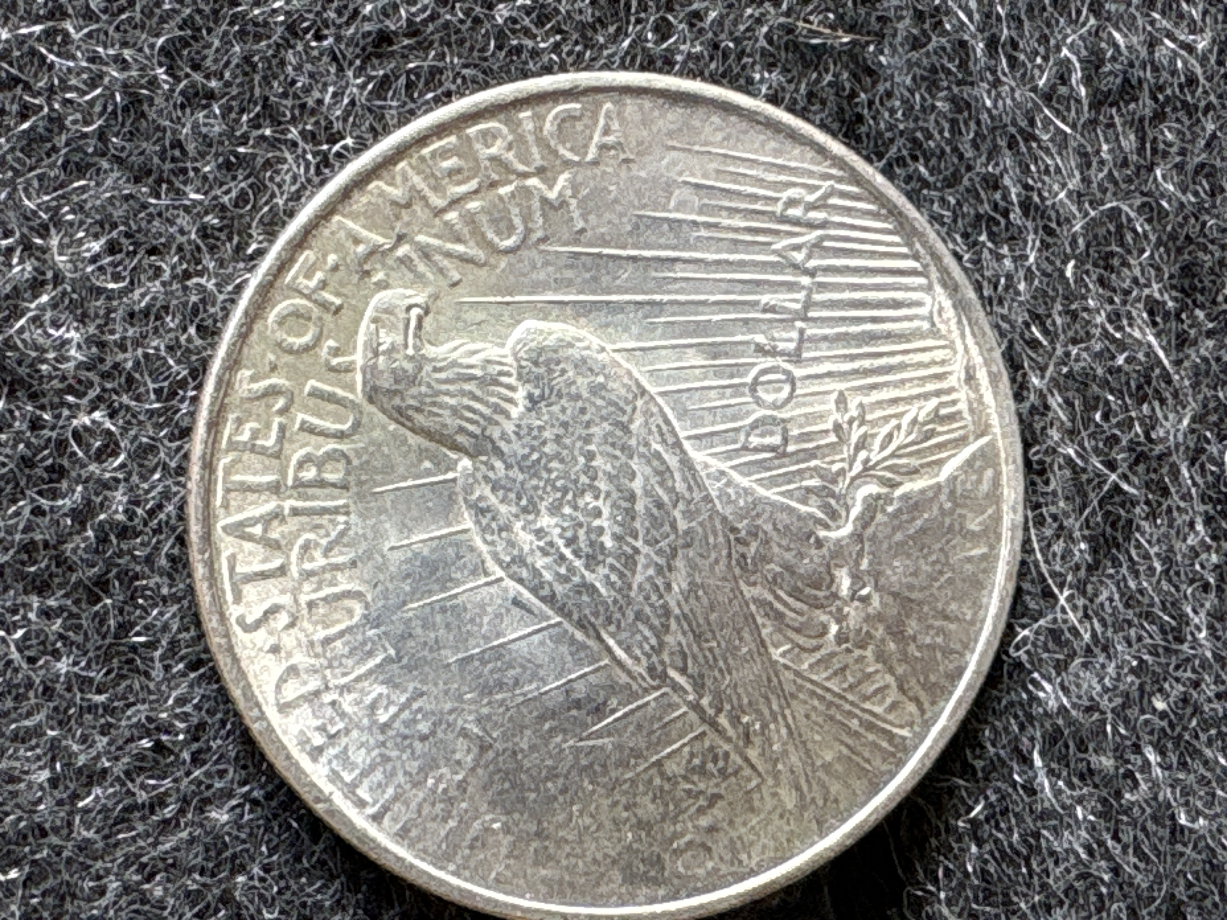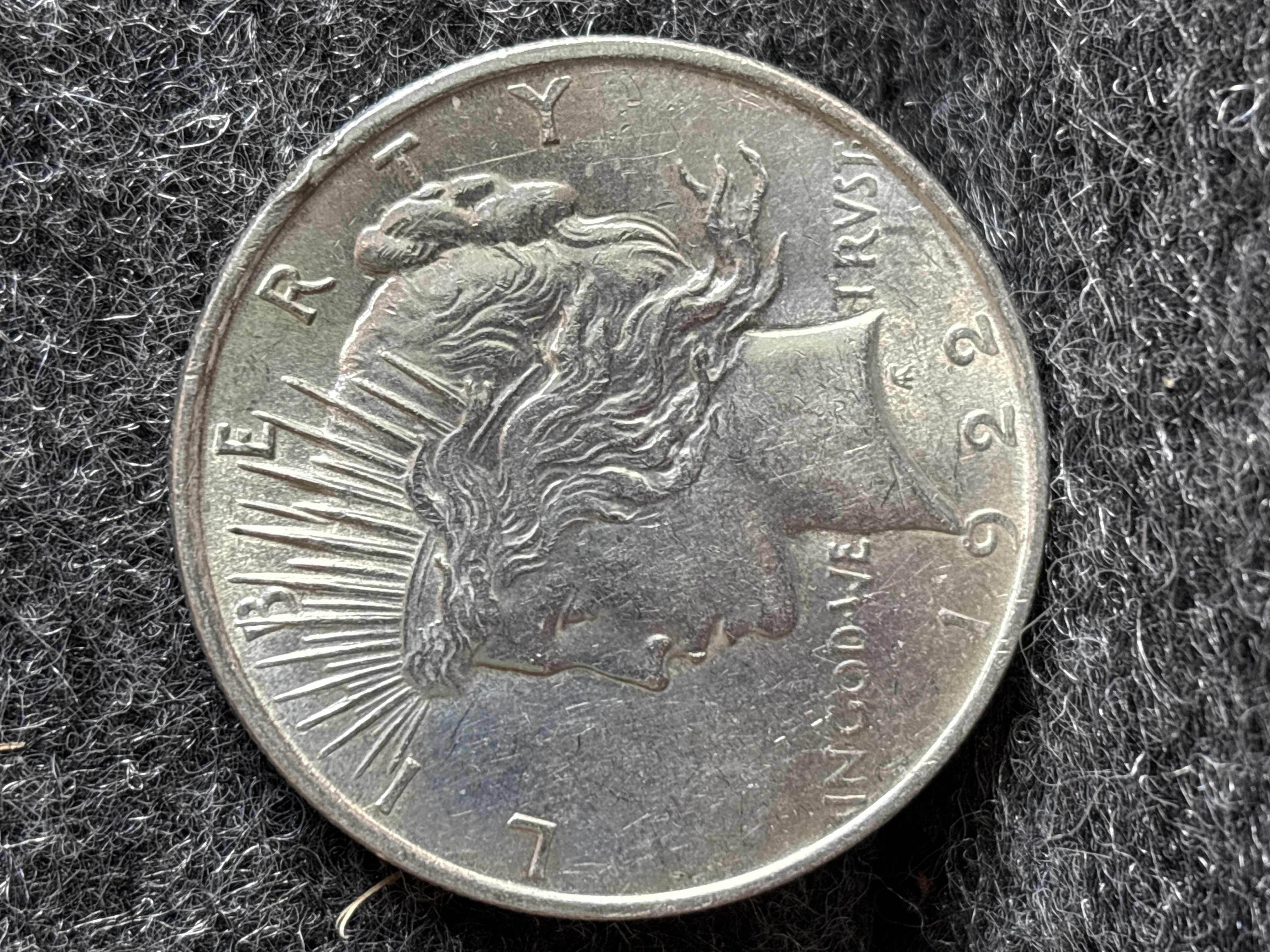 A single 1922 United States Peace Dollar silver coin featuring Lady Liberty on the obverse and a perched eagle on the reverse.