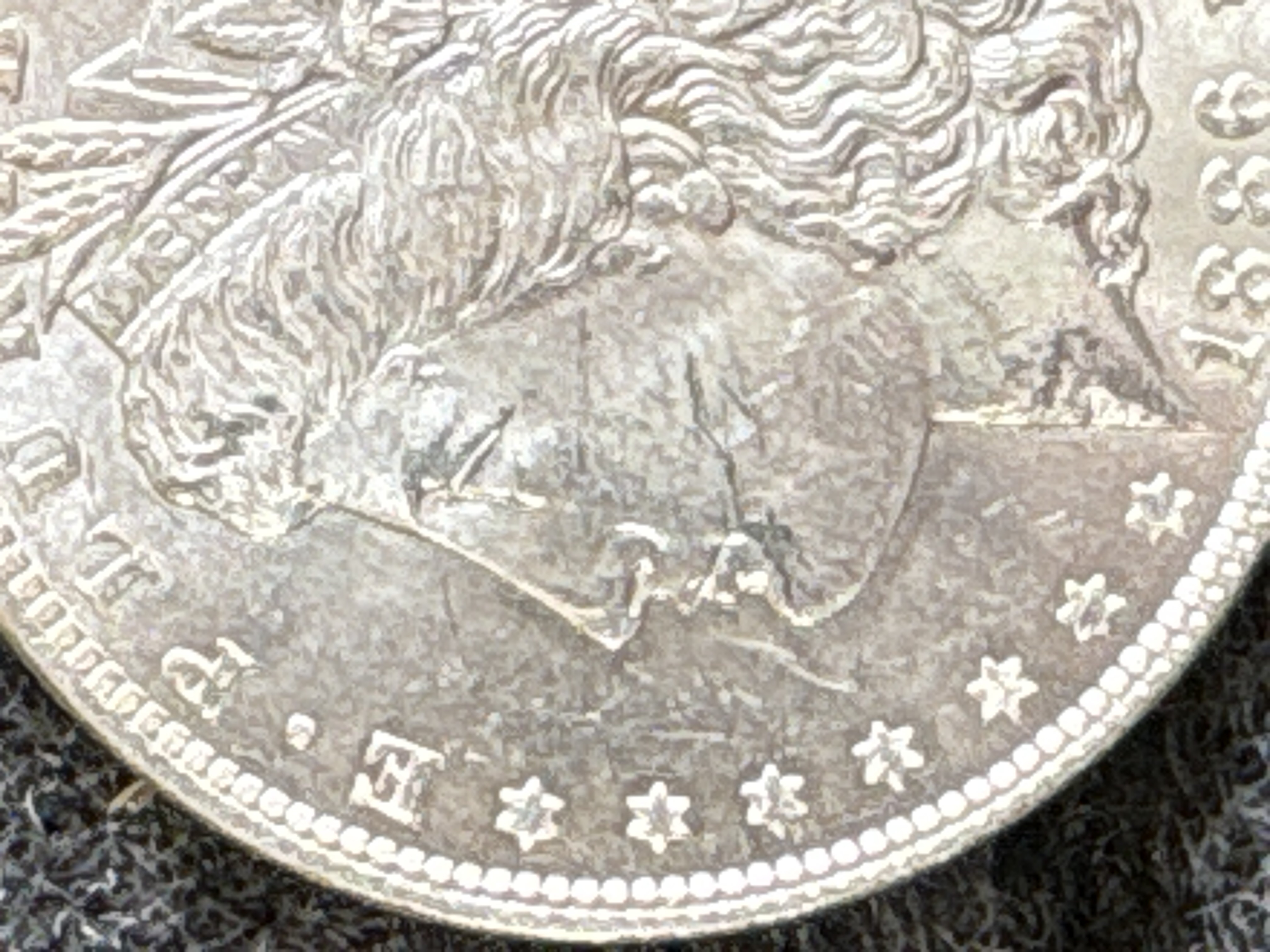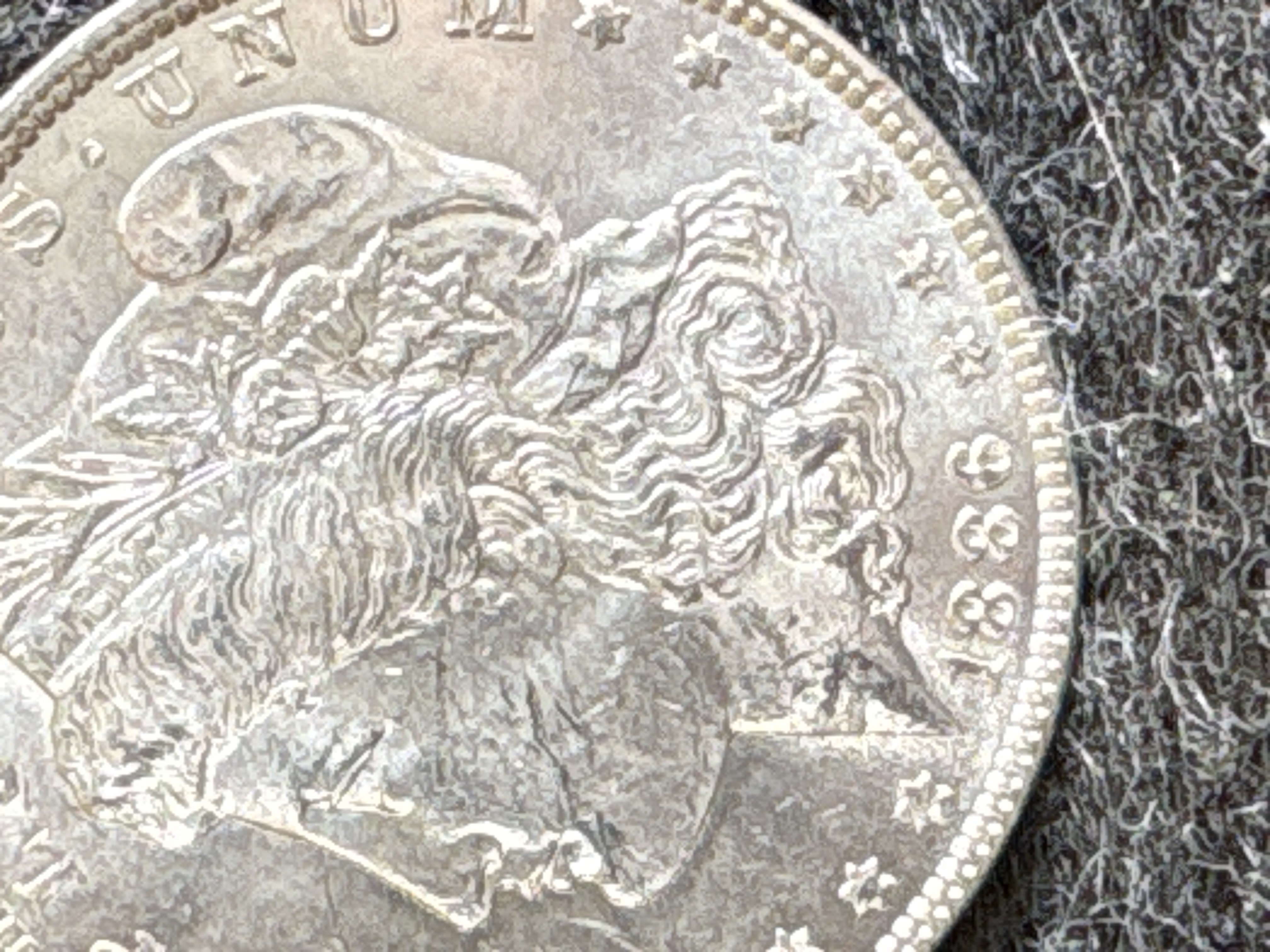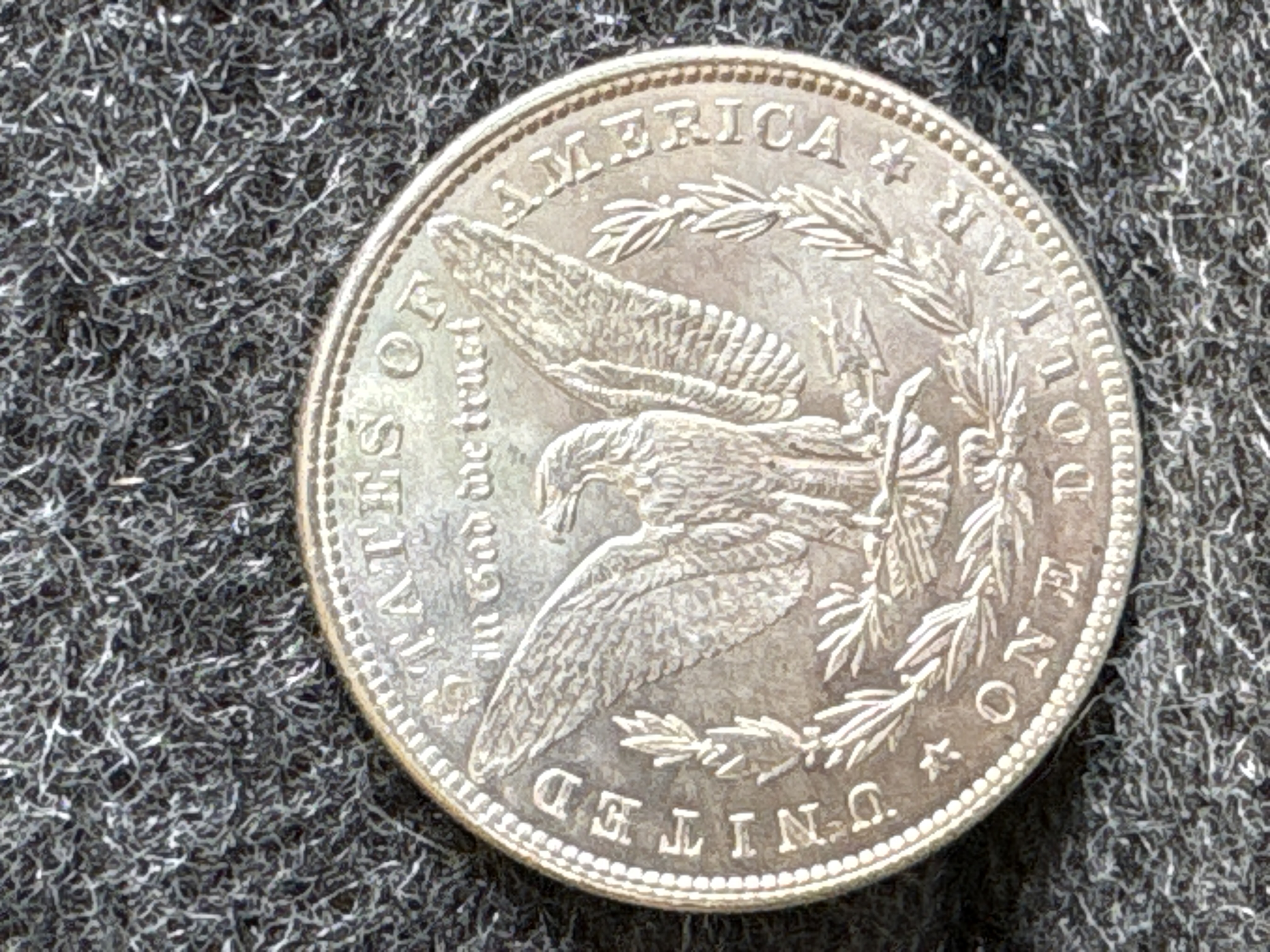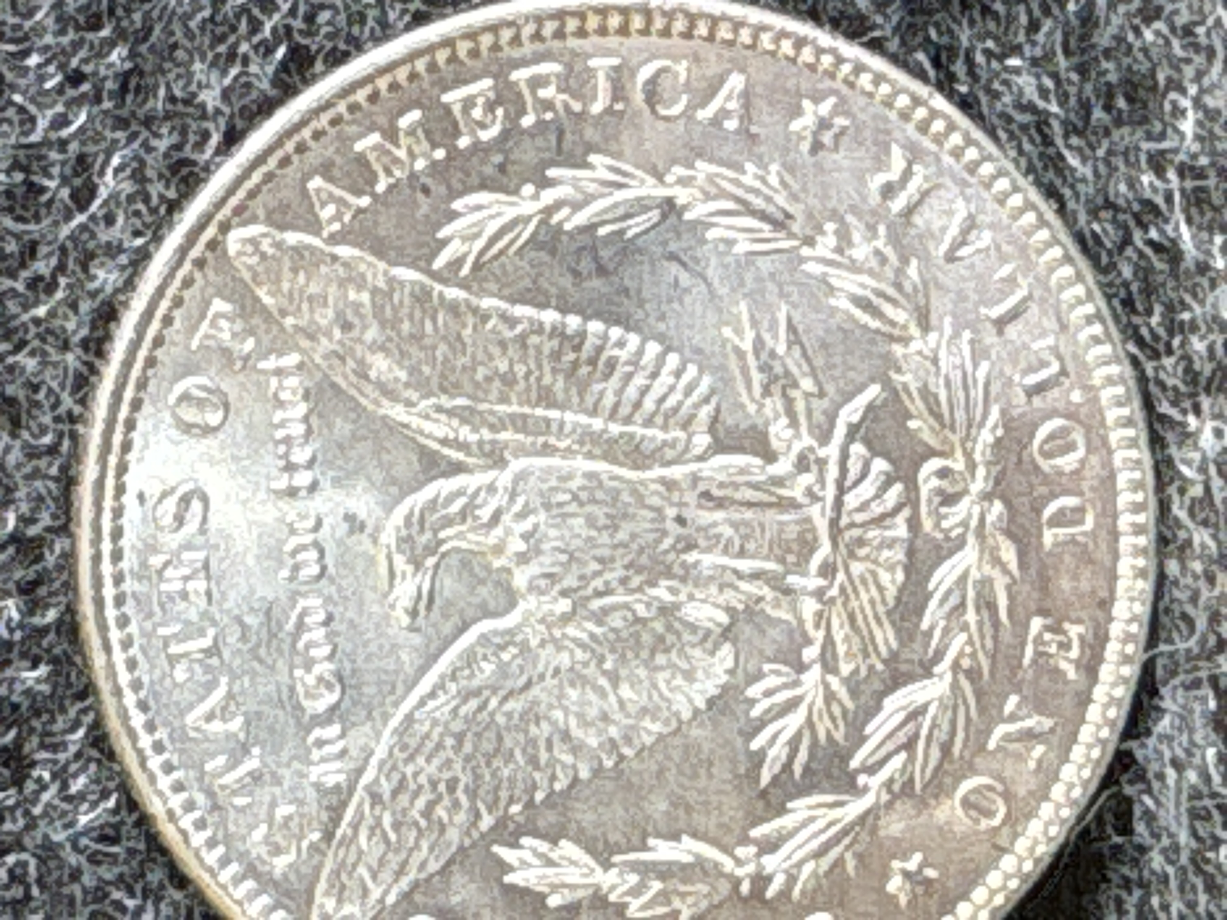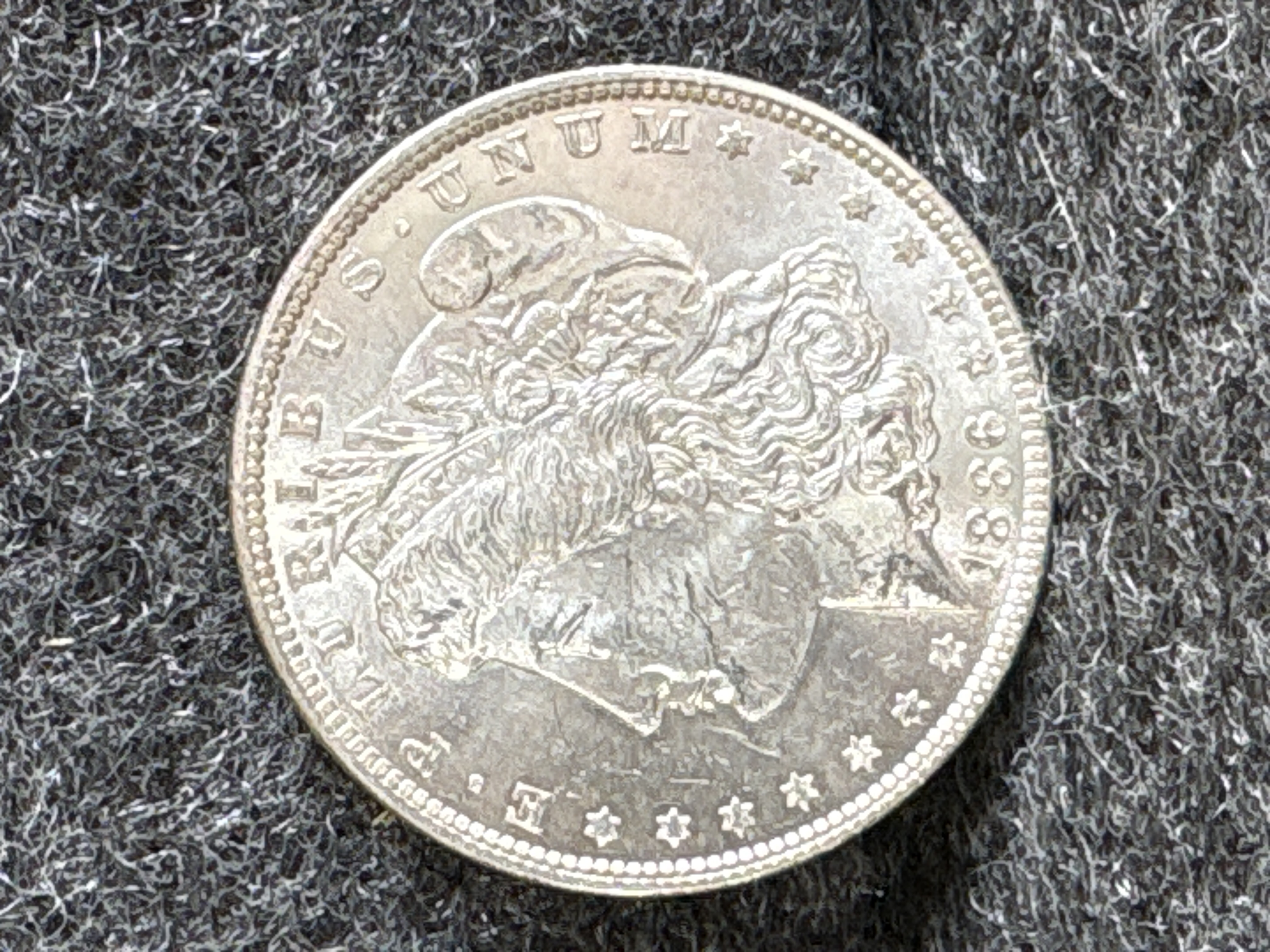 A silver-toned 1886 Morgan silver dollar coin featuring Liberty on the obverse and an eagle with a wreath on the reverse.