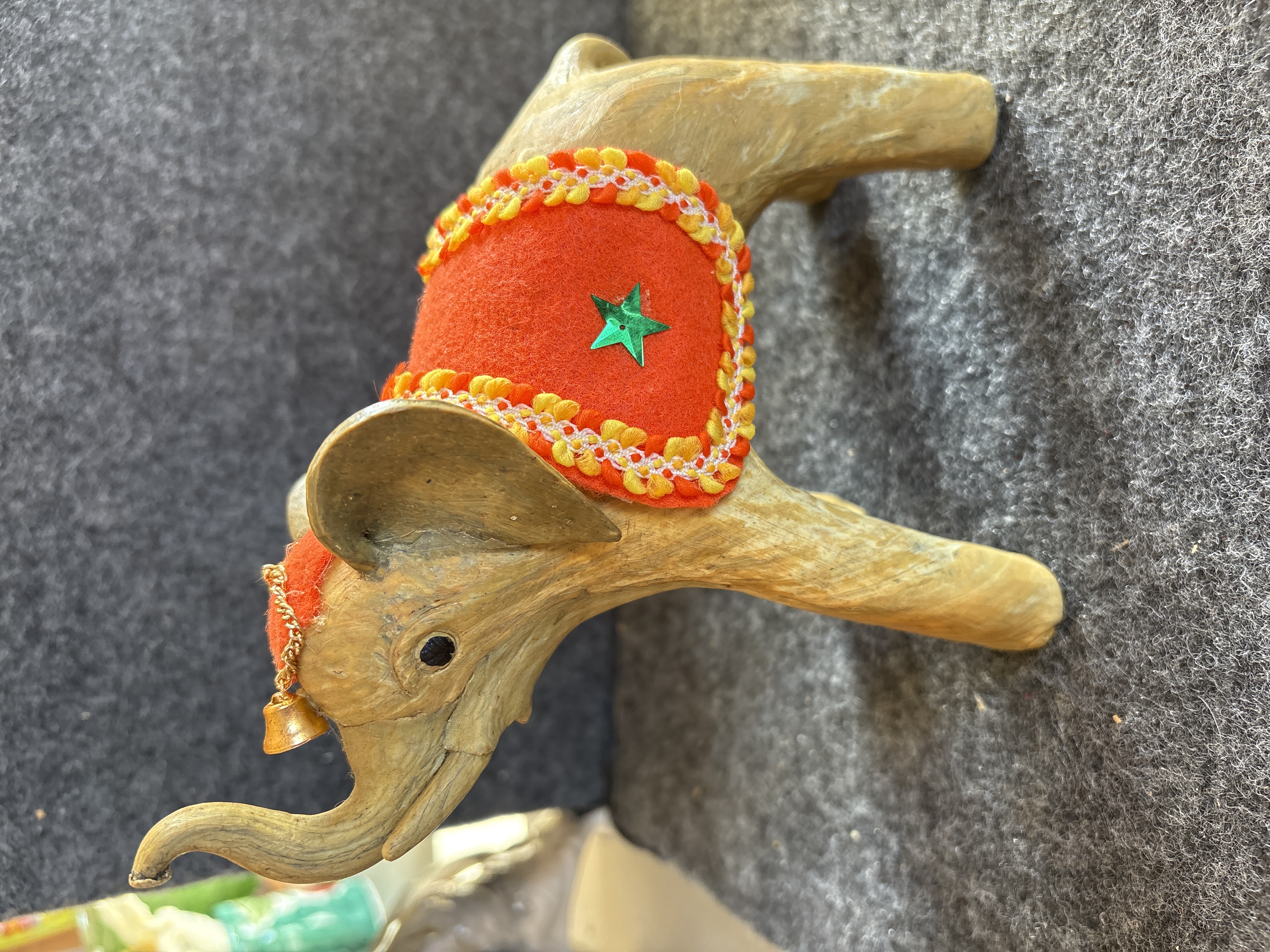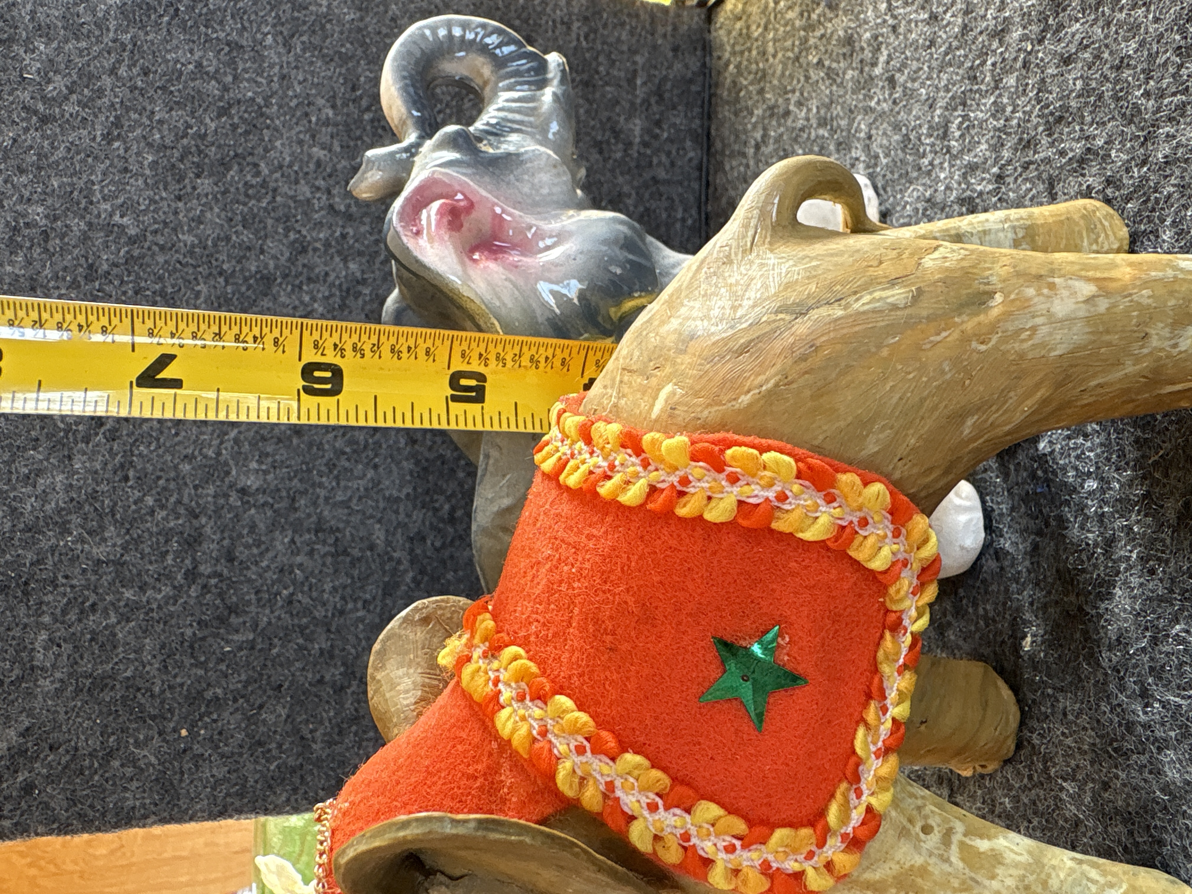 Wooden elephant length: 8 inches