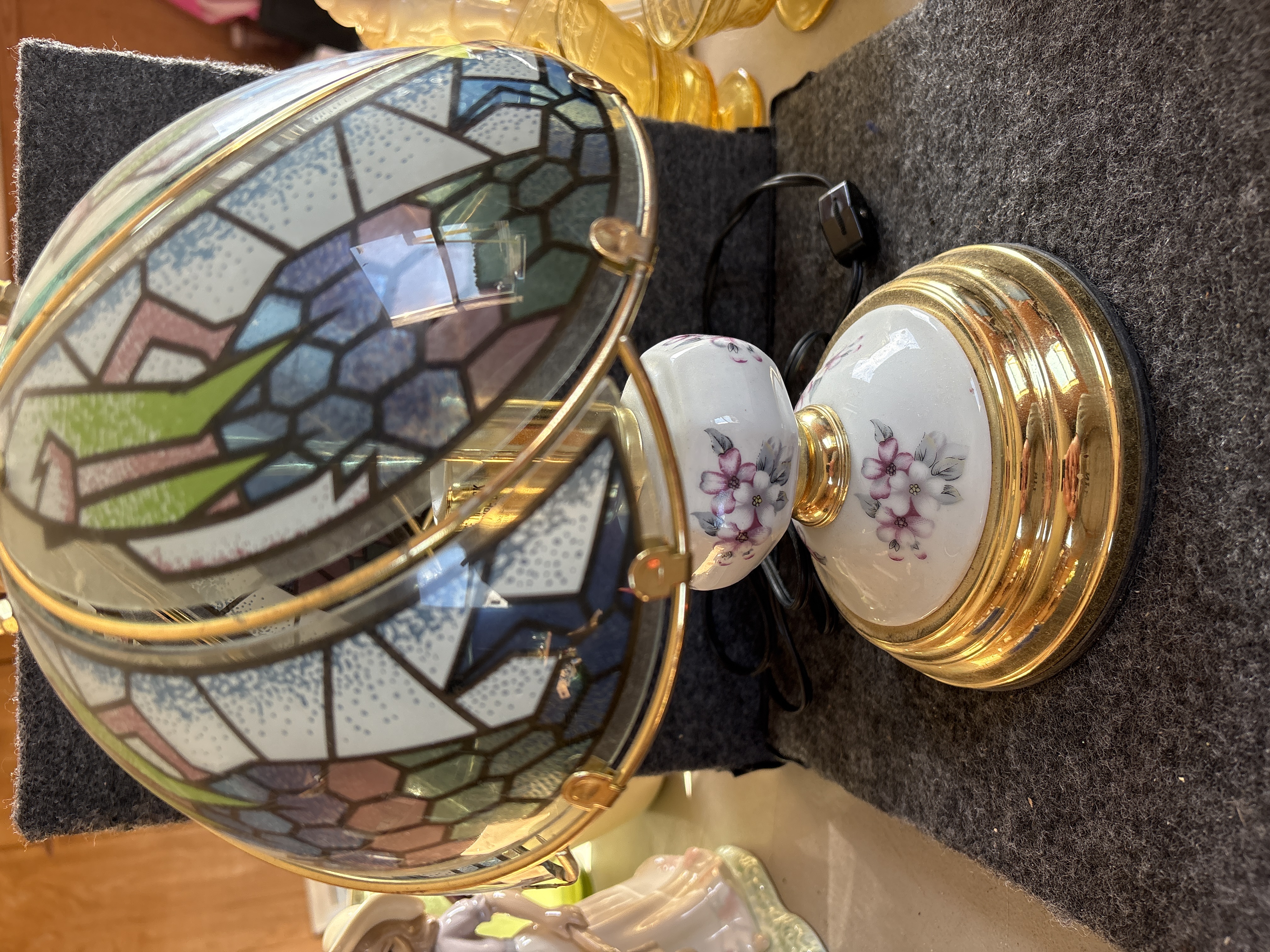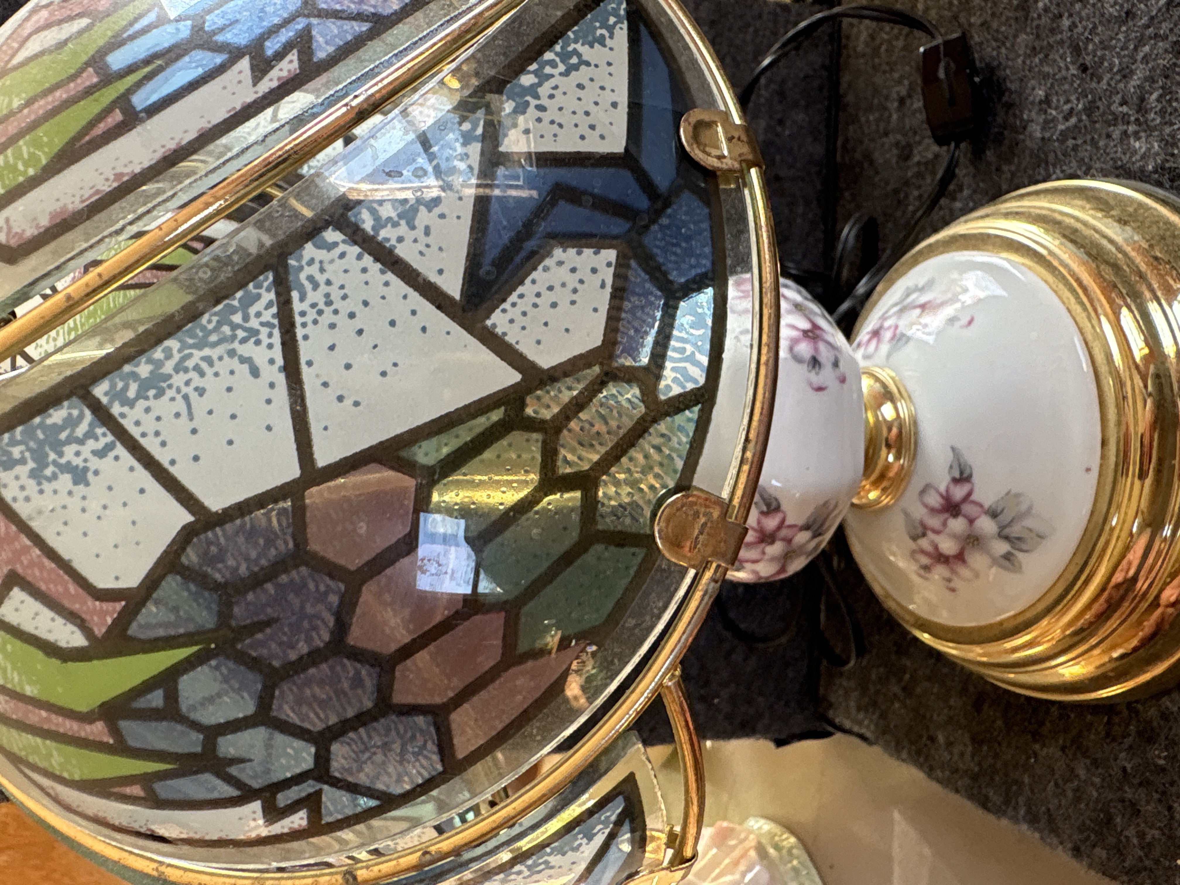 Late 20th-Century Tiffany-Style Touch Lamp with Floral Ceramic Base Not tested. Did not have a bulb.